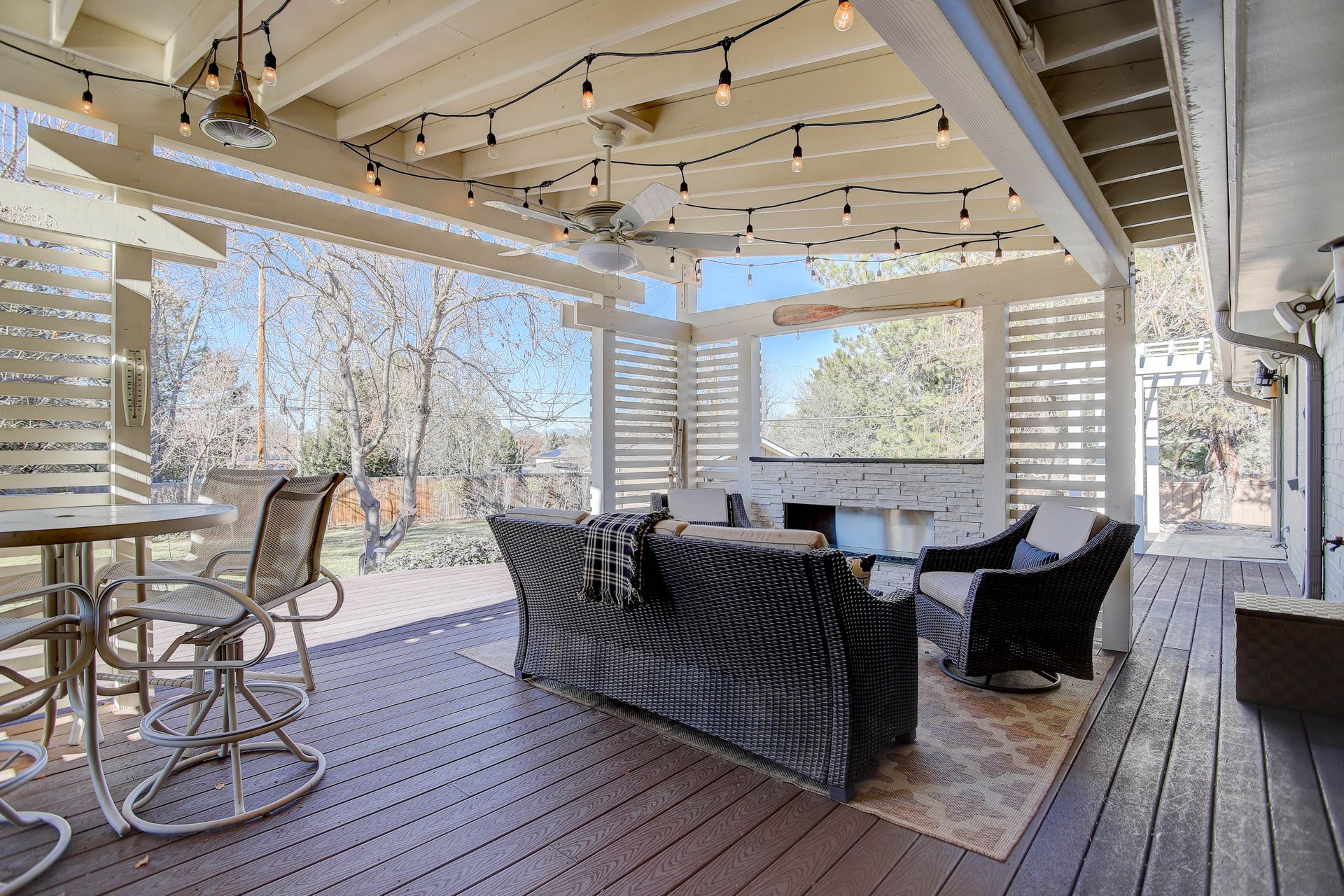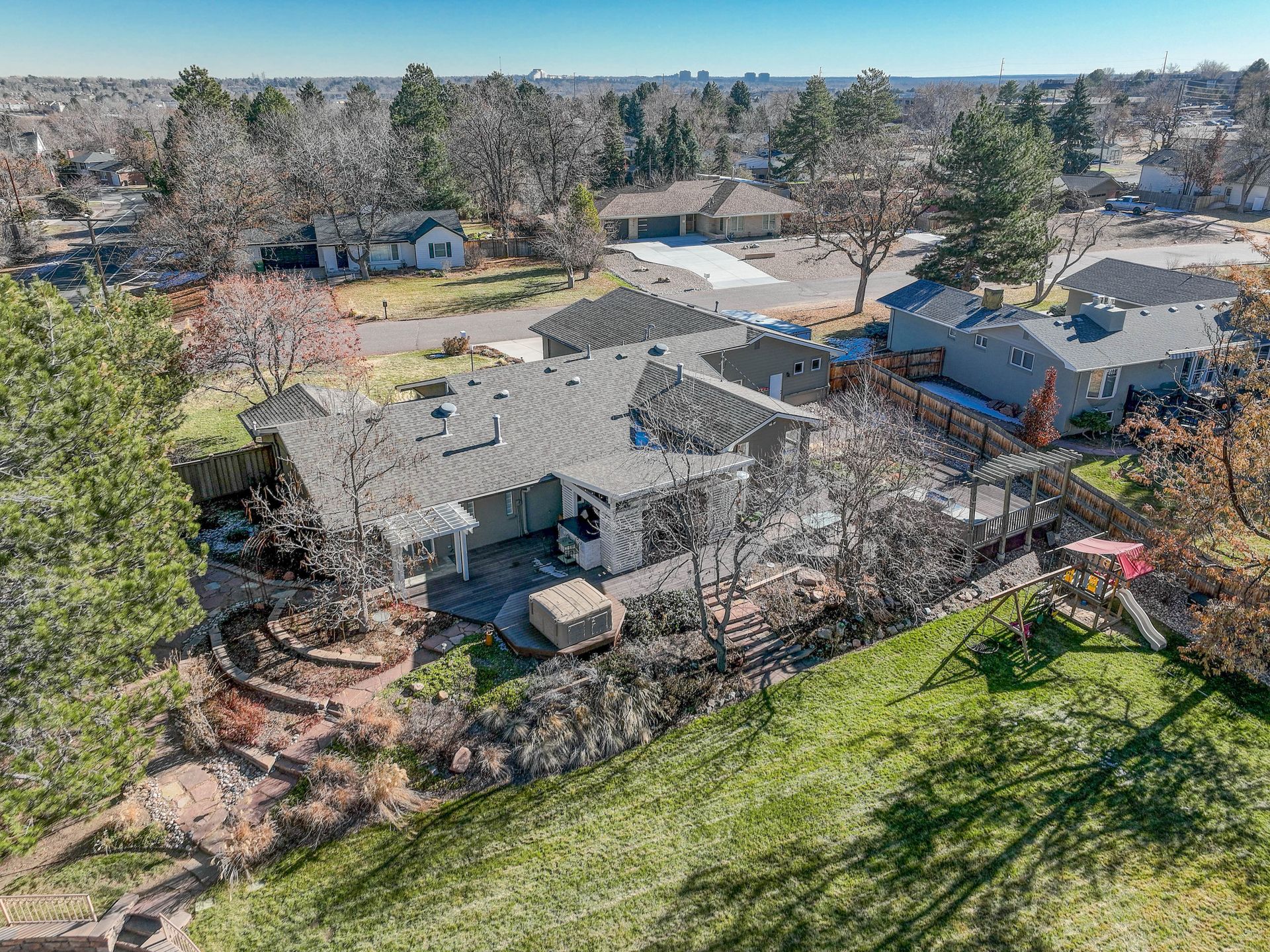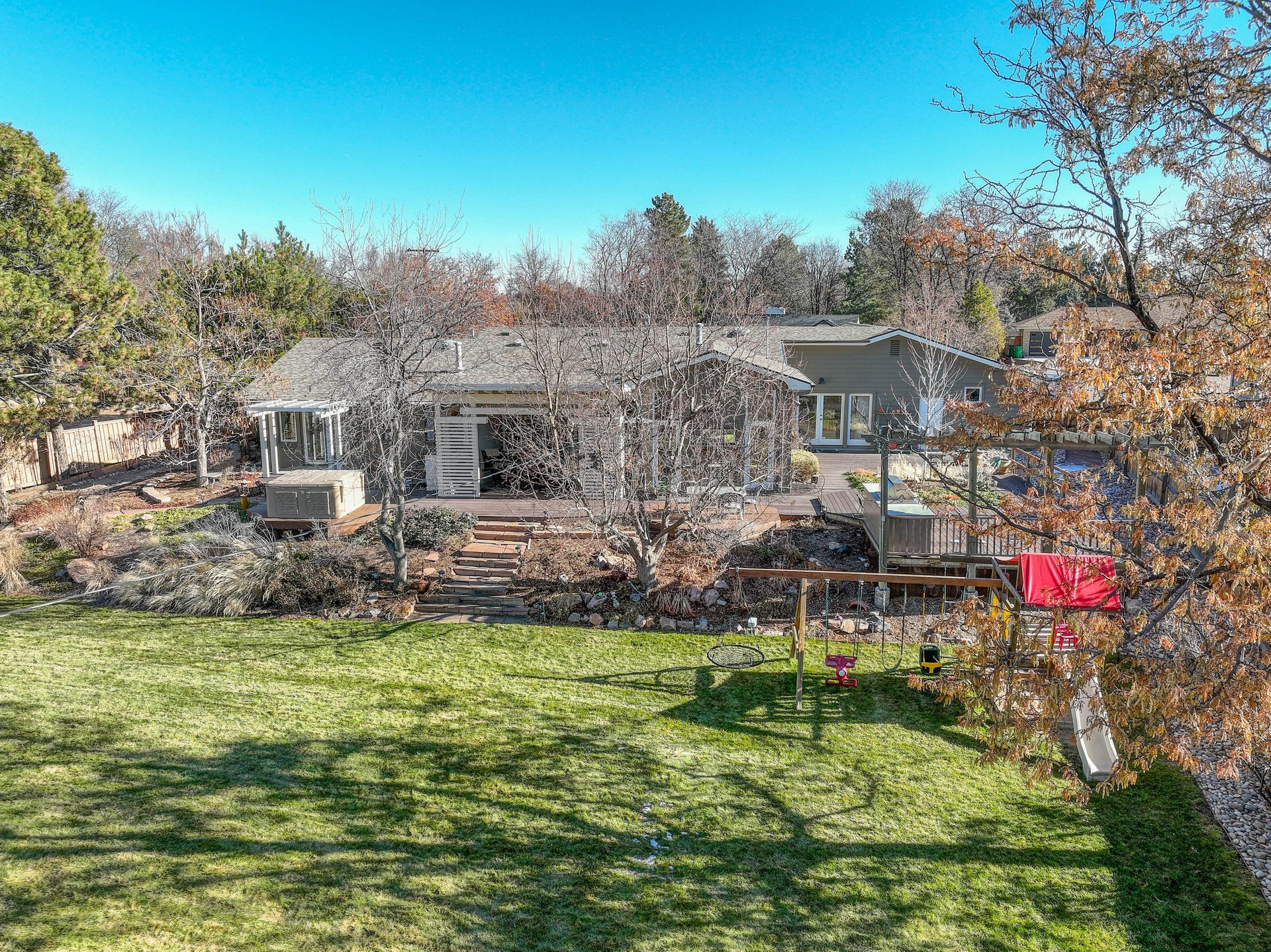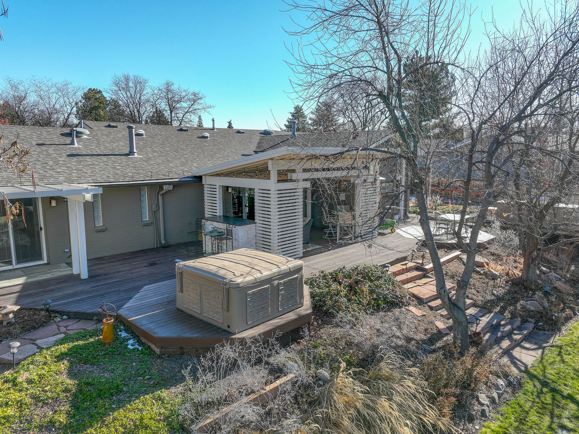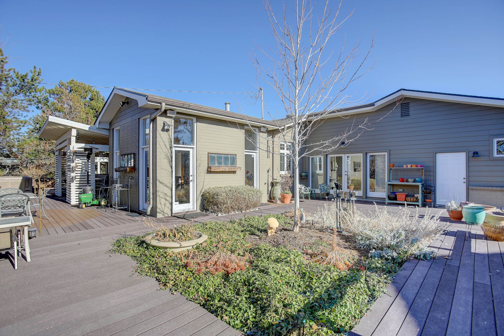 The exterior is a professionally designed oasis, with landscaping by a Denver Botanic Gardens expert and a master gardener. The 2,000 square foot Trex decking features: