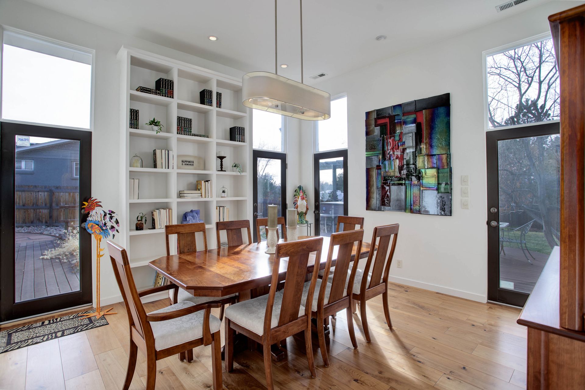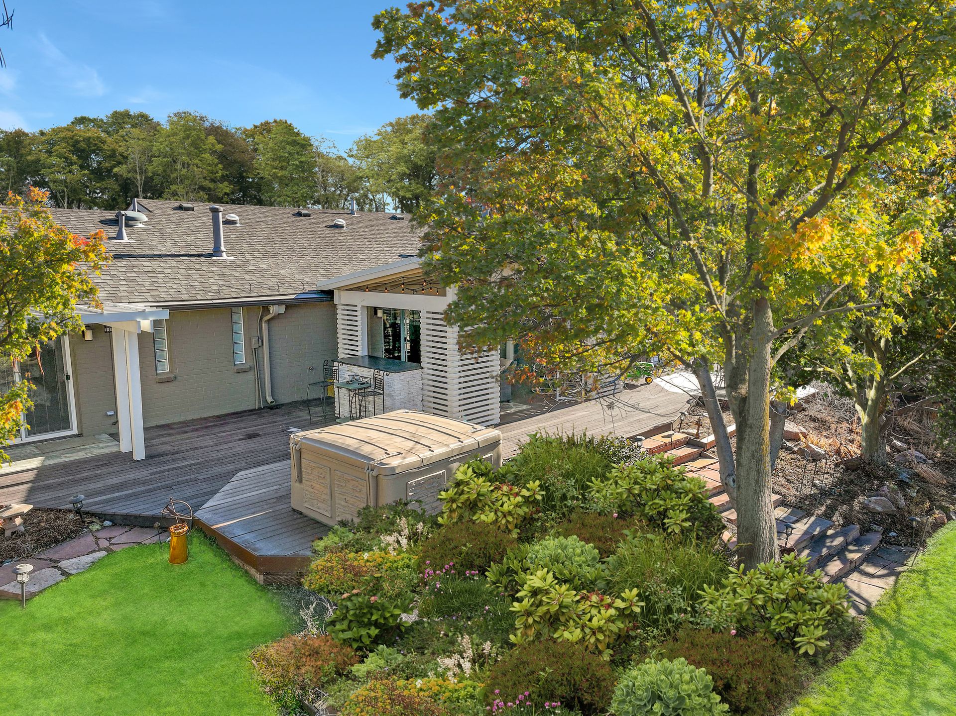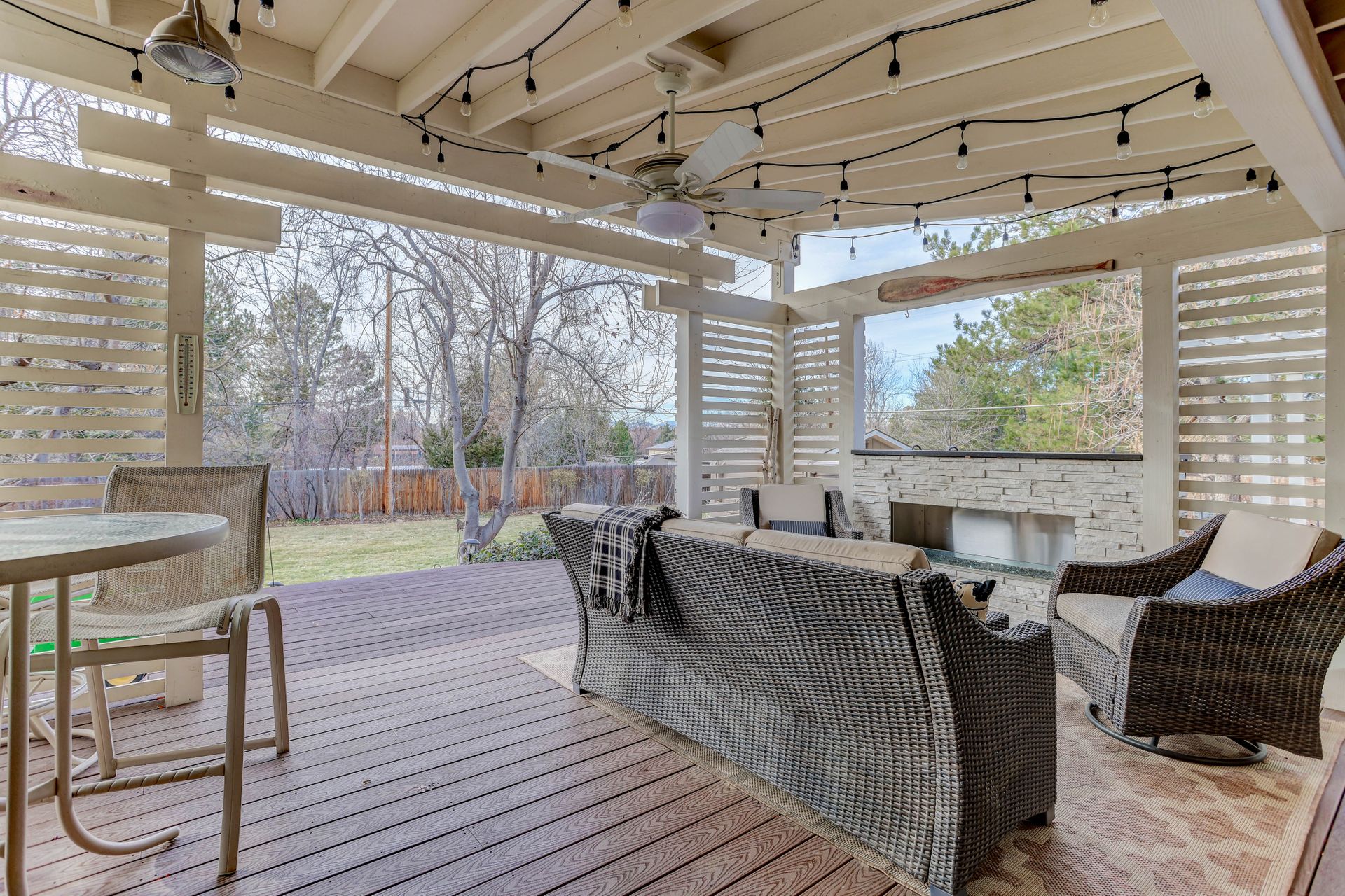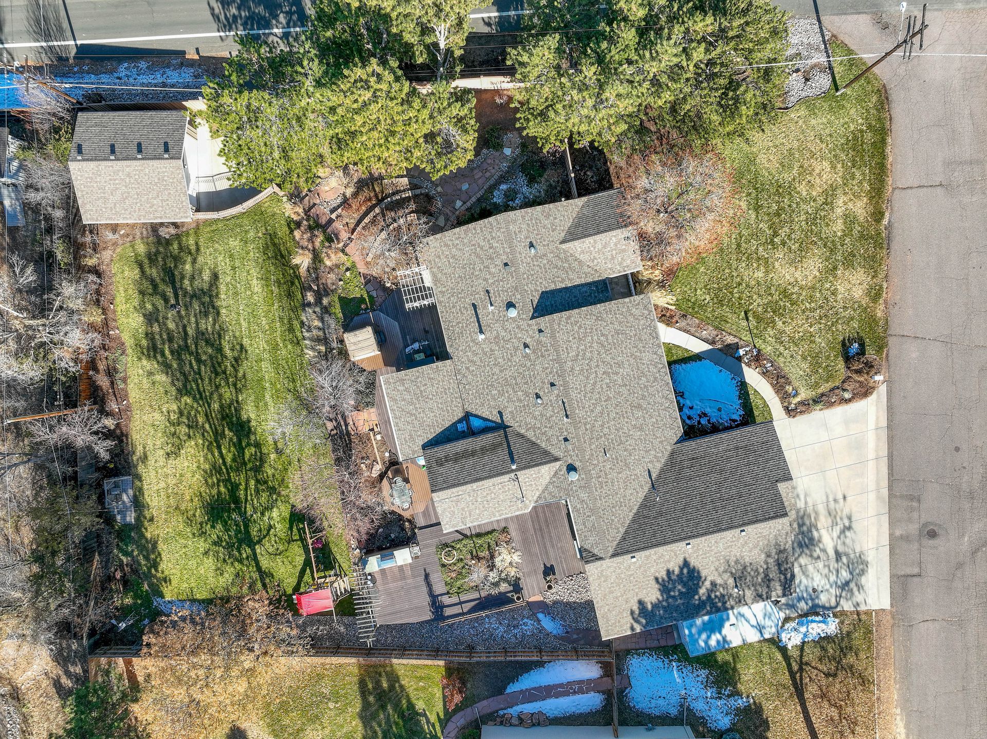 The exterior is a professionally designed oasis, with landscaping by a Denver Botanic Gardens expert and a master gardener. The 2,000 square foot Trex decking features: