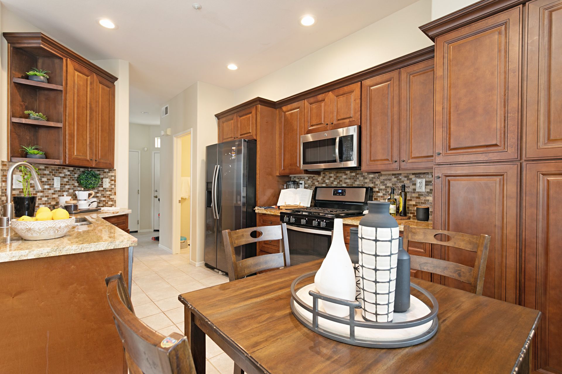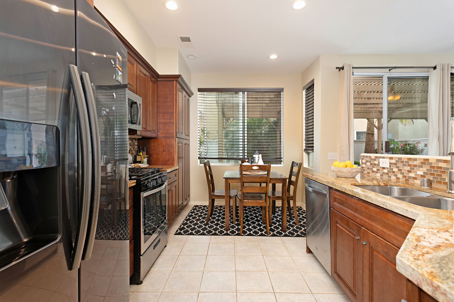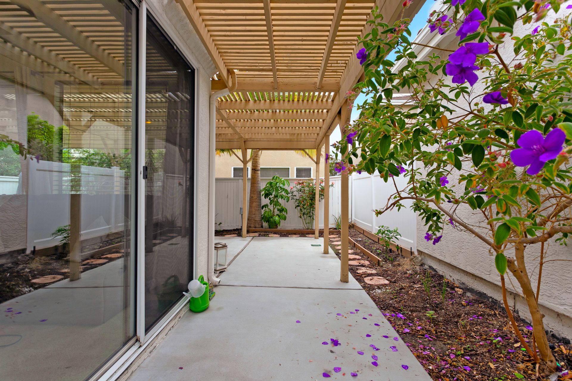 Welcome home to Heritage / Legends of Vista. This popular community is tucked away behind private gates right in the heart of Shadowridge close to just about everything North County has to offer. Parks, trails, shopping, eateries, schools, and more are all within walking distance or a very short drive of the community. The home is a 3-bedroom, 2.5 bath with 1,375 estimated sq.ft. of living space with an office alcove, breakfast nook and private patio right off the kitchen/dining room ideal for gathering and entertaining. Special features include a beautiful, updated kitchen with granite counter tops, plenty of storage, AC, fireplace in living room, spacious bedrooms, and 2 car garage. Interested parties are urged to move quickly! This is a super charming home in a great location, and it is priced to sell.
