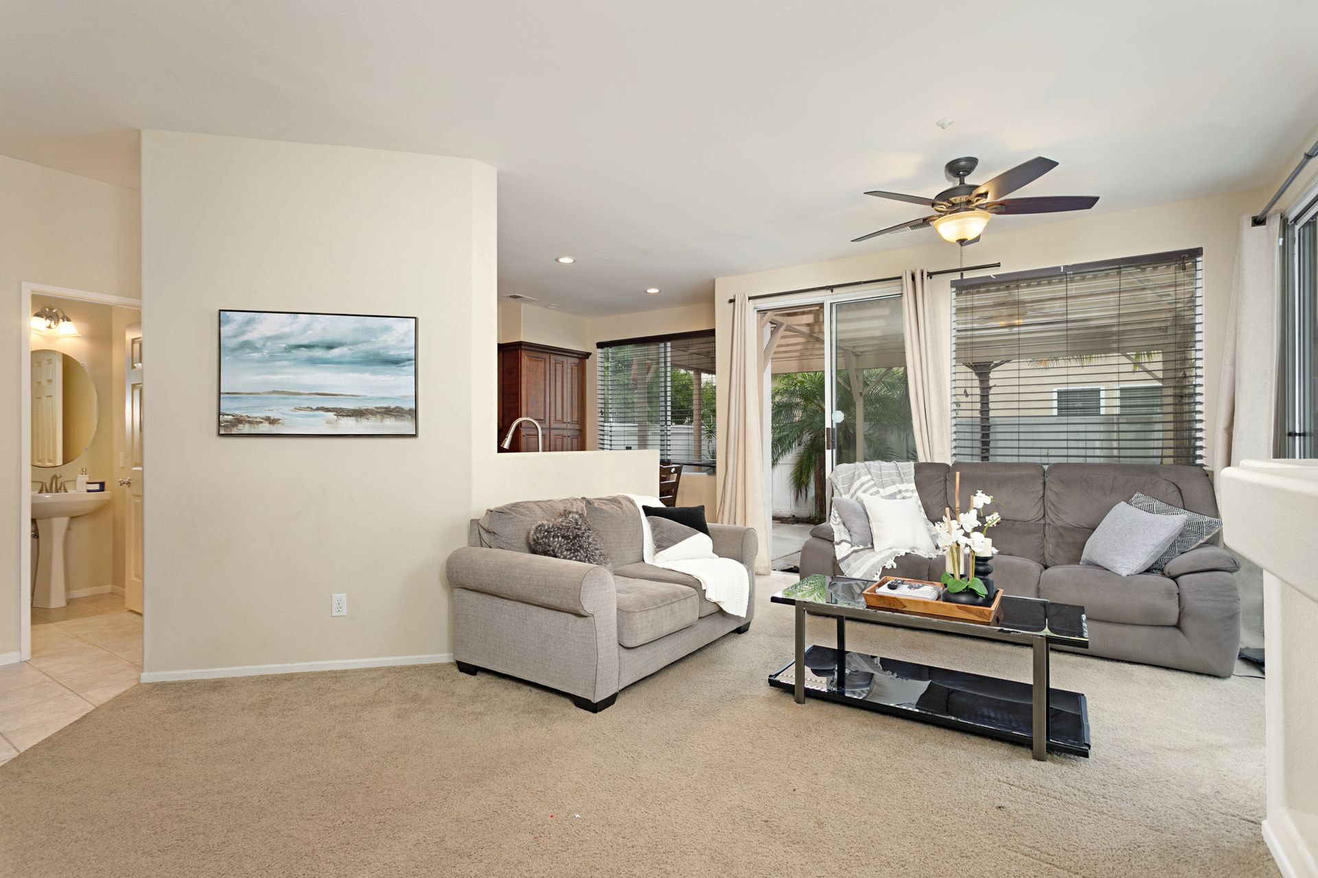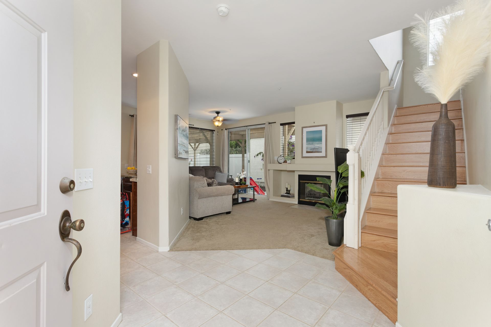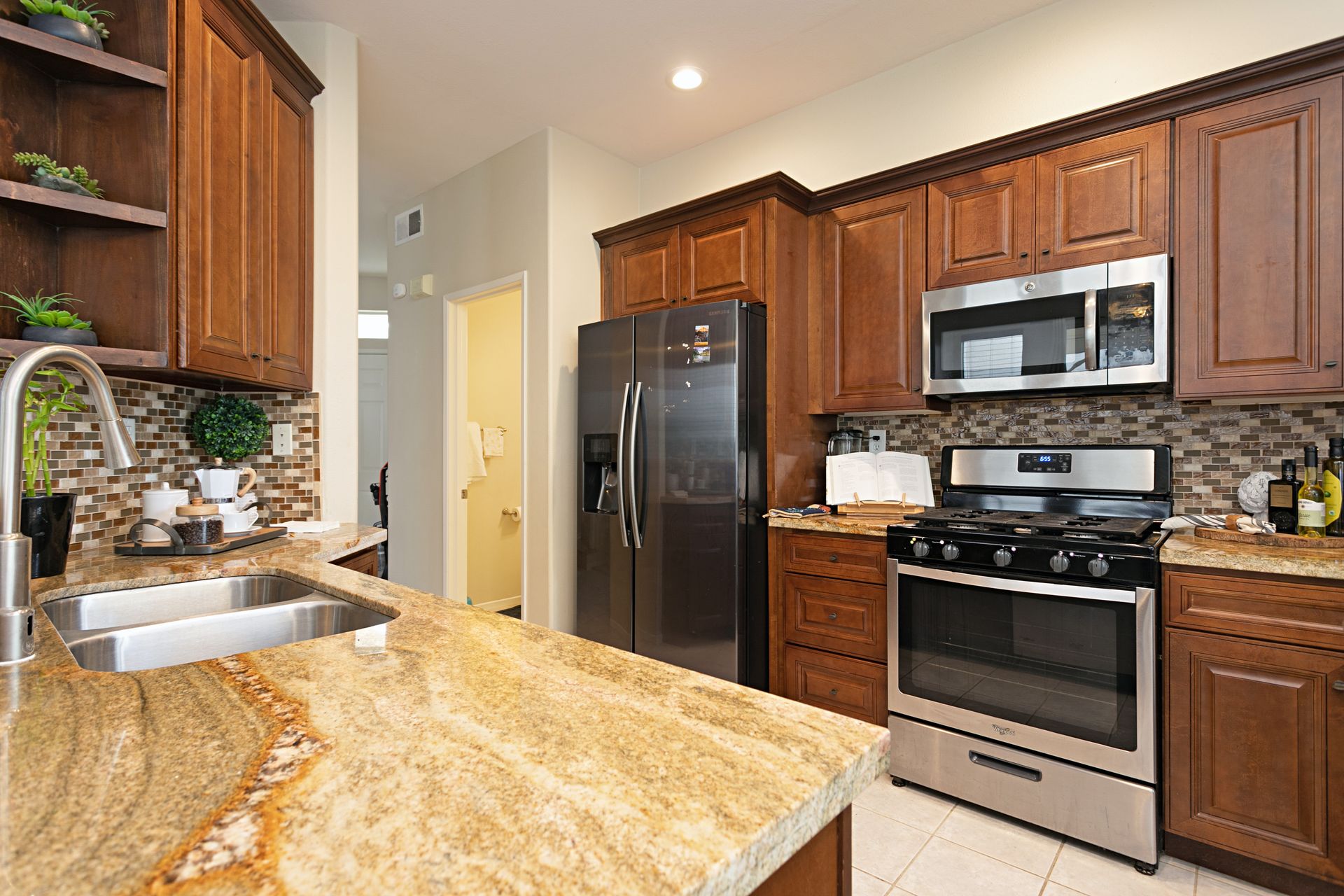 Welcome home to Heritage / Legends of Vista. This popular community is tucked away behind private gates right in the heart of Shadowridge close to just about everything North County has to offer. Parks, trails, shopping, eateries, schools, and more are all within walking distance or a very short drive of the community. The home is a 3-bedroom, 2.5 bath with 1,375 estimated sq.ft. of living space with an office alcove, breakfast nook and private patio right off the kitchen/dining room ideal for gathering and entertaining. Special features include a beautiful, updated kitchen with granite counter tops, plenty of storage, AC, fireplace in living room, spacious bedrooms, and 2 car garage. Interested parties are urged to move quickly! This is a super charming home in a great location, and it is priced to sell.