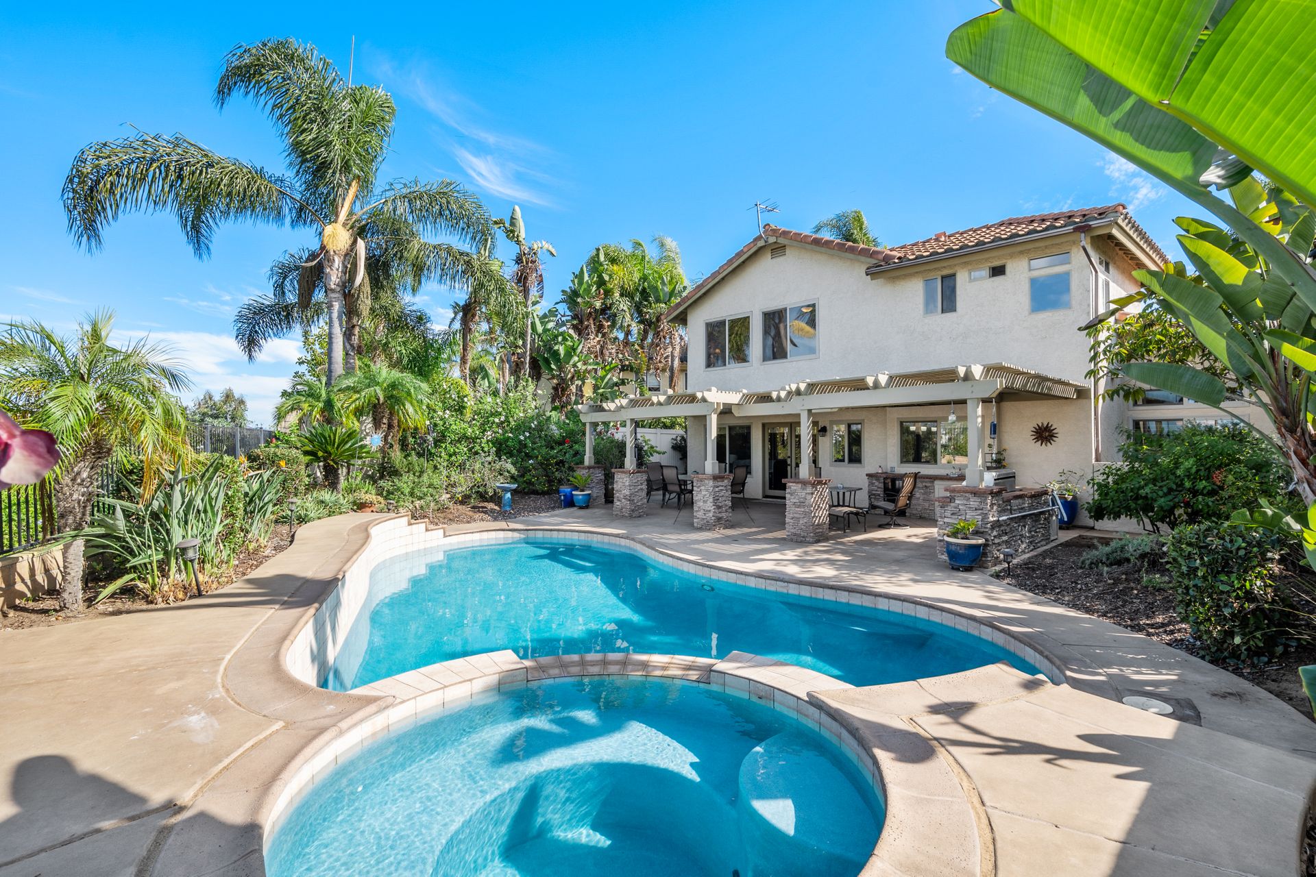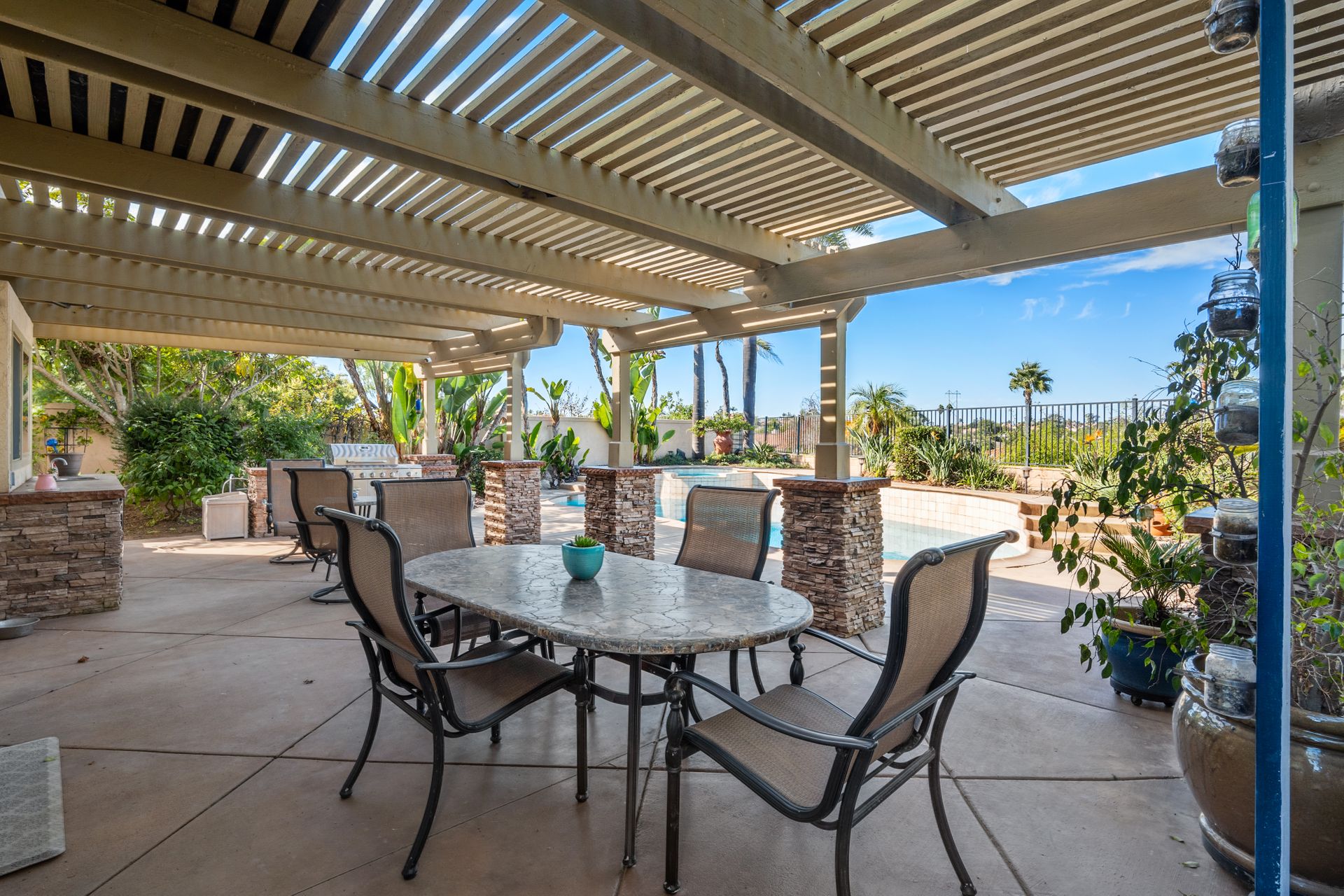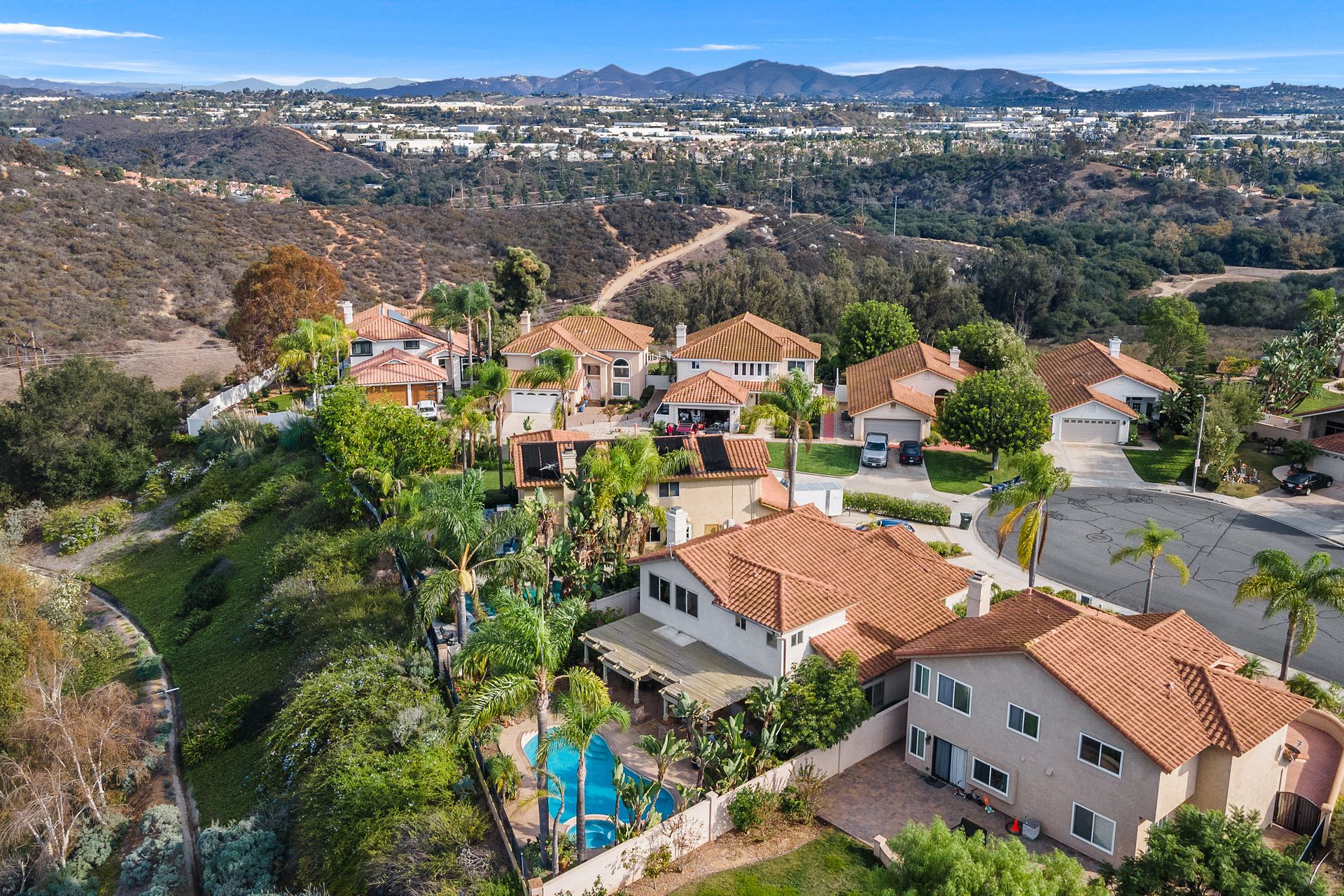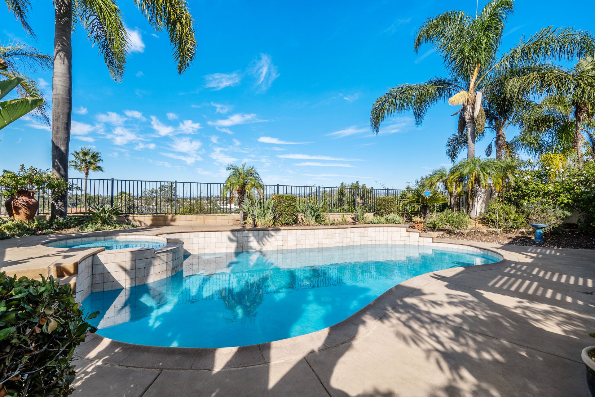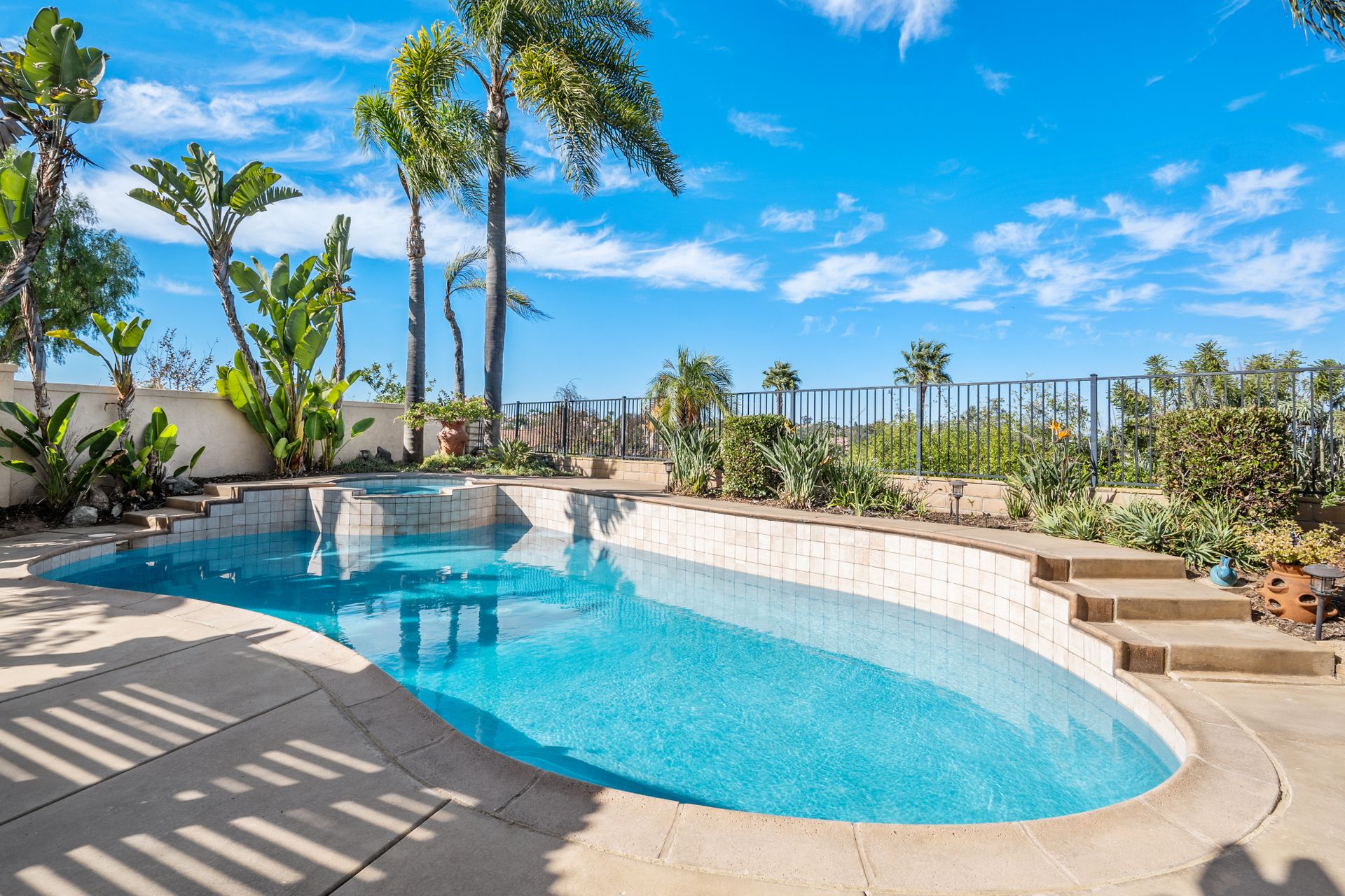 Enjoy expansive views from this cul-de-sac home featuring an inviting outdoor entertaining area with a pool! Enter this spacious home through a private gated courtyard. The impressive foyer opens to the formal living and dining rooms and a spiral staircase! The remodeled kitchen is stylish with painted cabinets, stainless steel appliances, a generous breakfast bar with pendant lights and it overlooks the generous family room! Kitchen counters are a stunning slab granite with a backsplash of glass tile. The focal point of the family room is the mosaic glass tile fireplace and tile mantle. One bedroom and full bath is located downstairs! Upstairs the primary suite enjoys the expansive views of the Shadowridge area and the foothills and mountains beyond! The spa-like bath area of the primary suite has been remodeled with upgraded cabinetry, dual vanities, a linen closet, large tub and a separate shower! The expanded walk-in closet and secondary closet provide lots of space for clothes storage! The secondary bedrooms upstairs share another remodeled bath! The home is thoughtfully appointed and upgraded with vinyl windows and tile floors downstairs and in the baths. There are hardwood floors on the stairs and in the bedrooms! Window coverings include plantation shutters and woven blinds. Fans and upgraded lighting can be found throughout! An entertainers dream back yard features a built-in ledger stone BBQ station and a buffet with a sink. The covered patio overlooks the large pool and the views beyond...there is no-one currently behind you except open space maintained by the HOA. Nearby is the Buena Vista Park with a pond, picnic areas and hiking trails, several restaurants, shopping and schools. The Shadowridge Golf course is also very convenient!