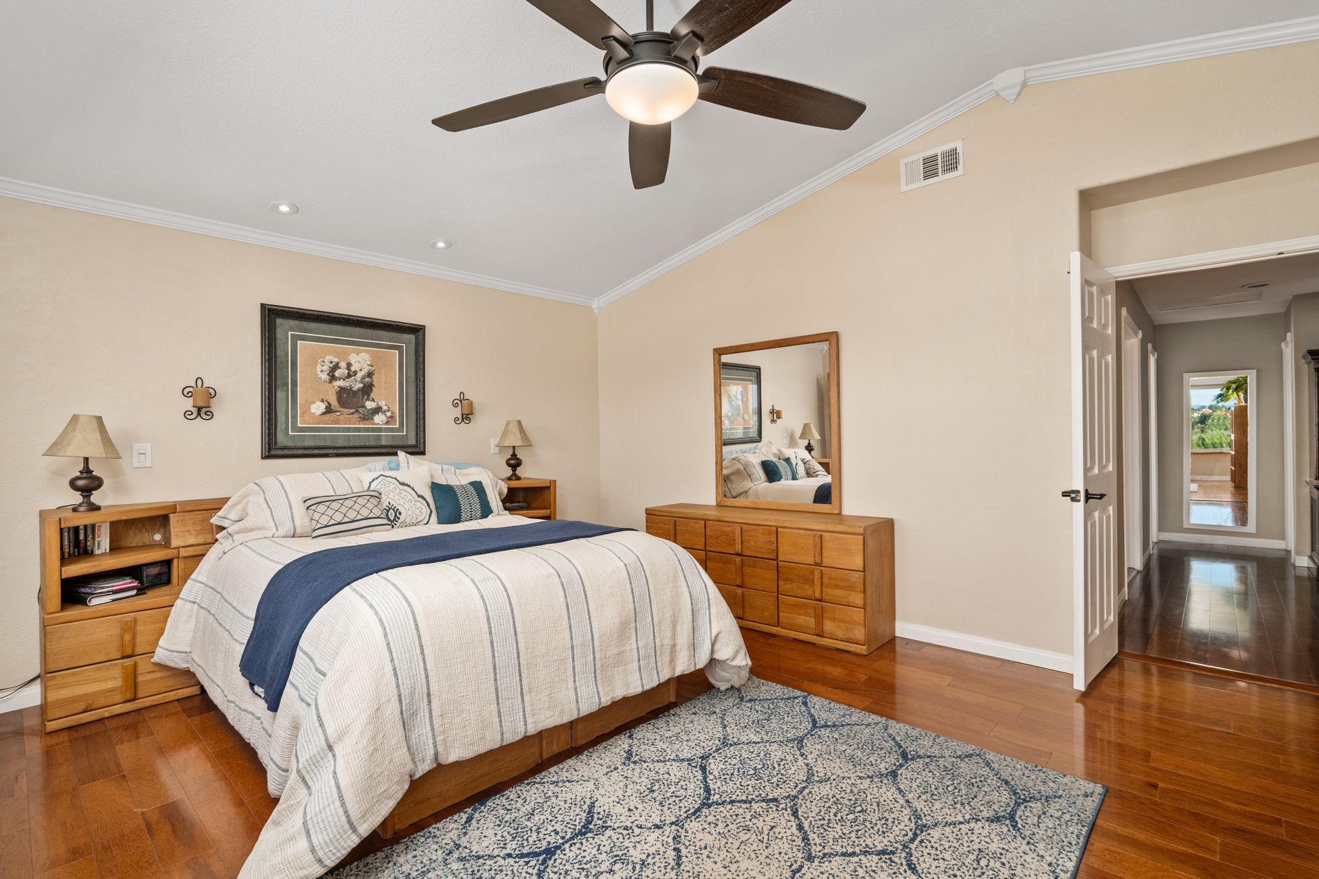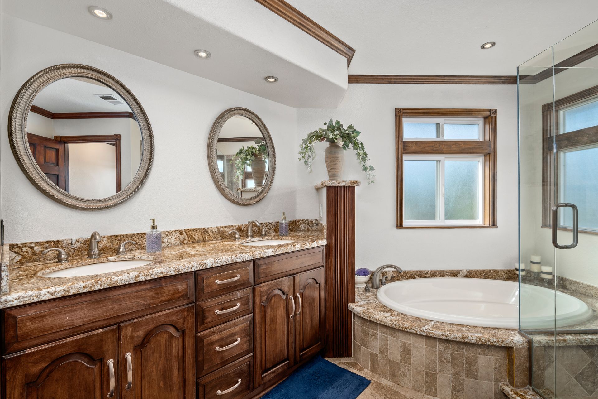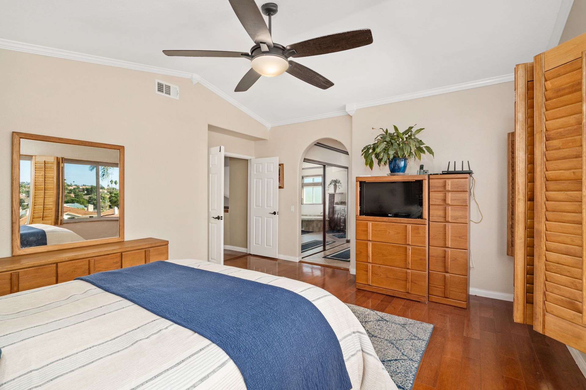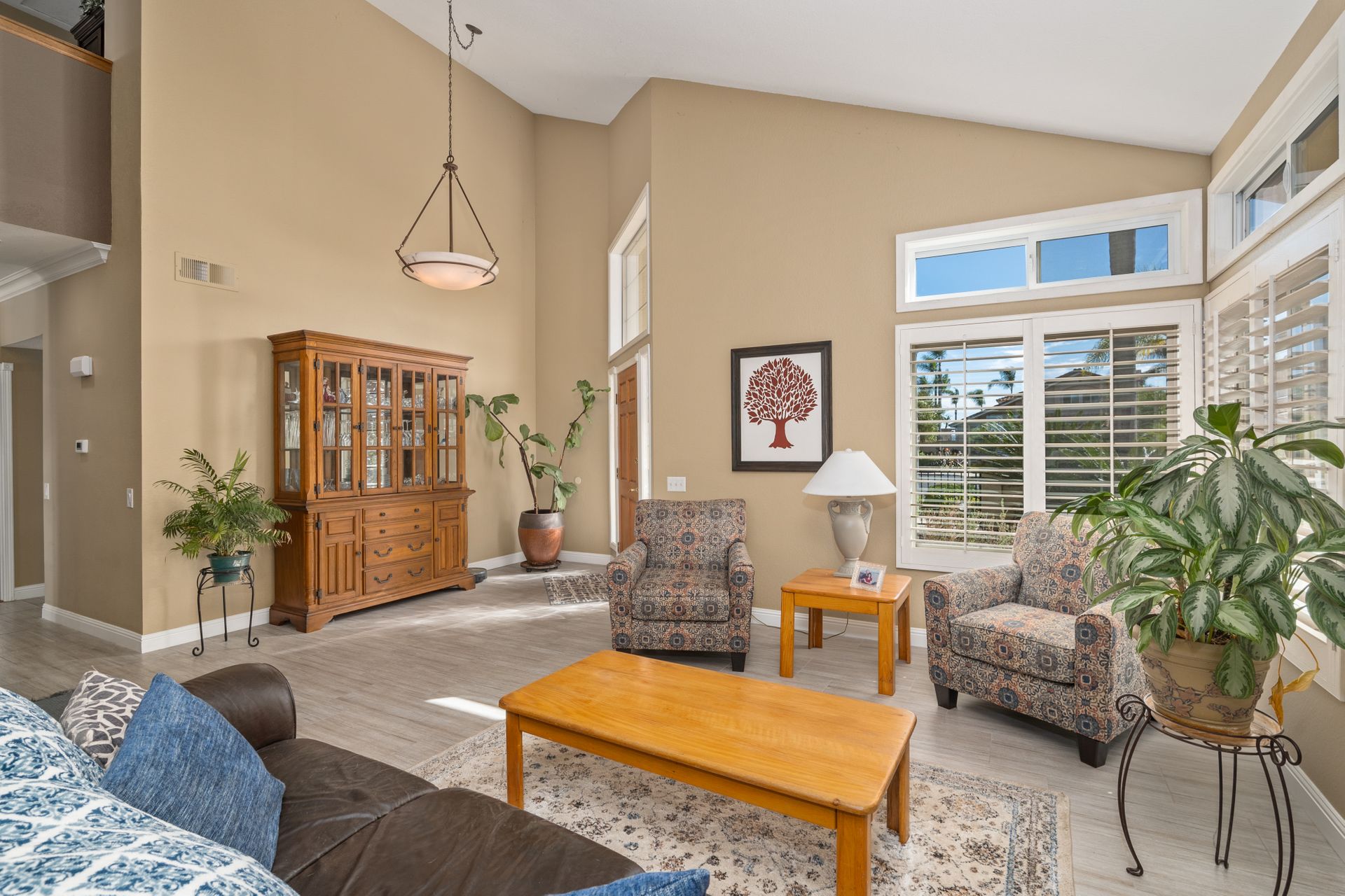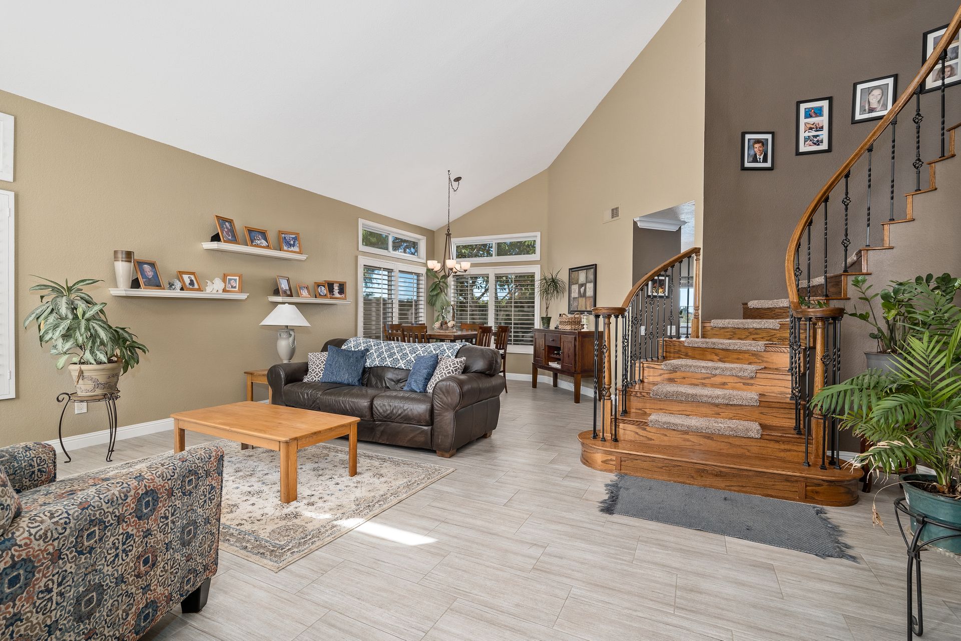 Enjoy expansive views from this cul-de-sac home featuring an inviting outdoor entertaining area with a pool! Enter this spacious home through a private gated courtyard. The impressive foyer opens to the formal living and dining rooms and a spiral staircase! The remodeled kitchen is stylish with painted cabinets, stainless steel appliances, a generous breakfast bar with pendant lights and it overlooks the generous family room! Kitchen counters are a stunning slab granite with a backsplash of glass tile. The focal point of the family room is the mosaic glass tile fireplace and tile mantle. One bedroom and full bath is located downstairs! Upstairs the primary suite enjoys the expansive views of the Shadowridge area and the foothills and mountains beyond! The spa-like bath area of the primary suite has been remodeled with upgraded cabinetry, dual vanities, a linen closet, large tub and a separate shower! The expanded walk-in closet and secondary closet provide lots of space for clothes storage! The secondary bedrooms upstairs share another remodeled bath! The home is thoughtfully appointed and upgraded with vinyl windows and tile floors downstairs and in the baths. There are hardwood floors on the stairs and in the bedrooms! Window coverings include plantation shutters and woven blinds. Fans and upgraded lighting can be found throughout! An entertainers dream back yard features a built-in ledger stone BBQ station and a buffet with a sink. The covered patio overlooks the large pool and the views beyond...there is no-one currently behind you except open space maintained by the HOA. Nearby is the Buena Vista Park with a pond, picnic areas and hiking trails, several restaurants, shopping and schools. The Shadowridge Golf course is also very convenient!