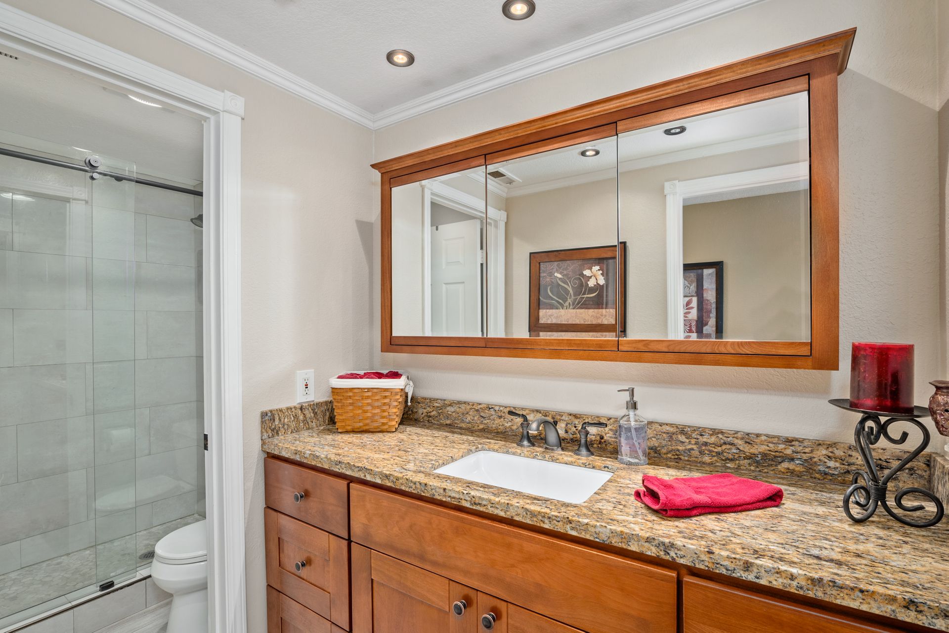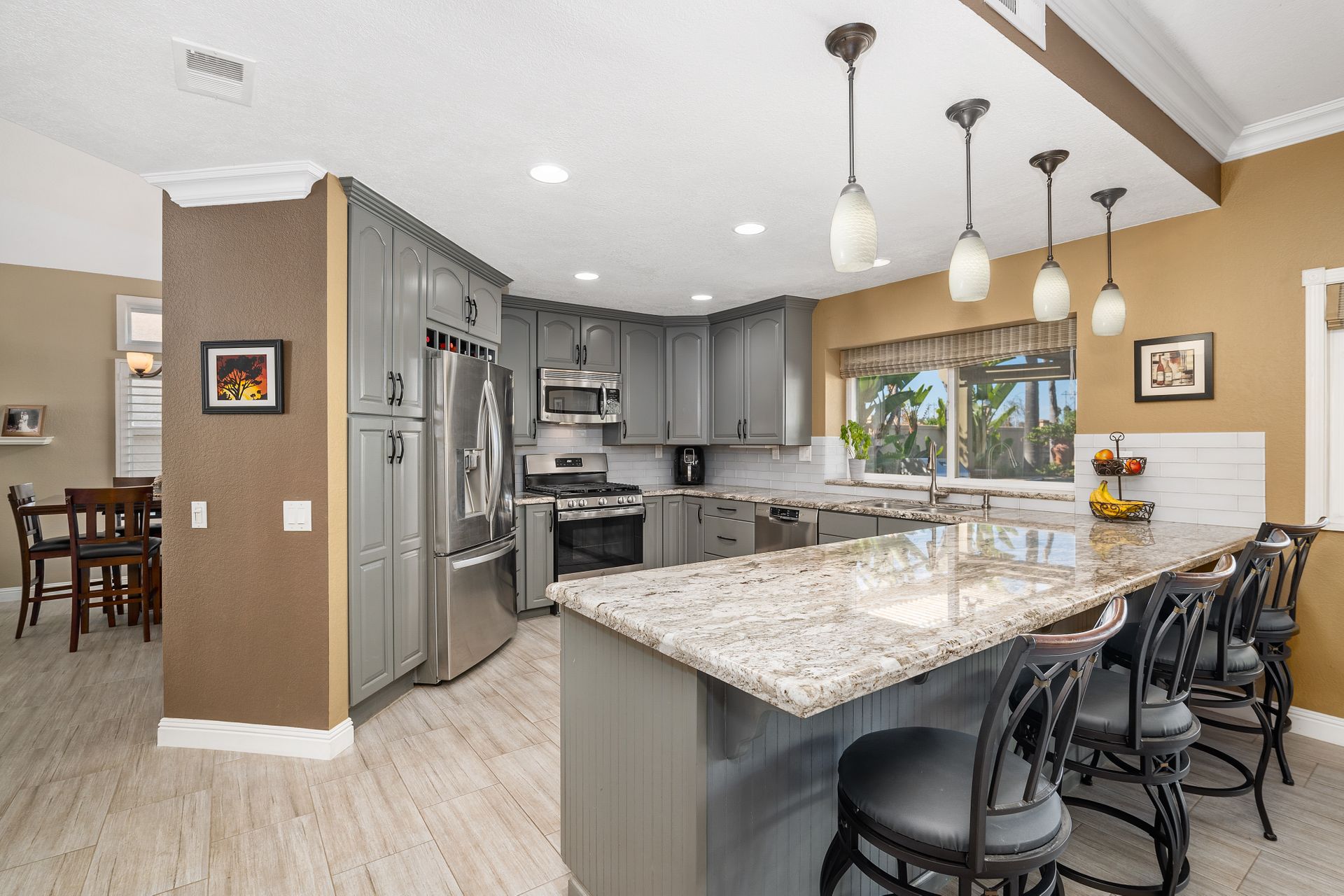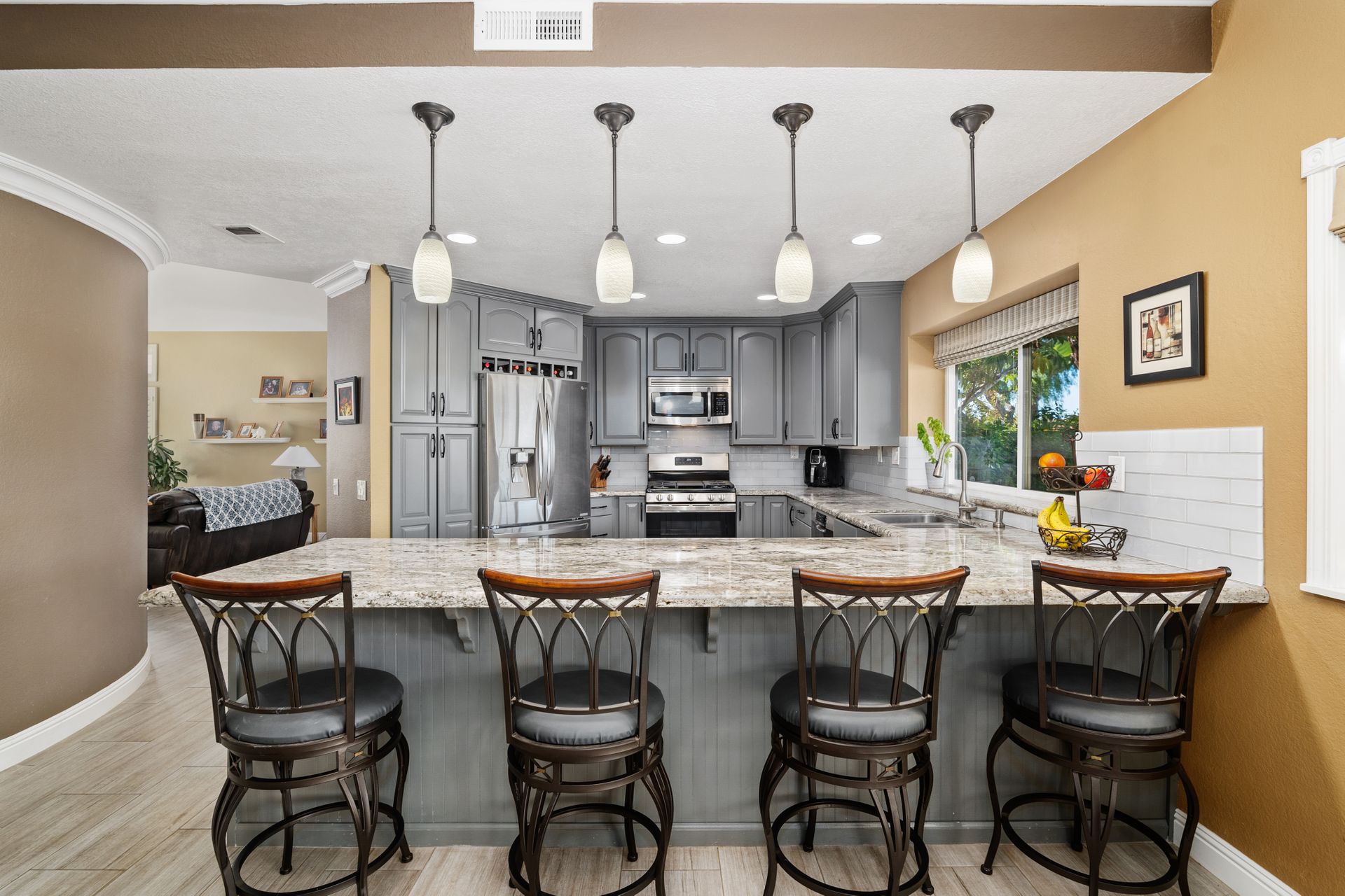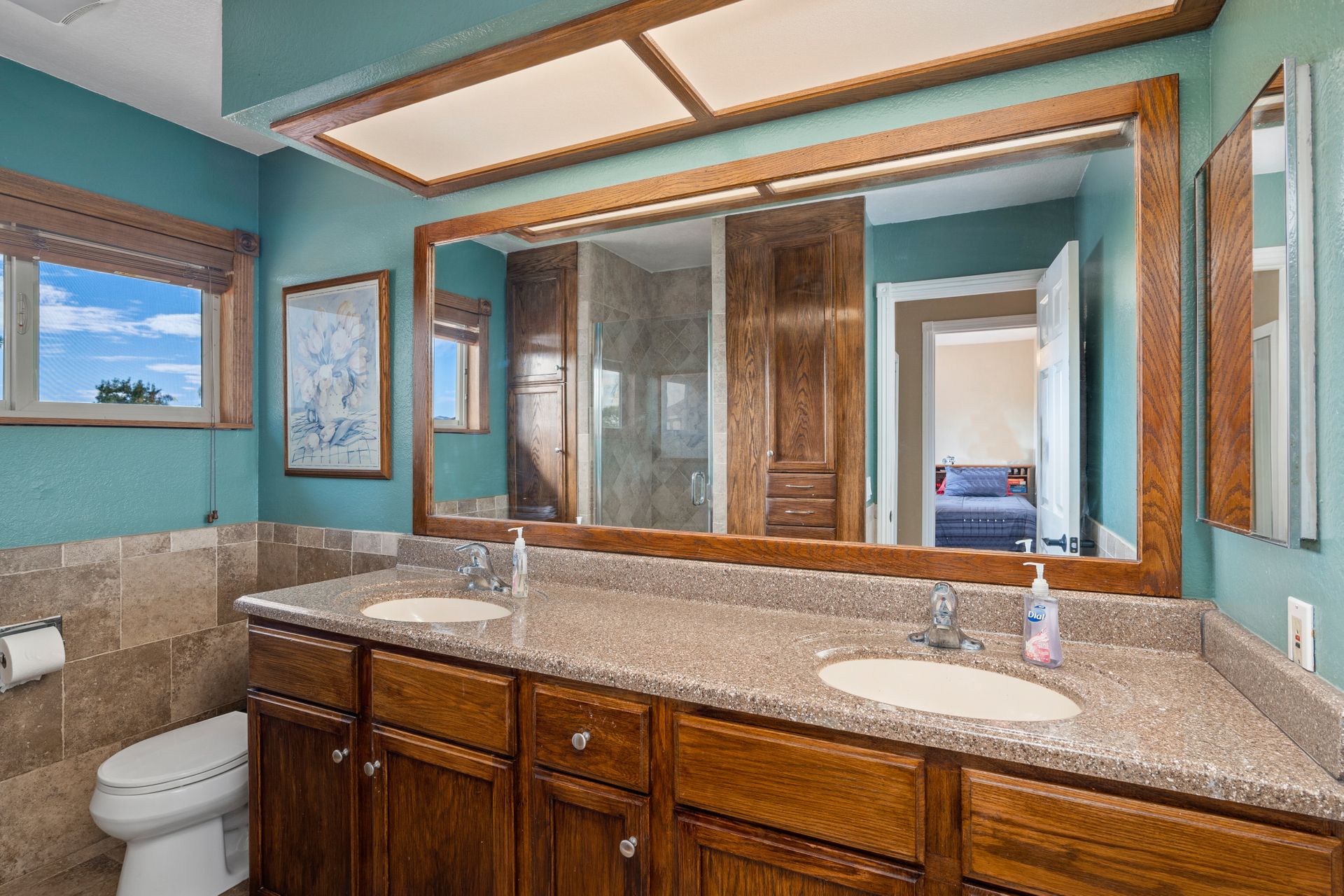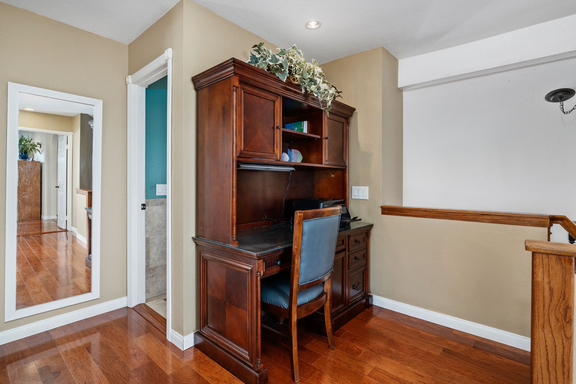 Enjoy expansive views from this cul-de-sac home featuring an inviting outdoor entertaining area with a pool! Enter this spacious home through a private gated courtyard. The impressive foyer opens to the formal living and dining rooms and a spiral staircase! The remodeled kitchen is stylish with painted cabinets, stainless steel appliances, a generous breakfast bar with pendant lights and it overlooks the generous family room! Kitchen counters are a stunning slab granite with a backsplash of glass tile. The focal point of the family room is the mosaic glass tile fireplace and tile mantle. One bedroom and full bath is located downstairs! Upstairs the primary suite enjoys the expansive views of the Shadowridge area and the foothills and mountains beyond! The spa-like bath area of the primary suite has been remodeled with upgraded cabinetry, dual vanities, a linen closet, large tub and a separate shower! The expanded walk-in closet and secondary closet provide lots of space for clothes storage! The secondary bedrooms upstairs share another remodeled bath! The home is thoughtfully appointed and upgraded with vinyl windows and tile floors downstairs and in the baths. There are hardwood floors on the stairs and in the bedrooms! Window coverings include plantation shutters and woven blinds. Fans and upgraded lighting can be found throughout! An entertainers dream back yard features a built-in ledger stone BBQ station and a buffet with a sink. The covered patio overlooks the large pool and the views beyond...there is no-one currently behind you except open space maintained by the HOA. Nearby is the Buena Vista Park with a pond, picnic areas and hiking trails, several restaurants, shopping and schools. The Shadowridge Golf course is also very convenient!