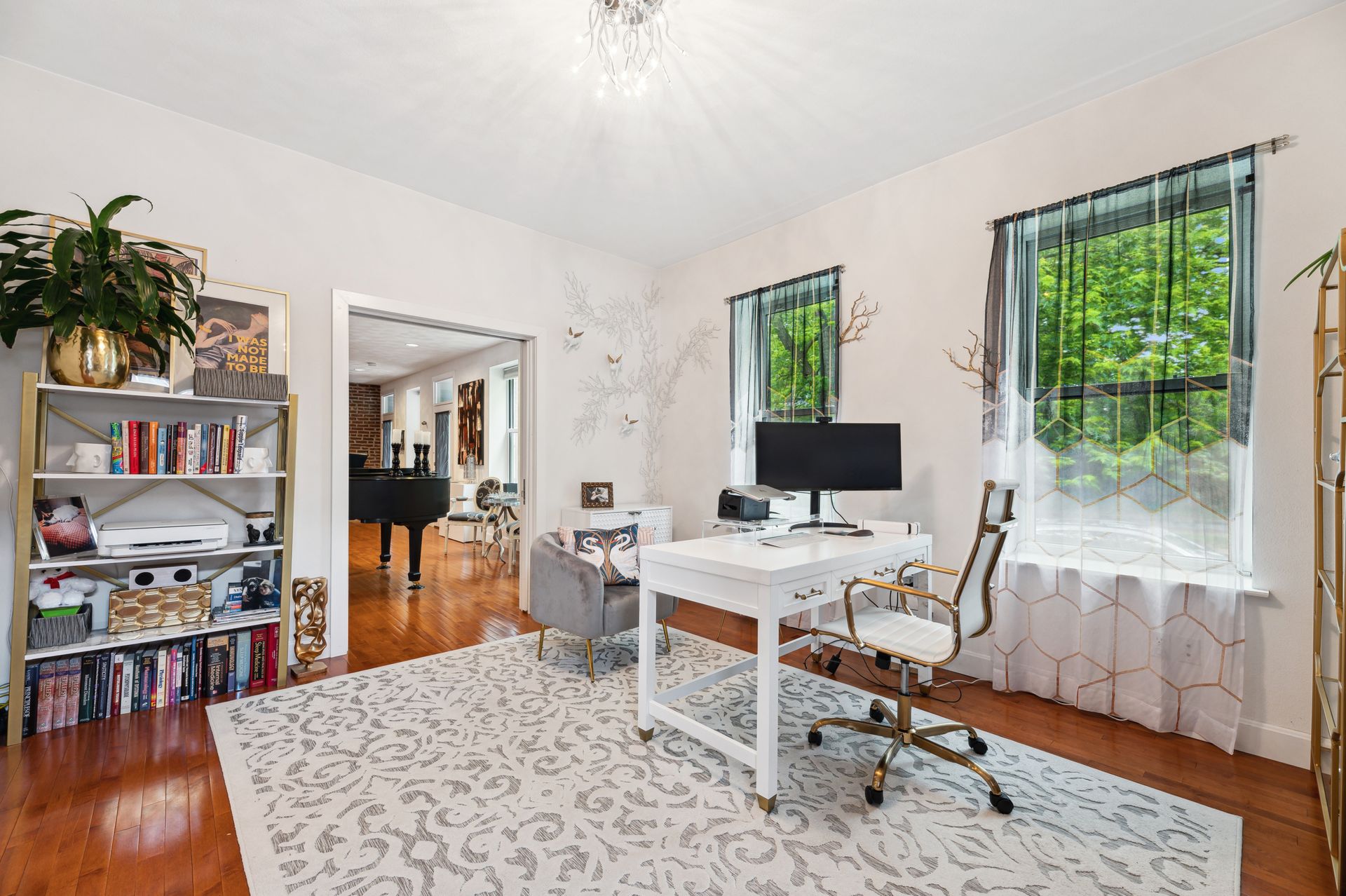 Nestled in St. Louis' premier Compton Heights neighborhood, this four-bedroom townhouse seamlessly combines Old-World Charm with modern luxury in its total living area of 4,040 square feet on three levels. The primary suite, a standout at 29’x14’, features a gas fireplace, private deck, walk-in closet, and lavish bath. The granite kitchen is equipped with a gas cooktop, double oven, cherry cabinets, and stainless appliances. Recent upgrades include an energy-efficient TPO* roof, two A/C compressors, and a new furnace in 2022. Cinnamon maple wood floors and three fireplaces add warmth, while central vacuum, security system, and glass block windows enhance convenience. The lower level boasts a 25’x25’ rec room, full bath with a steam shower, and ample storage. A two-car tandem garage with a motorized gate completes the package. Situated on a tranquil end street, this home offers easy access to the area, inviting you to embrace a lifestyle where historical charm meets modern comfort.