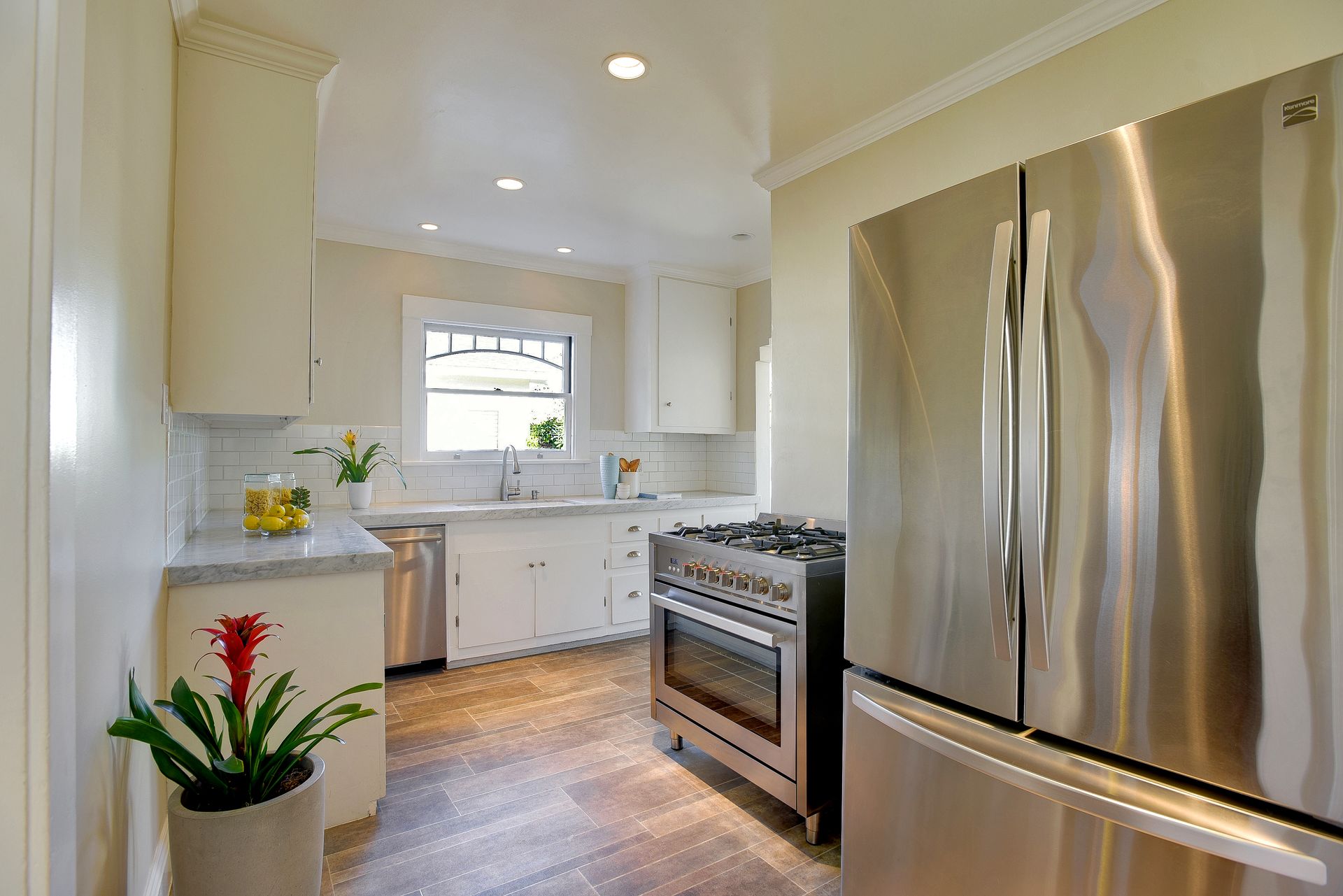 LOCATION, LOCATION, LOCATION...this stunning, meticulously maintained 2bd/1ba home sits on a quaint tree-lined street with fantastic curb appeal, while nearby amenities-galore. Step inside from the covered porch to exquisite period details including archways, wood burning fireplace, and restored wooden windows while enjoying modern conveniences. The terrific floor plan includes a light-filled living room and formal dining room for entertaining. A nicely appointed kitchen with stainless steel appliances and an eat-in breakfast nook is adjacent to a spacious laundry room. Stepping outside to the beautifully landscaped backyard oasis, you will instantly feel Zen listening to your water fountain and relaxing amongst the many flowering plants and trees. Enjoy a glass of lemonade underneath the pergola on your flagstone patio, while eating a tangerine from one of your mature fruit trees.