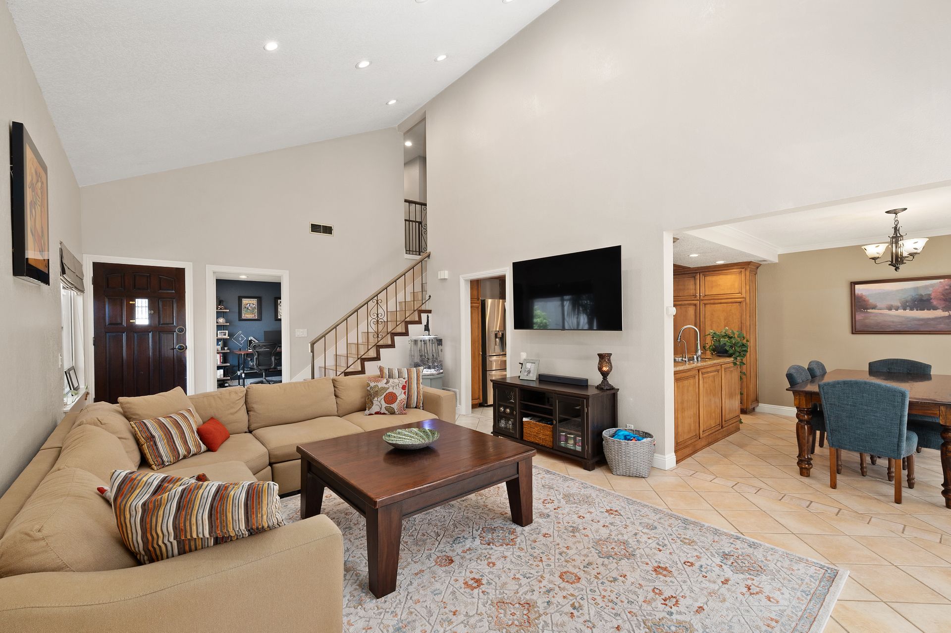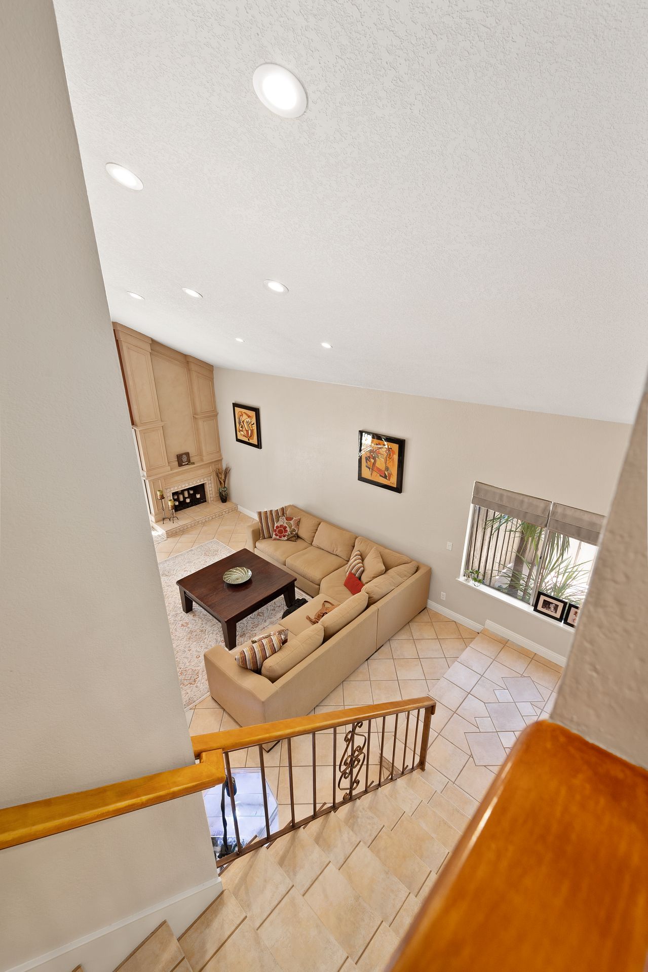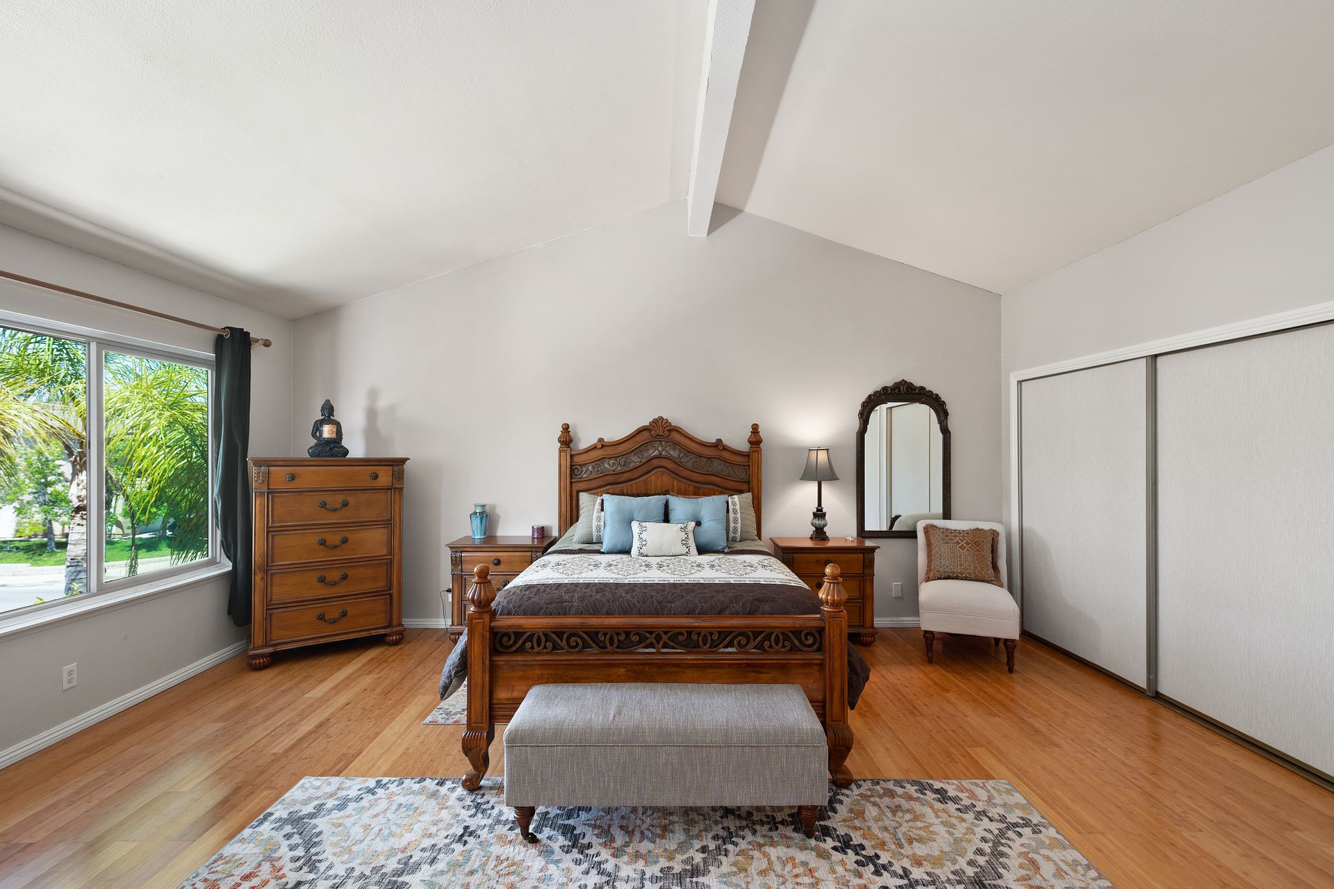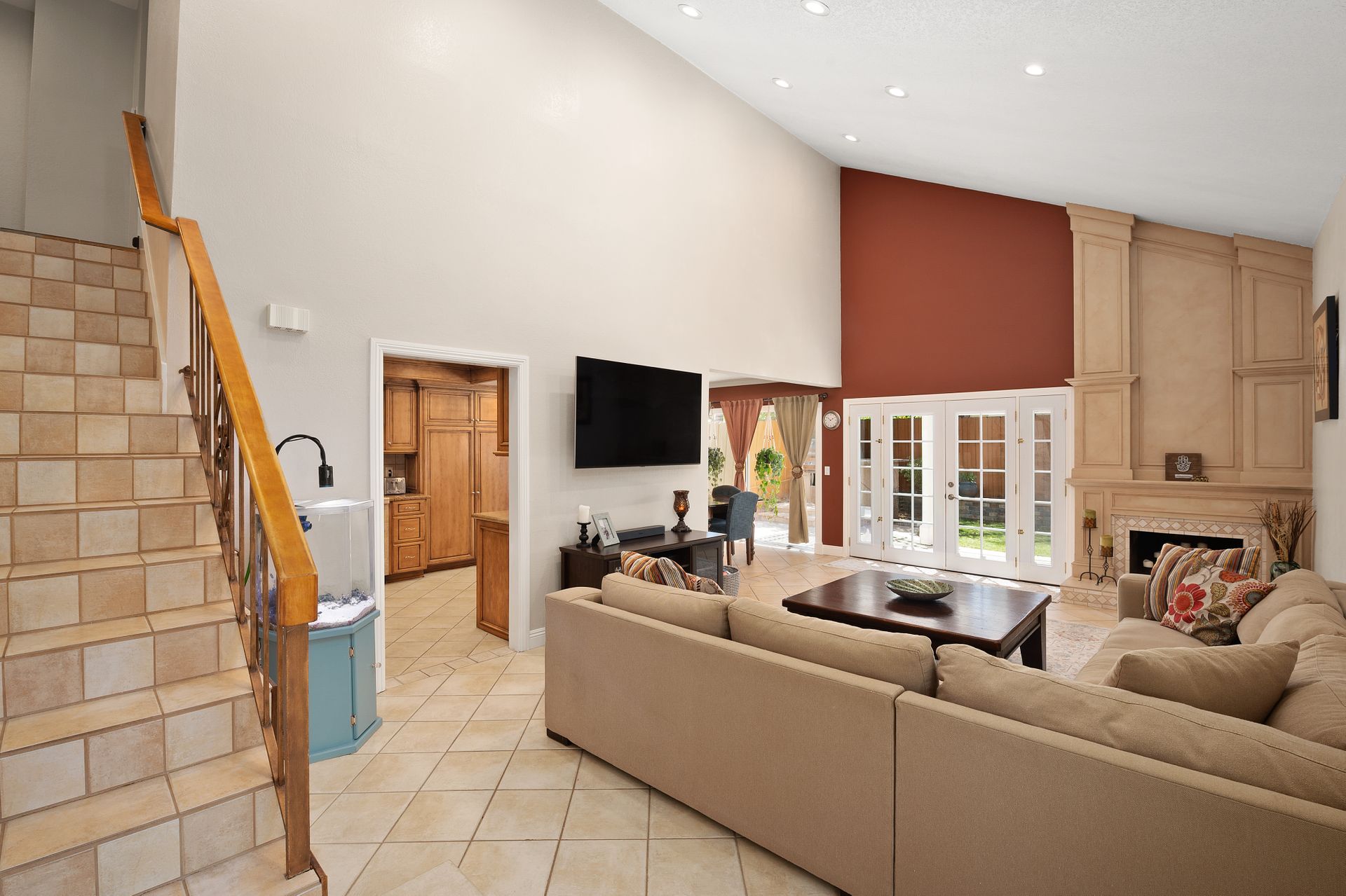 Fantastic Kelly Park Community 4 bedroom, 3 bathroom home! Largest floor plan in the tract with almost 2,000 SF! Pass through the peaceful entry with fresh landscaping, river rocks, and lighting into this spacious home! High vaulted ceilings welcome you into the great room featuring clean tiled flooring, LED recessed lighting, floor to ceiling fireplace and views of the yard through beautiful French doors. Custom kitchen with granite countertops, designer tile backsplash, recessed lighting, pantry and stainless steel appliances including a gas range, Kitchen Aid dishwasher and top of the line LG refrigerator. The light and bright kitchen opens to the dining area which has crown molding, a stylish chandelier and glass sliders to the yard! Downstairs there is a large bedroom with two closets, separate vanity sinks and a private tiled shower. Once upstairs you will find 3 more bedrooms! The expansive primary bedroom has high vaulted ceilings, bamboo flooring, multiple closets and an ensuite bathroom with updated oil rubbed bronze light fixture, pulls and faucet! The two other bedrooms are a good size and have recessed lighting, one has vaulted ceilings and views of the yard! Parts of the home have been repainted recently, including the updated bathroom and hallway upstairs! Lovely yard for relaxing or entertaining with a built in BBQ and bar for seating, redwood privacy alcove with fire pit, grassy area and shade from the neighboring palm trees. The community has a gated pool & spa, playground and sports court! Close to restaurants, shopping, hiking trails and the 101 and 23 freeways!