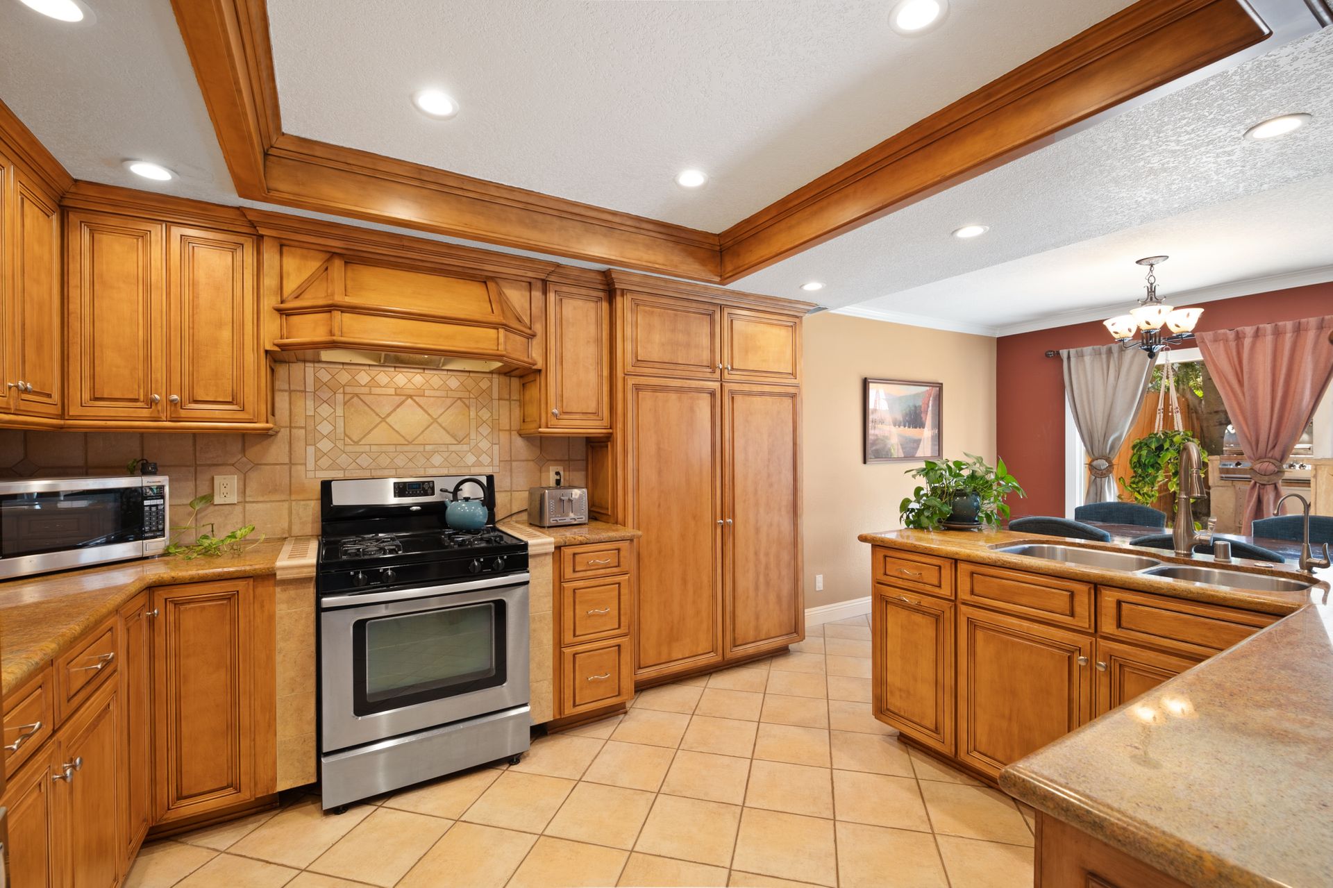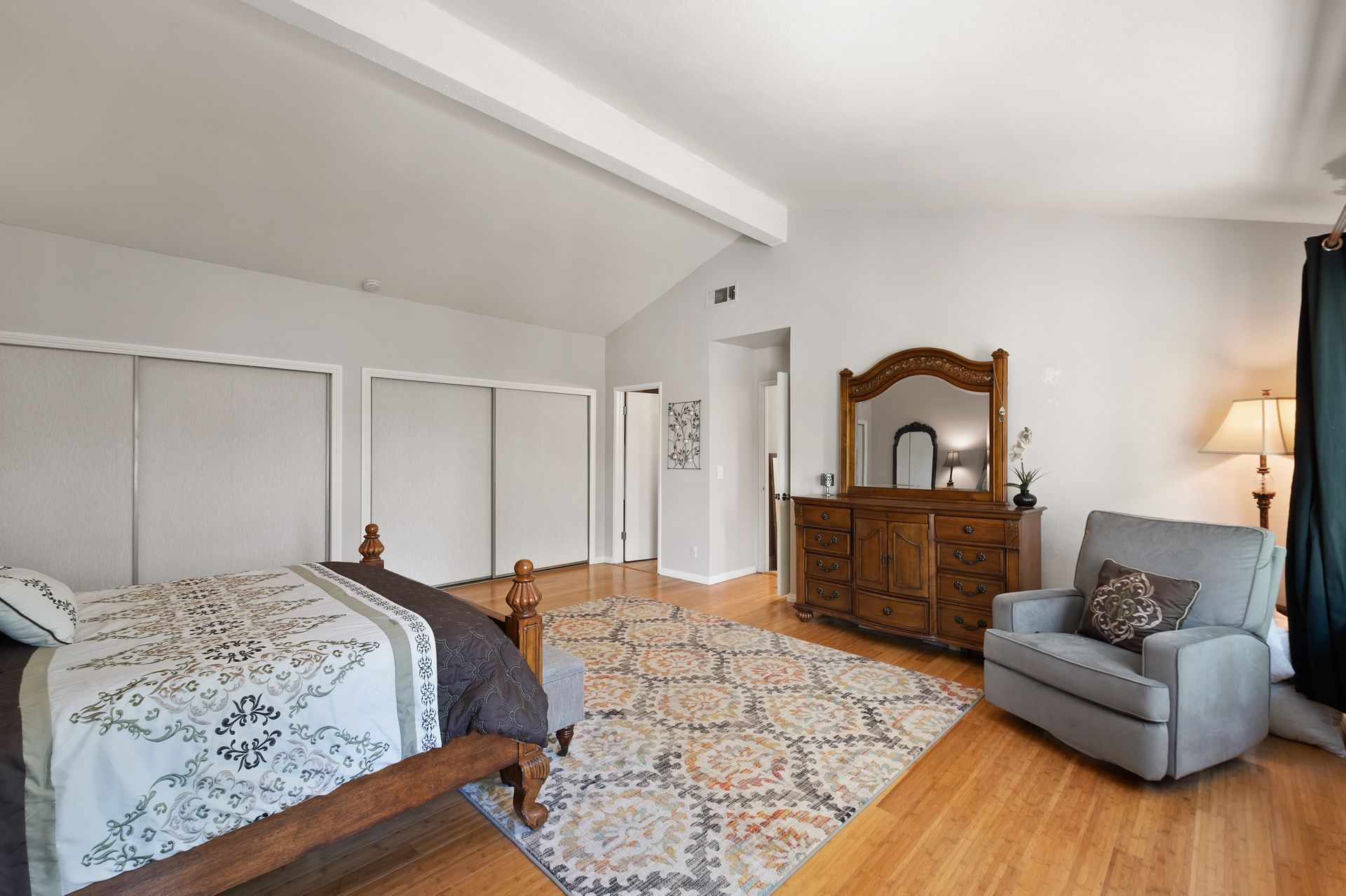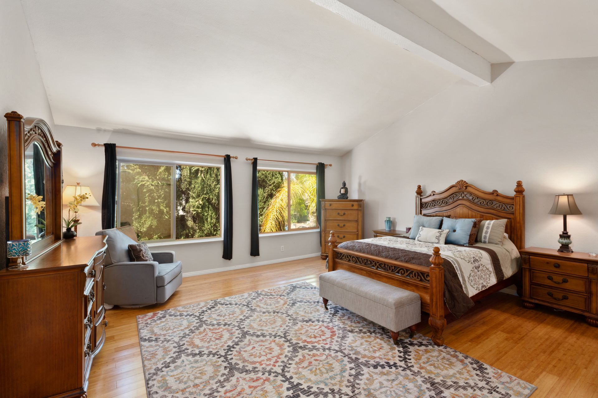 Fantastic Kelly Park Community 4 bedroom, 3 bathroom home! Largest floor plan in the tract with almost 2,000 SF! Pass through the peaceful entry with fresh landscaping, river rocks, and lighting into this spacious home! High vaulted ceilings welcome you into the great room featuring clean tiled flooring, LED recessed lighting, floor to ceiling fireplace and views of the yard through beautiful French doors. Custom kitchen with granite countertops, designer tile backsplash, recessed lighting, pantry and stainless steel appliances including a gas range, Kitchen Aid dishwasher and top of the line LG refrigerator. The light and bright kitchen opens to the dining area which has crown molding, a stylish chandelier and glass sliders to the yard! Downstairs there is a large bedroom with two closets, separate vanity sinks and a private tiled shower. Once upstairs you will find 3 more bedrooms! The expansive primary bedroom has high vaulted ceilings, bamboo flooring, multiple closets and an ensuite bathroom with updated oil rubbed bronze light fixture, pulls and faucet! The two other bedrooms are a good size and have recessed lighting, one has vaulted ceilings and views of the yard! Parts of the home have been repainted recently, including the updated bathroom and hallway upstairs! Lovely yard for relaxing or entertaining with a built in BBQ and bar for seating, redwood privacy alcove with fire pit, grassy area and shade from the neighboring palm trees. The community has a gated pool & spa, playground and sports court! Close to restaurants, shopping, hiking trails and the 101 and 23 freeways!