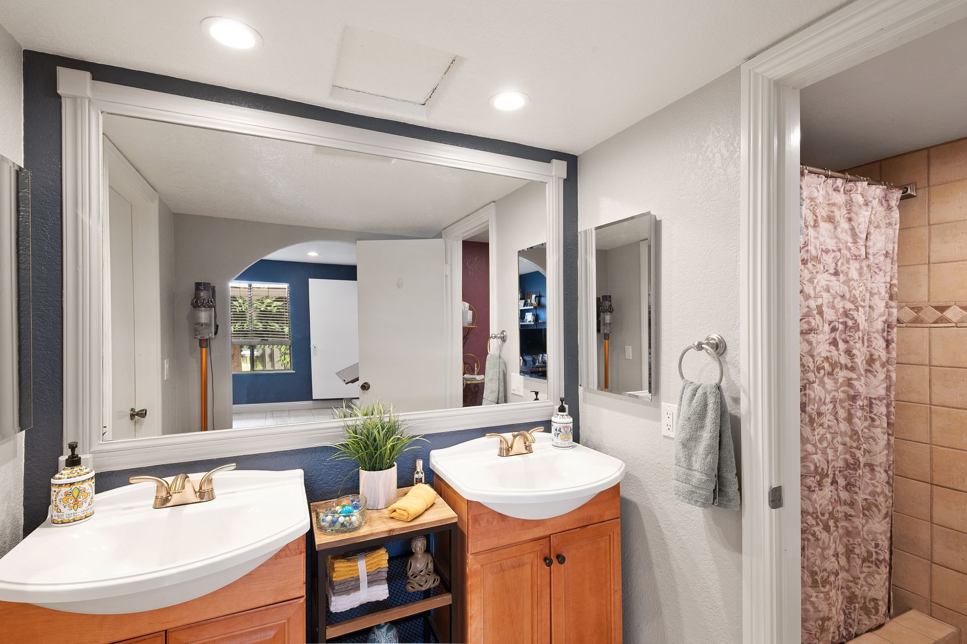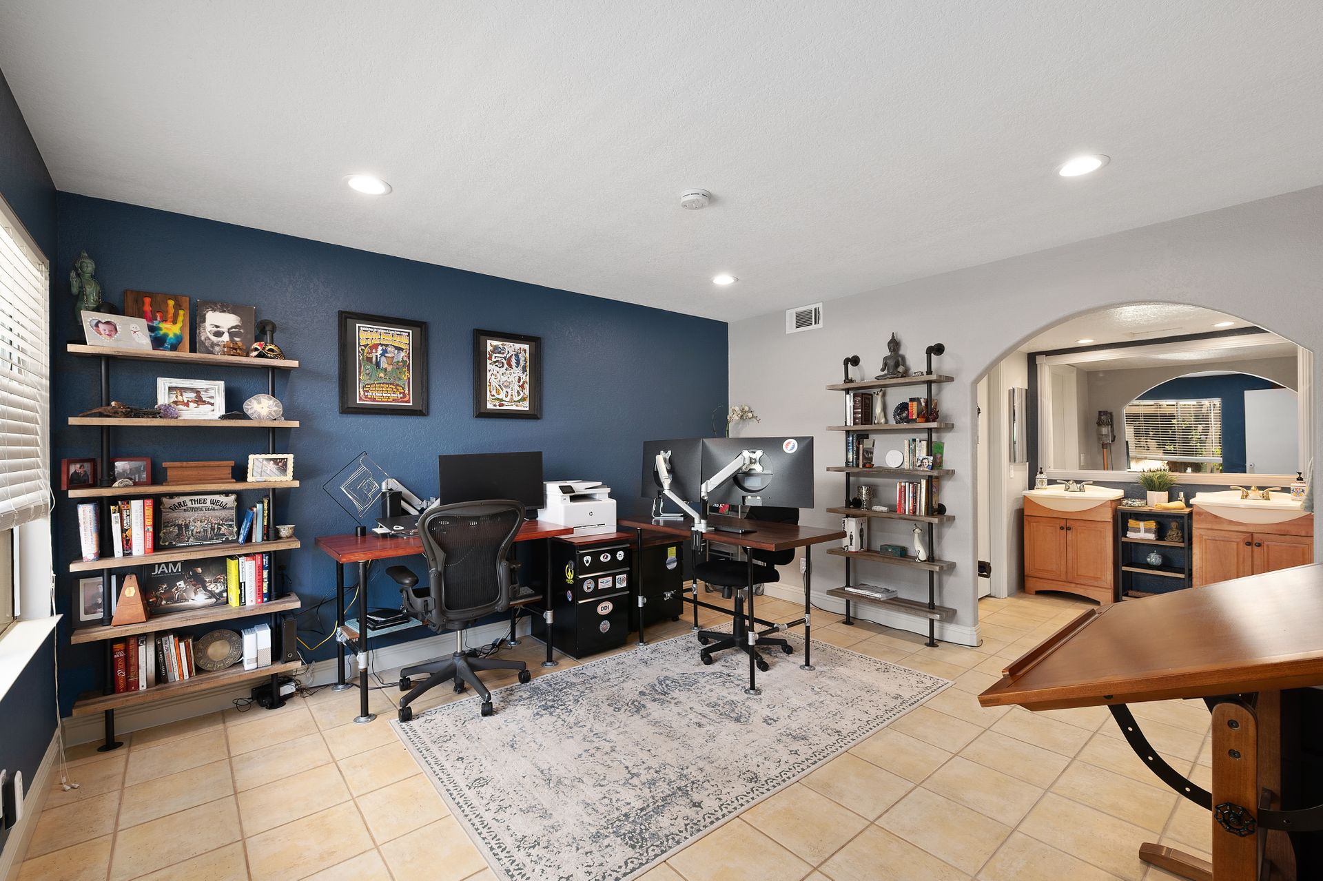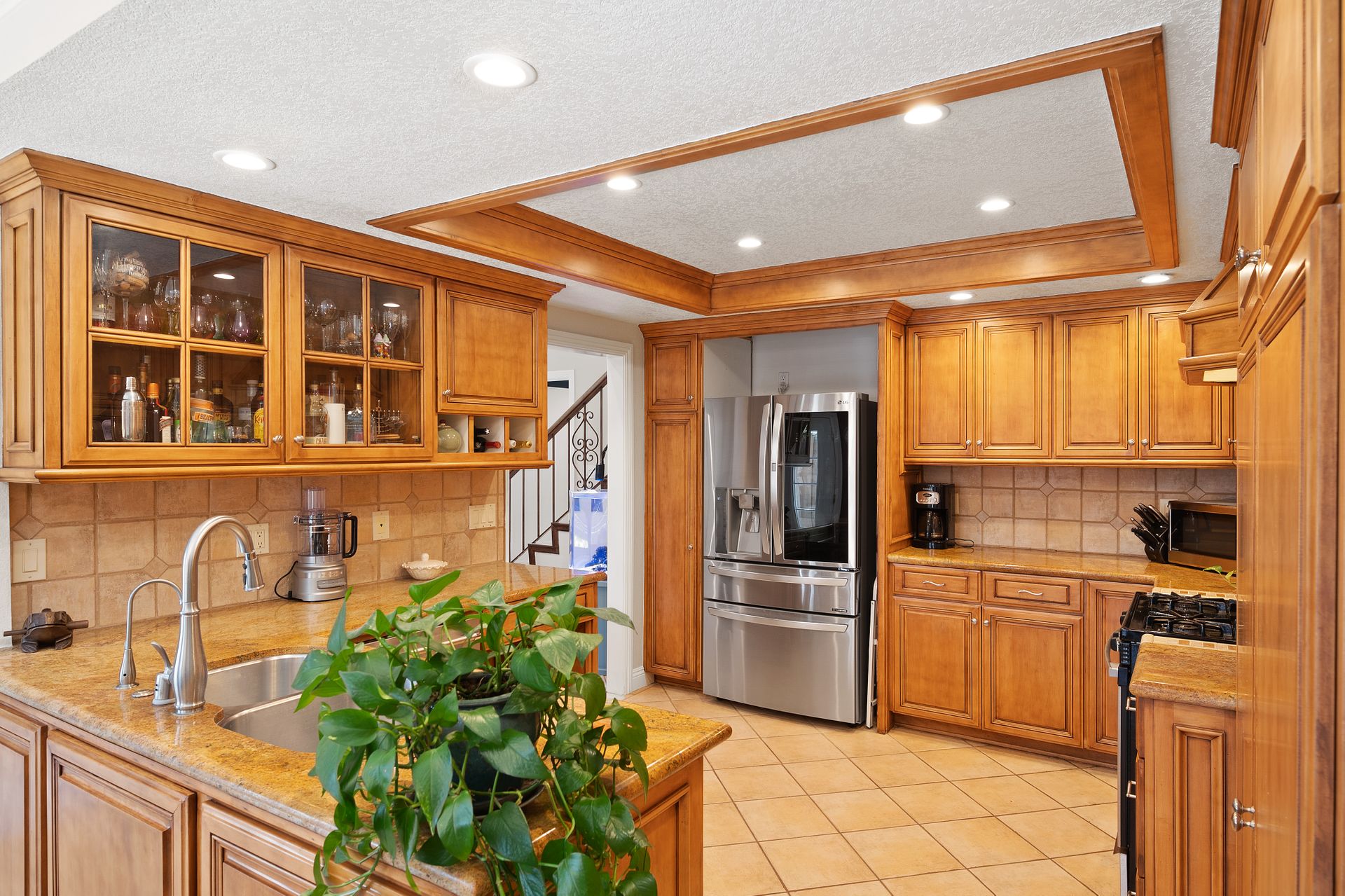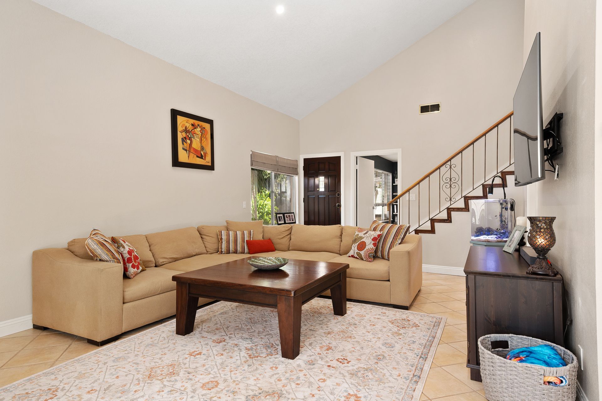 Fantastic Kelly Park Community 4 bedroom, 3 bathroom home! Largest floor plan in the tract with almost 2,000 SF! Pass through the peaceful entry with fresh landscaping, river rocks, and lighting into this spacious home! High vaulted ceilings welcome you into the great room featuring clean tiled flooring, LED recessed lighting, floor to ceiling fireplace and views of the yard through beautiful French doors. Custom kitchen with granite countertops, designer tile backsplash, recessed lighting, pantry and stainless steel appliances including a gas range, Kitchen Aid dishwasher and top of the line LG refrigerator. The light and bright kitchen opens to the dining area which has crown molding, a stylish chandelier and glass sliders to the yard! Downstairs there is a large bedroom with two closets, separate vanity sinks and a private tiled shower. Once upstairs you will find 3 more bedrooms! The expansive primary bedroom has high vaulted ceilings, bamboo flooring, multiple closets and an ensuite bathroom with updated oil rubbed bronze light fixture, pulls and faucet! The two other bedrooms are a good size and have recessed lighting, one has vaulted ceilings and views of the yard! Parts of the home have been repainted recently, including the updated bathroom and hallway upstairs! Lovely yard for relaxing or entertaining with a built in BBQ and bar for seating, redwood privacy alcove with fire pit, grassy area and shade from the neighboring palm trees. The community has a gated pool & spa, playground and sports court! Close to restaurants, shopping, hiking trails and the 101 and 23 freeways!