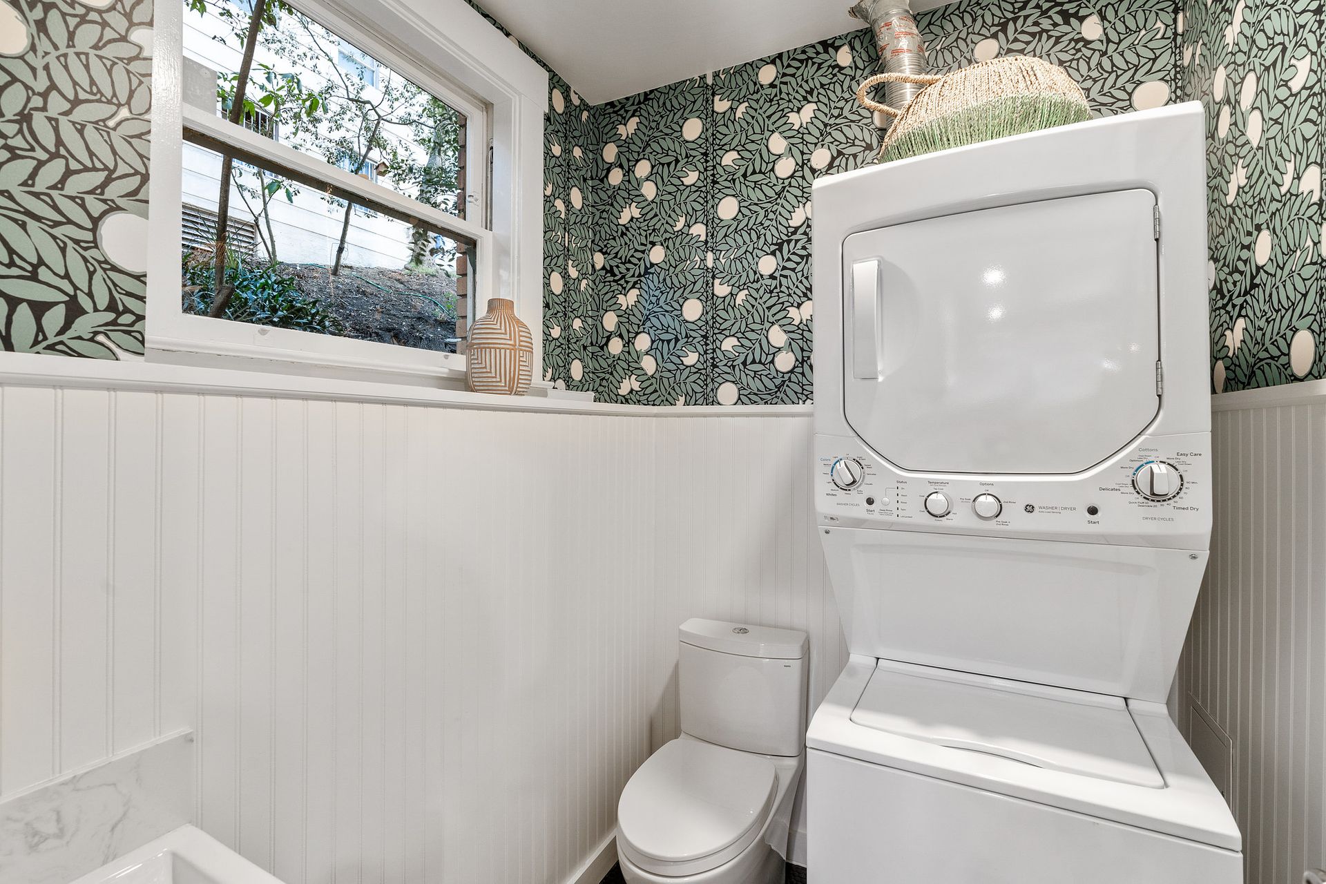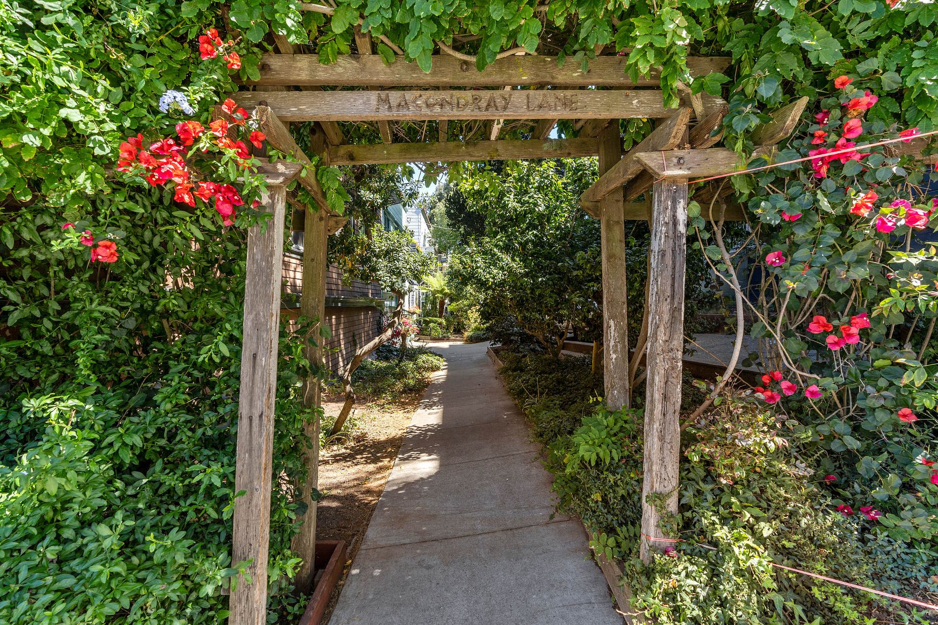 Sophisticated Russian Hill flat, newly remodeled with chic urban vibe. With windows on three sides for great light and verdant outlooks, this beautifully designed ground floor flat boasts a fabulous open floor plan with chef’s kitchen with custom mobile island, 9 ft ceilings, hardwood floors, living room with custom built ins, stylish powder room with custom wallpaper and in-unit laundry. Two large sunny rear bedrooms and a third flex room off the hallway, perfect for a home office, guest room, gaming room, or third bedroom, complete the home. Enjoy green outlooks of Macondray Lane from the kitchen, great morning sun in the front living space, and afternoon sun in the two rear bedrooms. Shared roof deck w/incredible views, huge deeded storage below.