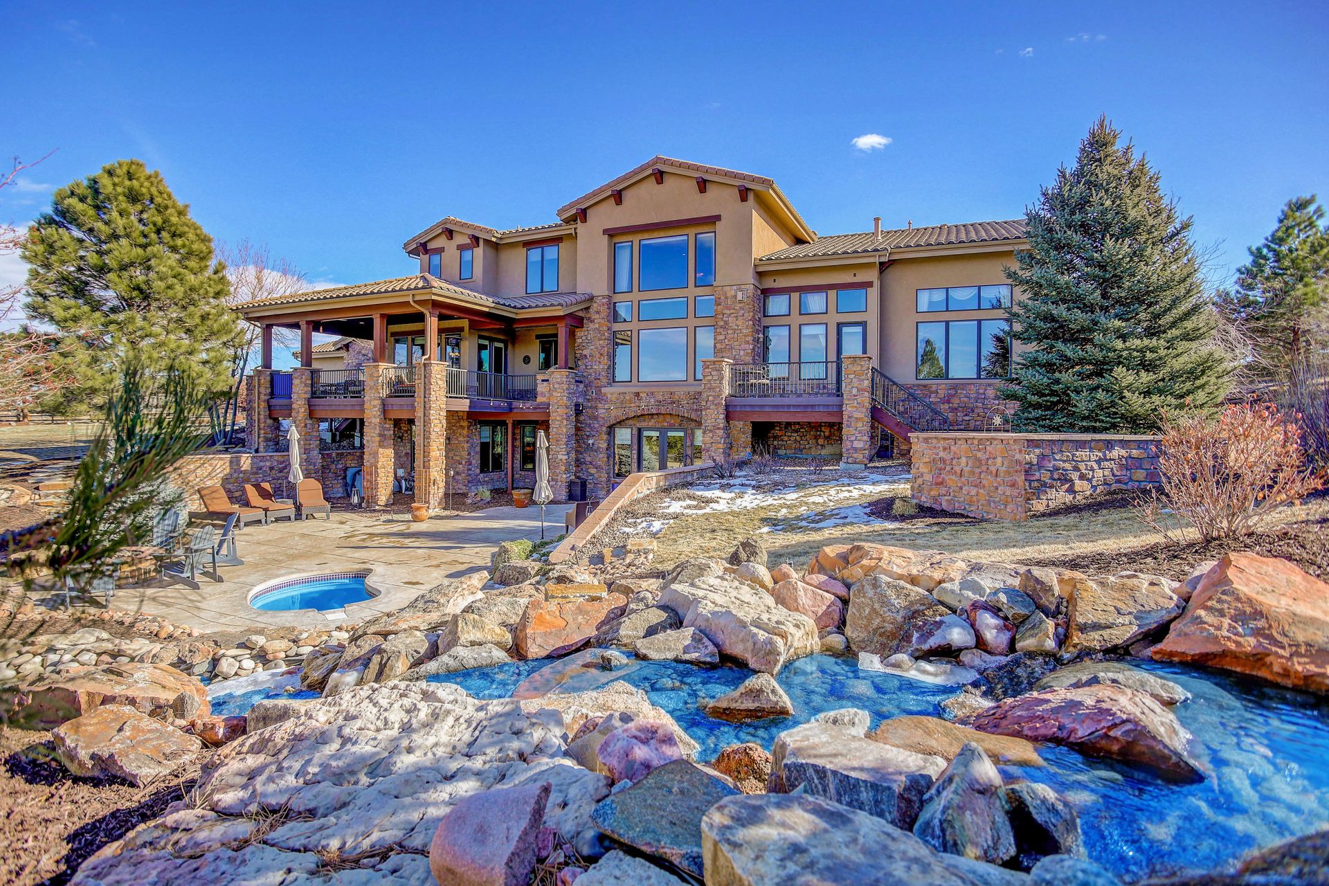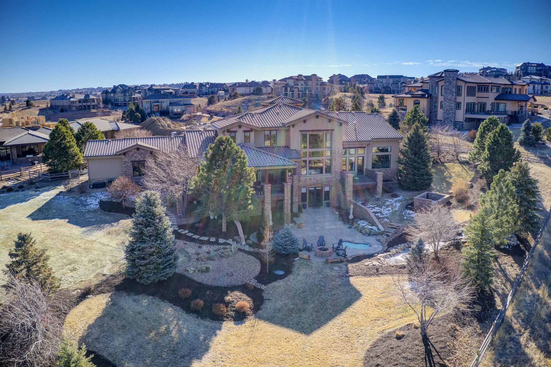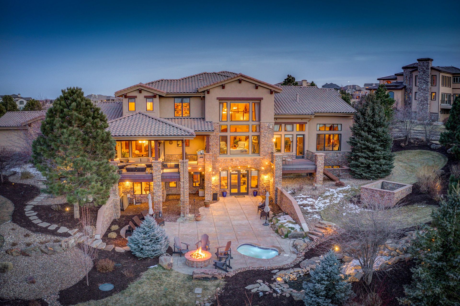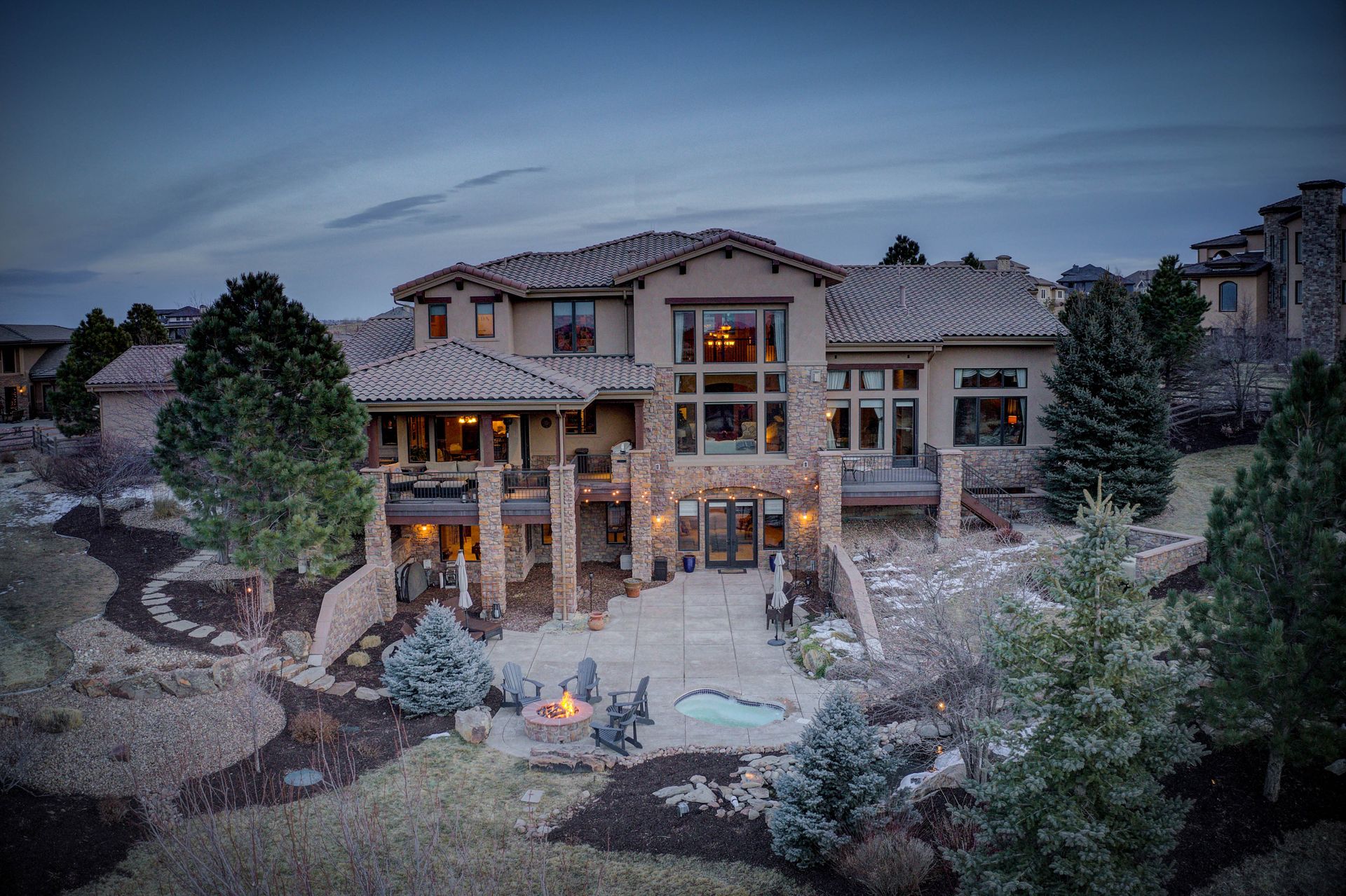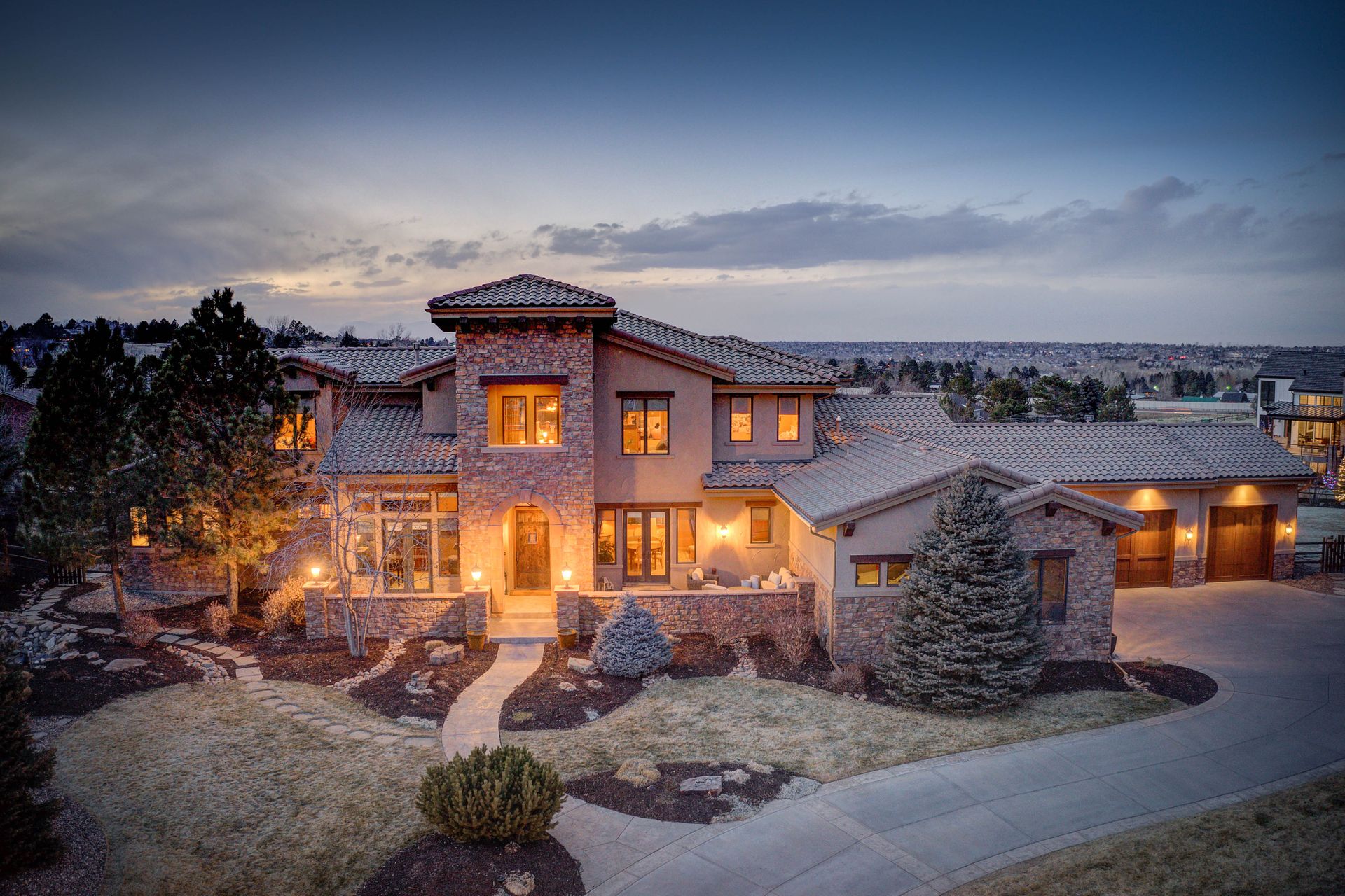 Take in the stunning views of the Rocky Mountains from the amazing fully manicured 1+ acre lot in Centennials premier Estancia community. This custom-built Austin Signature home offers over 8,700 square feet of luxurious living. This wonderful warm Tuscan style home is sure to capture your heart the moment you enter through the grand foyer, leading to the great room with soaring ceilings & an exquisite custom fireplace. The gourmet kitchen opens to the casual family room w/cozy fireplace & breakfast nook overlooking the covered deck w/built-in grill. Enjoy outdoor living w/spectacular views as far as the eye can see. The formal dining room & main floor study both open to private enclosed courtyards. The main level master retreat is simply breathtaking, Boasting a private deck, fireplace, sitting area & en-suite bathroom w/heated floors, steam shower, soaking tub & 2 large walk-in closets. The 2nd level has two spacious suites both featuring lovely sitting areas & en-suite bathrooms w/heated floors, plus a third wonderful private guest suite. The walk-out basement is the ultimate for entertaining! This amazing space has endless possibilities & features a full bar, wine cellar, billiards area, family room & movie theatre w/stadium seating, large screen & surround sound. The workout studio is sure to inspire! An additional large room can be used as guest room, a second home office or a playroom. After enjoying all the indoors has to offer, step out to the amazing outdoor retreat and relax on the private patio featuring a firepit & built-in 8+ person spa. This amazing property offers a 5+ car garage w/ heated driveway pad & plenty of room for all your toys, hobbies & storage needs. Situated on one of the best lots in this wonderful neighborhood, minutes to highways, Cherry Creek State Park & shopping, but far enough away to enjoy the quiet and relaxation of home. This one-of-a-kind property exudes class, elegance & warmth. You must see to genuinely appreciate all it has to offer!