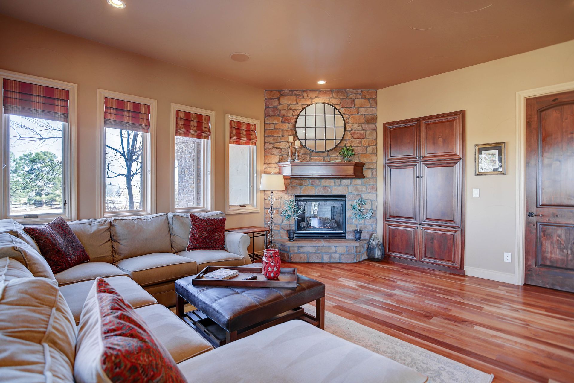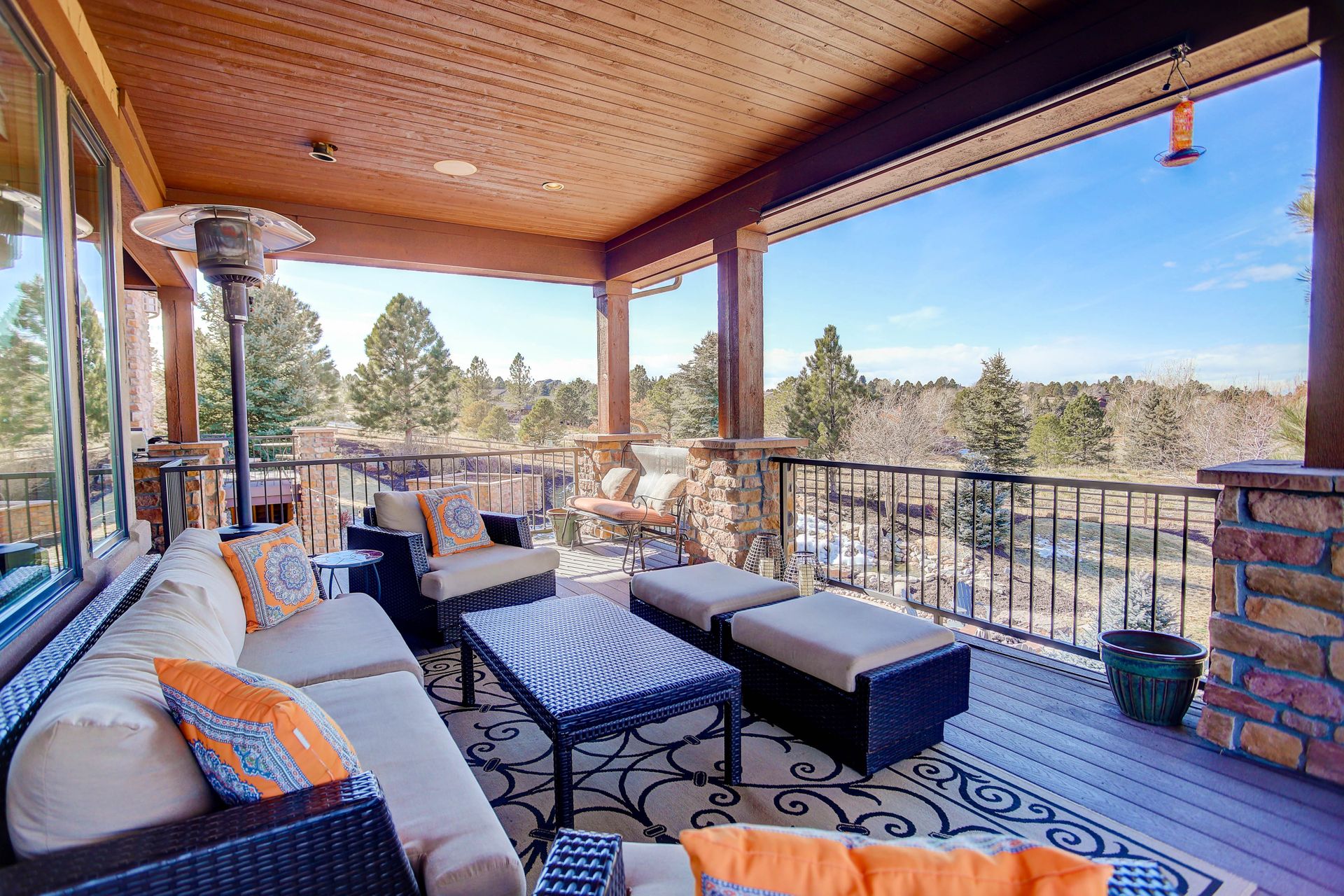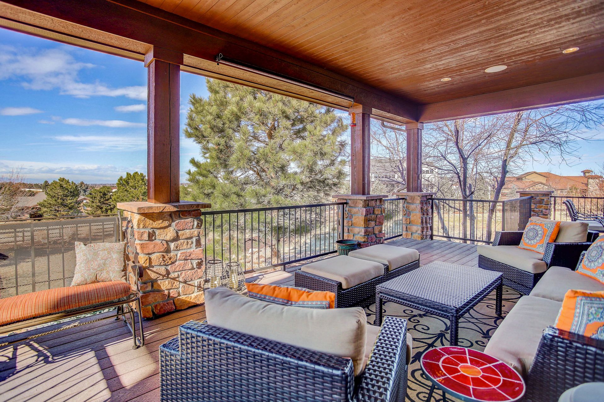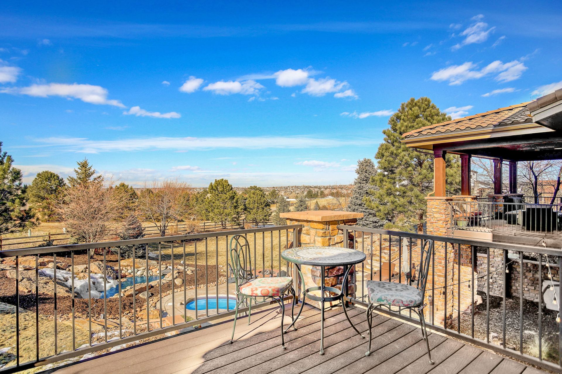 Take in the stunning views of the Rocky Mountains from the amazing fully manicured 1+ acre lot in Centennials premier Estancia community. This custom-built Austin Signature home offers over 8,700 square feet of luxurious living. This wonderful warm Tuscan style home is sure to capture your heart the moment you enter through the grand foyer, leading to the great room with soaring ceilings & an exquisite custom fireplace. The gourmet kitchen opens to the casual family room w/cozy fireplace & breakfast nook overlooking the covered deck w/built-in grill. Enjoy outdoor living w/spectacular views as far as the eye can see. The formal dining room & main floor study both open to private enclosed courtyards. The main level master retreat is simply breathtaking, Boasting a private deck, fireplace, sitting area & en-suite bathroom w/heated floors, steam shower, soaking tub & 2 large walk-in closets. The 2nd level has two spacious suites both featuring lovely sitting areas & en-suite bathrooms w/heated floors, plus a third wonderful private guest suite. The walk-out basement is the ultimate for entertaining! This amazing space has endless possibilities & features a full bar, wine cellar, billiards area, family room & movie theatre w/stadium seating, large screen & surround sound. The workout studio is sure to inspire! An additional large room can be used as guest room, a second home office or a playroom. After enjoying all the indoors has to offer, step out to the amazing outdoor retreat and relax on the private patio featuring a firepit & built-in 8+ person spa. This amazing property offers a 5+ car garage w/ heated driveway pad & plenty of room for all your toys, hobbies & storage needs. Situated on one of the best lots in this wonderful neighborhood, minutes to highways, Cherry Creek State Park & shopping, but far enough away to enjoy the quiet and relaxation of home. This one-of-a-kind property exudes class, elegance & warmth. You must see to genuinely appreciate all it has to offer!