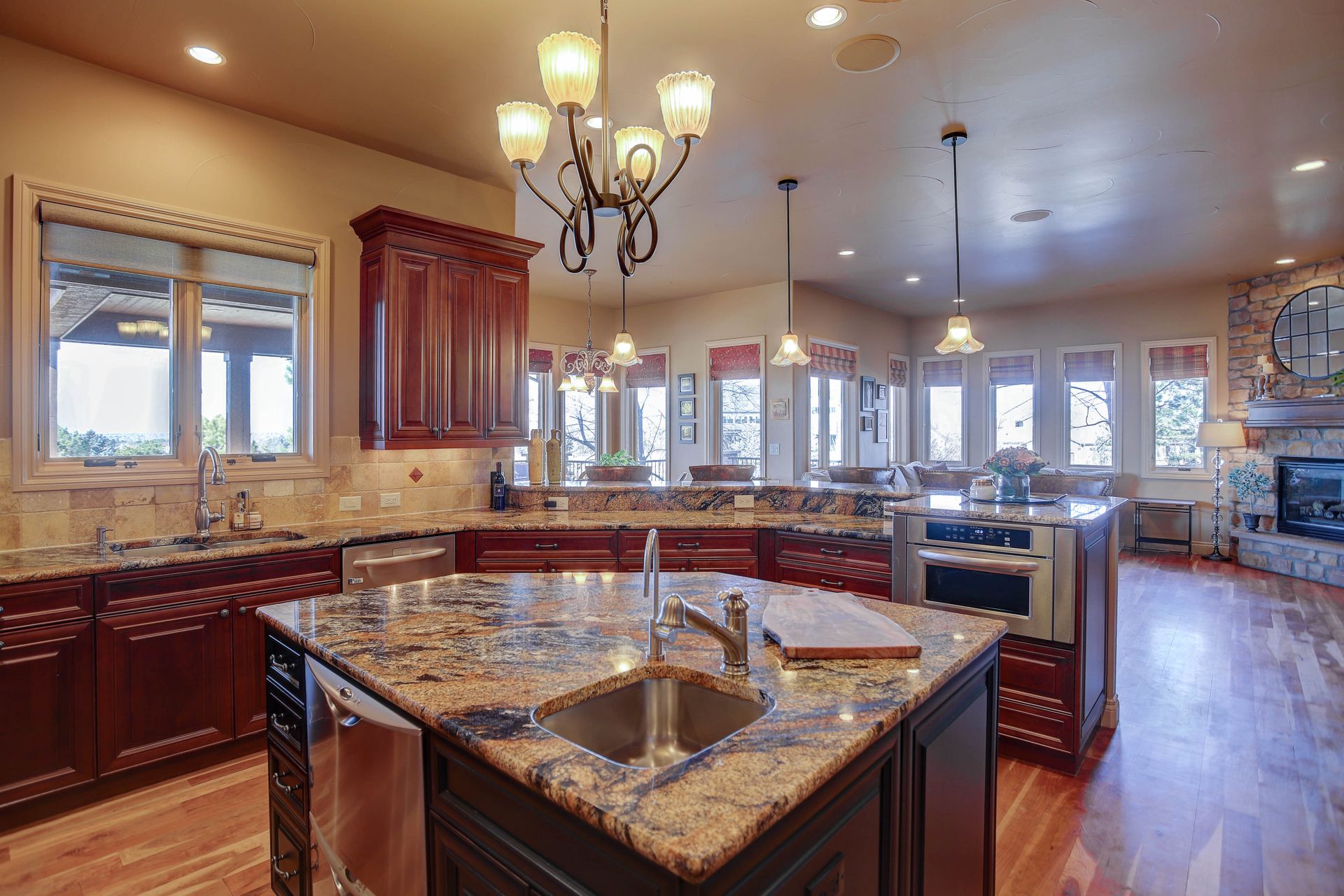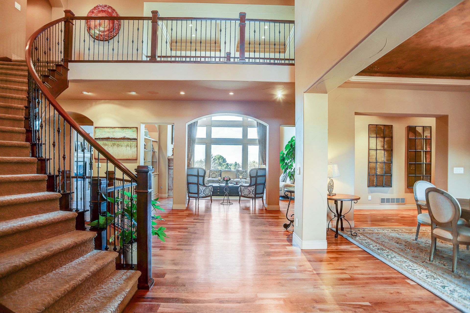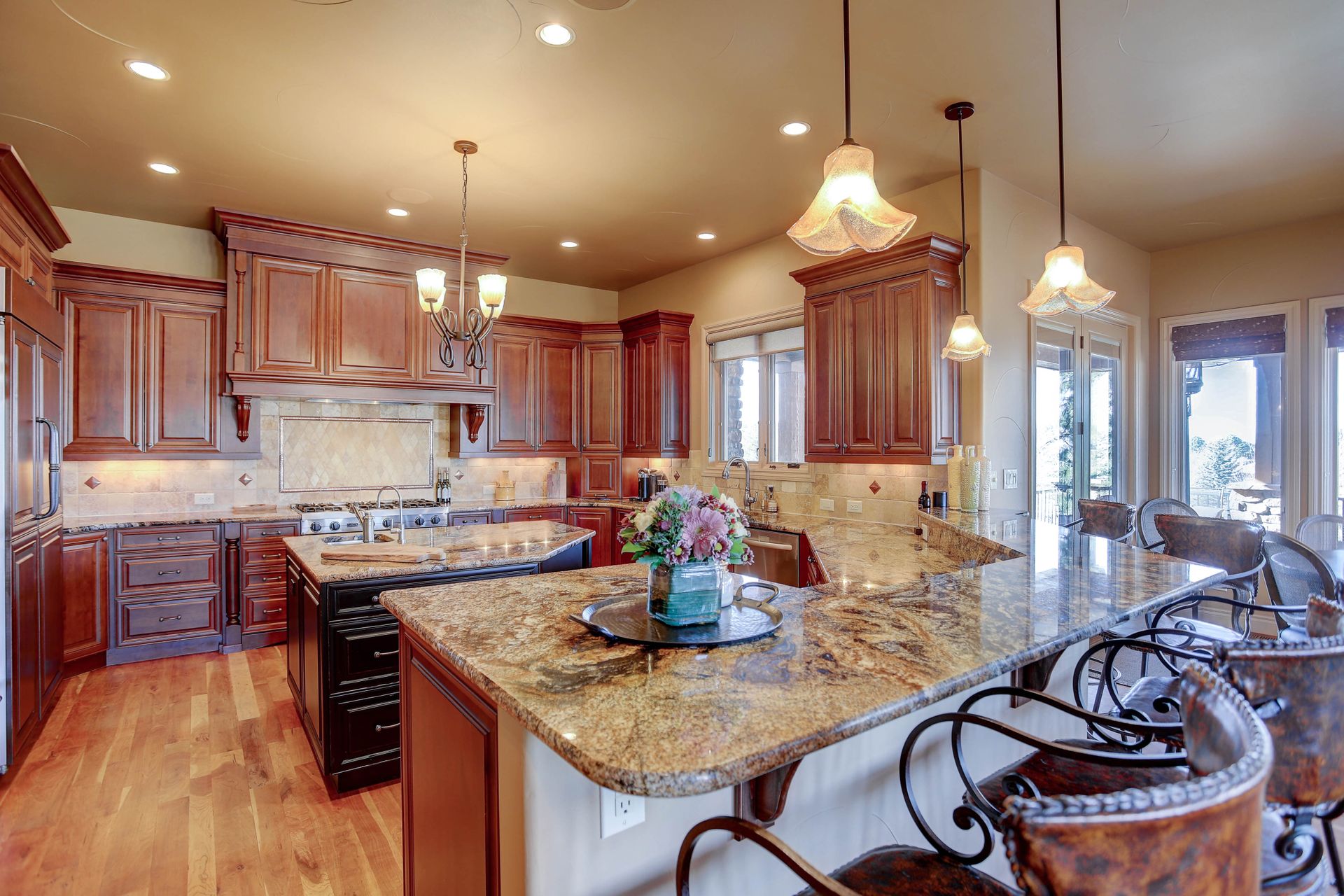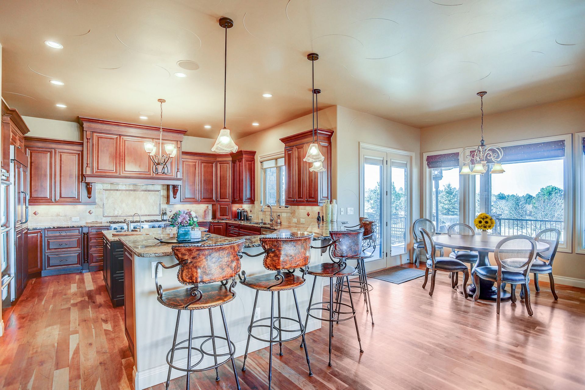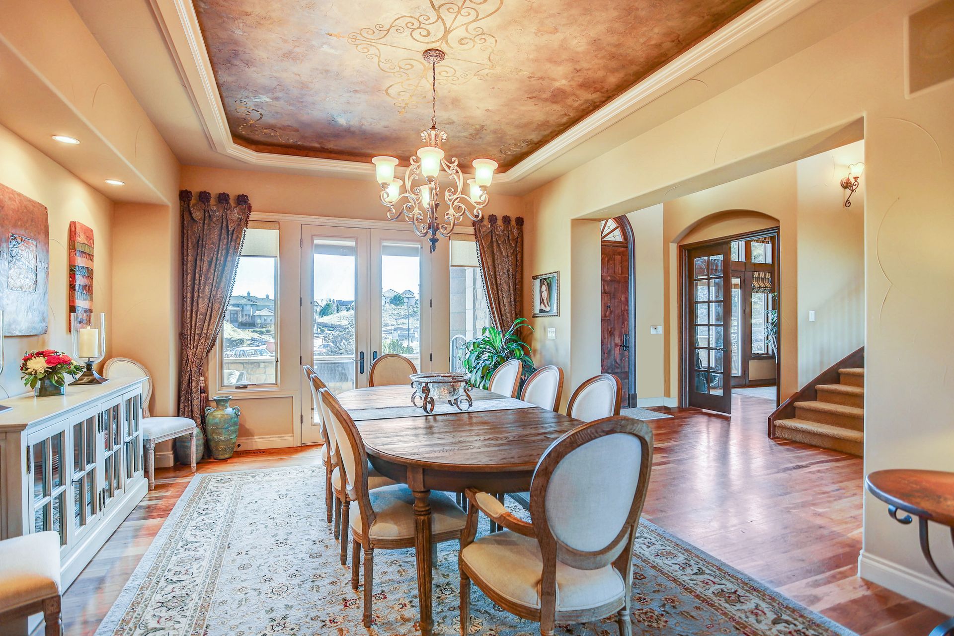 Take in the stunning views of the Rocky Mountains from the amazing fully manicured 1+ acre lot in Centennials premier Estancia community. This custom-built Austin Signature home offers over 8,700 square feet of luxurious living. This wonderful warm Tuscan style home is sure to capture your heart the moment you enter through the grand foyer, leading to the great room with soaring ceilings & an exquisite custom fireplace. The gourmet kitchen opens to the casual family room w/cozy fireplace & breakfast nook overlooking the covered deck w/built-in grill. Enjoy outdoor living w/spectacular views as far as the eye can see. The formal dining room & main floor study both open to private enclosed courtyards. The main level master retreat is simply breathtaking, Boasting a private deck, fireplace, sitting area & en-suite bathroom w/heated floors, steam shower, soaking tub & 2 large walk-in closets. The 2nd level has two spacious suites both featuring lovely sitting areas & en-suite bathrooms w/heated floors, plus a third wonderful private guest suite. The walk-out basement is the ultimate for entertaining! This amazing space has endless possibilities & features a full bar, wine cellar, billiards area, family room & movie theatre w/stadium seating, large screen & surround sound. The workout studio is sure to inspire! An additional large room can be used as guest room, a second home office or a playroom. After enjoying all the indoors has to offer, step out to the amazing outdoor retreat and relax on the private patio featuring a firepit & built-in 8+ person spa. This amazing property offers a 5+ car garage w/ heated driveway pad & plenty of room for all your toys, hobbies & storage needs. Situated on one of the best lots in this wonderful neighborhood, minutes to highways, Cherry Creek State Park & shopping, but far enough away to enjoy the quiet and relaxation of home. This one-of-a-kind property exudes class, elegance & warmth. You must see to genuinely appreciate all it has to offer!