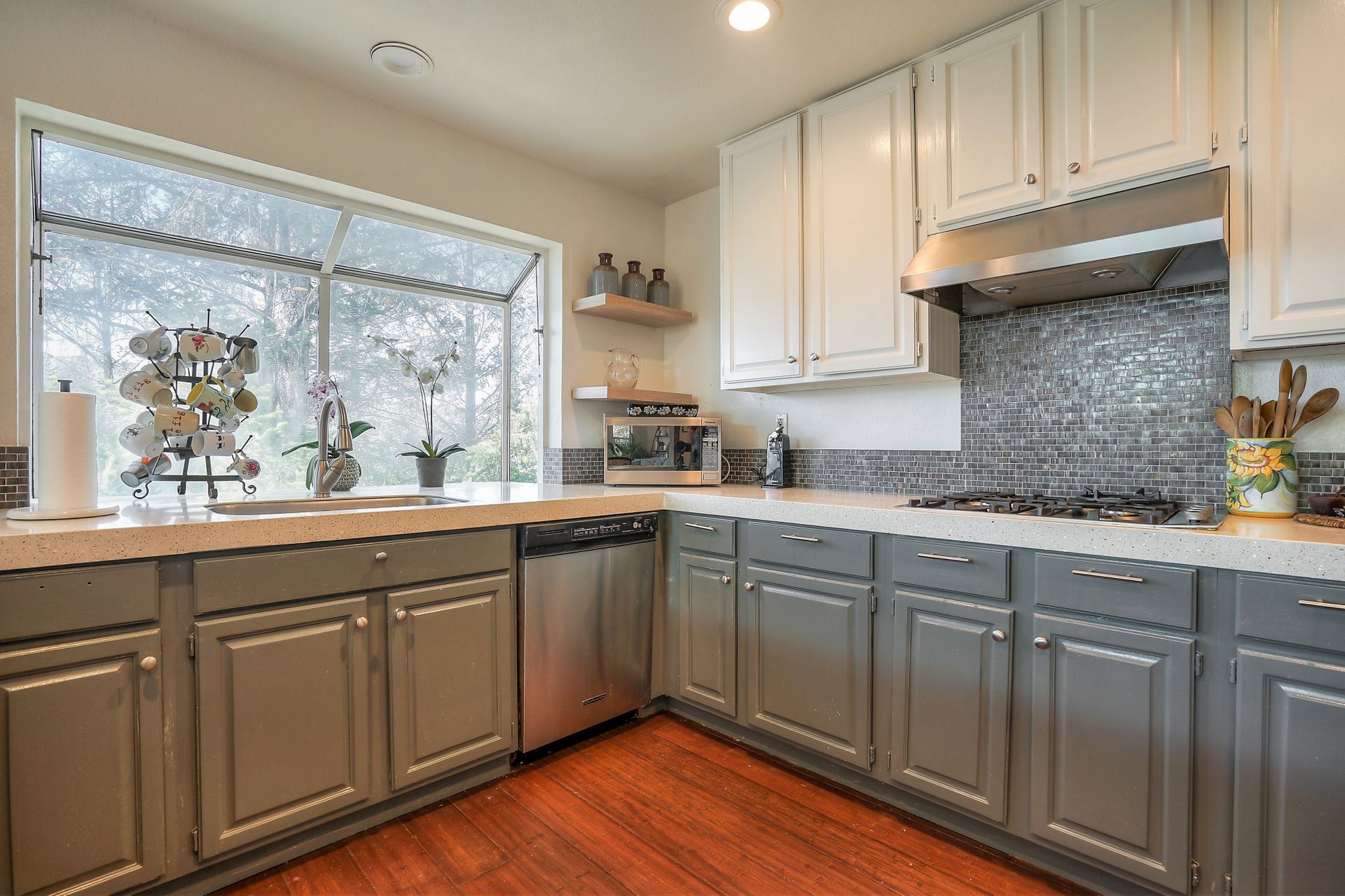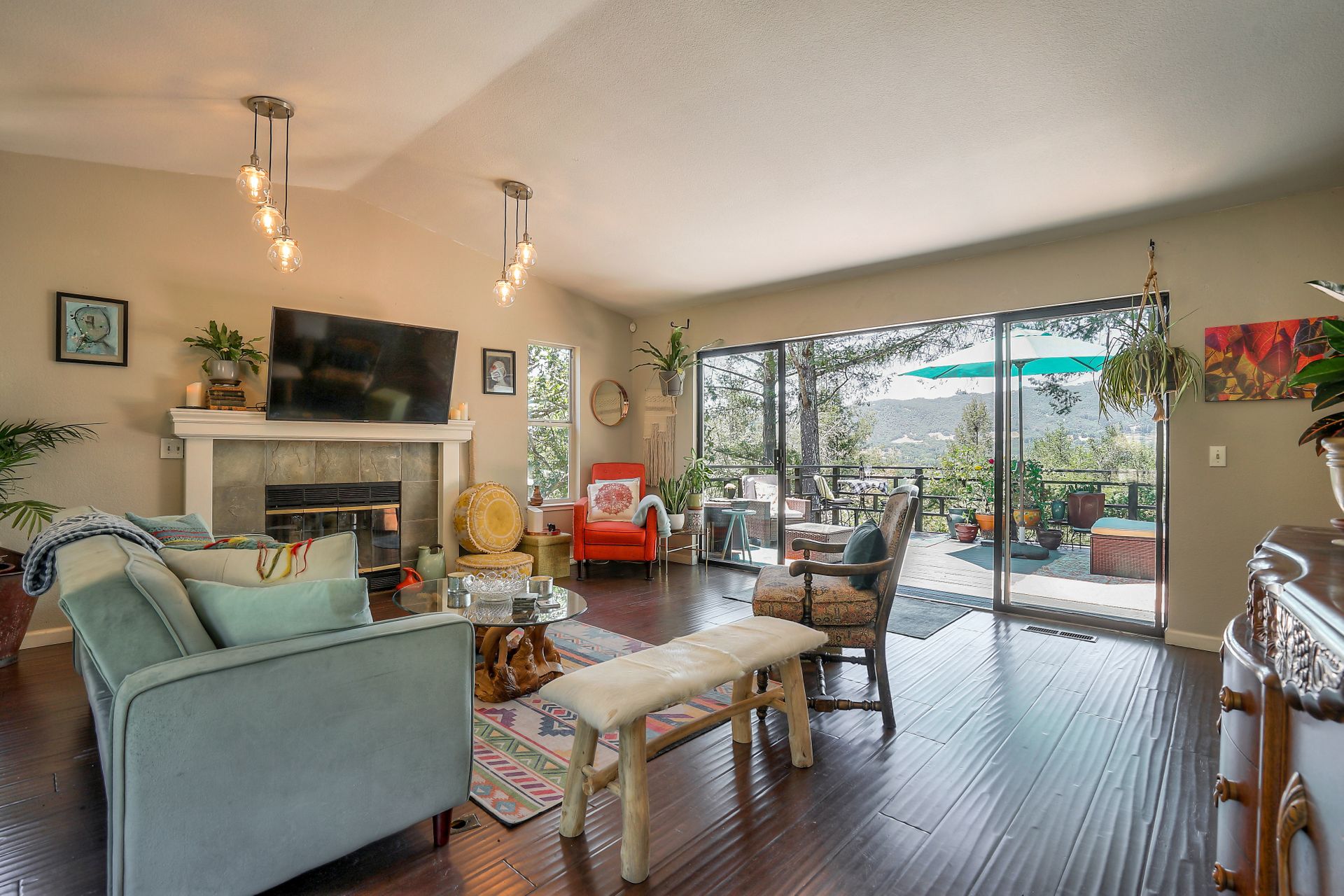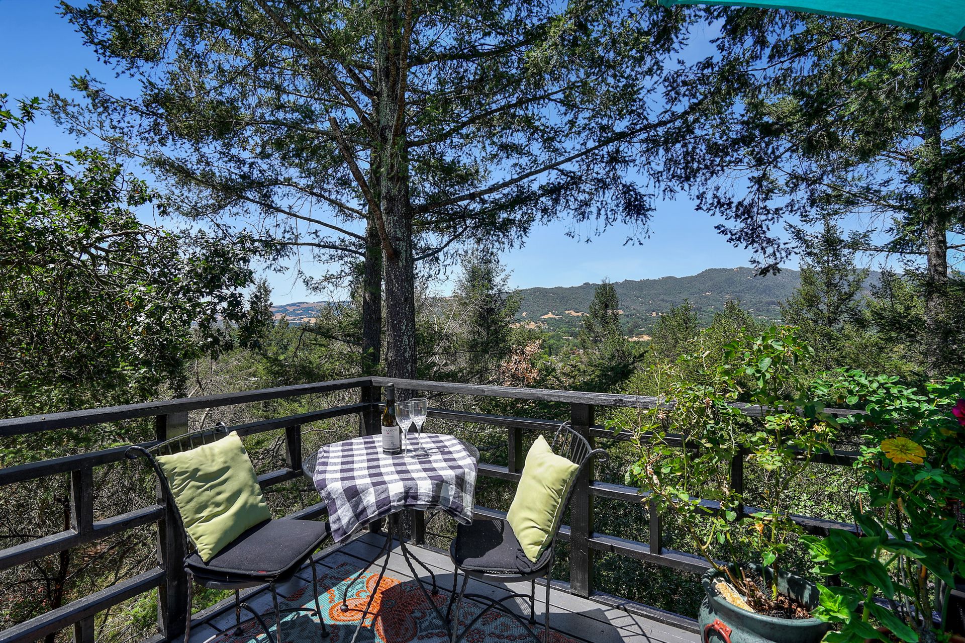 Enjoy amazing views and privacy among the treetops from this multi-story four bedroom, two and one-half bath hillside home in the Sonoma Valley Wine Country. Features include a main level entertaining deck off the living room, an updated kitchen and baths and a master en-suite on the top floor. Two bedrooms are located on the bottom floor, plus a bonus space fit for a second master bedroom or office and den with its own private deck. Other features include a newer roof and a whole house generator for those unexpected power outages. Come for the views! This wine country home is sure to wow!