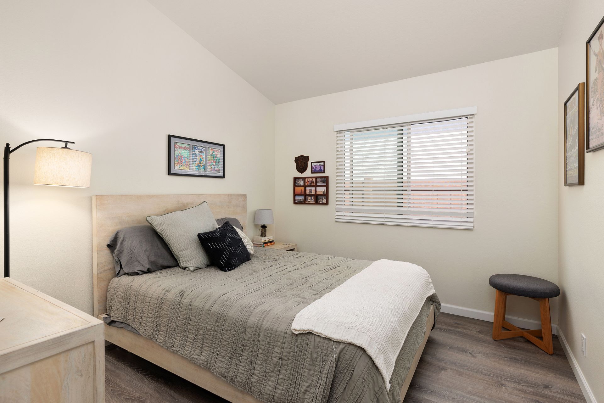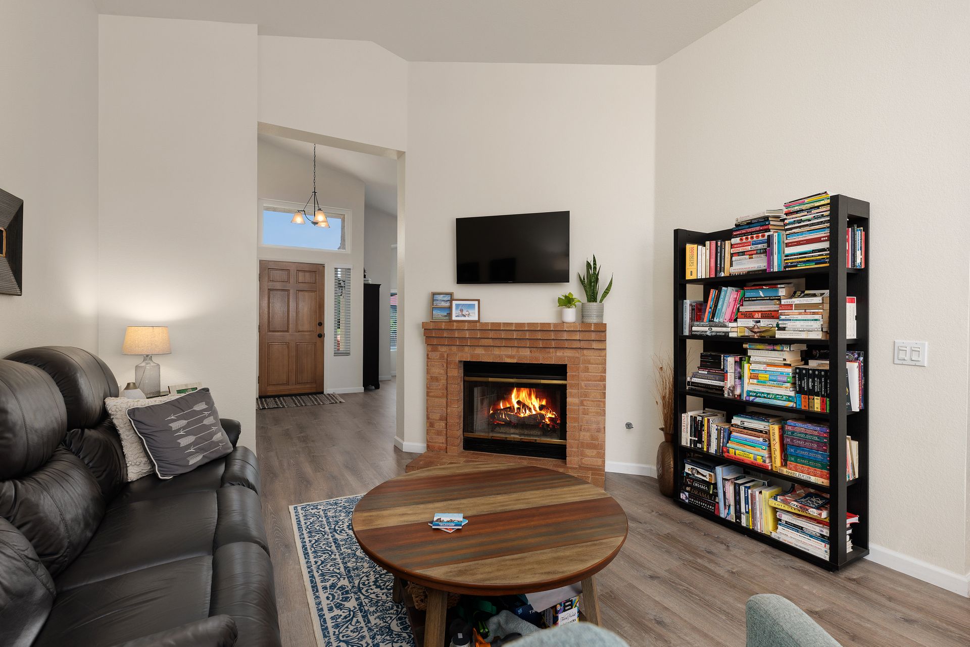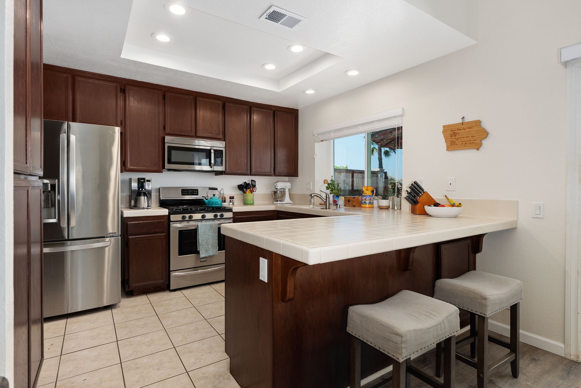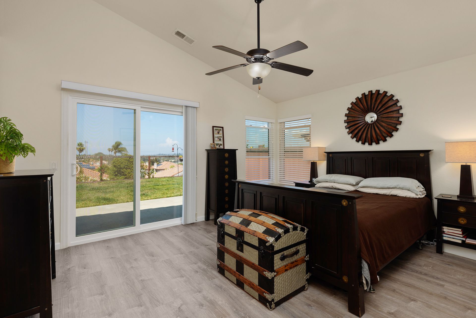 Welcome to this charming single-level three bedroom VIEW home that epitomizes low-maintenance living and modern comfort with a freshly painted interior and exterior. Enjoy the thoughtfully designed front yard with drought-resistant landscaping and an inviting courtyard patio that warmly welcomes you into the residence. As you head inside, you'll immediately notice the exquisite newer luxury vinyl plank flooring that flows seamlessly throughout, complemented by vaulted ceilings, baseboards and energy efficient windows, and newer blinds creating a light and spacious atmosphere. The living space features formal living and dining areas, providing the ideal backdrop for gatherings and special occasions. The heart of the home is the bright kitchen, complete with stainless steel appliances, which effortlessly connects through the breakfast bar to the family room. From here, you can go outside to the grassy backyard with a patio area where you can unwind and soak in the captivating city and mountain views. The primary bedroom is a serene retreat, capturing the enchanting vistas! The attached two-car garage provides ample storage. Equipped with owned solar panels and air conditioning, this home embraces sustainable living without compromising on comfort. Situated in a desirable location, this home offers easy access to the Shadowridge Golf Club, shopping centers, restaurants and schools, making it a great blend of convenience and tranquility. With low HOA fees, this property presents an incredible opportunity to embrace a comfortable and vibrant lifestyle. Don't miss the chance to make this home your own and enjoy the seamless blend of modern living and captivating outdoor views.