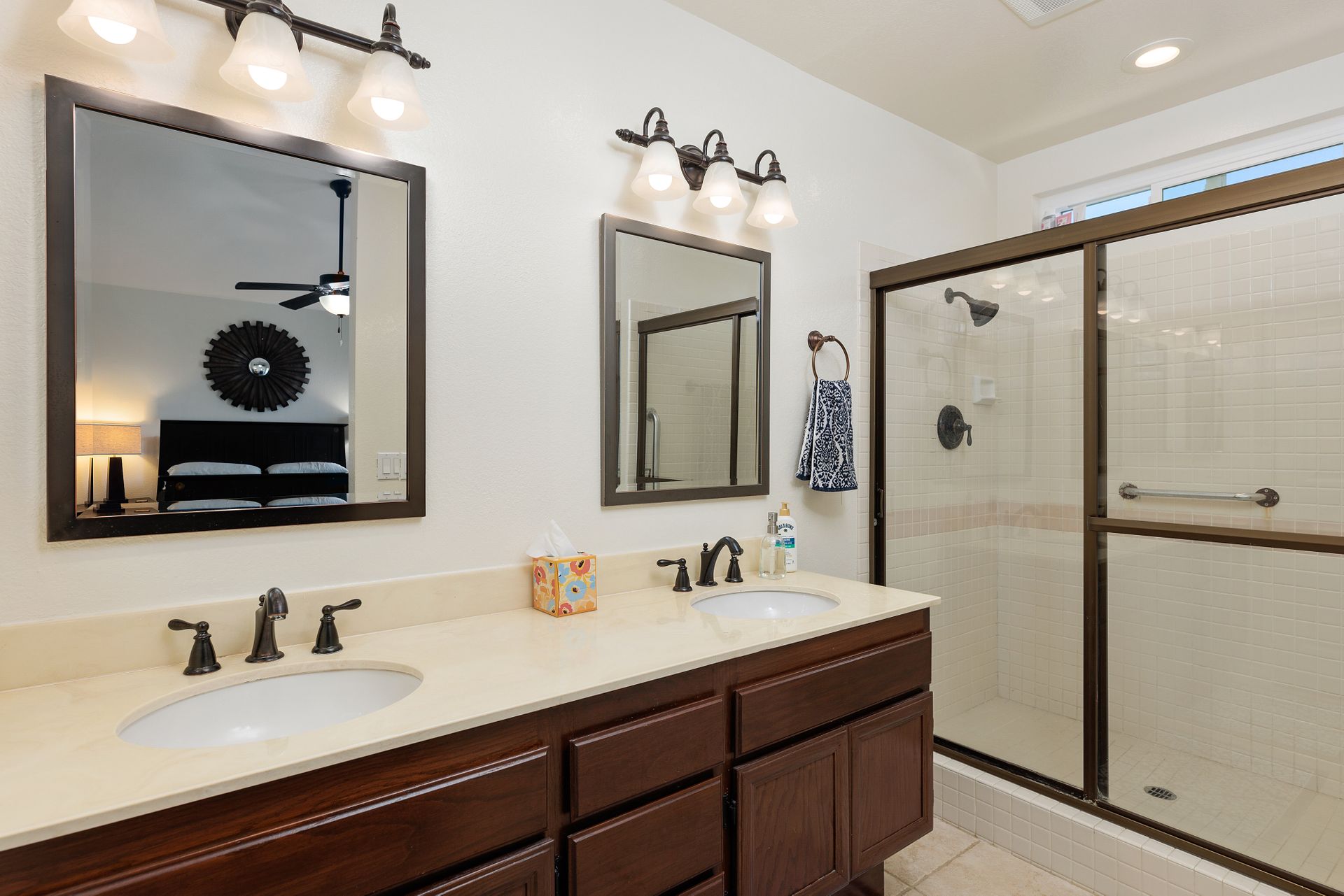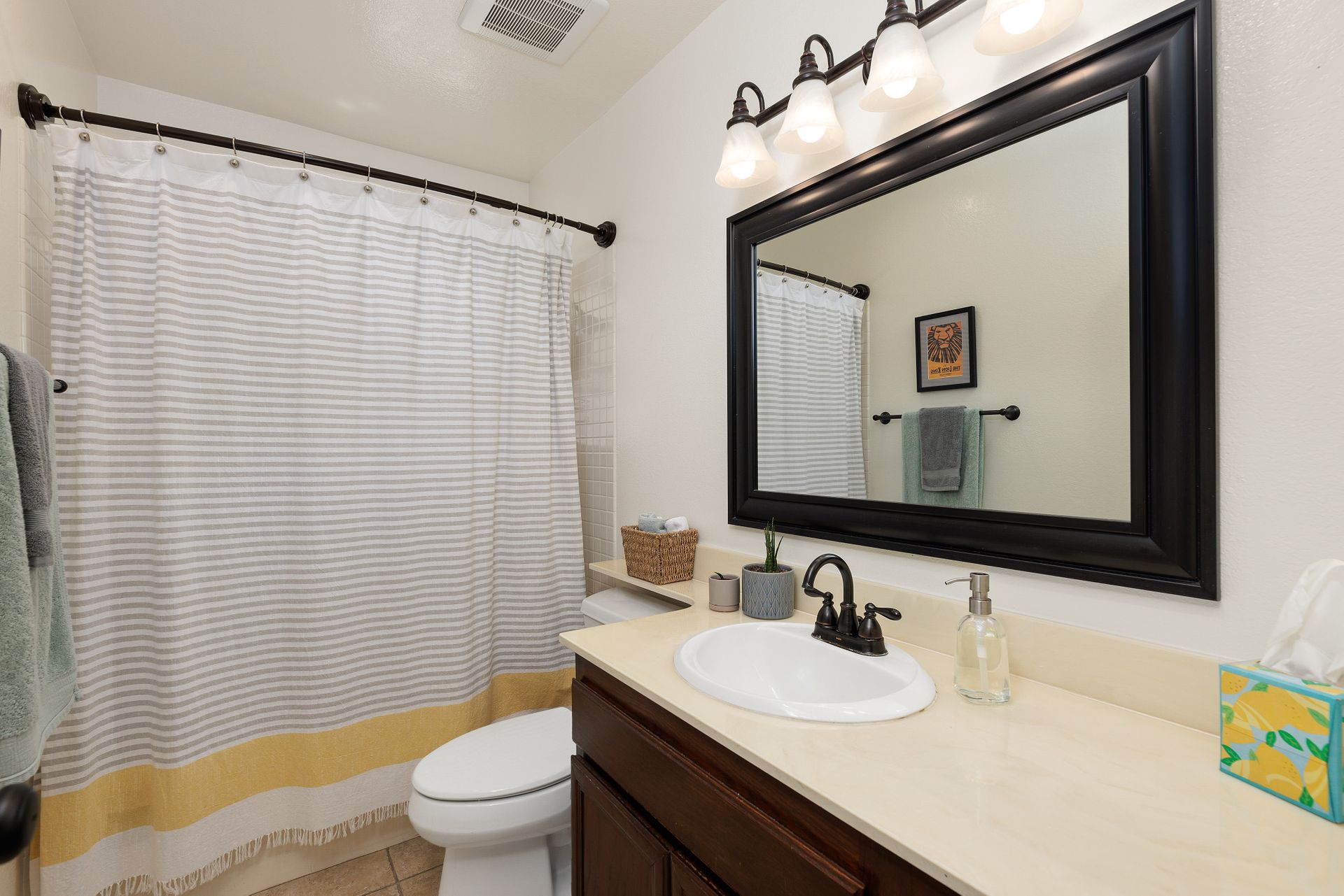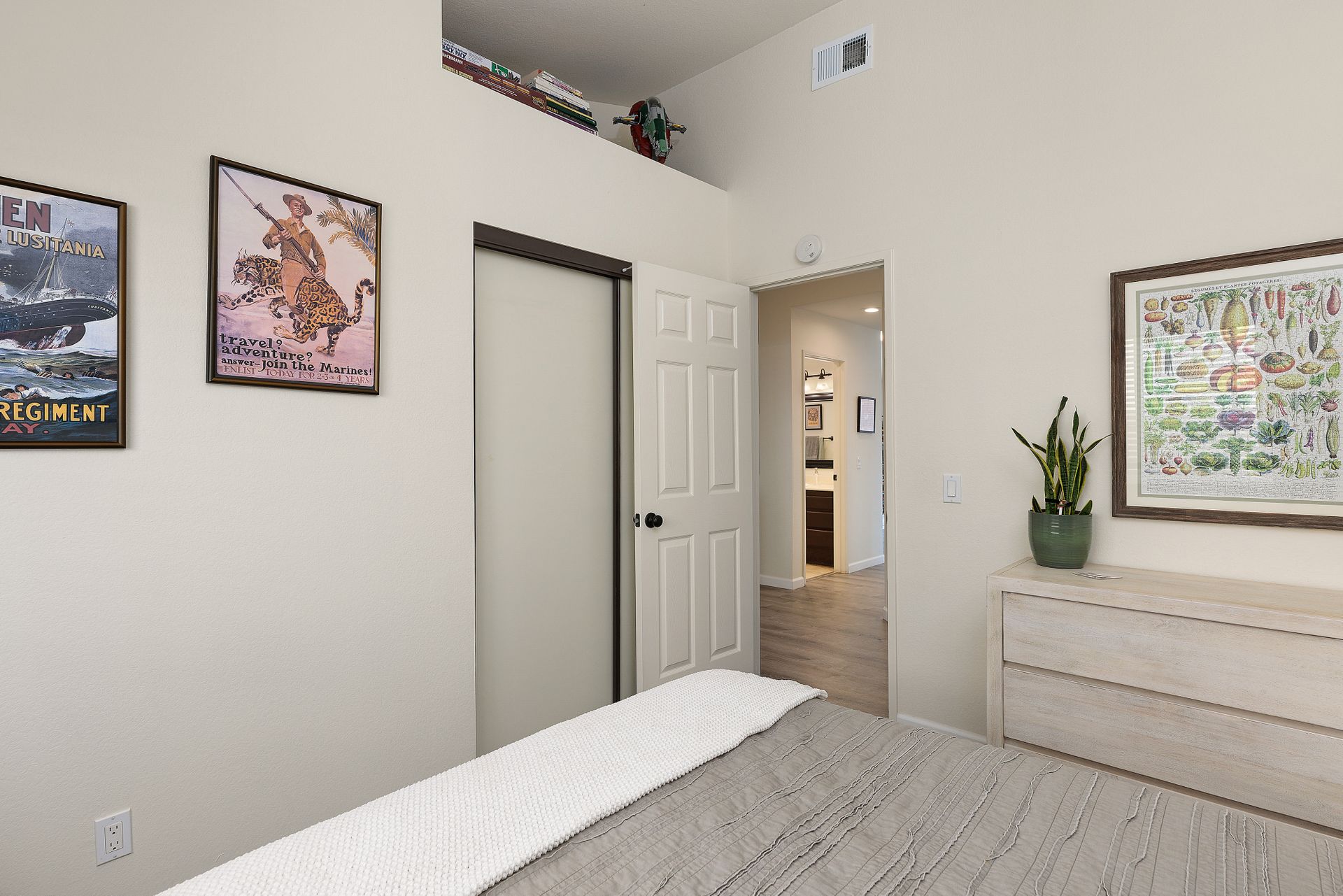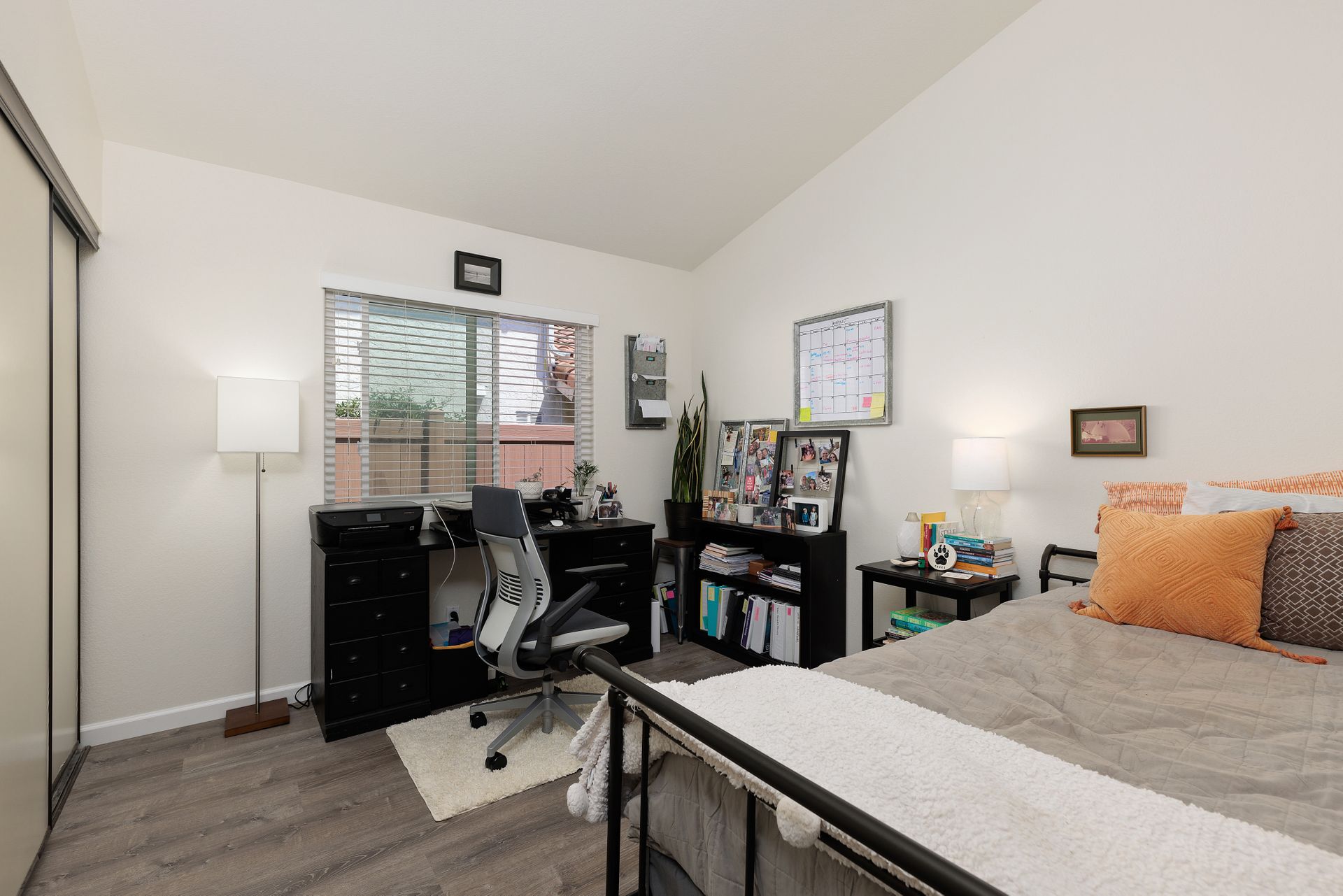 Welcome to this charming single-level three bedroom VIEW home that epitomizes low-maintenance living and modern comfort with a freshly painted interior and exterior. Enjoy the thoughtfully designed front yard with drought-resistant landscaping and an inviting courtyard patio that warmly welcomes you into the residence. As you head inside, you'll immediately notice the exquisite newer luxury vinyl plank flooring that flows seamlessly throughout, complemented by vaulted ceilings, baseboards and energy efficient windows, and newer blinds creating a light and spacious atmosphere. The living space features formal living and dining areas, providing the ideal backdrop for gatherings and special occasions. The heart of the home is the bright kitchen, complete with stainless steel appliances, which effortlessly connects through the breakfast bar to the family room. From here, you can go outside to the grassy backyard with a patio area where you can unwind and soak in the captivating city and mountain views. The primary bedroom is a serene retreat, capturing the enchanting vistas! The attached two-car garage provides ample storage. Equipped with owned solar panels and air conditioning, this home embraces sustainable living without compromising on comfort. Situated in a desirable location, this home offers easy access to the Shadowridge Golf Club, shopping centers, restaurants and schools, making it a great blend of convenience and tranquility. With low HOA fees, this property presents an incredible opportunity to embrace a comfortable and vibrant lifestyle. Don't miss the chance to make this home your own and enjoy the seamless blend of modern living and captivating outdoor views.