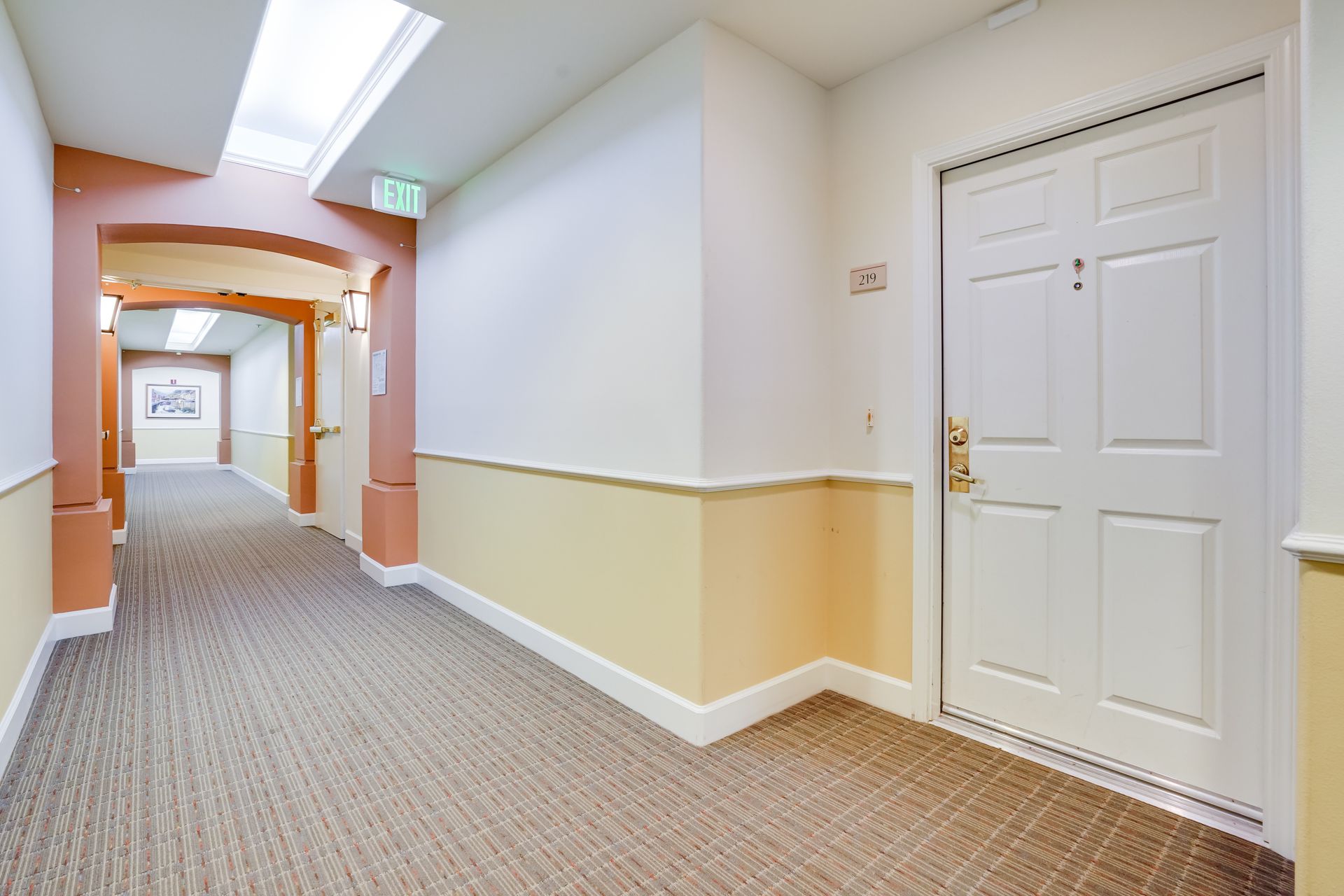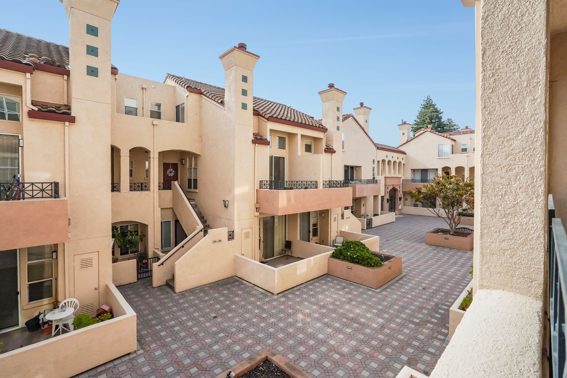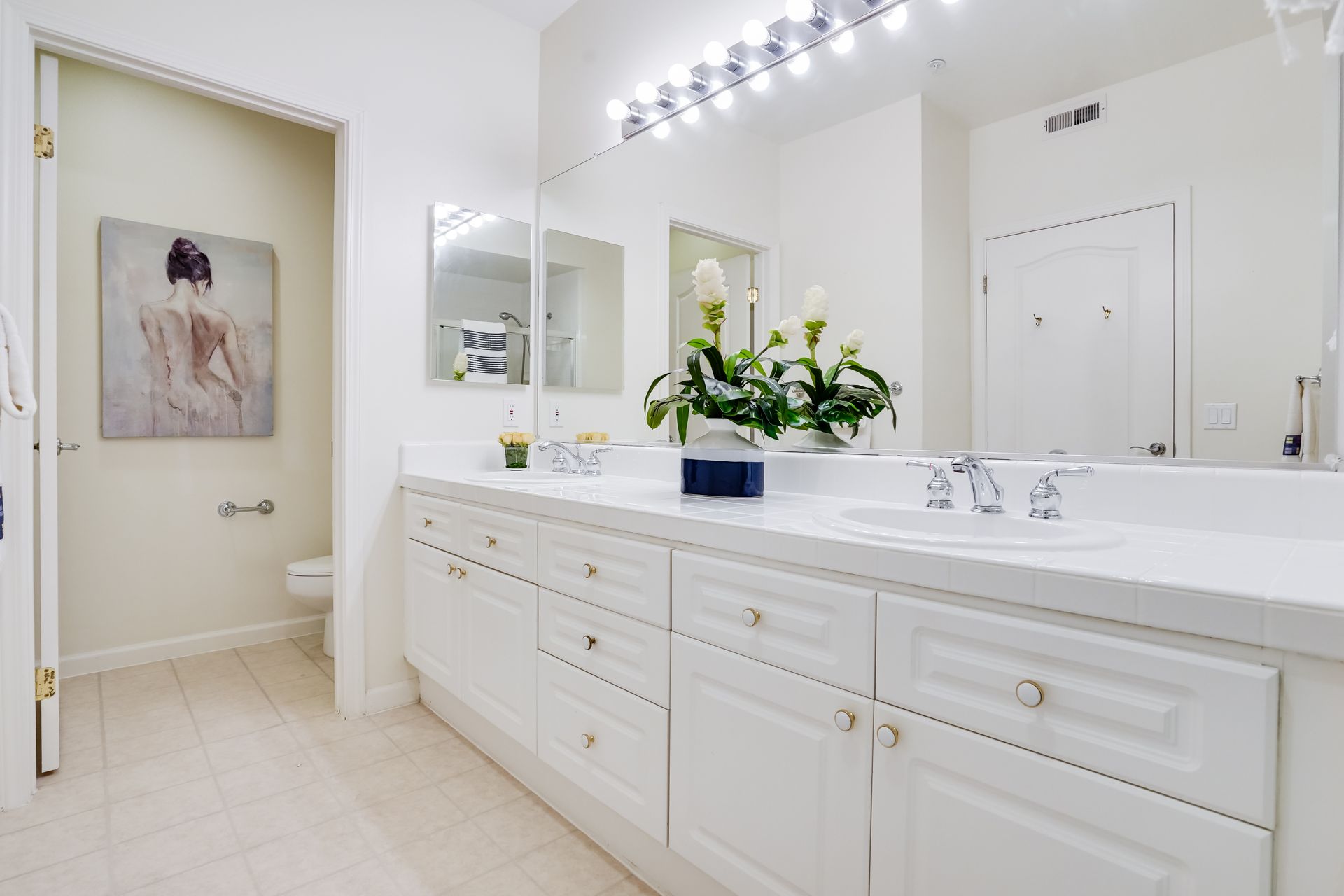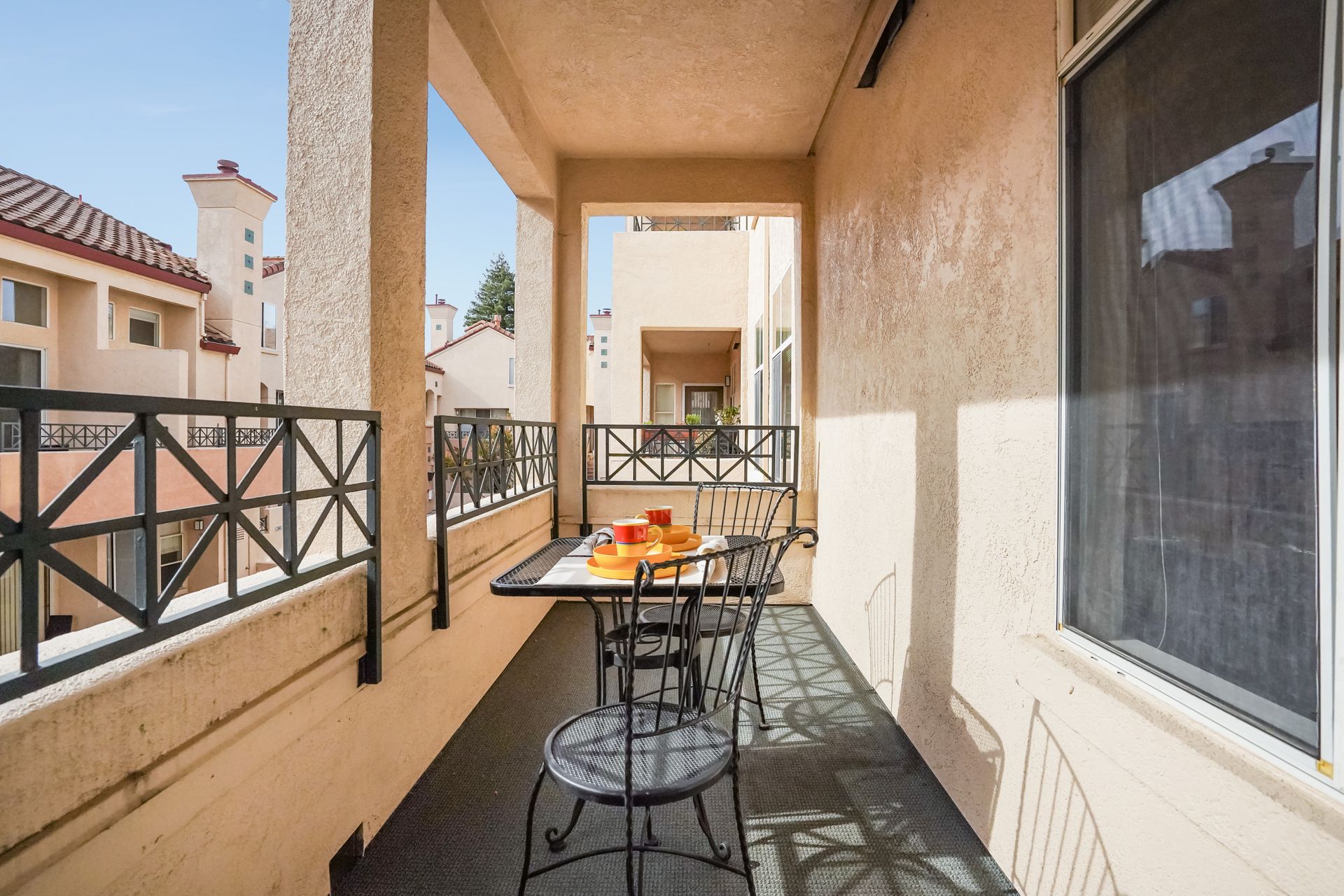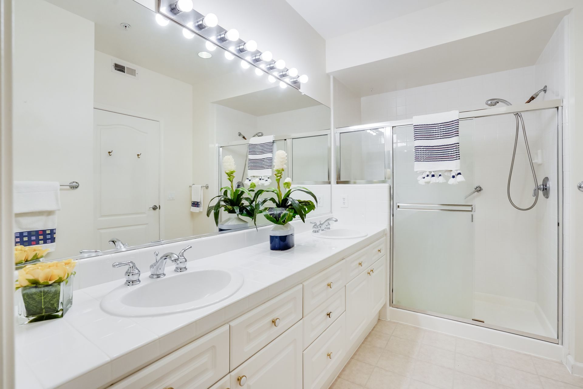 This quintessential sophisticated showstopper is a chic decorator showcase located in the Corte Bella Spanish Mediterranean secured complex. It is complimented by dove gray interior paint, gorgeous plantation shutters and Navajo white carpeting. The state-of-the-art gleaming white galley kitchen will delight any chef. Past the wood-burning fireplace with a stunning mantle is access to a patio, ideal for that morning cup of coffee. Relax in your primary suite with a large walk-in closet and luxury bath, highlighting this highly desirable unit. The second bedroom can dual as an office, the hallway is lined by a laundry closet with a full size washer and dryer and there is a second spacious full bath. Don’t miss the two deeded parking spaces in the common garage.