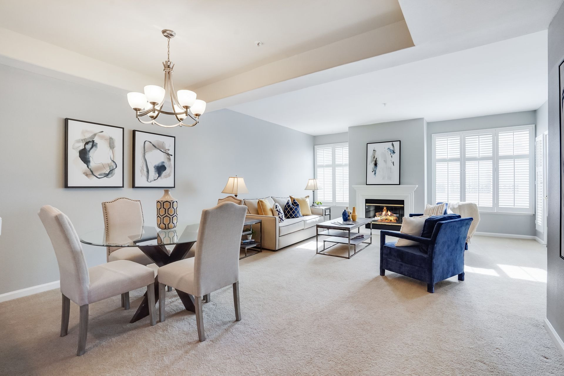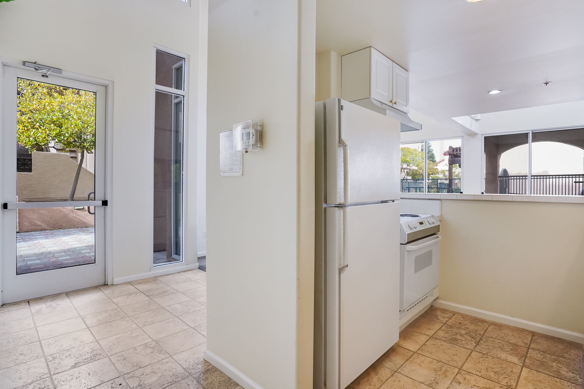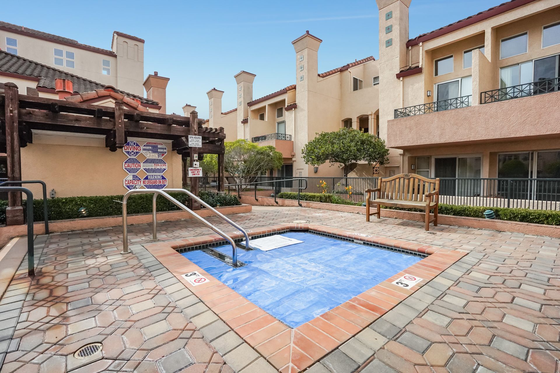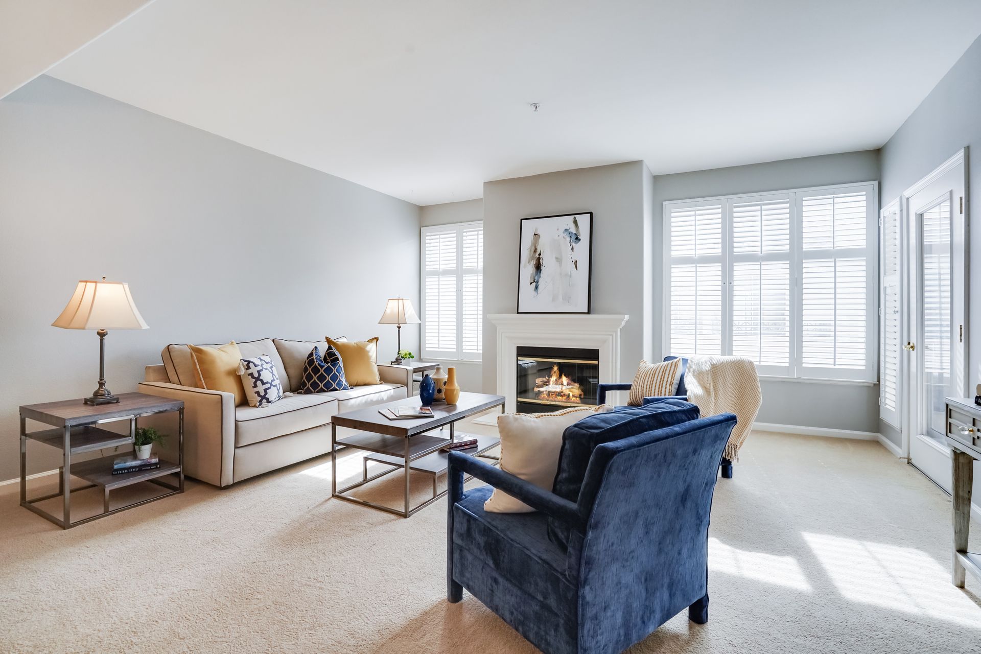 This quintessential sophisticated showstopper is a chic decorator showcase located in the Corte Bella Spanish Mediterranean secured complex. It is complimented by dove gray interior paint, gorgeous plantation shutters and Navajo white carpeting. The state-of-the-art gleaming white galley kitchen will delight any chef. Past the wood-burning fireplace with a stunning mantle is access to a patio, ideal for that morning cup of coffee. Relax in your primary suite with a large walk-in closet and luxury bath, highlighting this highly desirable unit. The second bedroom can dual as an office, the hallway is lined by a laundry closet with a full size washer and dryer and there is a second spacious full bath. Don’t miss the two deeded parking spaces in the common garage.