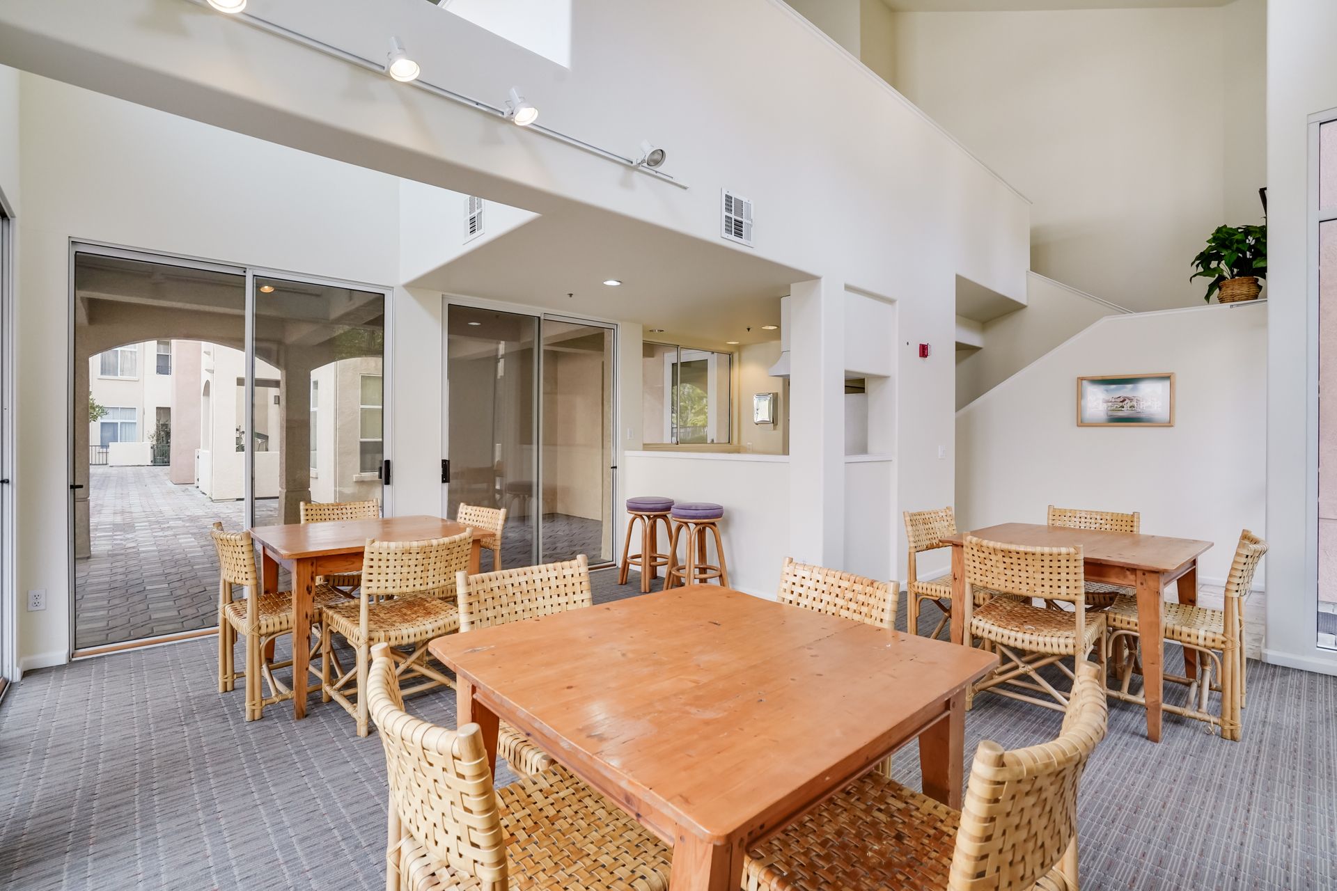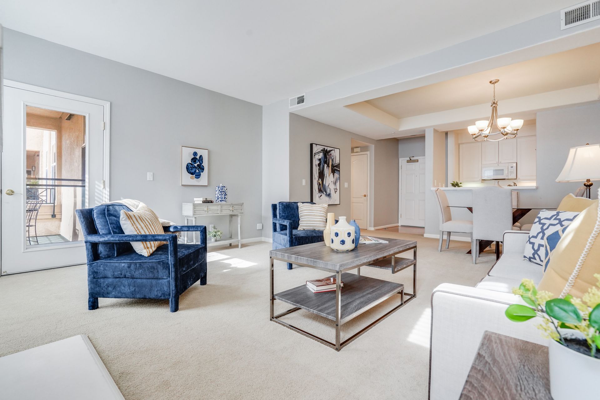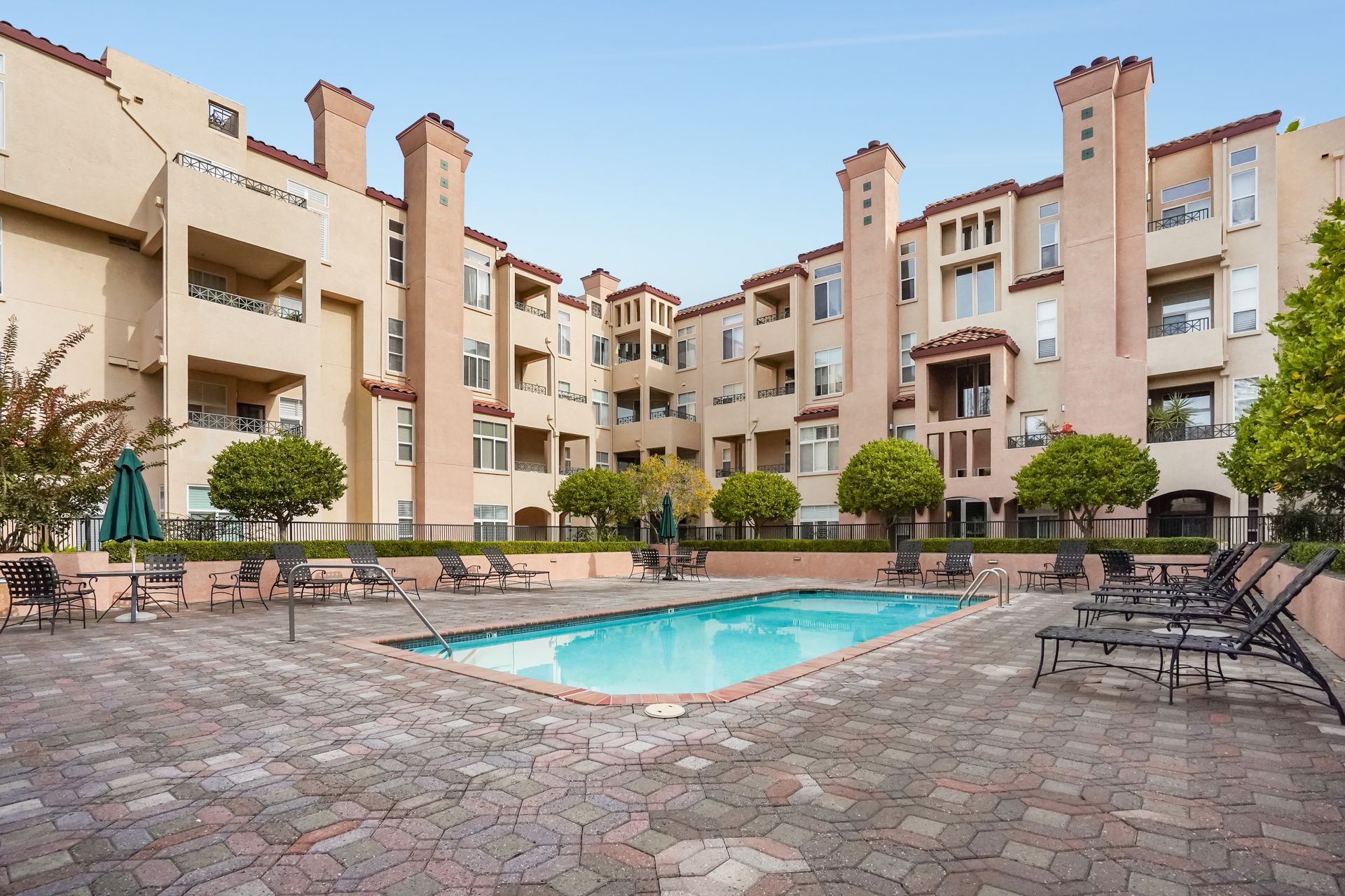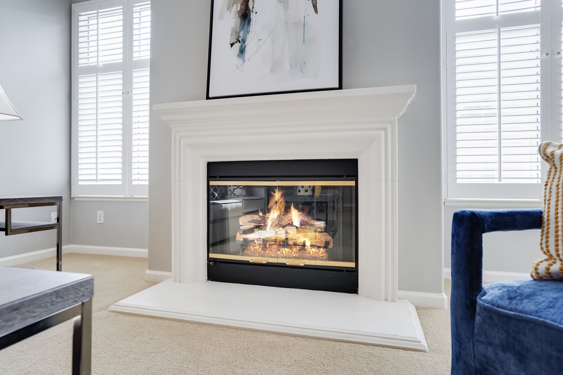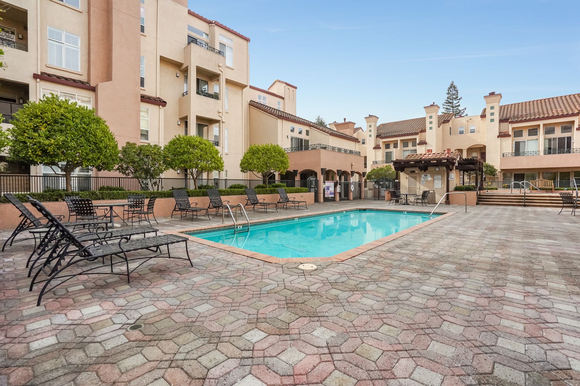 This quintessential sophisticated showstopper is a chic decorator showcase located in the Corte Bella Spanish Mediterranean secured complex. It is complimented by dove gray interior paint, gorgeous plantation shutters and Navajo white carpeting. The state-of-the-art gleaming white galley kitchen will delight any chef. Past the wood-burning fireplace with a stunning mantle is access to a patio, ideal for that morning cup of coffee. Relax in your primary suite with a large walk-in closet and luxury bath, highlighting this highly desirable unit. The second bedroom can dual as an office, the hallway is lined by a laundry closet with a full size washer and dryer and there is a second spacious full bath. Don’t miss the two deeded parking spaces in the common garage.