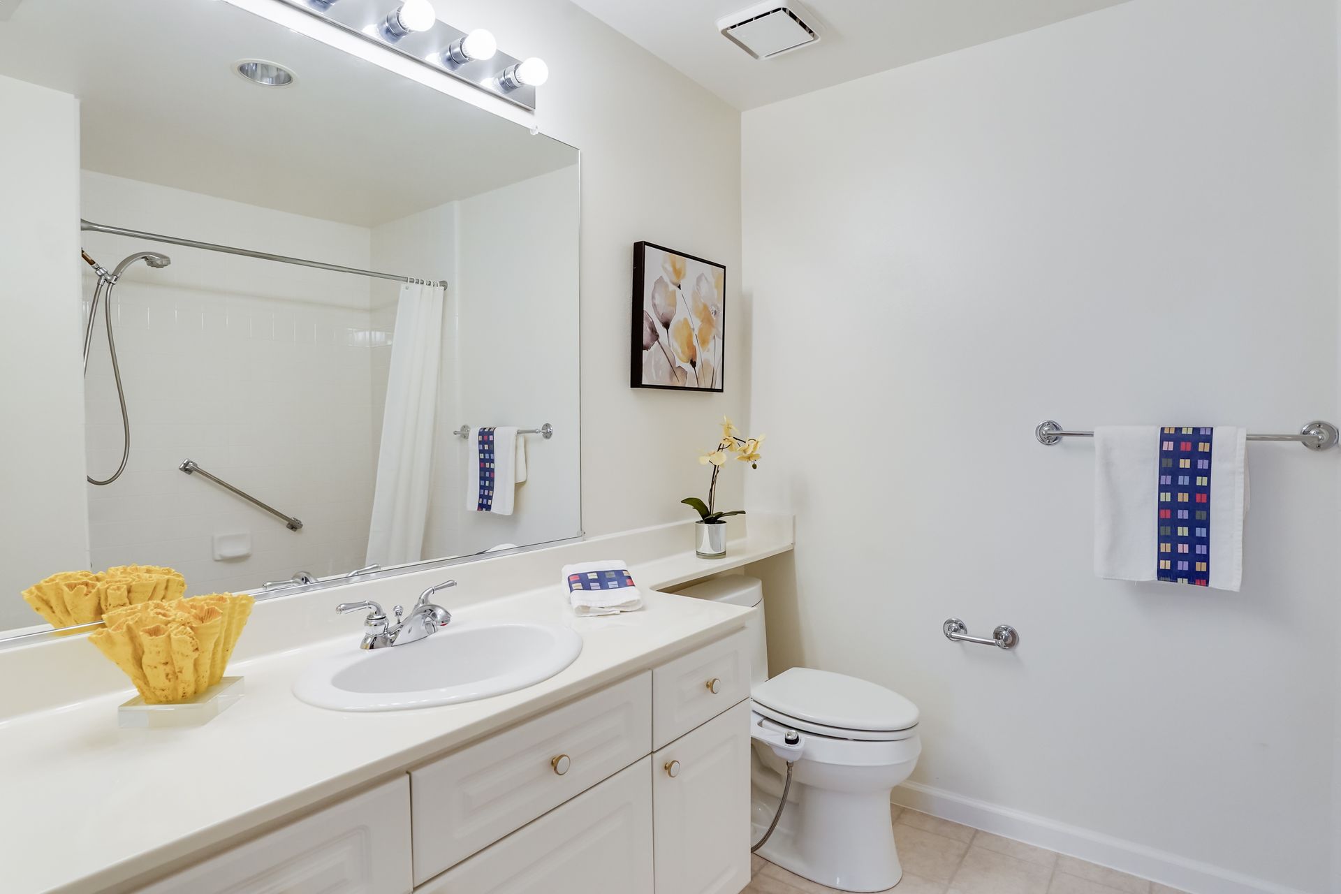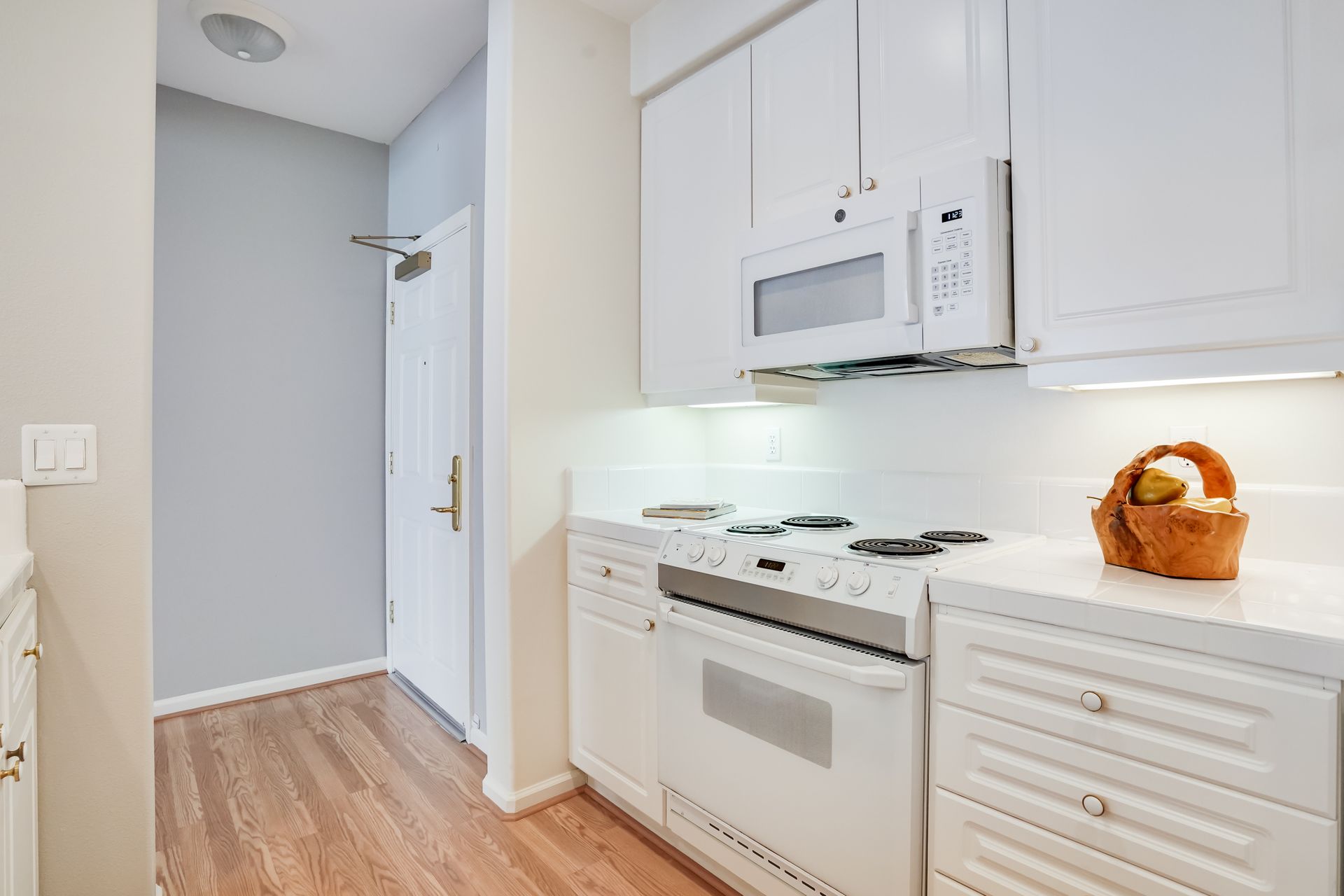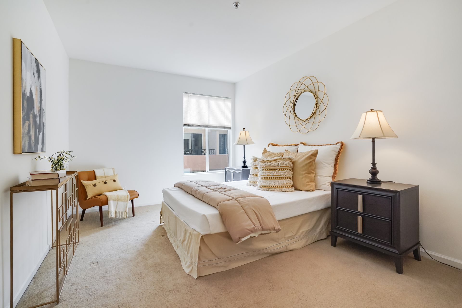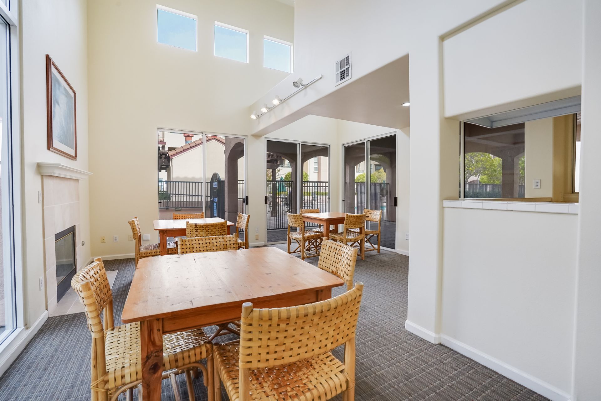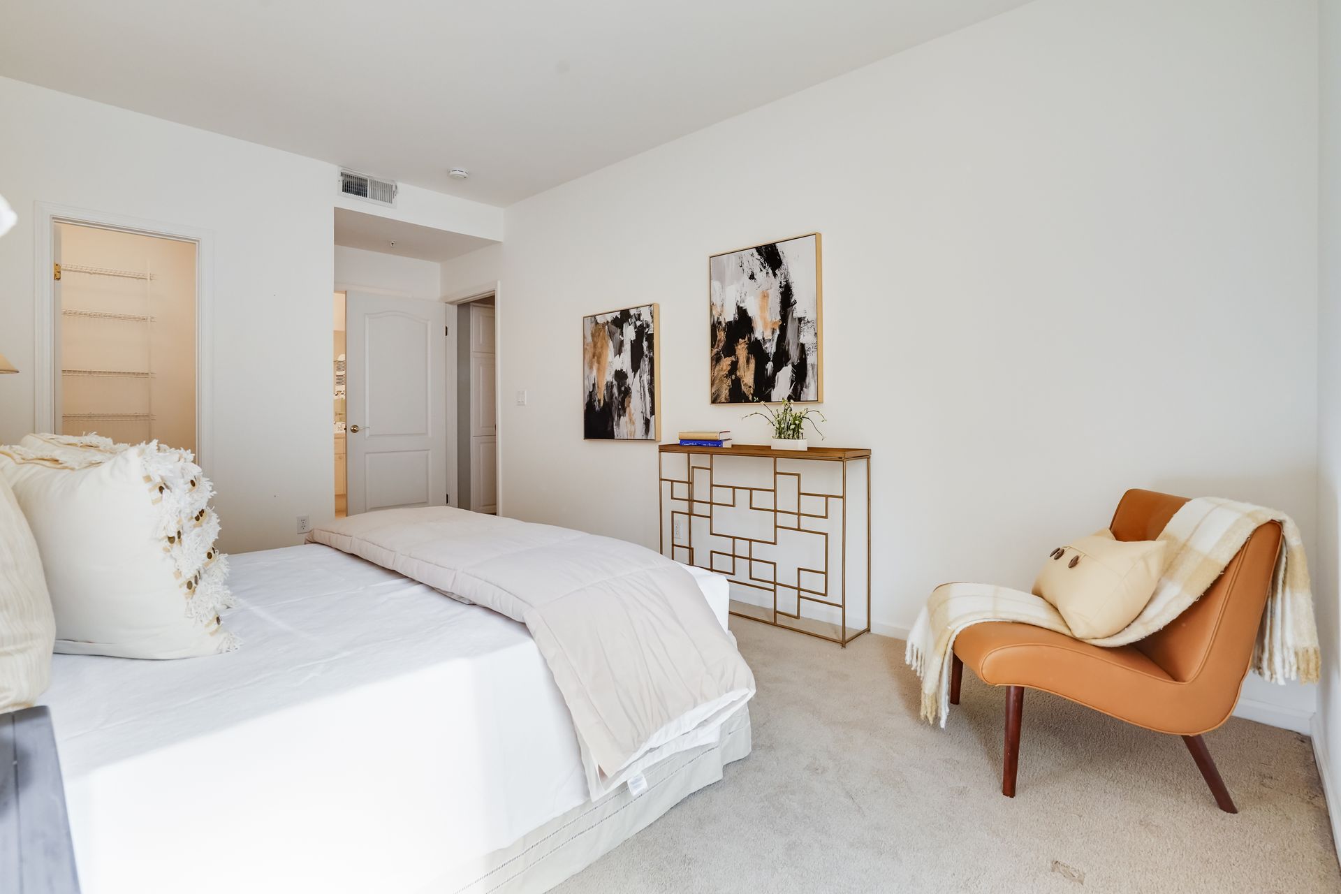 This quintessential sophisticated showstopper is a chic decorator showcase located in the Corte Bella Spanish Mediterranean secured complex. It is complimented by dove gray interior paint, gorgeous plantation shutters and Navajo white carpeting. The state-of-the-art gleaming white galley kitchen will delight any chef. Past the wood-burning fireplace with a stunning mantle is access to a patio, ideal for that morning cup of coffee. Relax in your primary suite with a large walk-in closet and luxury bath, highlighting this highly desirable unit. The second bedroom can dual as an office, the hallway is lined by a laundry closet with a full size washer and dryer and there is a second spacious full bath. Don’t miss the two deeded parking spaces in the common garage.