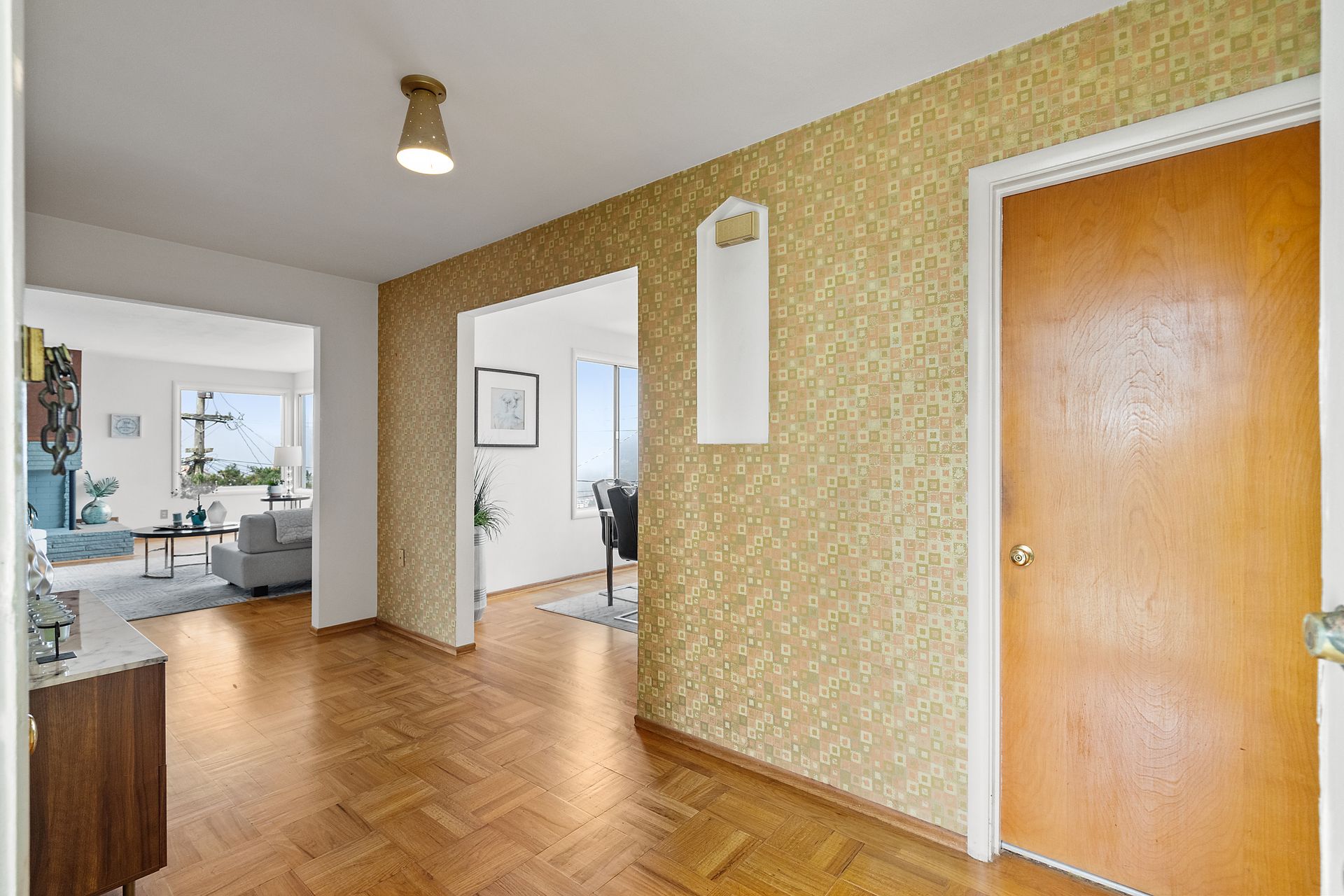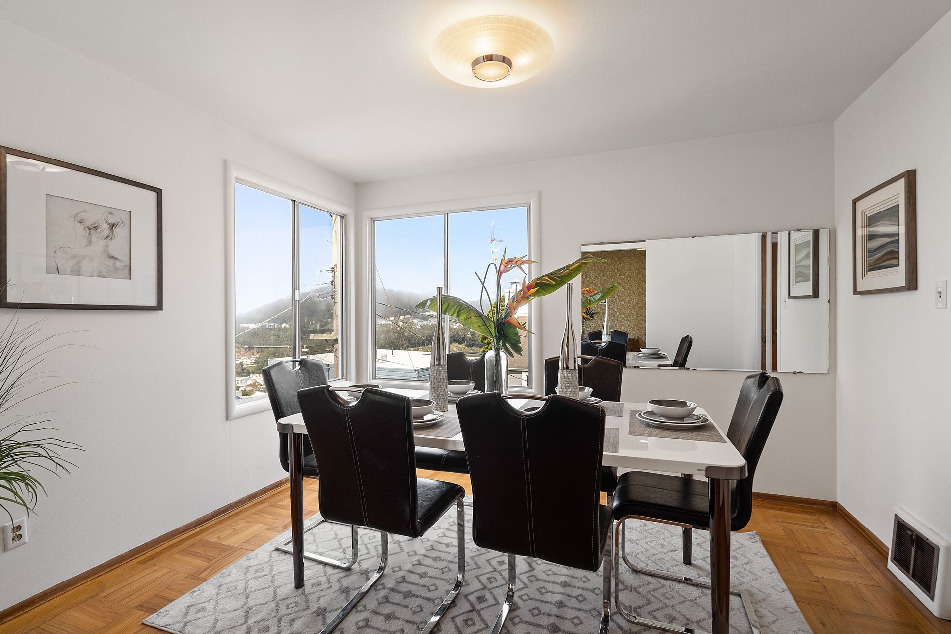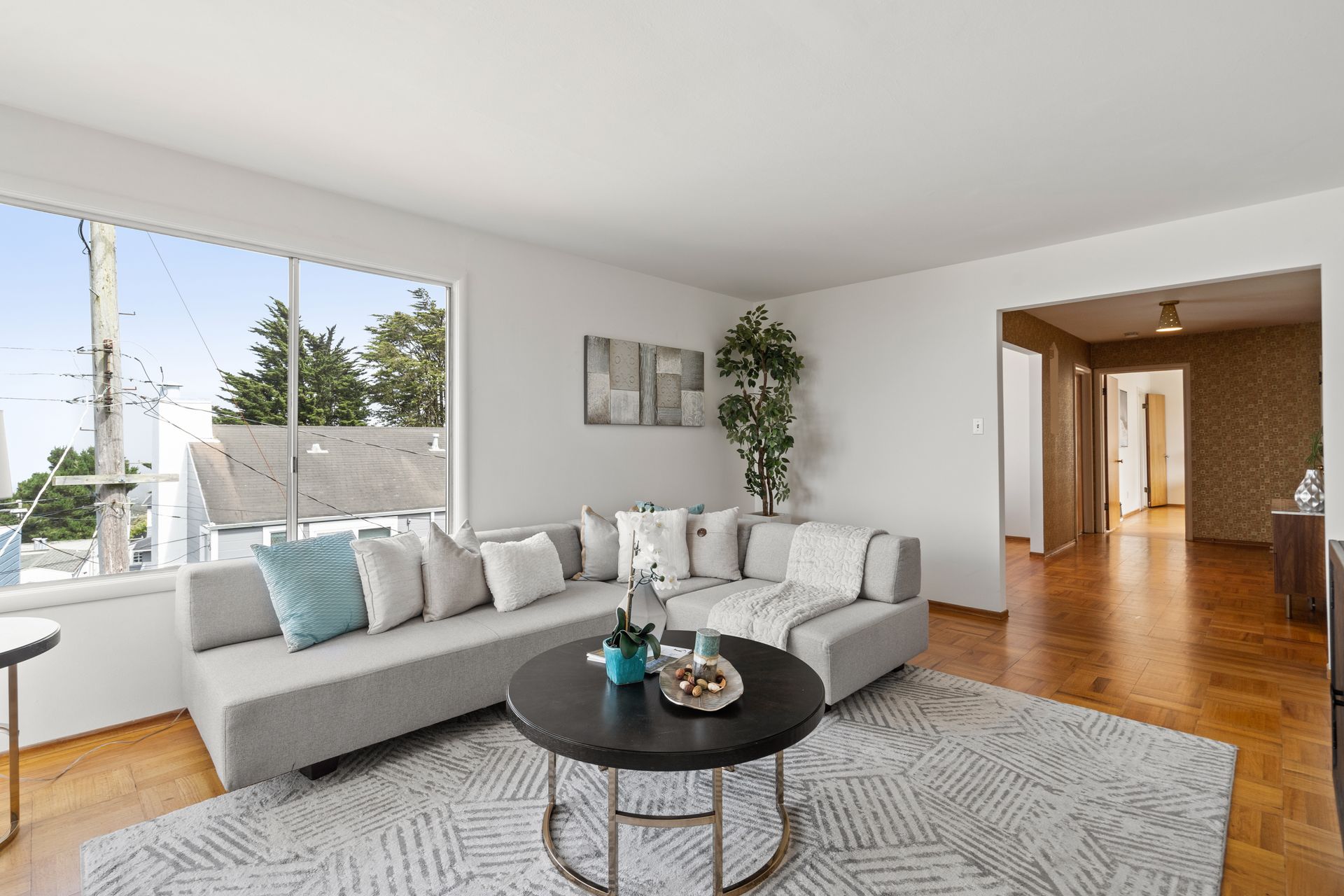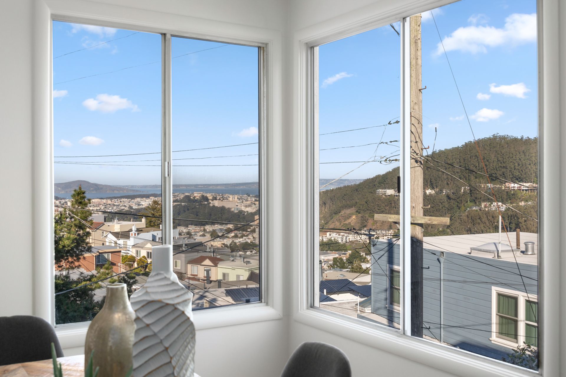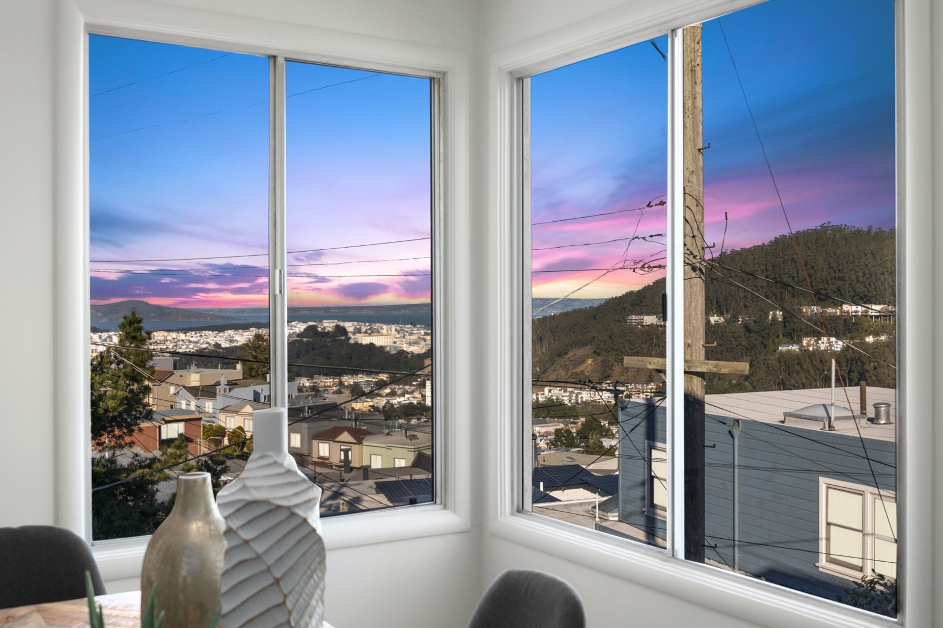 First time on the market! Stunning Downtown Views. A prized Jewel sitting on Funston Avenue in tranquil, captivating Golden Gate Heights. The fully detached home offers freshly painted interior and exterior, featuring all 3 bedrooms and 2 baths on the main level, including an ensuite with skylight, hardwood floors throughout and 2 bonus rooms downstairs that has a separate entrance. Living room impresses with city and ocean views, a corner fireplace and an abundance of natural light. The large living room is adjacent to a formal dining room with spectacular city views and beyond. Kitchen is big and airy with lots of counter space and seating by the window. The vintage bath has a separate bathtub and shower. Downstairs features attractively high ceiling, a family room that overlooks the yard, a spacious office facing the front, an unfinished half bath, an enormous garage for storage, laundry and 2 car side-by-side. Additional 3 car parking on the driveway. New roof installed in 2021.