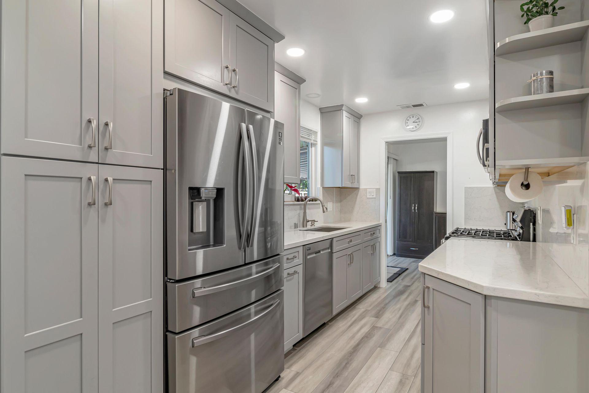 This lovely single-level home features spacious 4bd and 2ba and 1,764 sq ft of living space. The kitchen has been fully remodeled with new stainless-steel appliances, flooring, marble counters and backsplash, and an eat-in kitchen. Other features include dining area, updated bathroom with marble shower walls, paint, attractive laminate/hardwood looking flooring, baseboards, water heater, dual pane windows, copper plumbing, sewer line, A/C, a spacious 2 car garage, and an avocado tree. This home also features a charming permitted 800 sq ft attached in-law/ADU, with separate entrance, bay window, full bath, and kitchenette. This can also be used for growing families or for potential rental income. *In-law/ADU included in square feet.