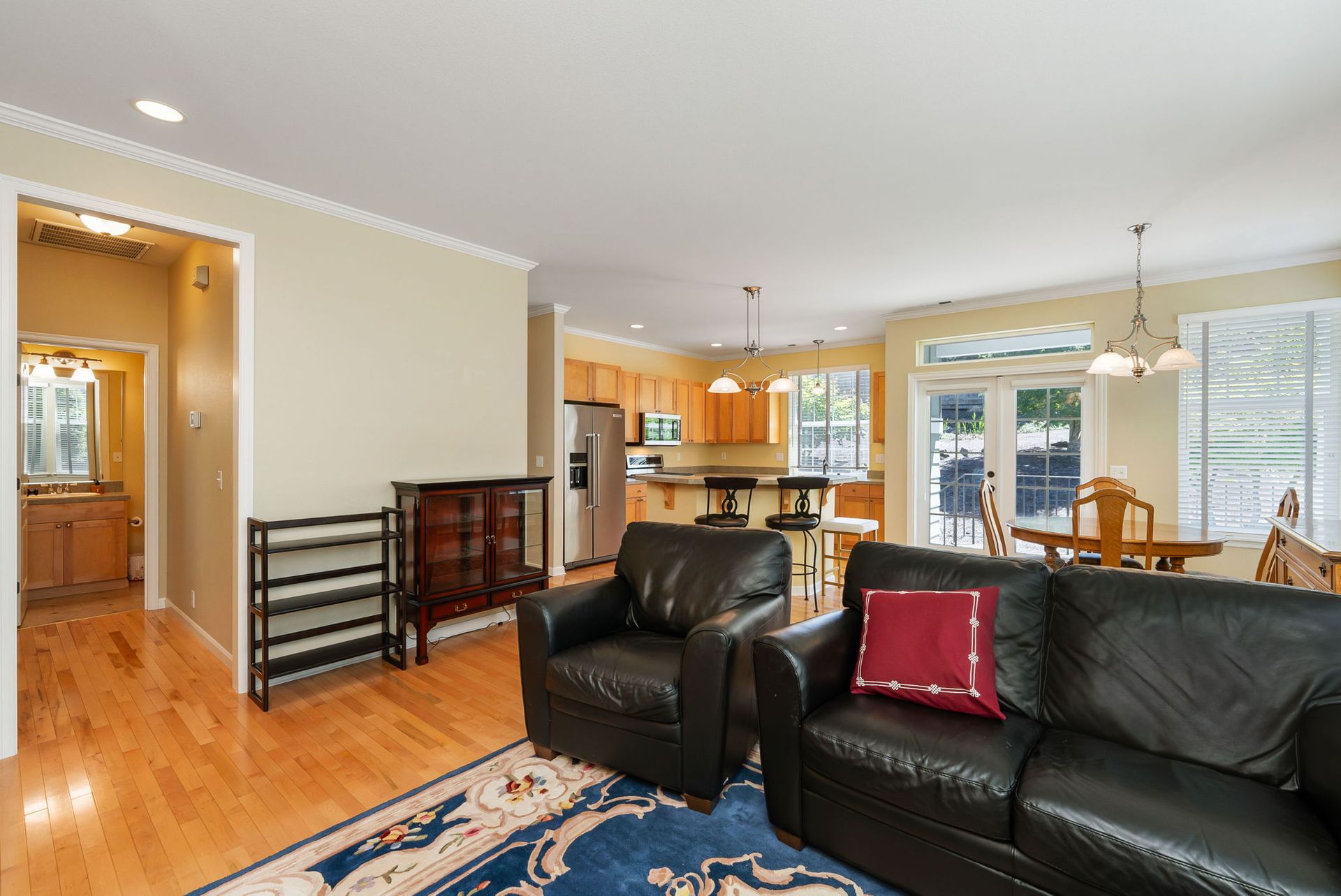 This is the home you've been waiting for! This one-level home has been meticulously maintained and is nestled in the heart of Poulsbo in sought-after Poulsbo Place. Imagine yourself minutes from quaint downtown Poulsbo with its charming shops, top-notch restaurants and beautiful waterfront park. This home features a roomy primary bedroom with an en-suite bath, hardwood flooring throughout the main living space, a two-sided gas fireplace and a spacious kitchen with all newer appliances. Central A/C will keep you cool during the summer. There is even the elusive two-car garage. This is carefree living at its best! Close to bases, Bainbridge Island Ferry and shopping.