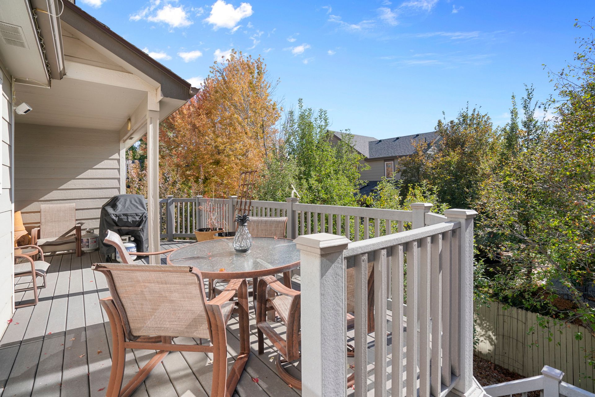 Welcome to this stunning five-bedroom, five-bathroom home spanning nearly 4,300 square feet in the highly desirable Tuscany neighborhood. From the grand foyer with vaulted ceilings, you’re immediately welcomed by elegance and space. The formal living room flows seamlessly into a sophisticated dining area, perfect for gatherings. The gourmet kitchen connects to a bright dining nook with access to a covered balcony, ideal for outdoor relaxation. The cozy family room, centered around a warm fireplace, provides a perfect retreat. The main level also offers a versatile bedroom or home office, a three-quarter bath, laundry room and access to the three-car garage. Upstairs, the luxurious primary suite features a spacious sitting area, a see-through fireplace and a spa-like five-piece bath. Two additional bedrooms and a full bathroom complete the upper level. The fully finished walk-out basement provides guest quarters with a large family room, full kitchen, fifth bedroom (with laundry hook-up), a three-quarter bath and a half bath. Exit outside to the serene backyard, featuring fruit trees and a covered stamped concrete patio. Located within the top-rated Cherry Creek School District and surrounded by parks and shopping, this home combines luxury living with a vibrant community. Don’t miss your chance to own this exceptional property!