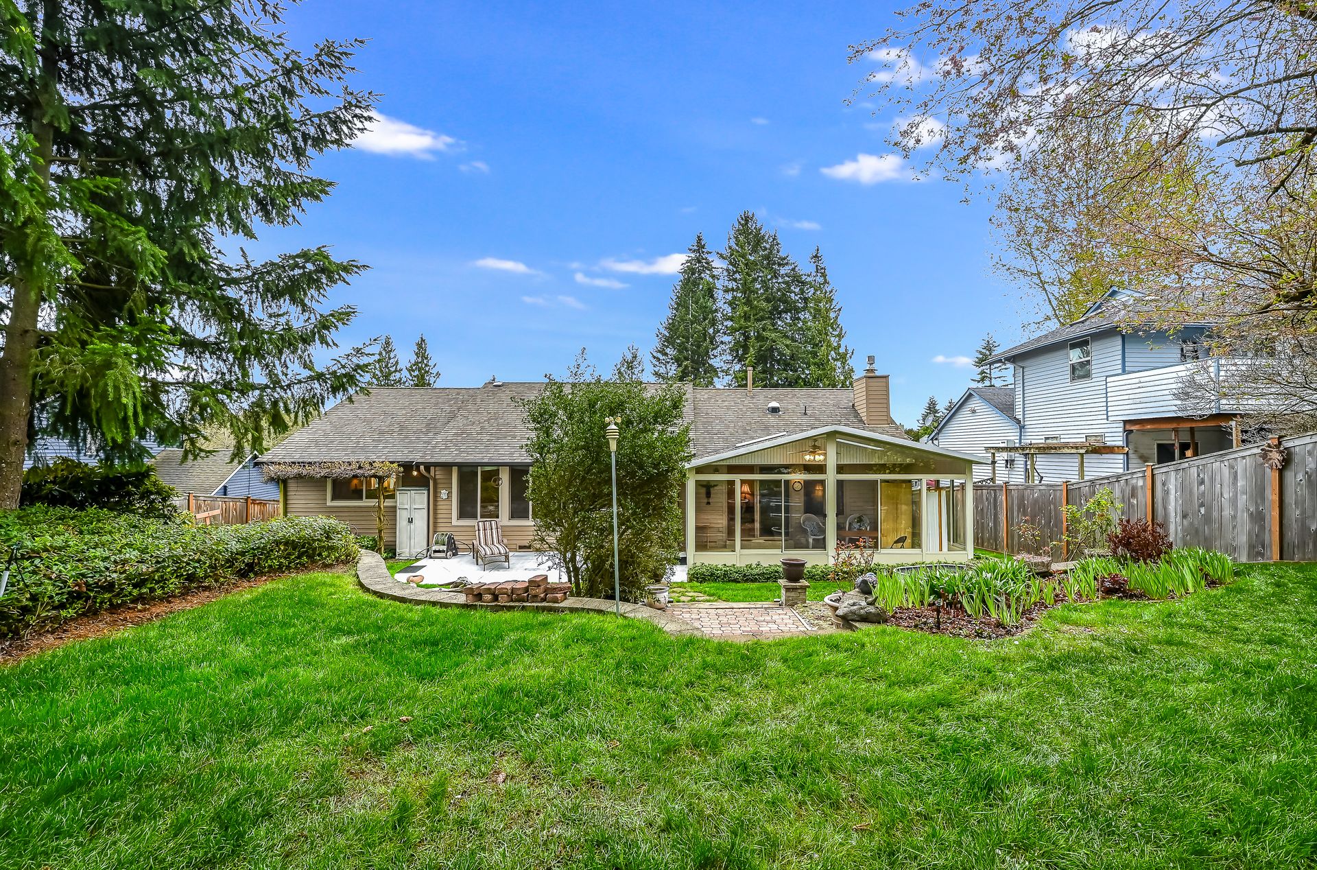Step into this meticulously maintained, three bedroom, two bath rambler. The kitchen has updated counters, white appliances and a brand-new dishwasher. Additional eating space with a bay window overlooking the front yard along with the welcoming covered front porch. Family room with tons of natural light that opens to a 20 X 11-square-foot sunroom, which brings in the outdoors all year long; complete with a gas-burning fireplace and built-in storage. Formal living and dining with updated windows overlooking the gorgeous landscape. The primary bedroom features a walk-in closet and an updated en-suite bathroom with dual sinks and a walk-in shower. Two additional bedrooms plus a full, updated main hall bath. Air conditioning for your comfort, installed in 2018. New windows, millwork 2012. Stunning landscape with a meticulously maintained yard, offering serene living. Close proximity to walking trails. New crawlspace 2024. Hurry, this one won't last!