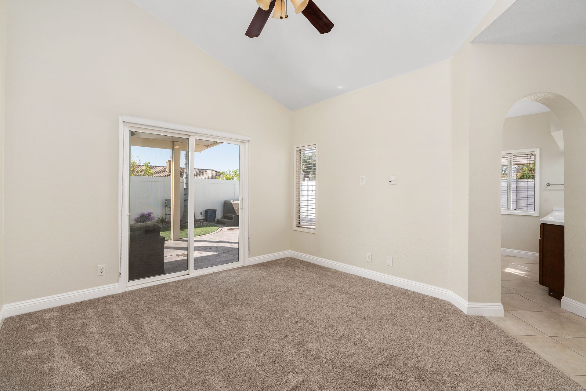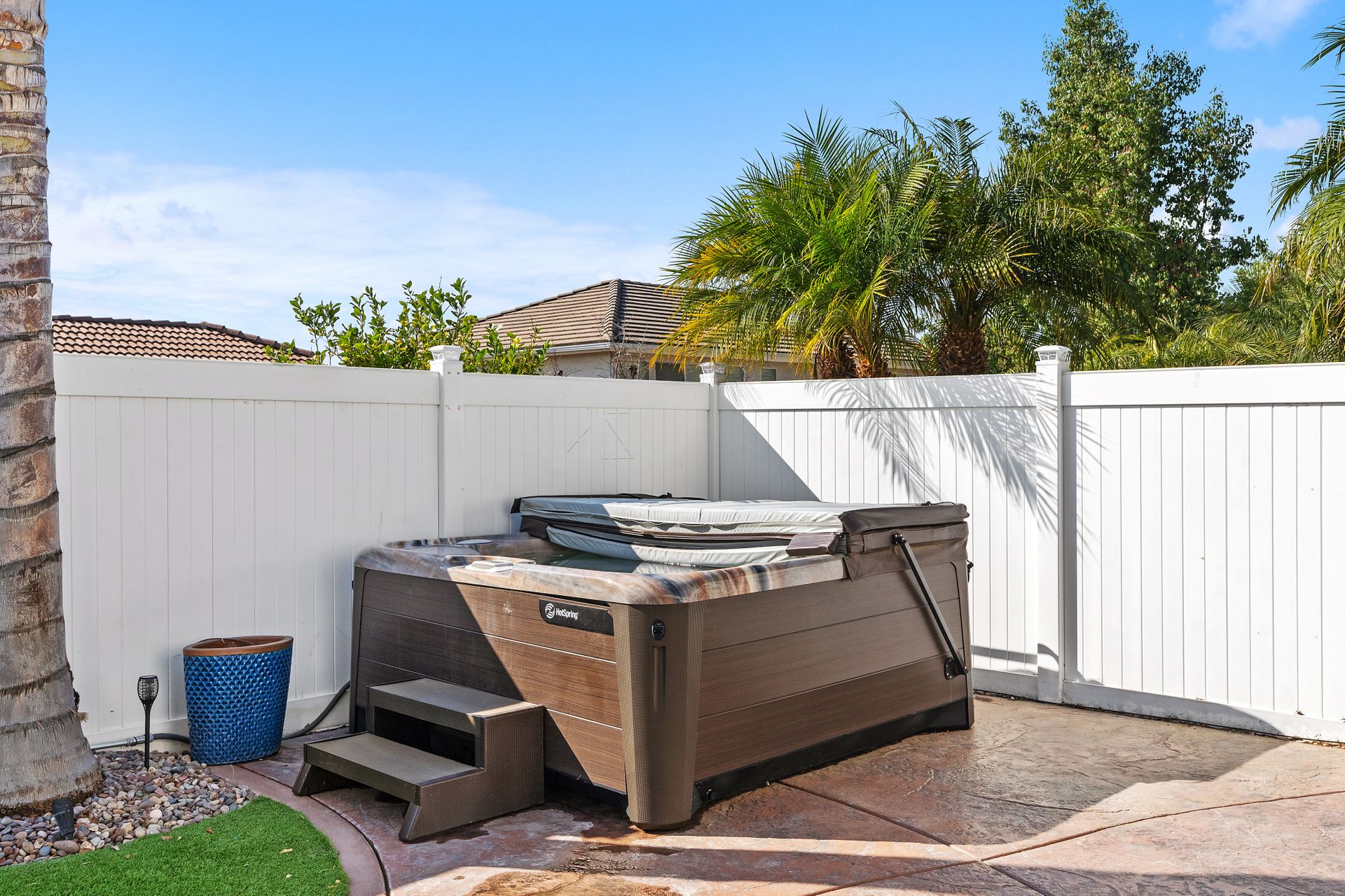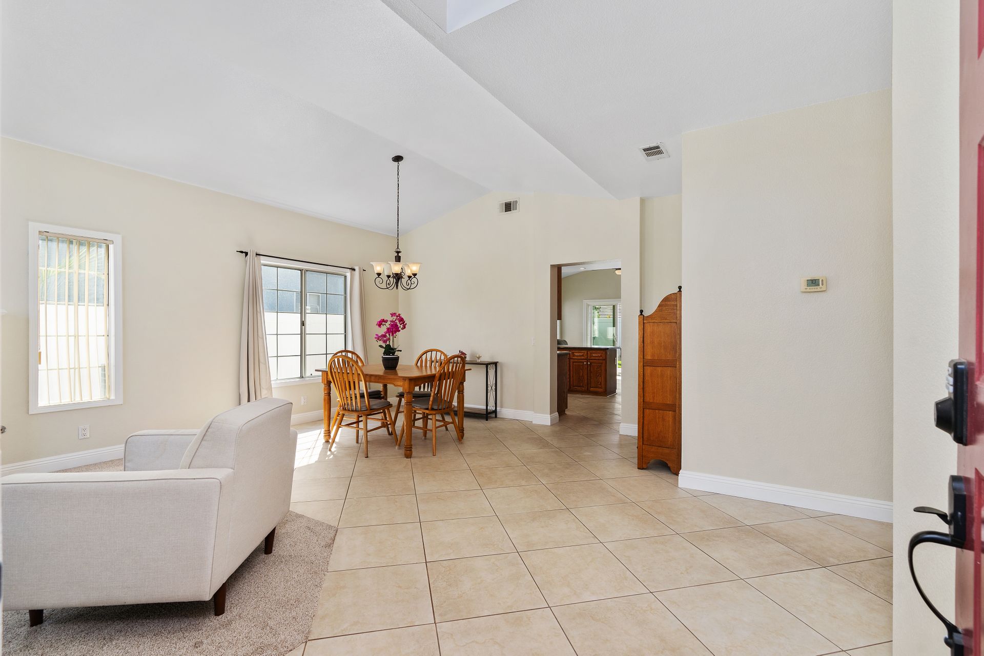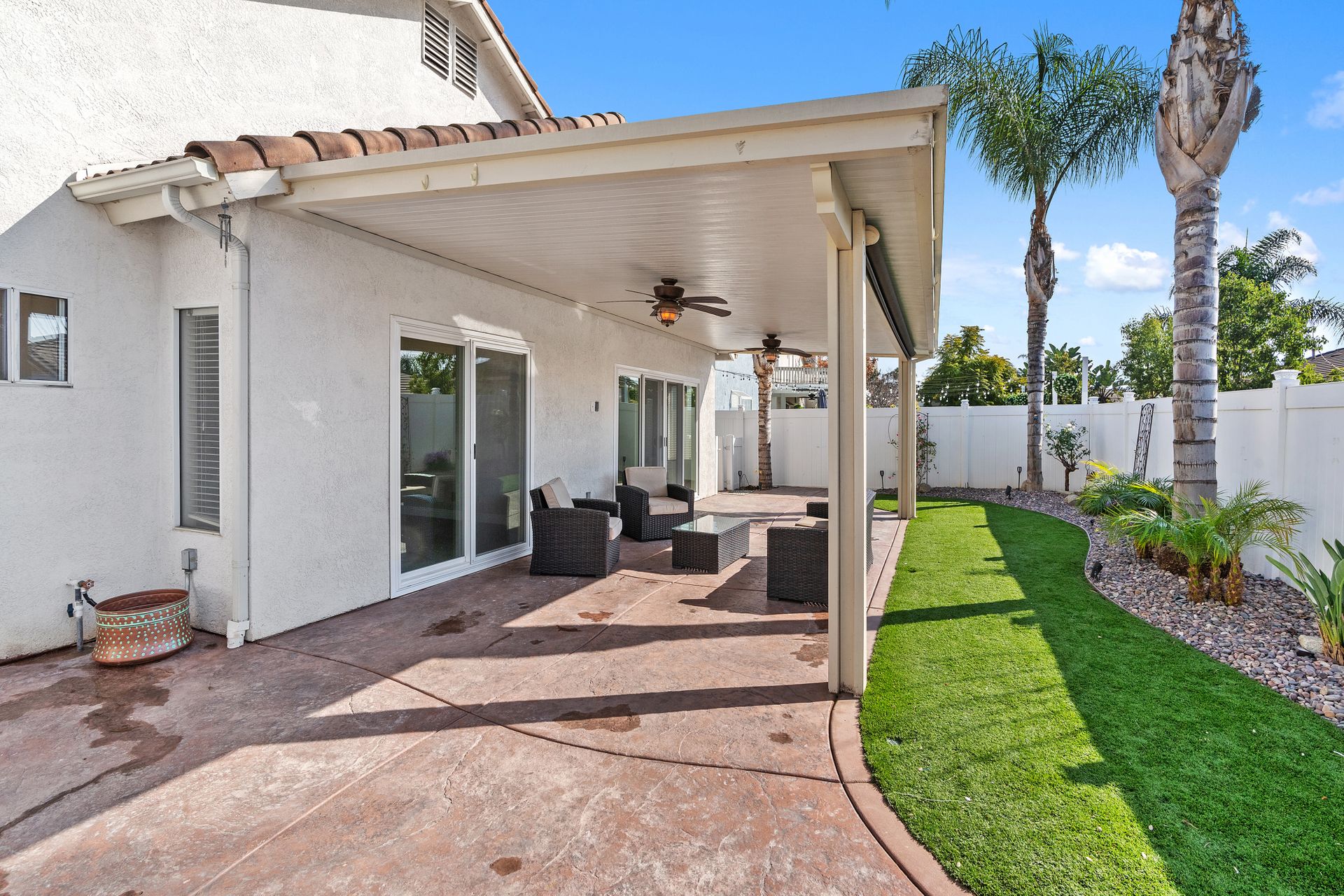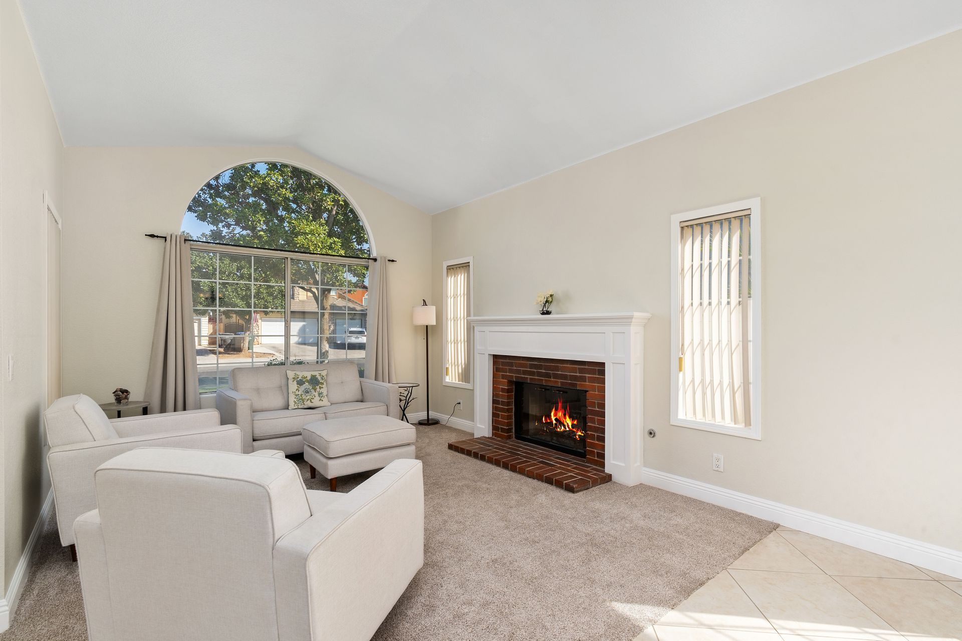 Turnkey Single-Story Home in Orangecrest. This beautifully updated home in the desirable Orangecrest neighborhood offers comfort and style with modern features throughout. Step into a spacious formal living room with abundant natural light and a cozy fireplace, complemented by vaulted ceilings. The adjoining dining area creates an inviting space for family meals or entertaining guests. The recently remodeled hall bathroom adds a touch of luxury, and the convenient indoor laundry room ensures easy living. The primary suite is a true retreat, with a newly remodeled bathroom featuring a dual sink vanity with quartz counters, ample storage, and a spa-like walk-in shower. A sliding door off the primary bedroom opens to the serene backyard. Plus, the spacious walk-in closet is perfect for organizing all your essentials. The home has been freshly painted, and new carpet has been installed in all bedrooms. Ceiling fans in every bedroom and the family room provide year-round comfort. Secondary bedrooms are equipped with mirrored closet doors and built-in organizers. The kitchen is designed for functionality, offering plenty of counter space and storage while opening to the family room with vaulted ceilings and oversized sliders that lead to the beautifully landscaped backyard. Enjoy outdoor living with a low-maintenance turf lawn, perfect for entertaining, and an above-ground saltwater jacuzzi with built-in speakers for added enjoyment. The stamped concrete patio is enhanced by a solid Alumawood cover featuring ceiling fans, lights, and rain gutters, along with a remote-controlled sunshade for added comfort. Vinyl fencing with solar lights adds privacy and charm. Located near Orange Terrace Community Park, with easy access to shopping, dining, entertainment and major freeways. This home combines convenience with a tranquil lifestyle.