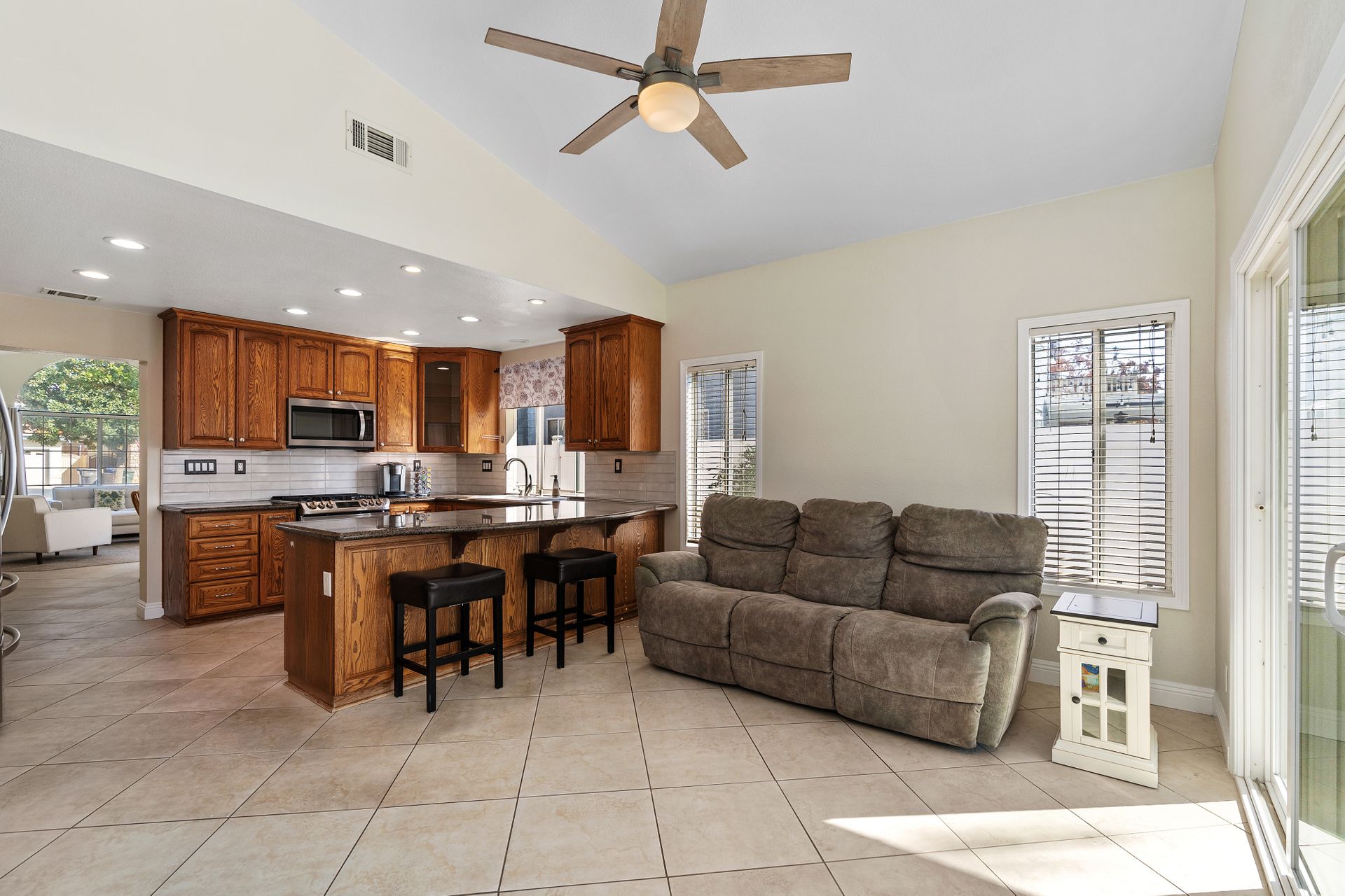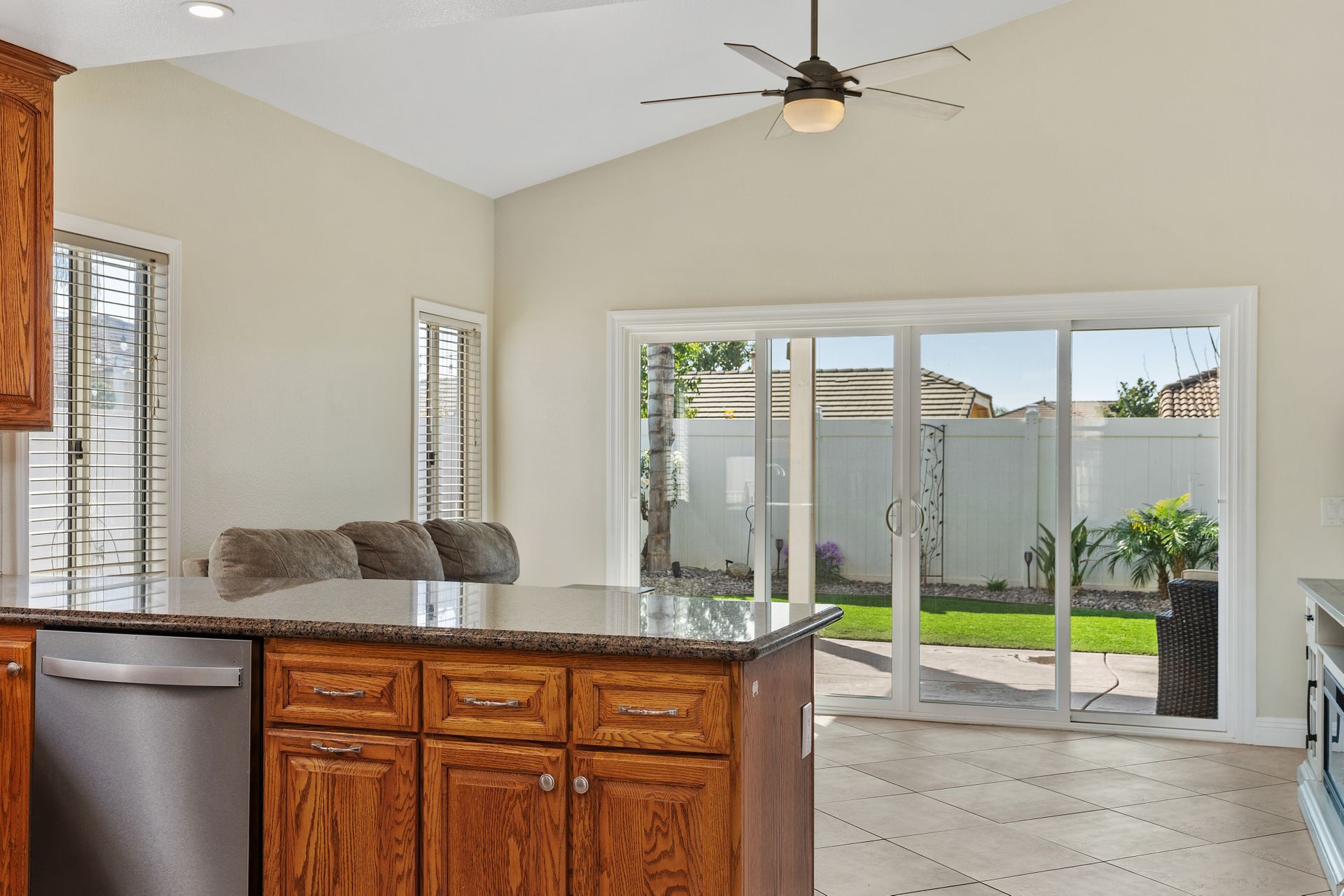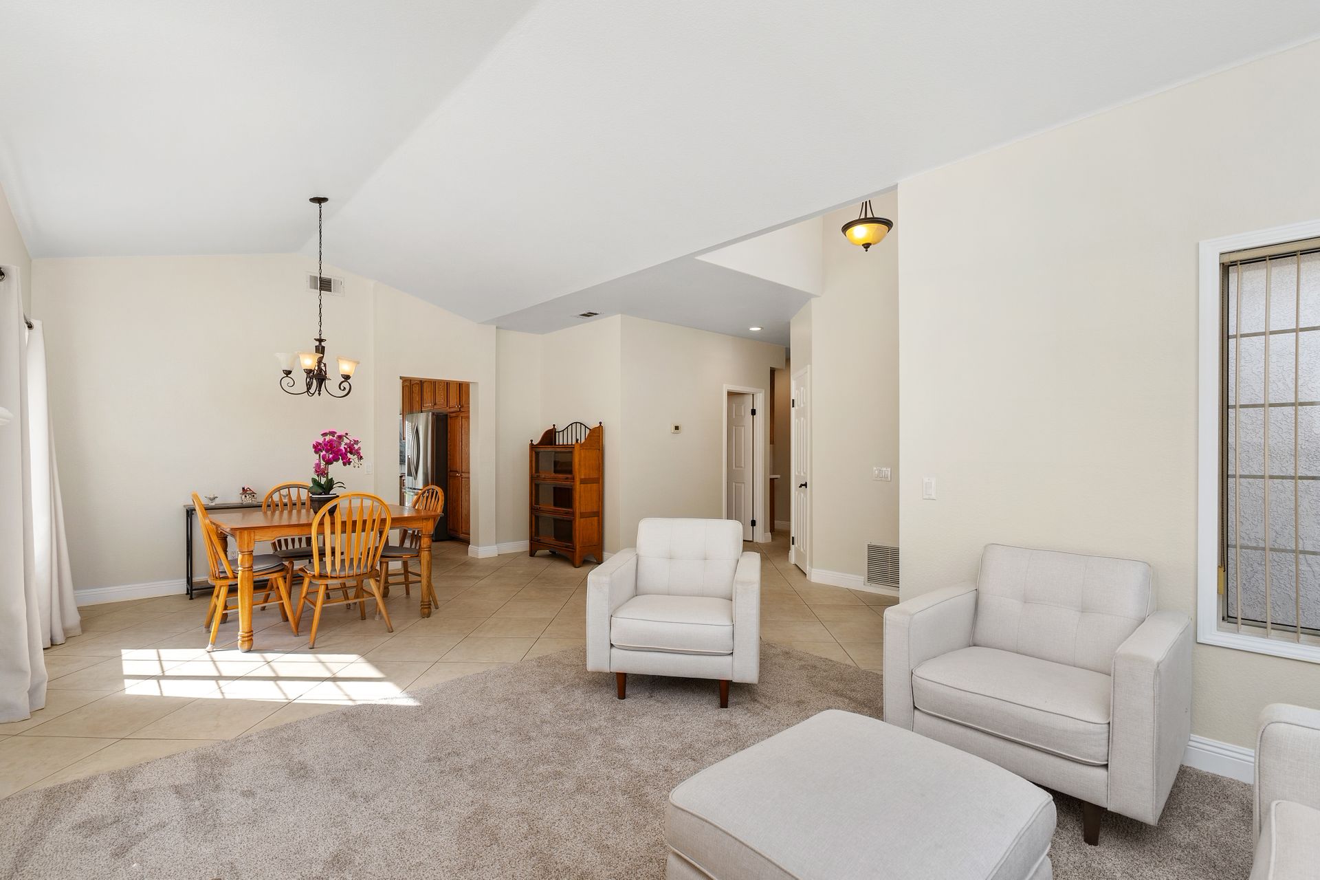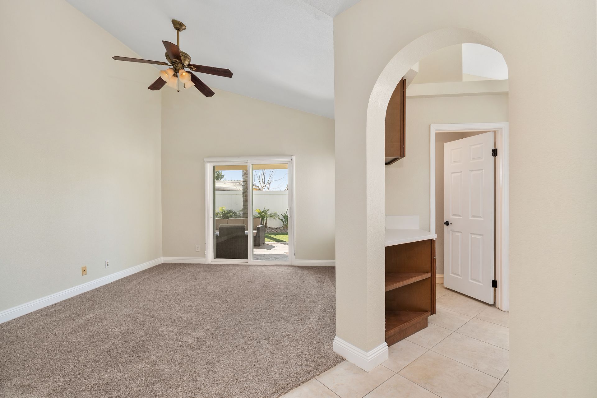 Turnkey Single-Story Home in Orangecrest. This beautifully updated home in the desirable Orangecrest neighborhood offers comfort and style with modern features throughout. Step into a spacious formal living room with abundant natural light and a cozy fireplace, complemented by vaulted ceilings. The adjoining dining area creates an inviting space for family meals or entertaining guests. The recently remodeled hall bathroom adds a touch of luxury, and the convenient indoor laundry room ensures easy living. The primary suite is a true retreat, with a newly remodeled bathroom featuring a dual sink vanity with quartz counters, ample storage, and a spa-like walk-in shower. A sliding door off the primary bedroom opens to the serene backyard. Plus, the spacious walk-in closet is perfect for organizing all your essentials. The home has been freshly painted, and new carpet has been installed in all bedrooms. Ceiling fans in every bedroom and the family room provide year-round comfort. Secondary bedrooms are equipped with mirrored closet doors and built-in organizers. The kitchen is designed for functionality, offering plenty of counter space and storage while opening to the family room with vaulted ceilings and oversized sliders that lead to the beautifully landscaped backyard. Enjoy outdoor living with a low-maintenance turf lawn, perfect for entertaining, and an above-ground saltwater jacuzzi with built-in speakers for added enjoyment. The stamped concrete patio is enhanced by a solid Alumawood cover featuring ceiling fans, lights, and rain gutters, along with a remote-controlled sunshade for added comfort. Vinyl fencing with solar lights adds privacy and charm. Located near Orange Terrace Community Park, with easy access to shopping, dining, entertainment and major freeways. This home combines convenience with a tranquil lifestyle.