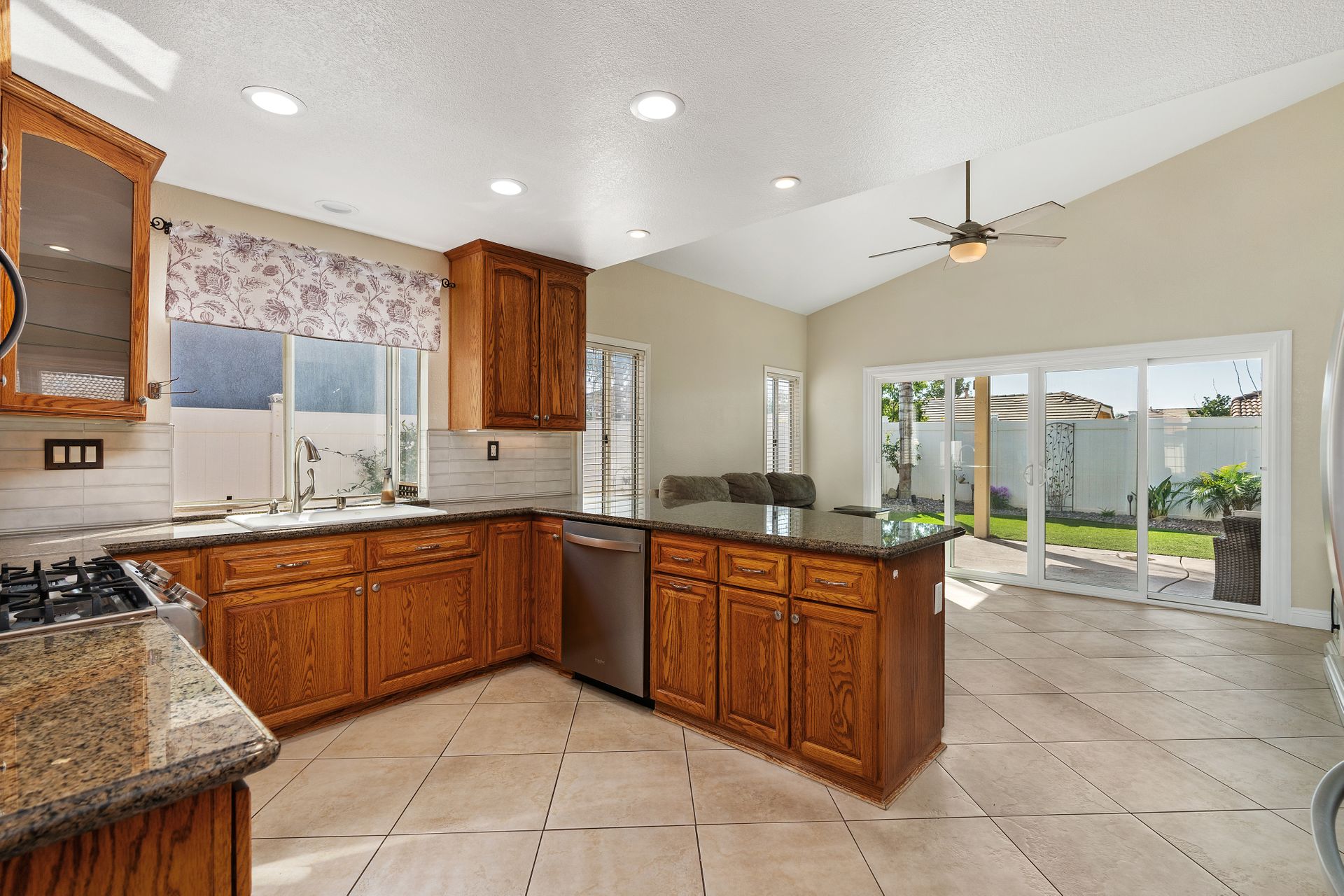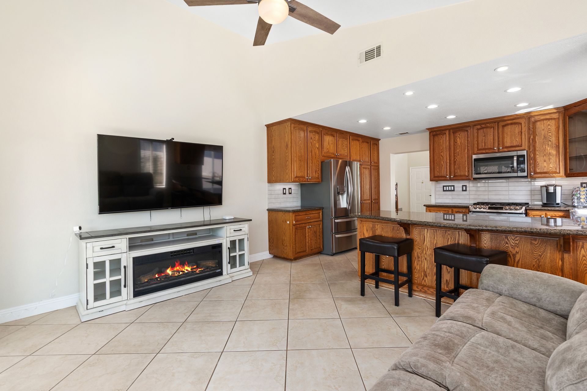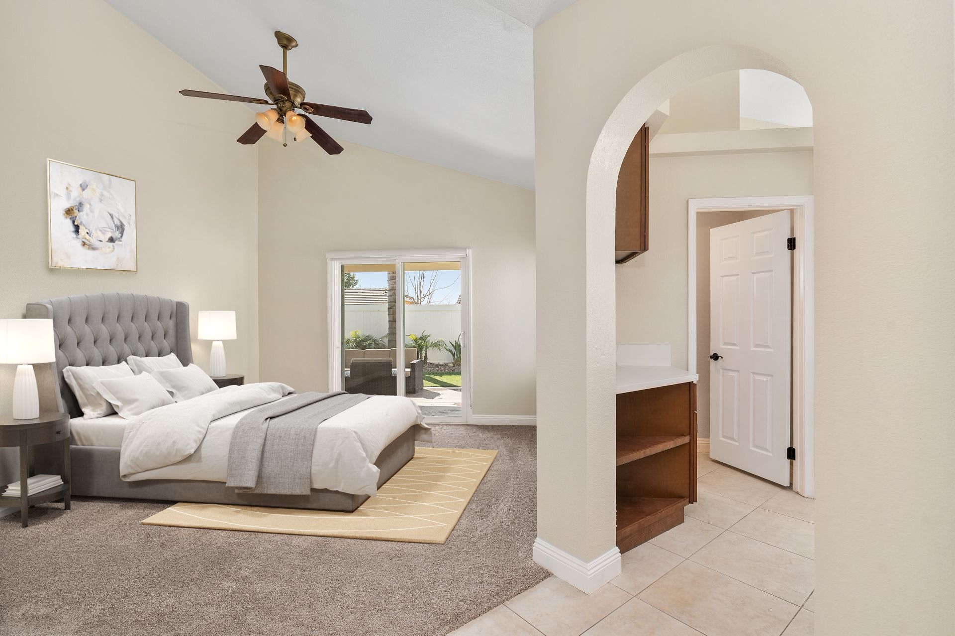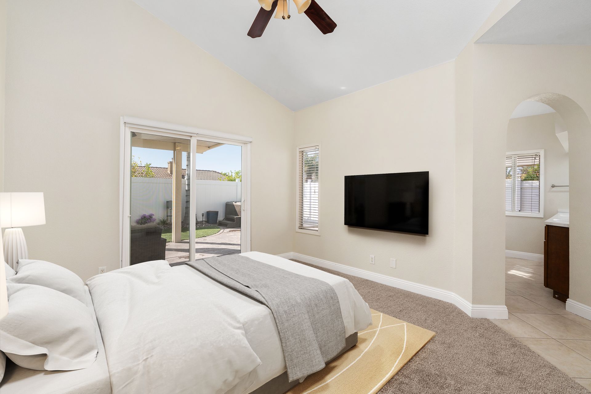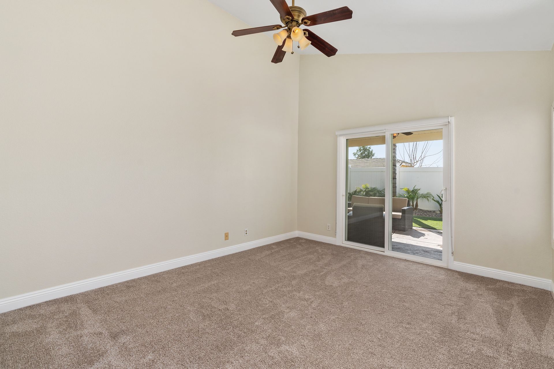 Turnkey Single-Story Home in Orangecrest. This beautifully updated home in the desirable Orangecrest neighborhood offers comfort and style with modern features throughout. Step into a spacious formal living room with abundant natural light and a cozy fireplace, complemented by vaulted ceilings. The adjoining dining area creates an inviting space for family meals or entertaining guests. The recently remodeled hall bathroom adds a touch of luxury, and the convenient indoor laundry room ensures easy living. The primary suite is a true retreat, with a newly remodeled bathroom featuring a dual sink vanity with quartz counters, ample storage, and a spa-like walk-in shower. A sliding door off the primary bedroom opens to the serene backyard. Plus, the spacious walk-in closet is perfect for organizing all your essentials. The home has been freshly painted, and new carpet has been installed in all bedrooms. Ceiling fans in every bedroom and the family room provide year-round comfort. Secondary bedrooms are equipped with mirrored closet doors and built-in organizers. The kitchen is designed for functionality, offering plenty of counter space and storage while opening to the family room with vaulted ceilings and oversized sliders that lead to the beautifully landscaped backyard. Enjoy outdoor living with a low-maintenance turf lawn, perfect for entertaining, and an above-ground saltwater jacuzzi with built-in speakers for added enjoyment. The stamped concrete patio is enhanced by a solid Alumawood cover featuring ceiling fans, lights, and rain gutters, along with a remote-controlled sunshade for added comfort. Vinyl fencing with solar lights adds privacy and charm. Located near Orange Terrace Community Park, with easy access to shopping, dining, entertainment and major freeways. This home combines convenience with a tranquil lifestyle.