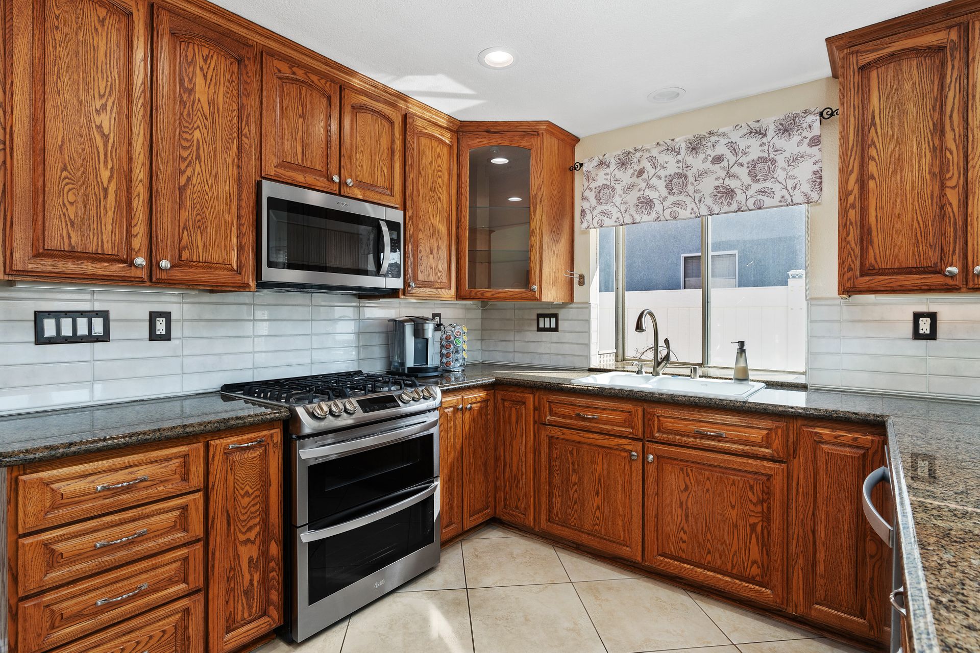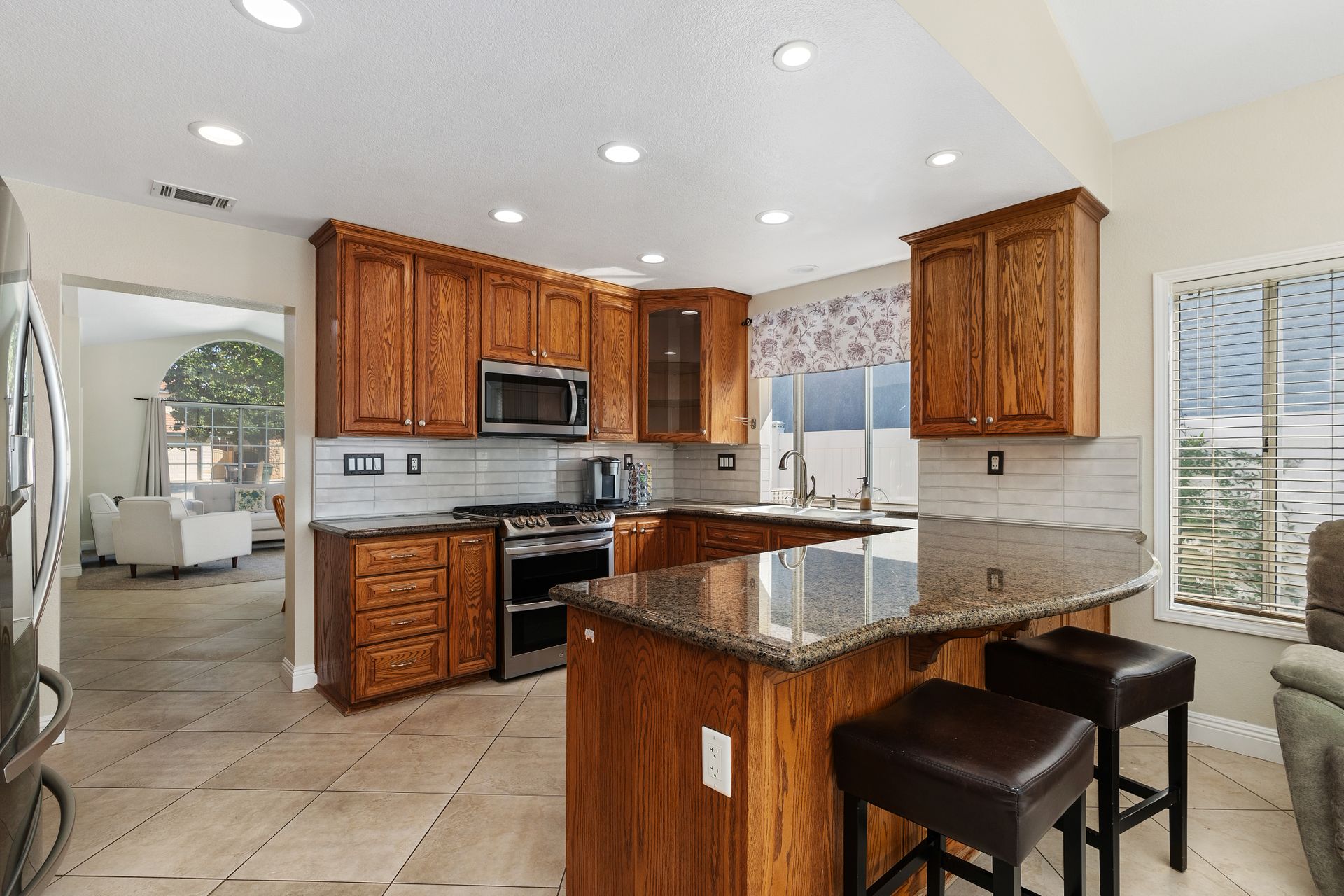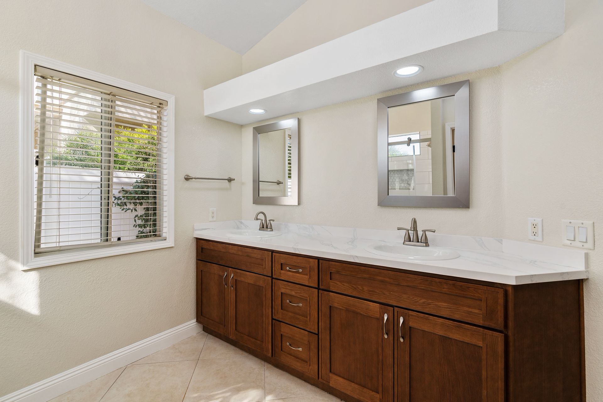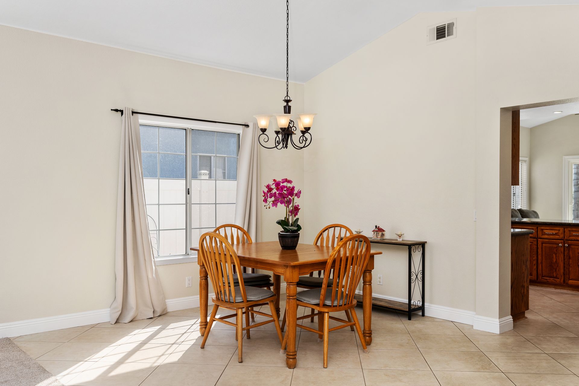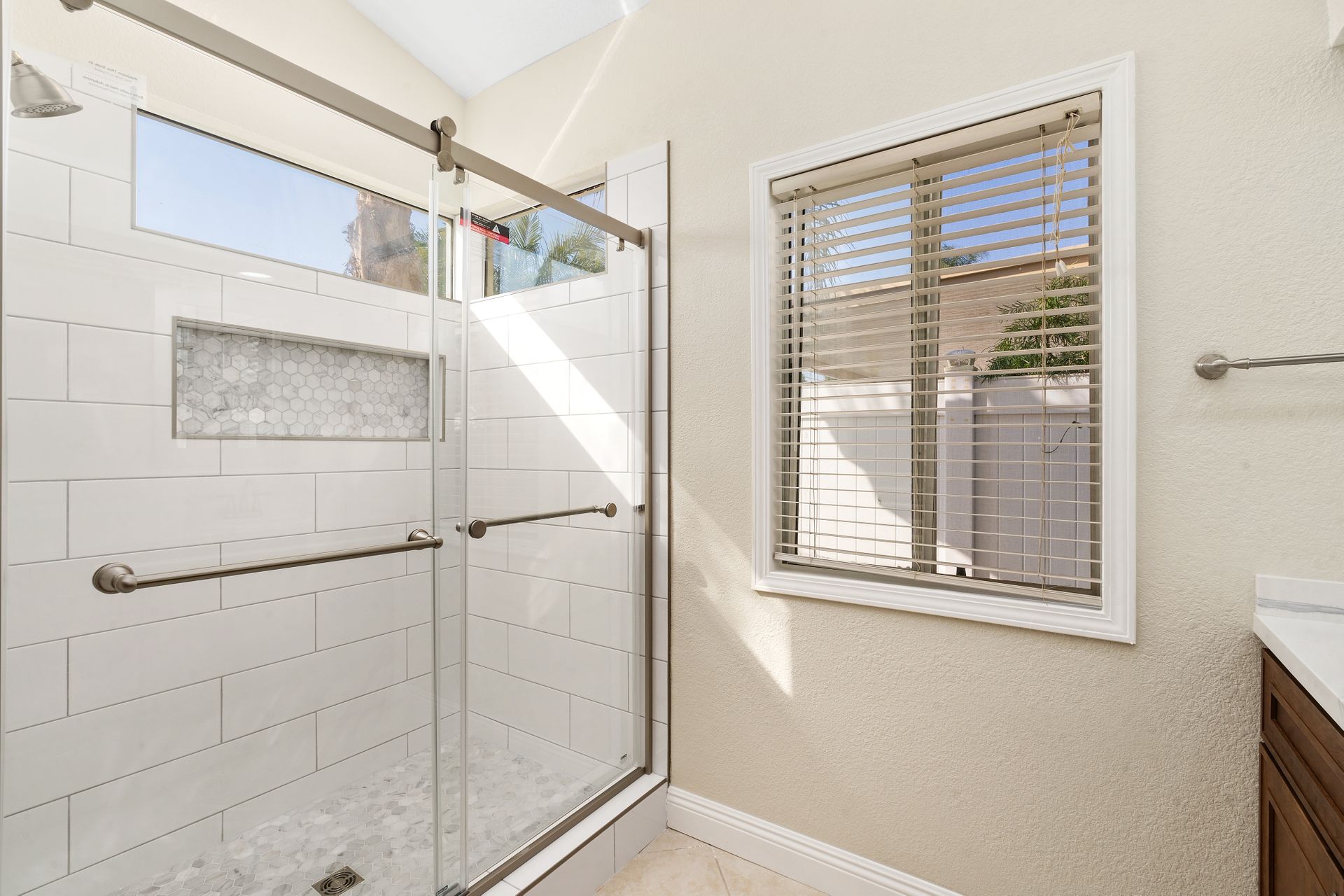 Turnkey Single-Story Home in Orangecrest. This beautifully updated home in the desirable Orangecrest neighborhood offers comfort and style with modern features throughout. Step into a spacious formal living room with abundant natural light and a cozy fireplace, complemented by vaulted ceilings. The adjoining dining area creates an inviting space for family meals or entertaining guests. The recently remodeled hall bathroom adds a touch of luxury, and the convenient indoor laundry room ensures easy living. The primary suite is a true retreat, with a newly remodeled bathroom featuring a dual sink vanity with quartz counters, ample storage, and a spa-like walk-in shower. A sliding door off the primary bedroom opens to the serene backyard. Plus, the spacious walk-in closet is perfect for organizing all your essentials. The home has been freshly painted, and new carpet has been installed in all bedrooms. Ceiling fans in every bedroom and the family room provide year-round comfort. Secondary bedrooms are equipped with mirrored closet doors and built-in organizers. The kitchen is designed for functionality, offering plenty of counter space and storage while opening to the family room with vaulted ceilings and oversized sliders that lead to the beautifully landscaped backyard. Enjoy outdoor living with a low-maintenance turf lawn, perfect for entertaining, and an above-ground saltwater jacuzzi with built-in speakers for added enjoyment. The stamped concrete patio is enhanced by a solid Alumawood cover featuring ceiling fans, lights, and rain gutters, along with a remote-controlled sunshade for added comfort. Vinyl fencing with solar lights adds privacy and charm. Located near Orange Terrace Community Park, with easy access to shopping, dining, entertainment and major freeways. This home combines convenience with a tranquil lifestyle.