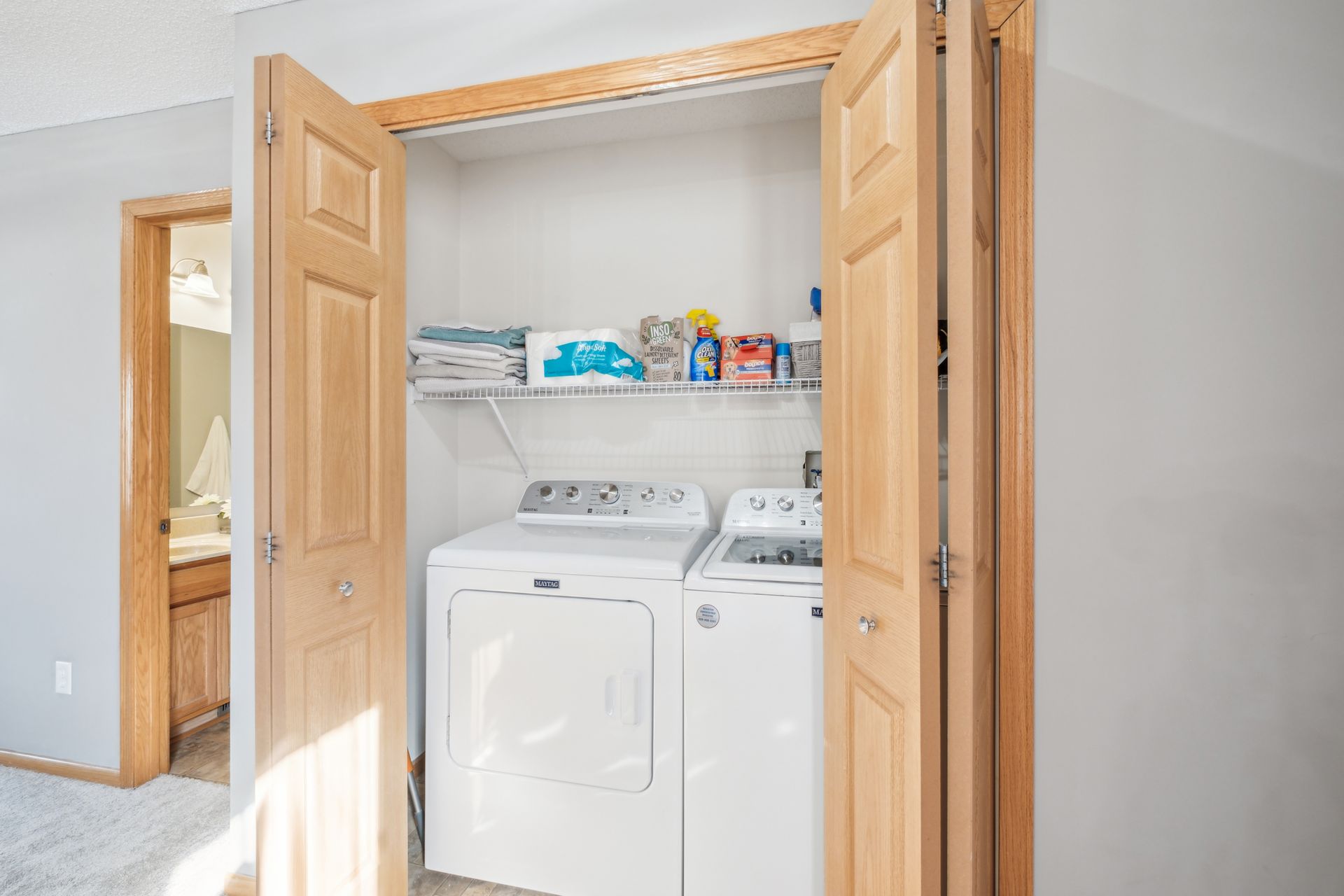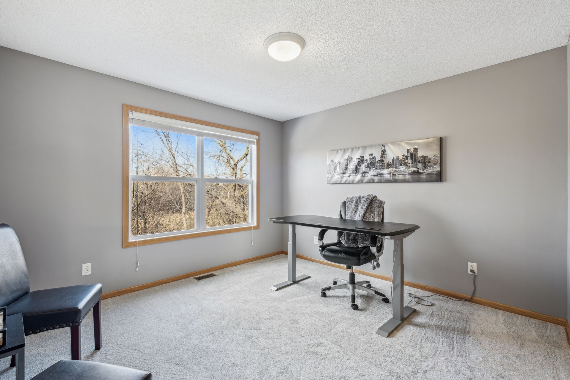 Upstairs, you’ll find the vaulted primary bedroom with a walk-in closet and a convenient walk-through bathroom. A second bedroom (currently used as an office) overlooks the wooded backyard. A second-floor laundry room adds ease to daily routines, while a loft area provides flexible space for an office, reading nook, or play area.