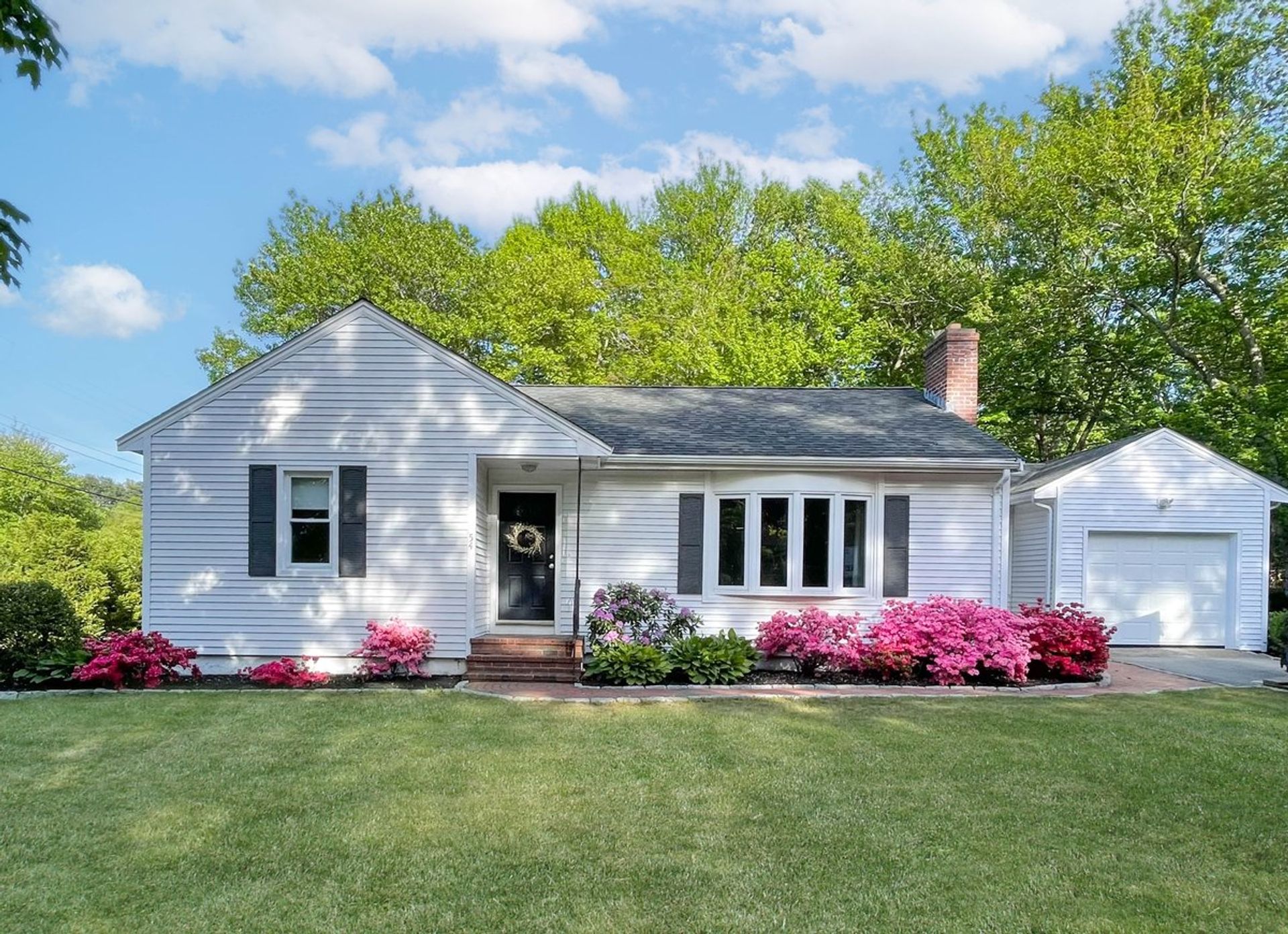 Enjoy all the benefits of living in Hingham with easy access to all the South Shore has to offer! This charming Ranch-style home sits on the corner of a quiet cul-de-sac side street abutting beautiful Accord Pond - and you can be on the highway to Boston or Cape Cod in under three minutes! Seconds to Queen Anne's corner or Derby Street Shops as well. The property features a beautiful half-acre lot with a nice private yard offering mature landscaping and lawn irrigation. The house boasts a shiny and bright kitchen featuring granite countertops, stainless steel appliances and gleaming hardwood floors, a cozy dining room and large sunny living room where you can entertain or just relax by the fireplace. Generously sized bedrooms complete the picture in this lovely, perfectly situated home. An immaculate full basement with a walk-out to the backyard and a wood-burning fireplace offers more potential for the renovation-minded buyer to add a bonus room, an office or an extra bedroom - whatever you need. Whether you are seeking your first home in Hingham or looking to downsize in style, this home is just what you’ve been waiting for. All you have to do is move in and enjoy!