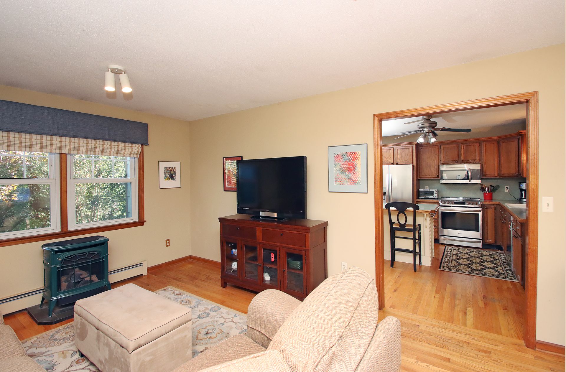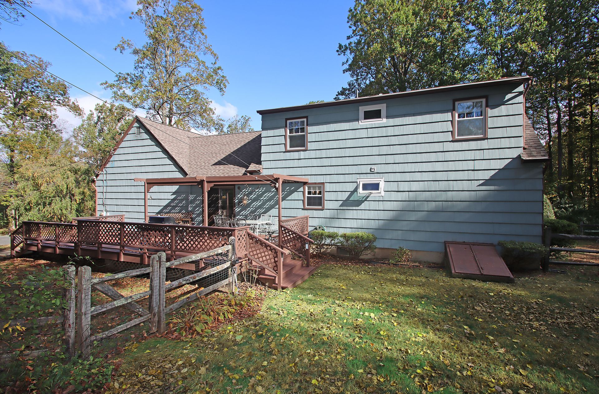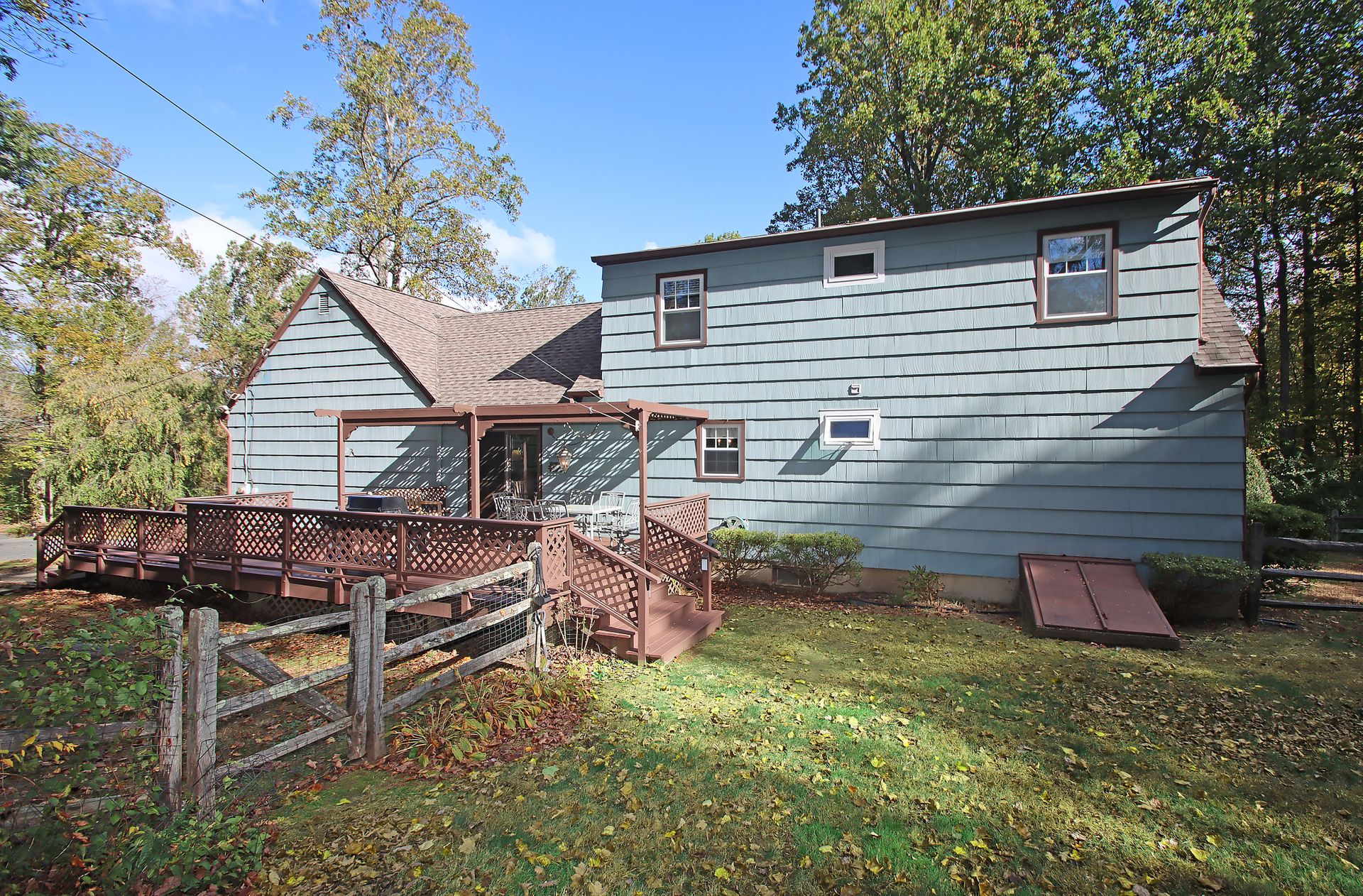 This house is well sited on a lovely flat, professionally landscaped 2+/- acre lot, with a partial fence for access from the over-sized deck.