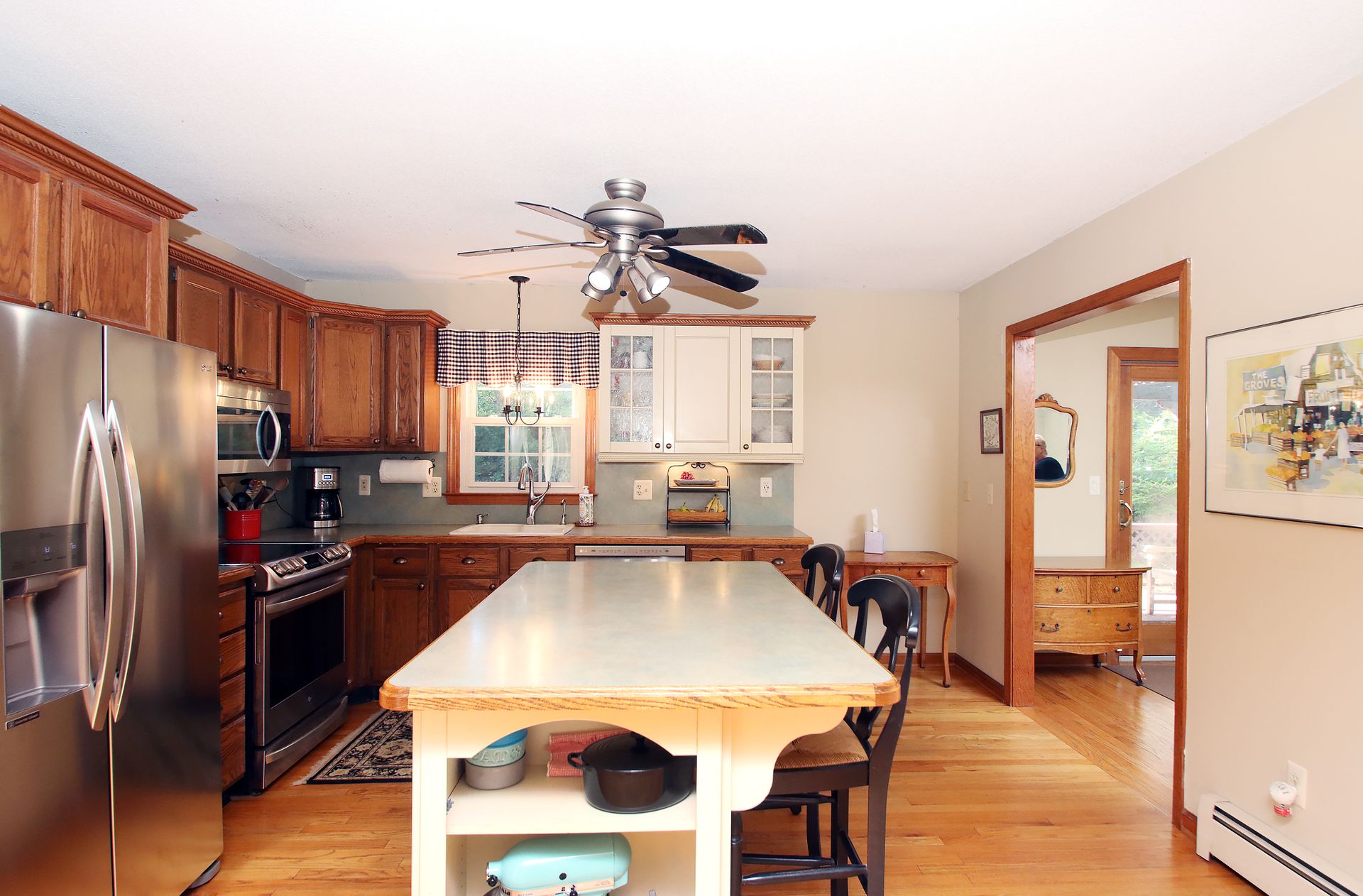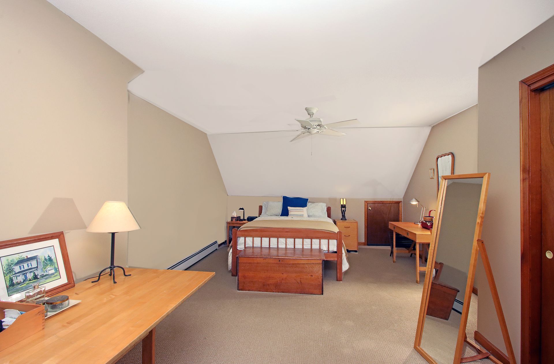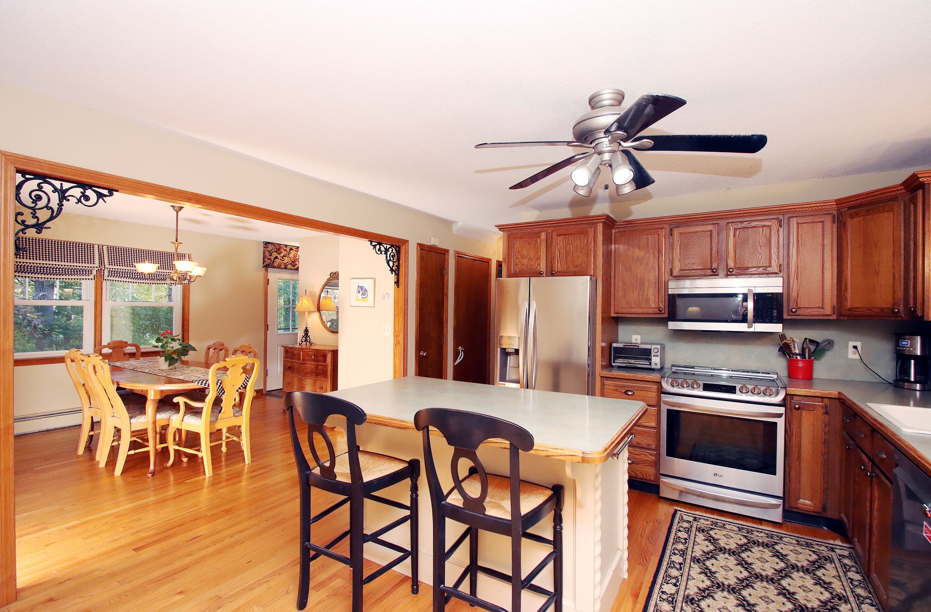 This house is well sited on a lovely flat, professionally landscaped 2+/- acre lot, with a partial fence for access from the over-sized deck.