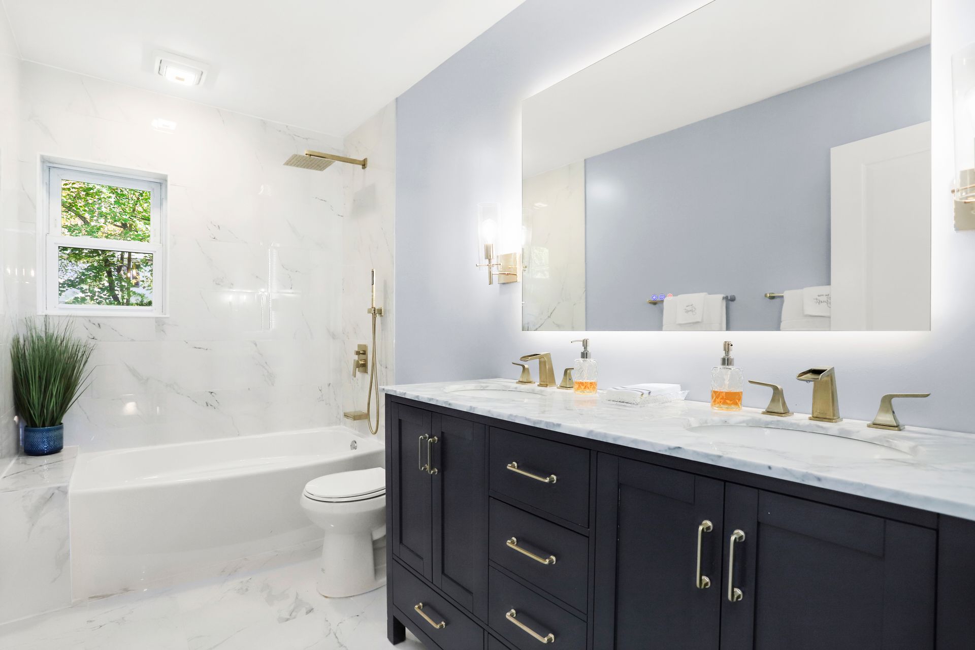 NEW RENOVATION. Just completed BRAND NEW kitchen with accent lighting, wood cabinets, quartz counters, peninsula, Samsung stainless steel appliances, touch faucet and brushed gold hardware. Three BRAND NEW full baths with marble vanities, waterfall faucets, rain showerheads plus smart mirrors and built-in Bluetooth speakers.