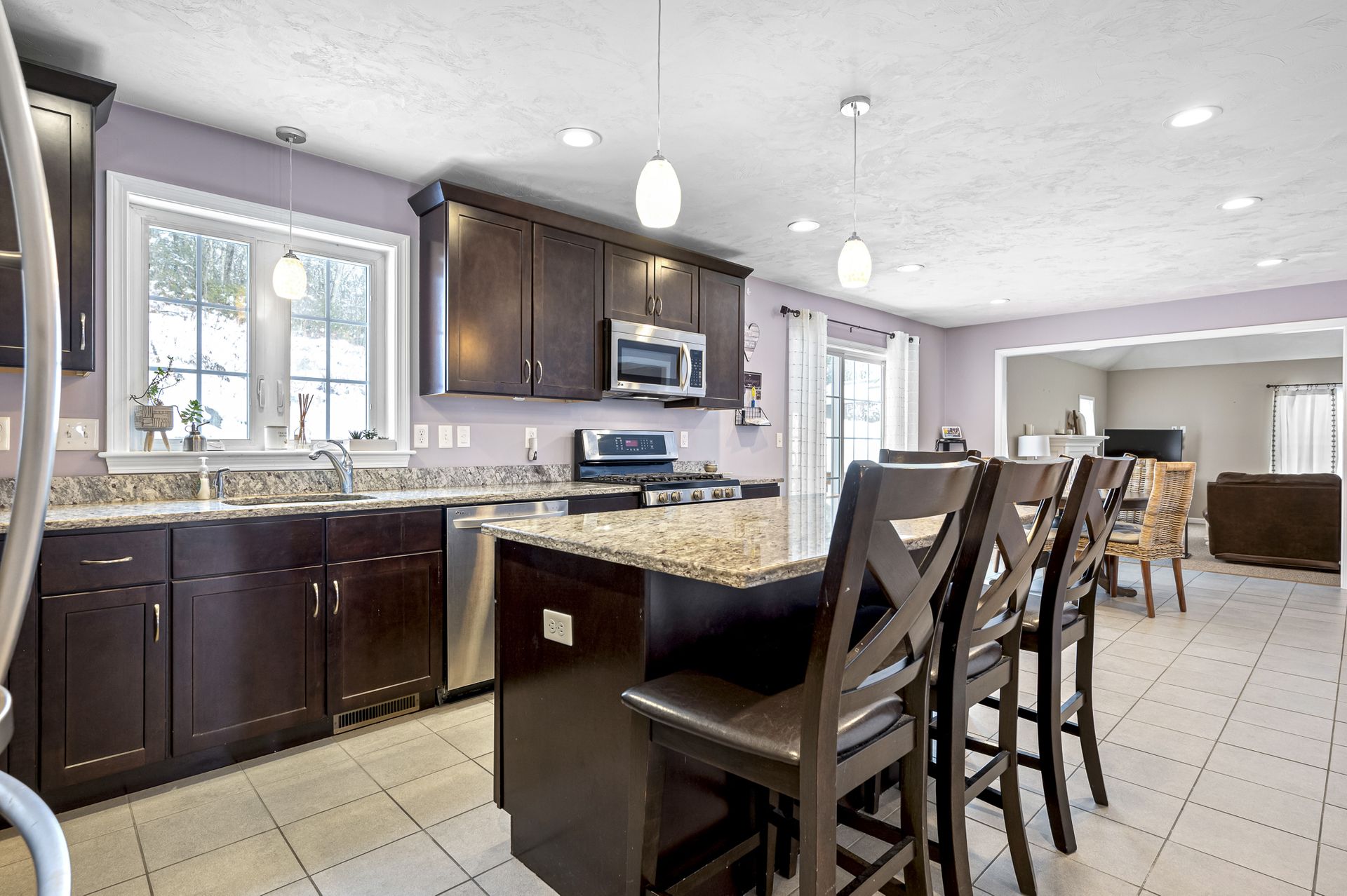 This beautifully designed home offers the perfect blend of style and comfort. The kitchen is a chef’s dream, with granite countertops, stainless steel appliances, upgraded cabinets, a spacious island, and soft recessed lighting. Gather in the inviting family room with vaulted ceilings, a cozy gas fireplace, and surround sound wiring, or enjoy meals in the elegant dining room featuring hardwood floors, wainscoting, and crown molding. With four spacious bedrooms, 2.5 stylish baths, and a private study with French pocket doors, there’s room for everyone to feel at home. Additional conveniences include a first-floor laundry room, central vacuum, high-speed internet wiring, and a radon system for peace of mind. Outside, enjoy maintenance-free gutters and charming paver walkways. Thoughtfully designed and move-in ready, this home is waiting to welcome you!