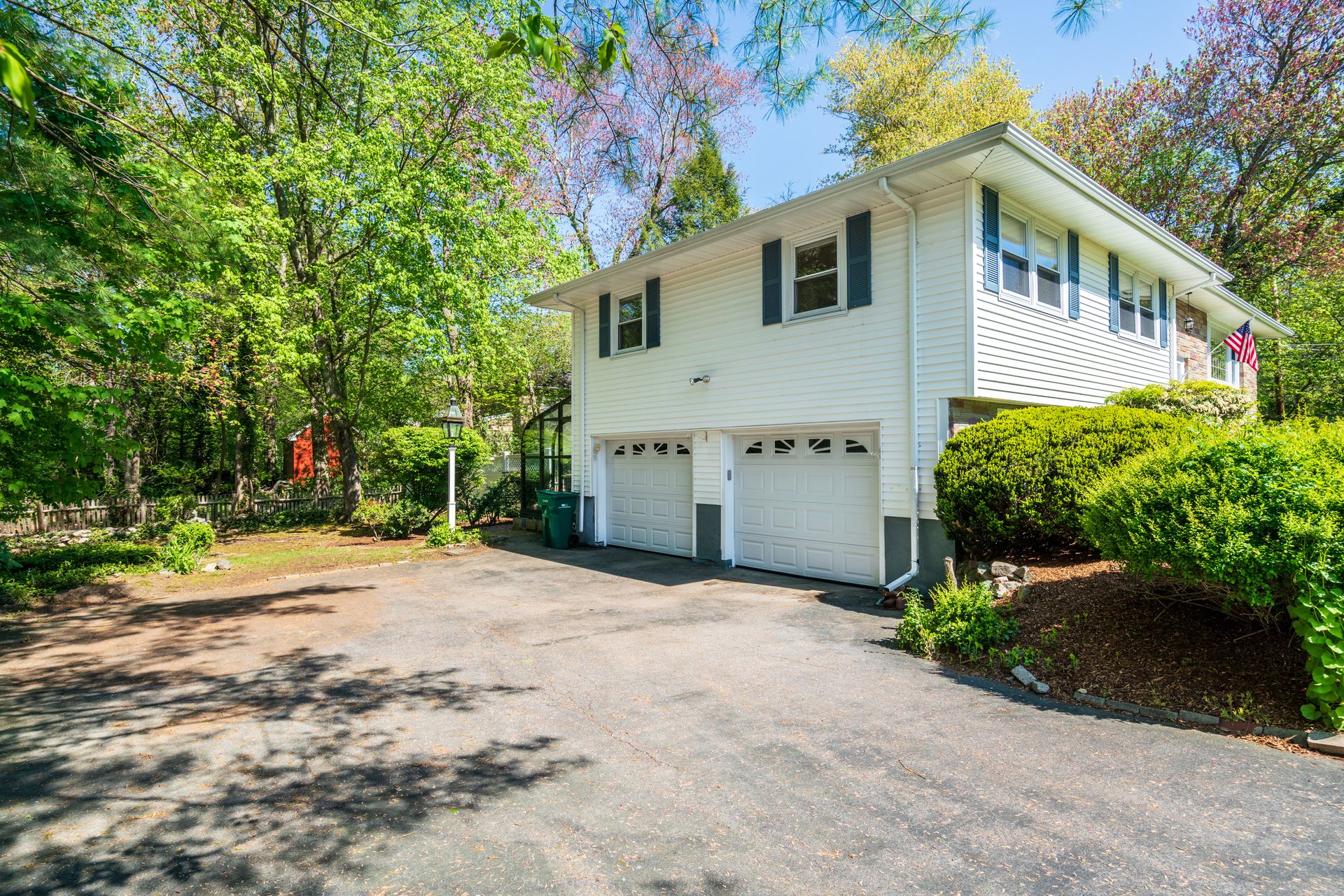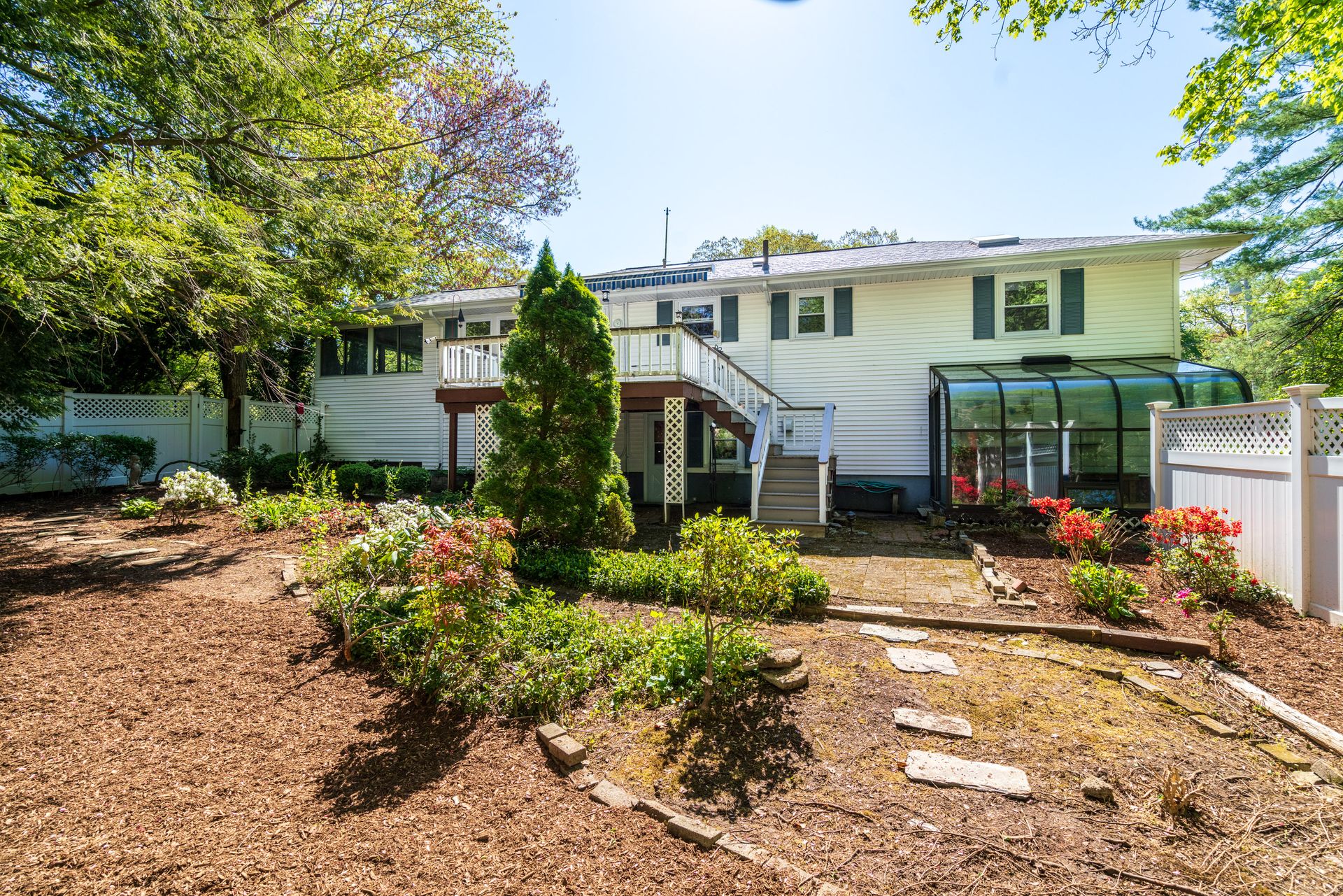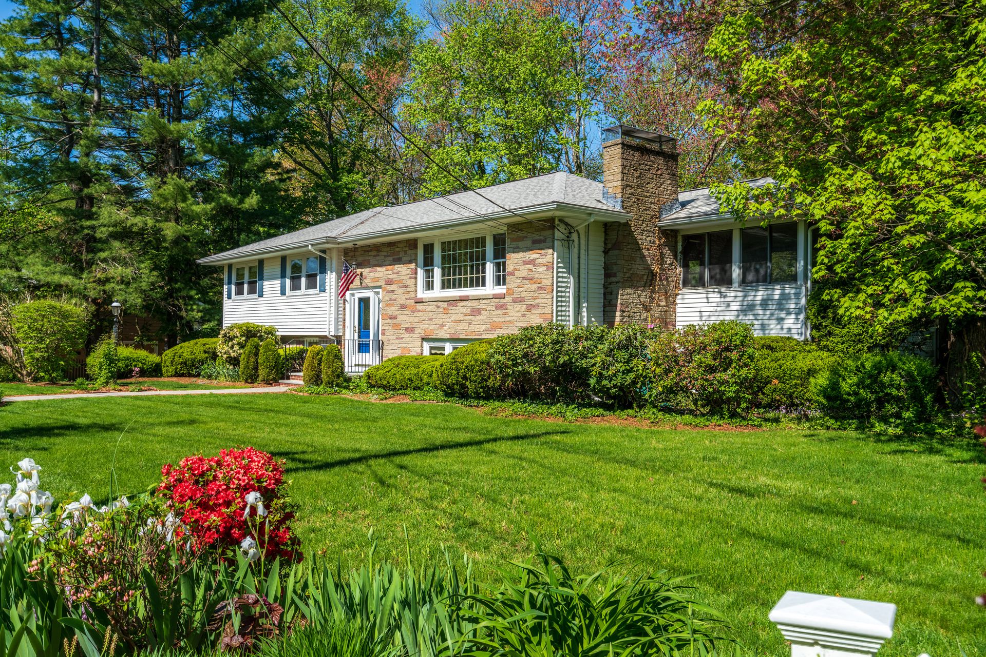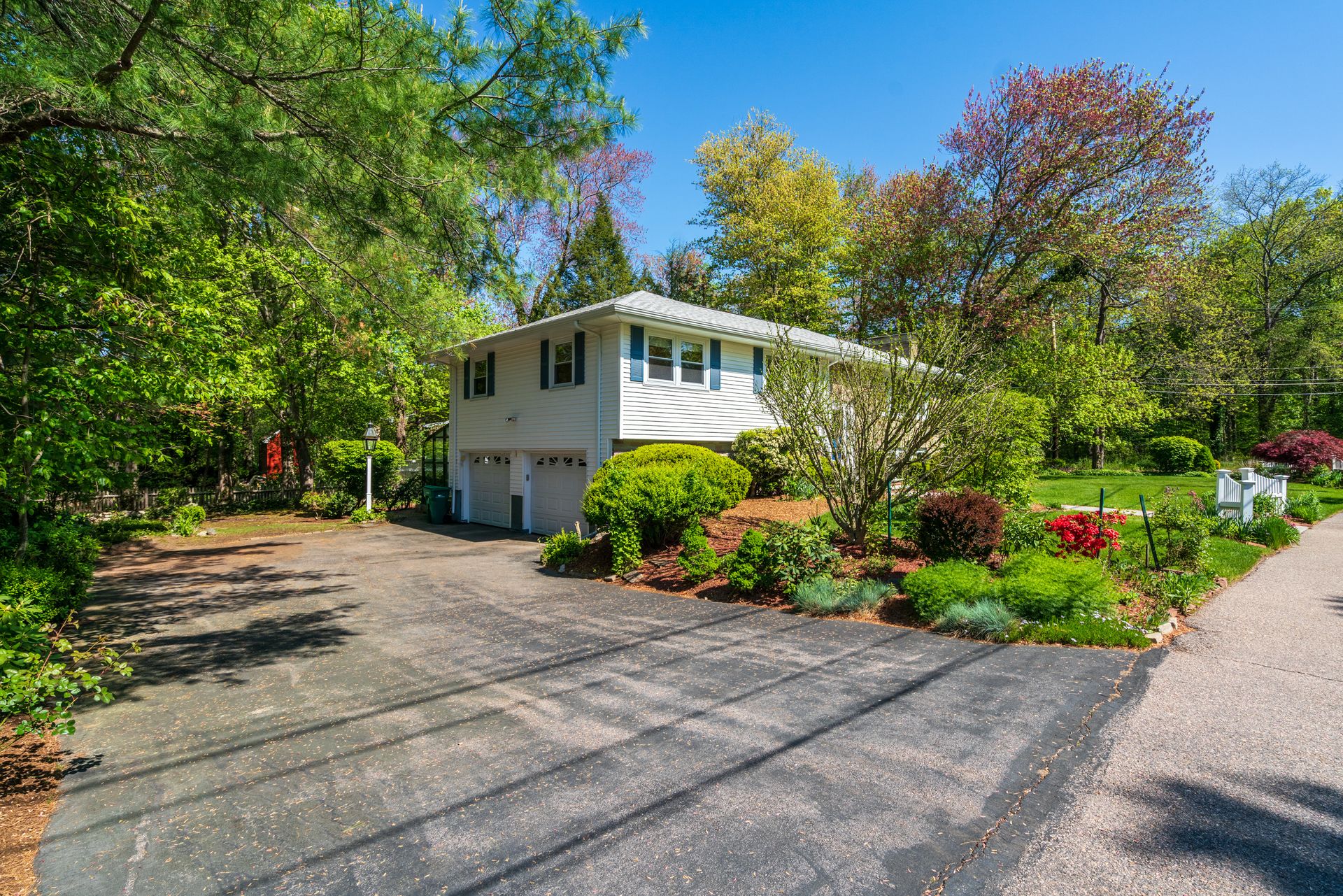 Welcome to 20 Leyton Road! Sunshine streams in as you enter this foyer up to large, bright Living Room with gas fireplace that opens to the dining room. A cozy sunroom/reading room is attached, perfect for morning coffee or evening relaxation. The kitchen features plenty of cabinets and storage. The eat-in kitchen also features access to a large deck with retractable awning overlooking a perennial filled backyard with attached greenhouse. Additionally, the upper level has a large master with skylight. Two additional bedrooms and full bath complete this level. The lower level has a large family room with wood burning fireplace with built-in storage, a large laundry/utility room, an additional unfinished room (bring your ideas!) and second bath with tiled shower. Additional storage, access to both the 2-car garage and backyard finish the space. Lovingly maintained. Close to k-5 and Senior High Schools, Ellis conservation area.