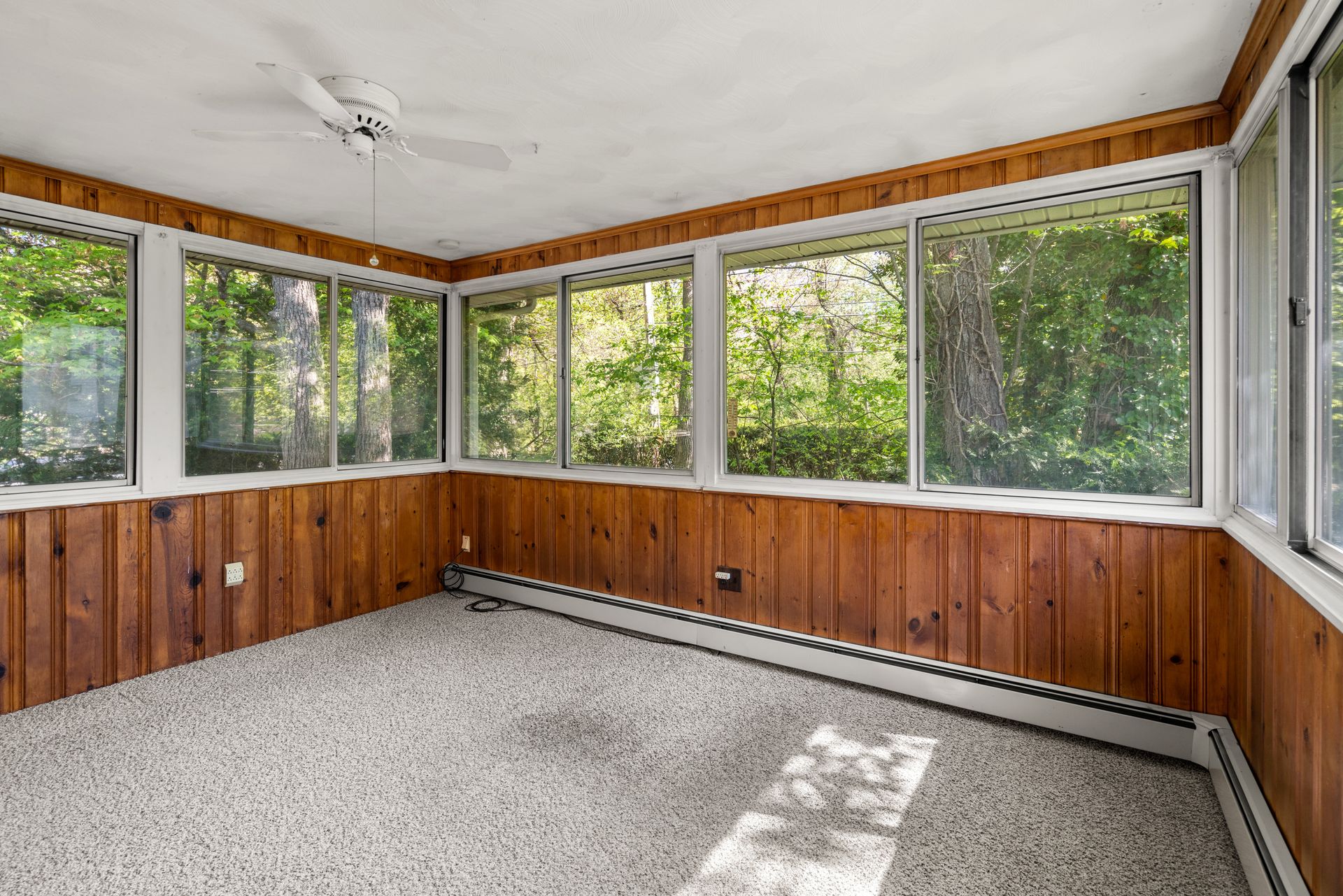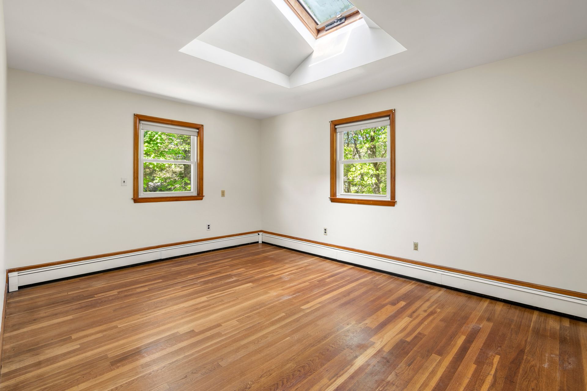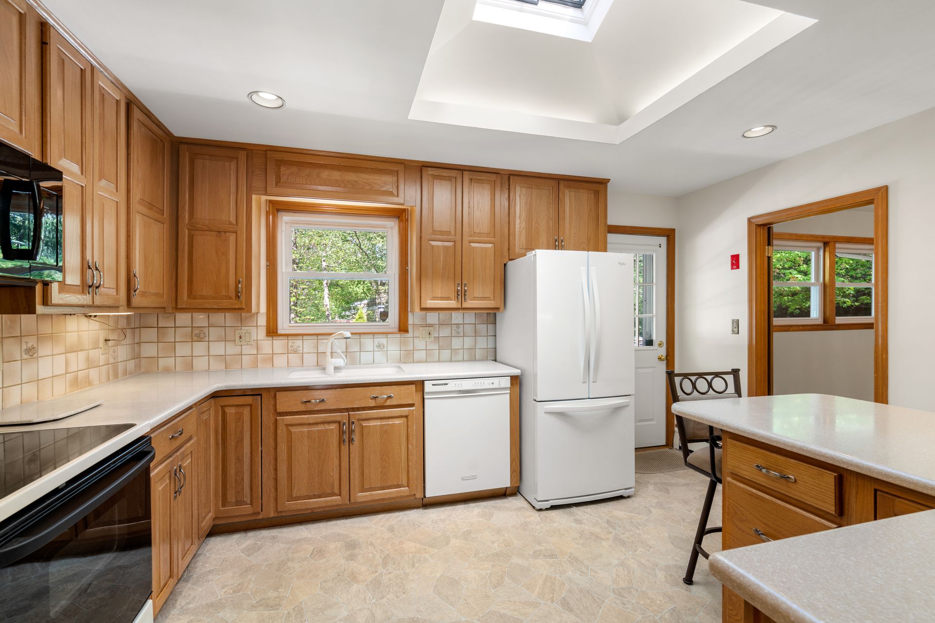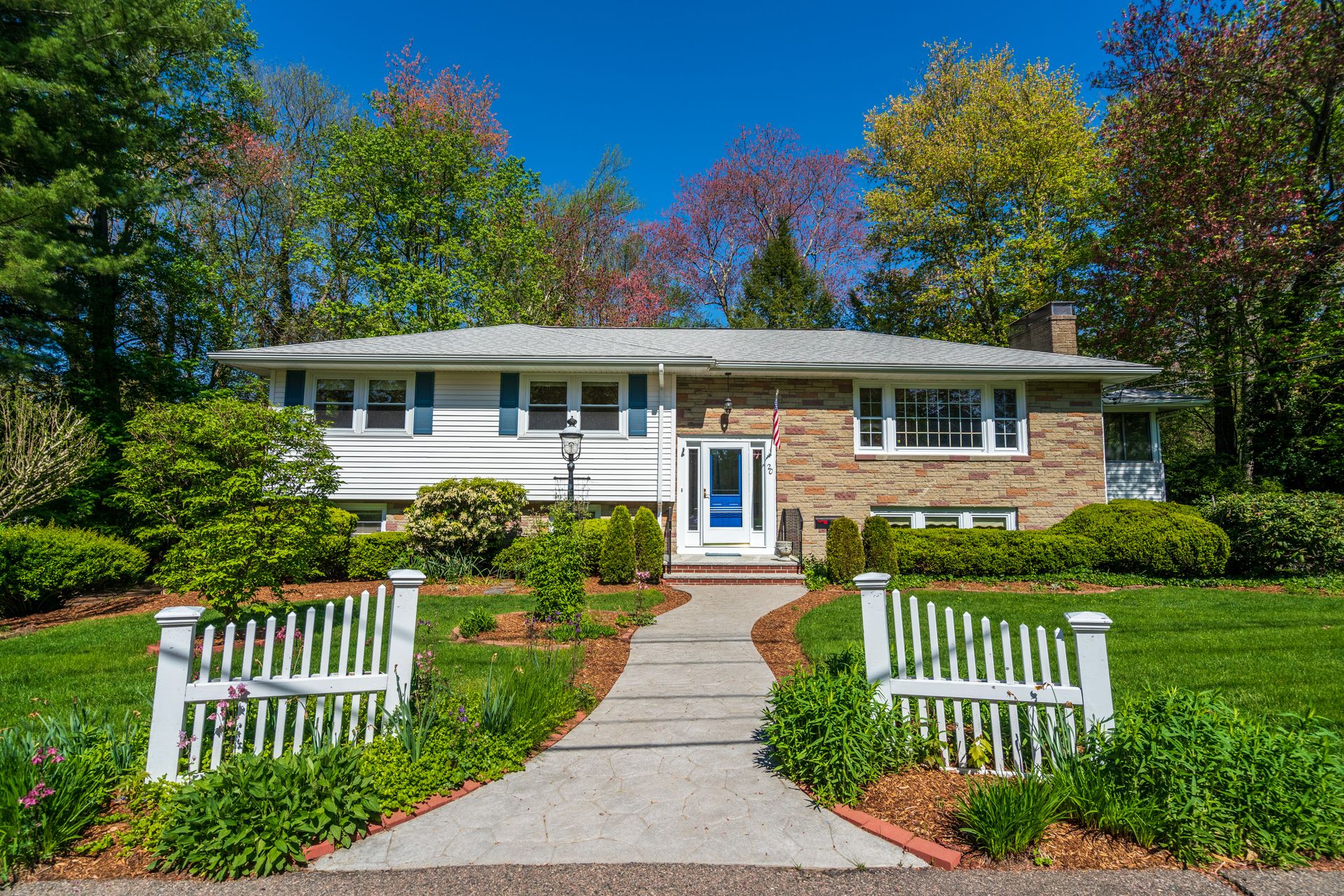 Welcome to 20 Leyton Road! Sunshine streams in as you enter this foyer up to large, bright Living Room with gas fireplace that opens to the dining room. A cozy sunroom/reading room is attached, perfect for morning coffee or evening relaxation. The kitchen features plenty of cabinets and storage. The eat-in kitchen also features access to a large deck with retractable awning overlooking a perennial filled backyard with attached greenhouse. Additionally, the upper level has a large master with skylight. Two additional bedrooms and full bath complete this level. The lower level has a large family room with wood burning fireplace with built-in storage, a large laundry/utility room, an additional unfinished room (bring your ideas!) and second bath with tiled shower. Additional storage, access to both the 2-car garage and backyard finish the space. Lovingly maintained. Close to k-5 and Senior High Schools, Ellis conservation area.