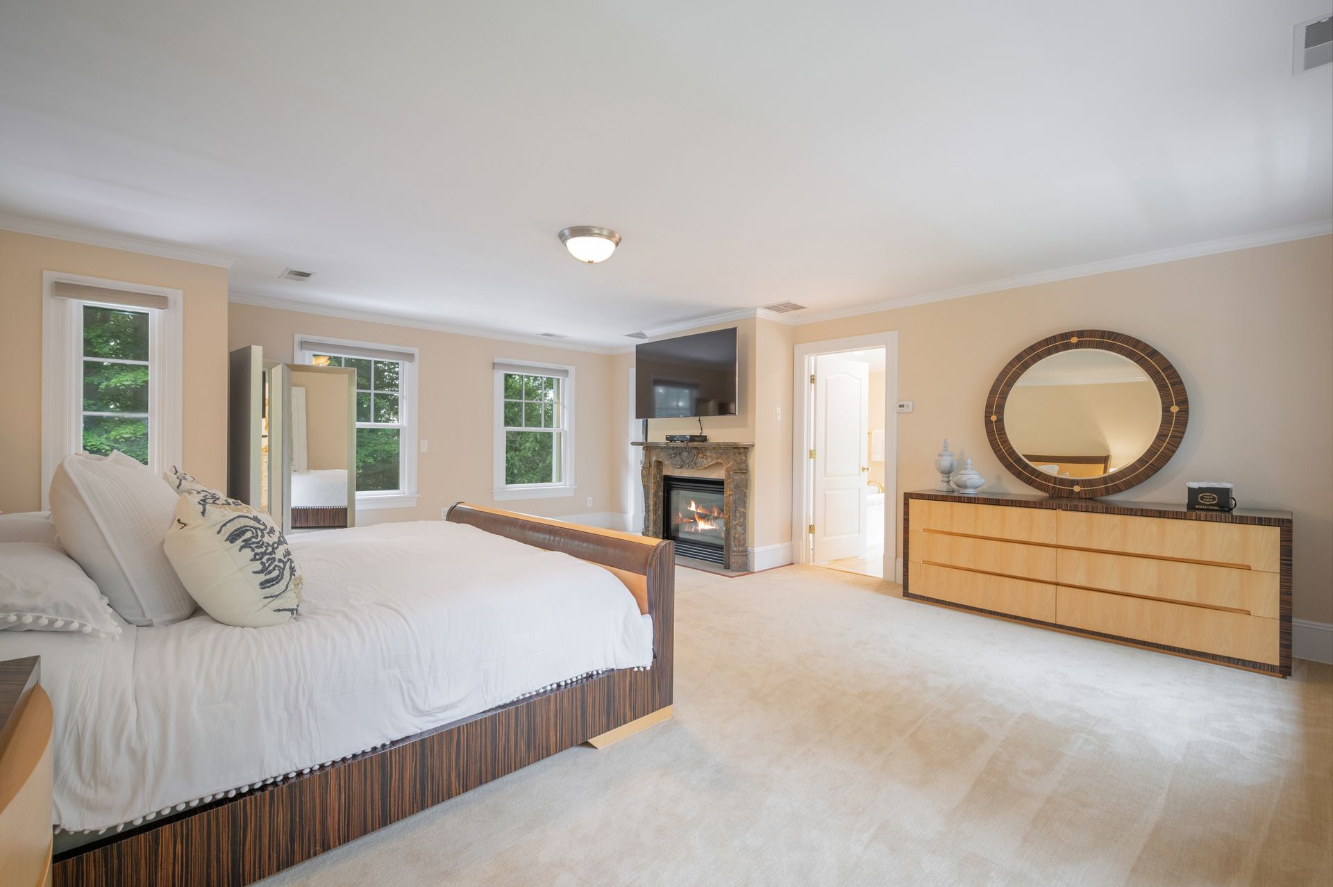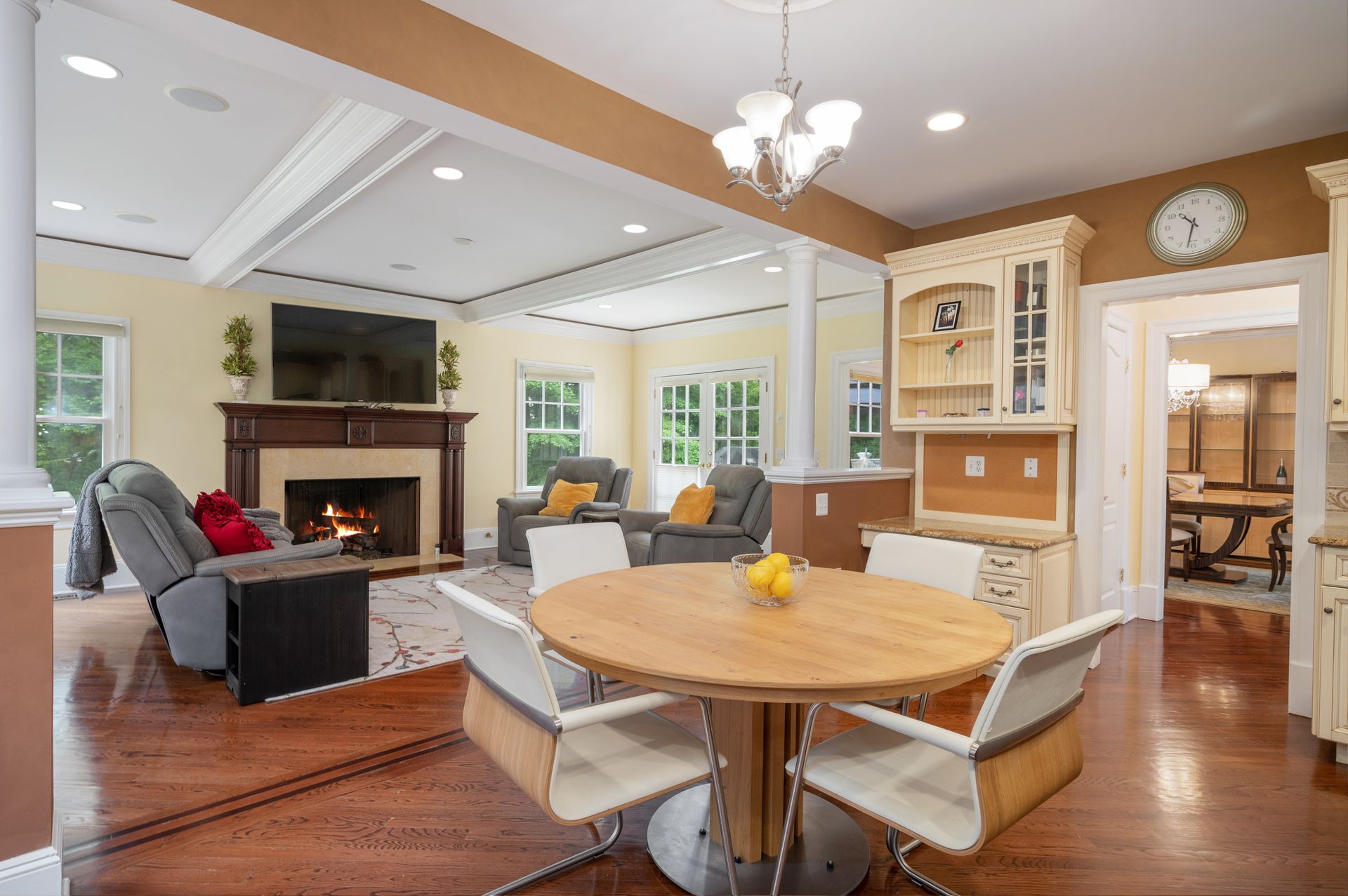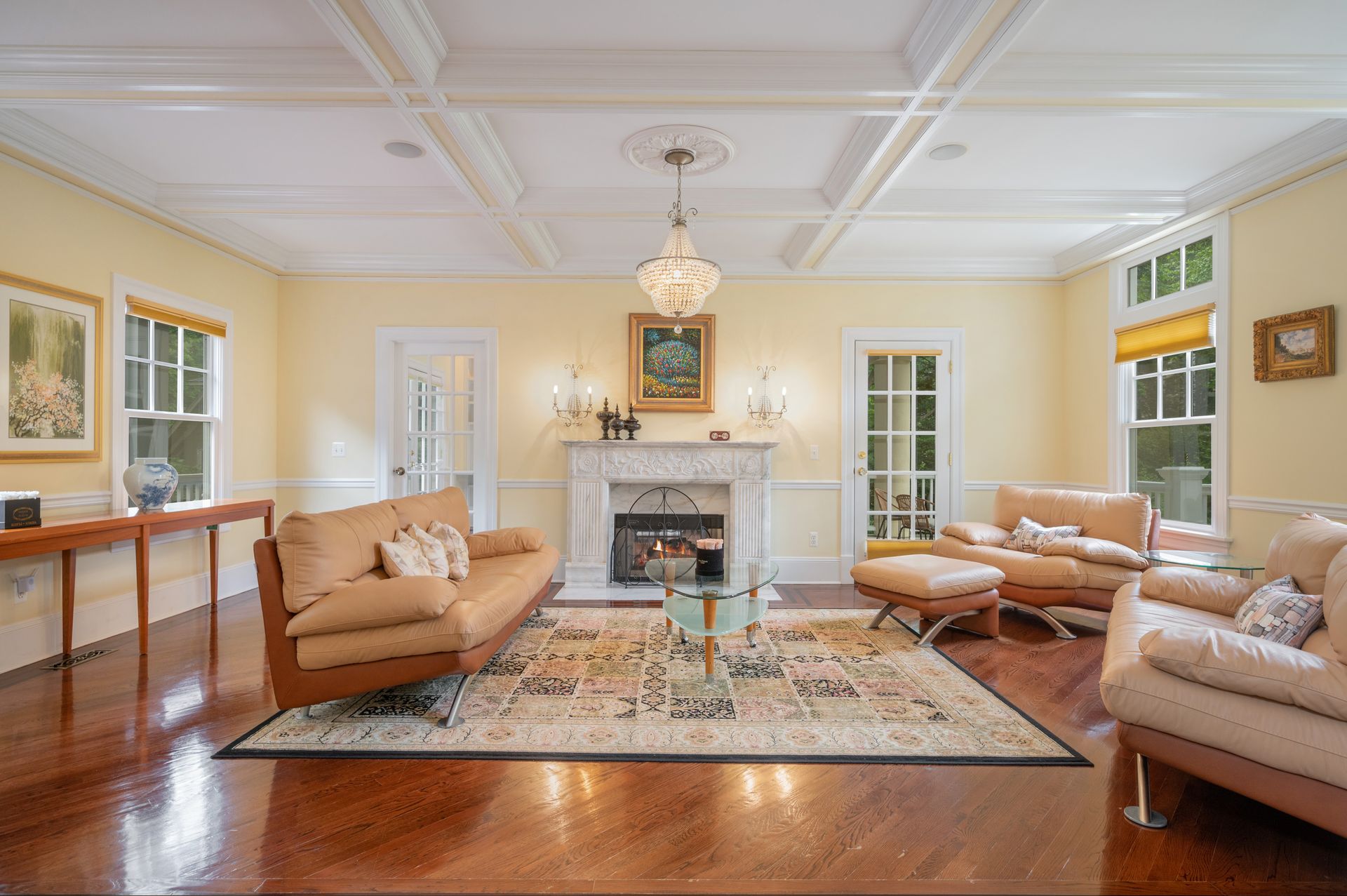 Welcome to this newer construction replicating the Grand Manor style of Herbert Hapgood. Set on a beautifully landscaped, .55 acre property, complete with a turf yard for your sports enthusiast. The stunning, sun-filled, two-story foyer welcomes you to this gem built in 2003. There are windows galore and French doors leading to the many balconies and patios. Custom designed kitchen with center island, beverage drawers and window seat. Warm family room with gas fireplace overlooking private yard. Dining room with custom ceiling is perfect for any occasion. Gather in the spacious living room with fireplace. First-floor office with built-in shelving, fireplace and access to quiet patio and deck. Second floor covered balcony is a perfect space for morning tea and yoga. Private primary suite is sure to please with gas fireplace and gorgeous ensuite with honey onyx tile. Three additional generous bedrooms, full bath and laundry room on this level. Additional two bedrooms and full bath on the third floor. Lower-level walkout offers flexible space with an ideal guest space with bedroom, full bath and kitchenette. Bright, sunlit recreation room and additional exercise room offer many options for today's living. Step out to large patio and yard backing to town property.