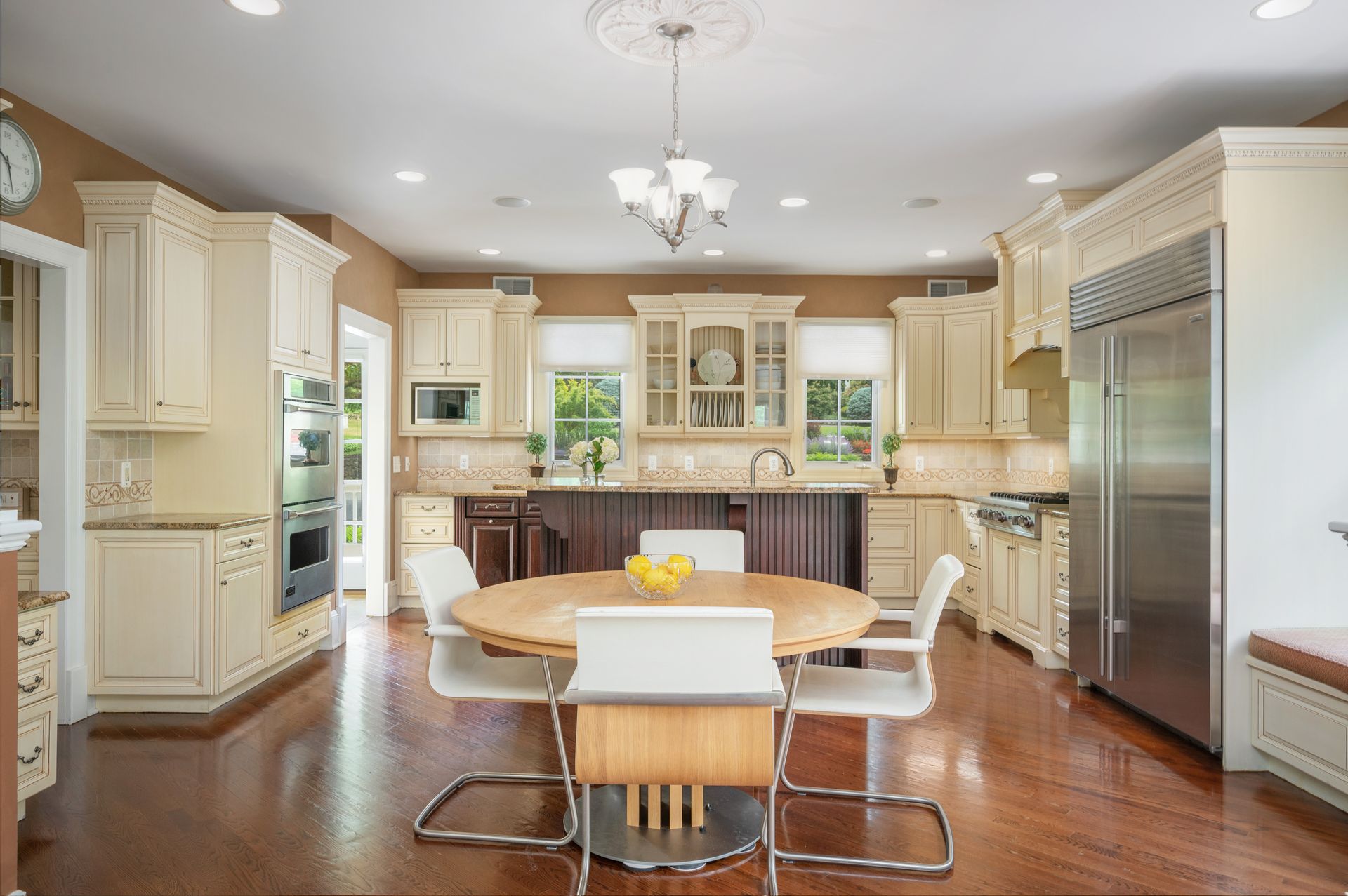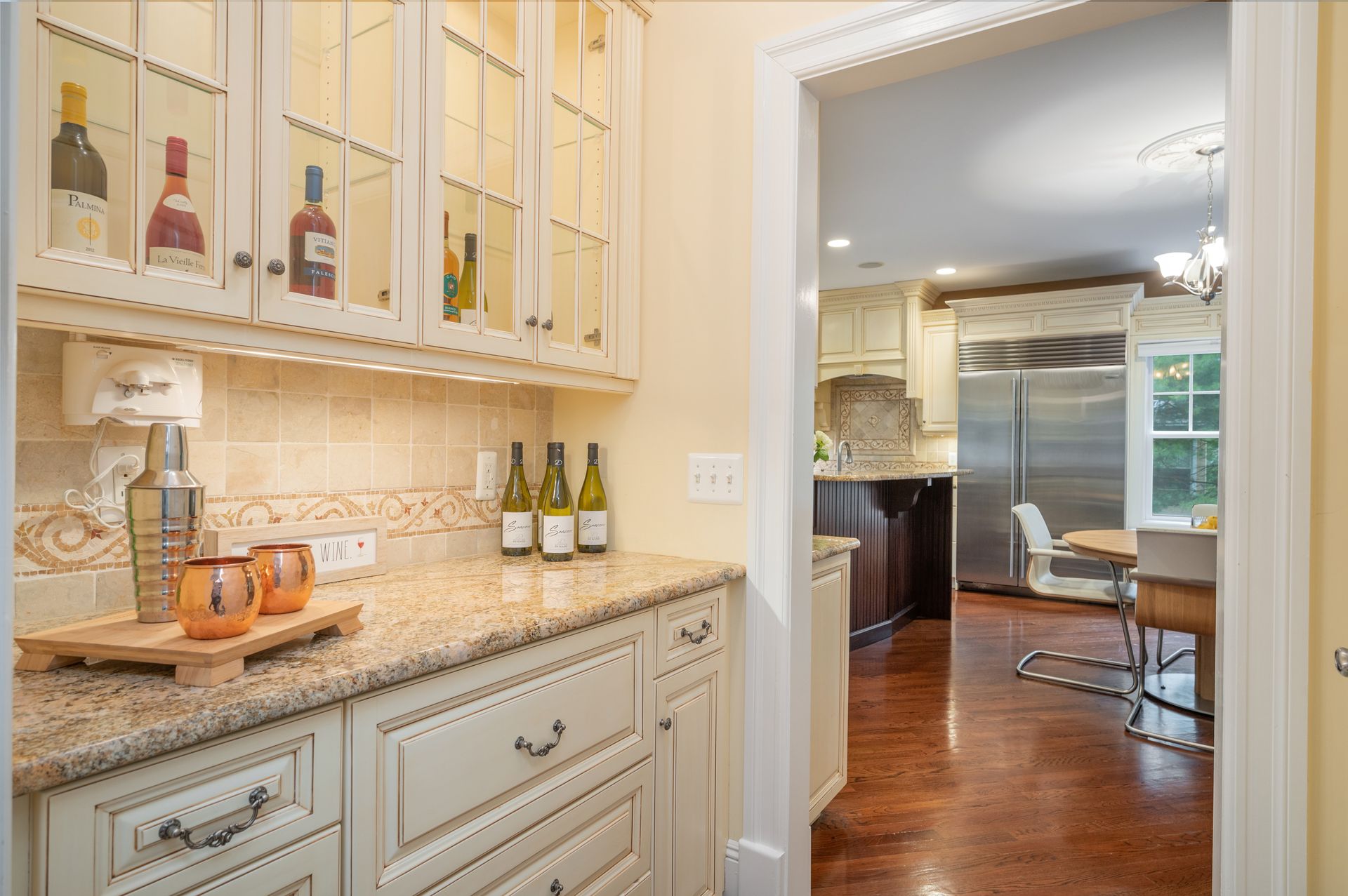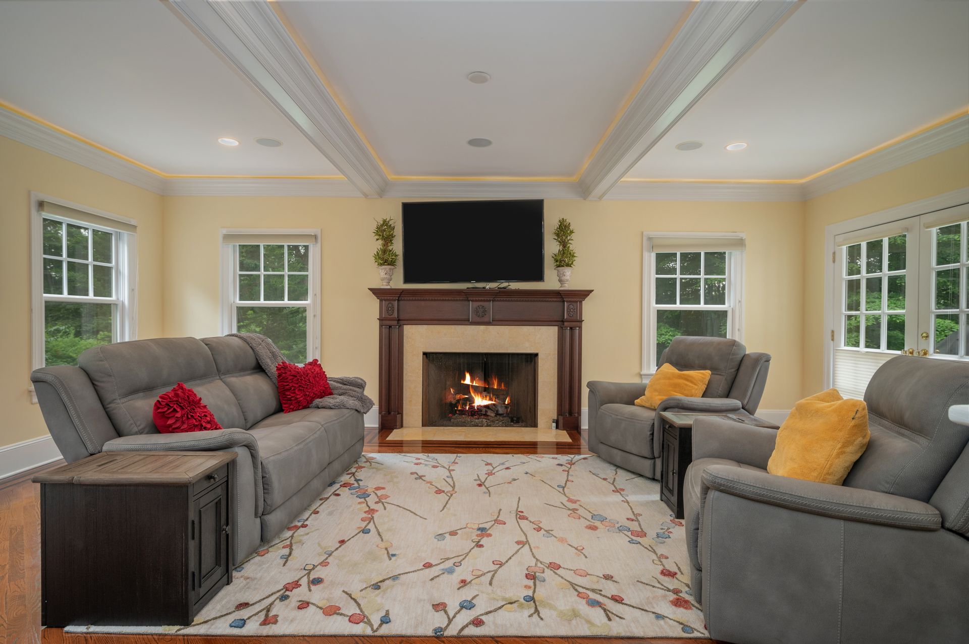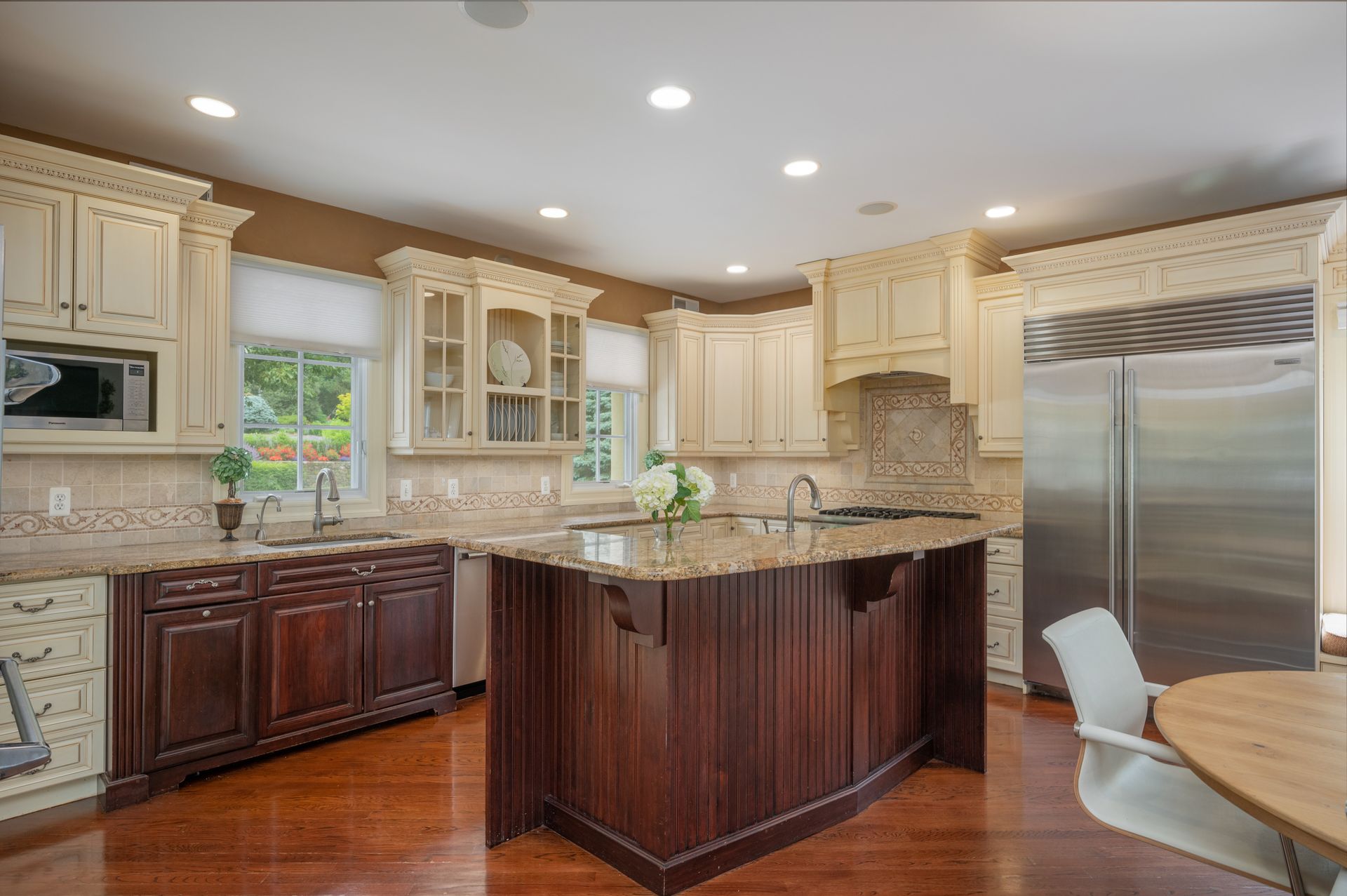 Welcome to this newer construction replicating the Grand Manor style of Herbert Hapgood. Set on a beautifully landscaped, .55 acre property, complete with a turf yard for your sports enthusiast. The stunning, sun-filled, two-story foyer welcomes you to this gem built in 2003. There are windows galore and French doors leading to the many balconies and patios. Custom designed kitchen with center island, beverage drawers and window seat. Warm family room with gas fireplace overlooking private yard. Dining room with custom ceiling is perfect for any occasion. Gather in the spacious living room with fireplace. First-floor office with built-in shelving, fireplace and access to quiet patio and deck. Second floor covered balcony is a perfect space for morning tea and yoga. Private primary suite is sure to please with gas fireplace and gorgeous ensuite with honey onyx tile. Three additional generous bedrooms, full bath and laundry room on this level. Additional two bedrooms and full bath on the third floor. Lower-level walkout offers flexible space with an ideal guest space with bedroom, full bath and kitchenette. Bright, sunlit recreation room and additional exercise room offer many options for today's living. Step out to large patio and yard backing to town property.