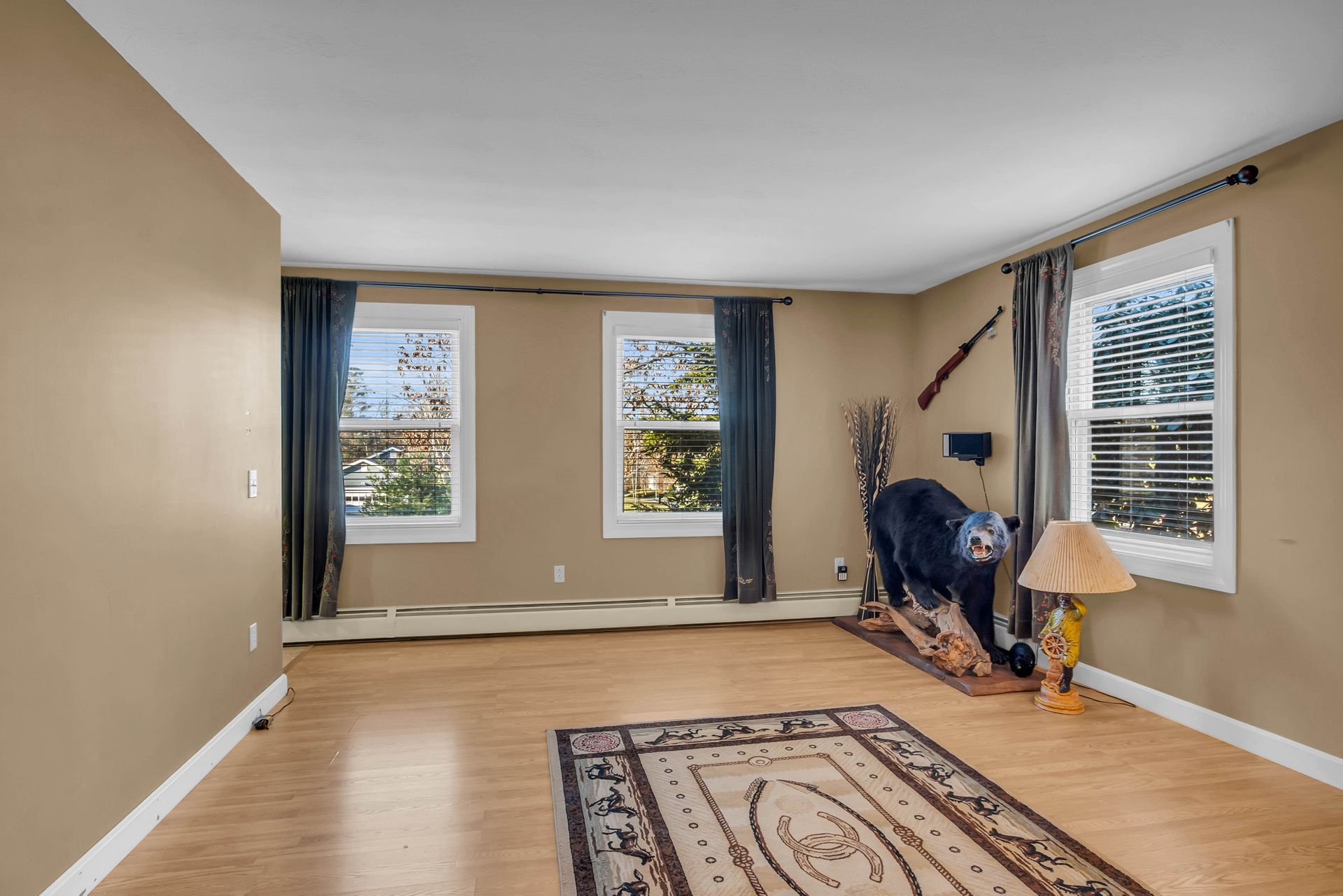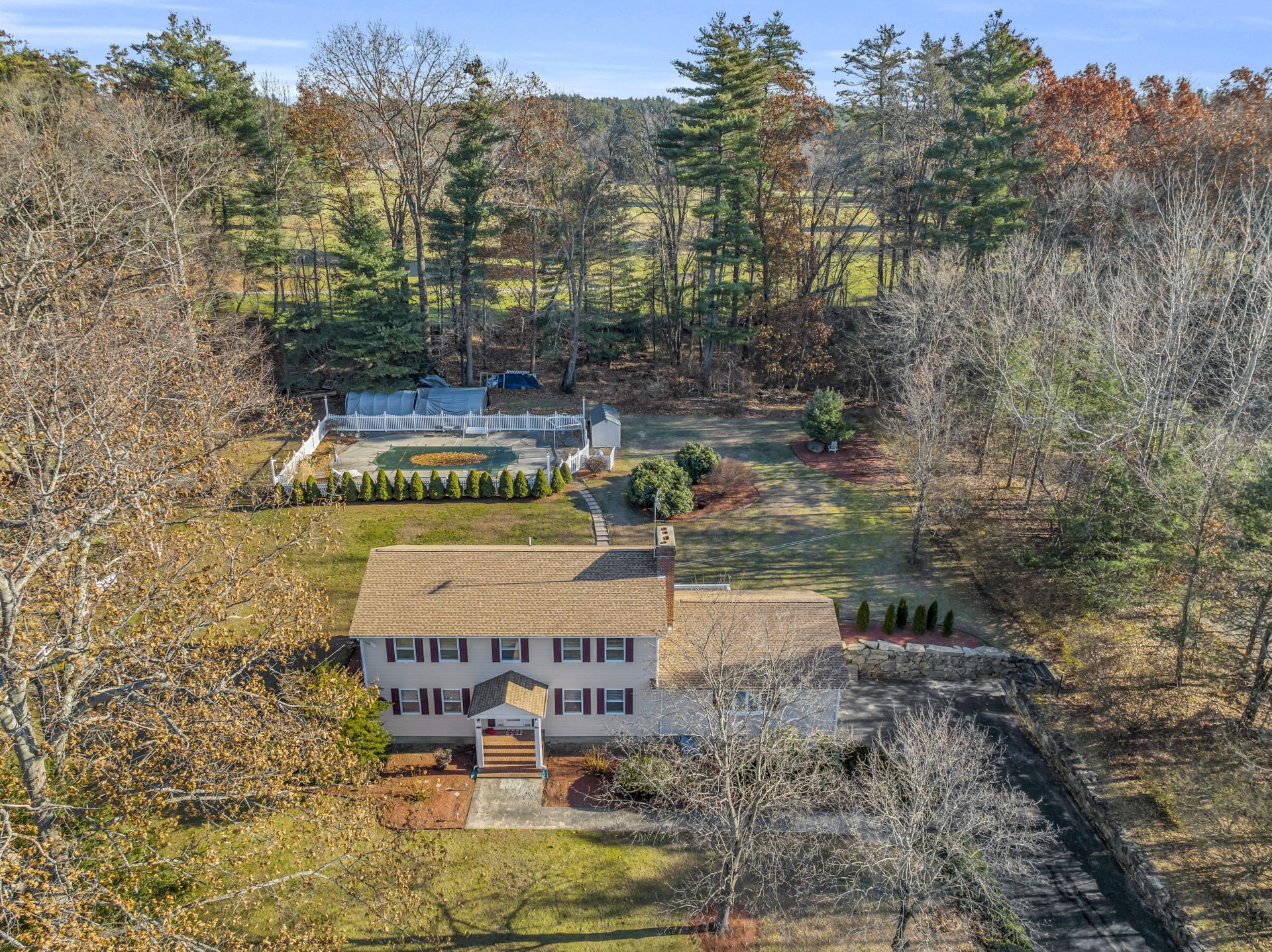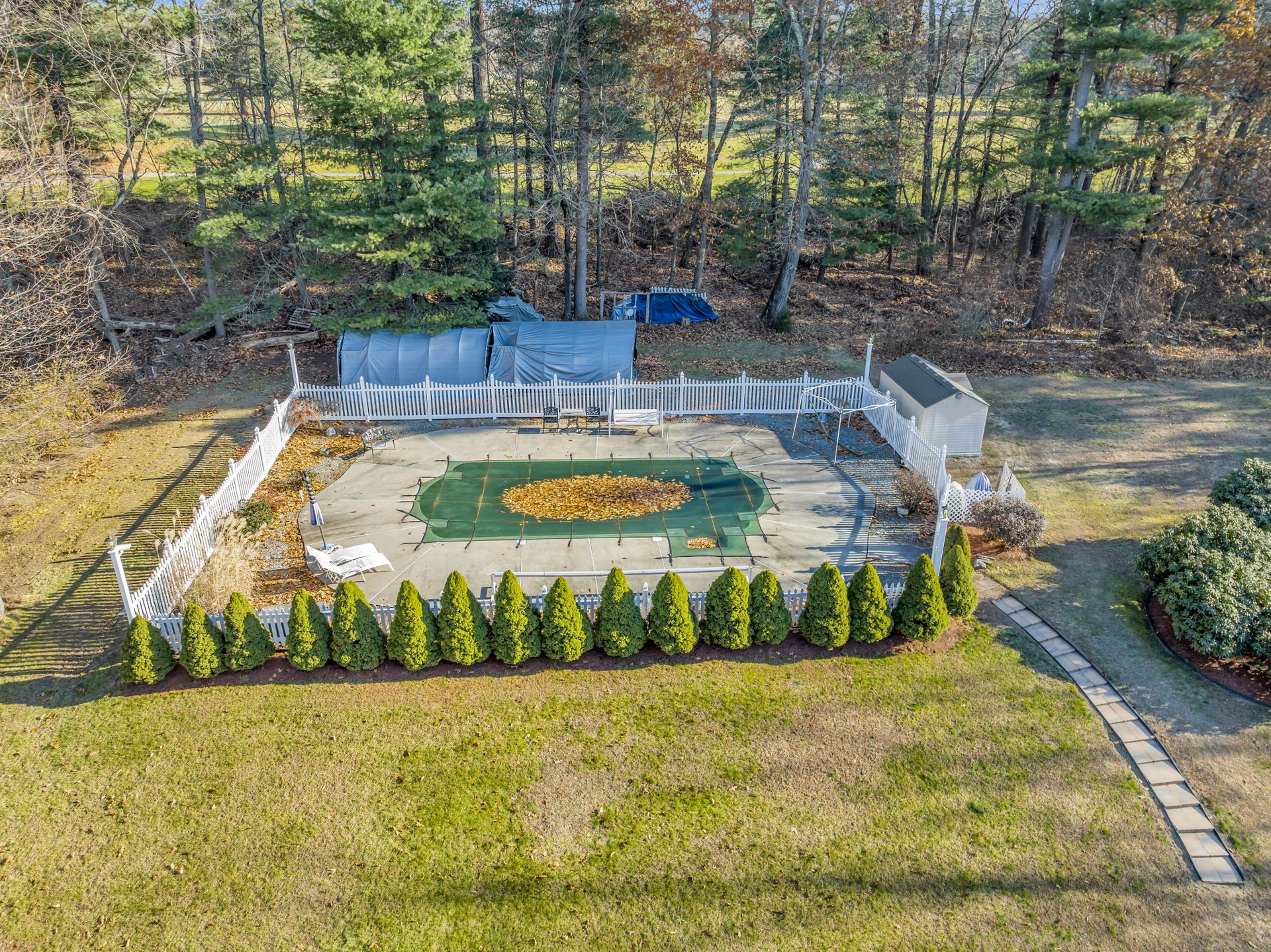 You'll love this spacious four bedroom, three and a half Bath Colonial on approximately 1.1 acres abutting a golf course in Hudson's Whip-Poor-Will subdivision. This 3,248 square-foot home also has a large three-season porch and an open deck overlooking a fabulous back yard with an irrigation system, a large shed and an inground pool. Conveniently located to schools, shopping and travel linkages, this home also has a huge 27' x 27' great room with a gorgeous stone fireplace, about 1,092 square feet of finished basement space that can easily be made into a multi-generational/accessory dwelling unit, central air conditioning and a whole house fan. The water heater and entire roof were replaced in 2023. A standby generator awaits connection. The heated oversized two-car under garage also serves as a workshop area. The huge 14' x 27' Primary bedroom also has a cute fireplace. The half bath laundry room is located on level one.