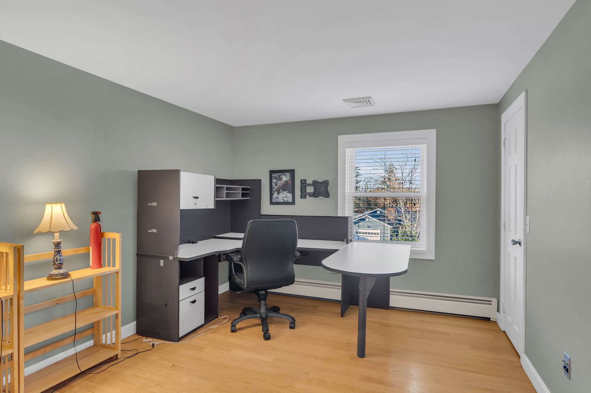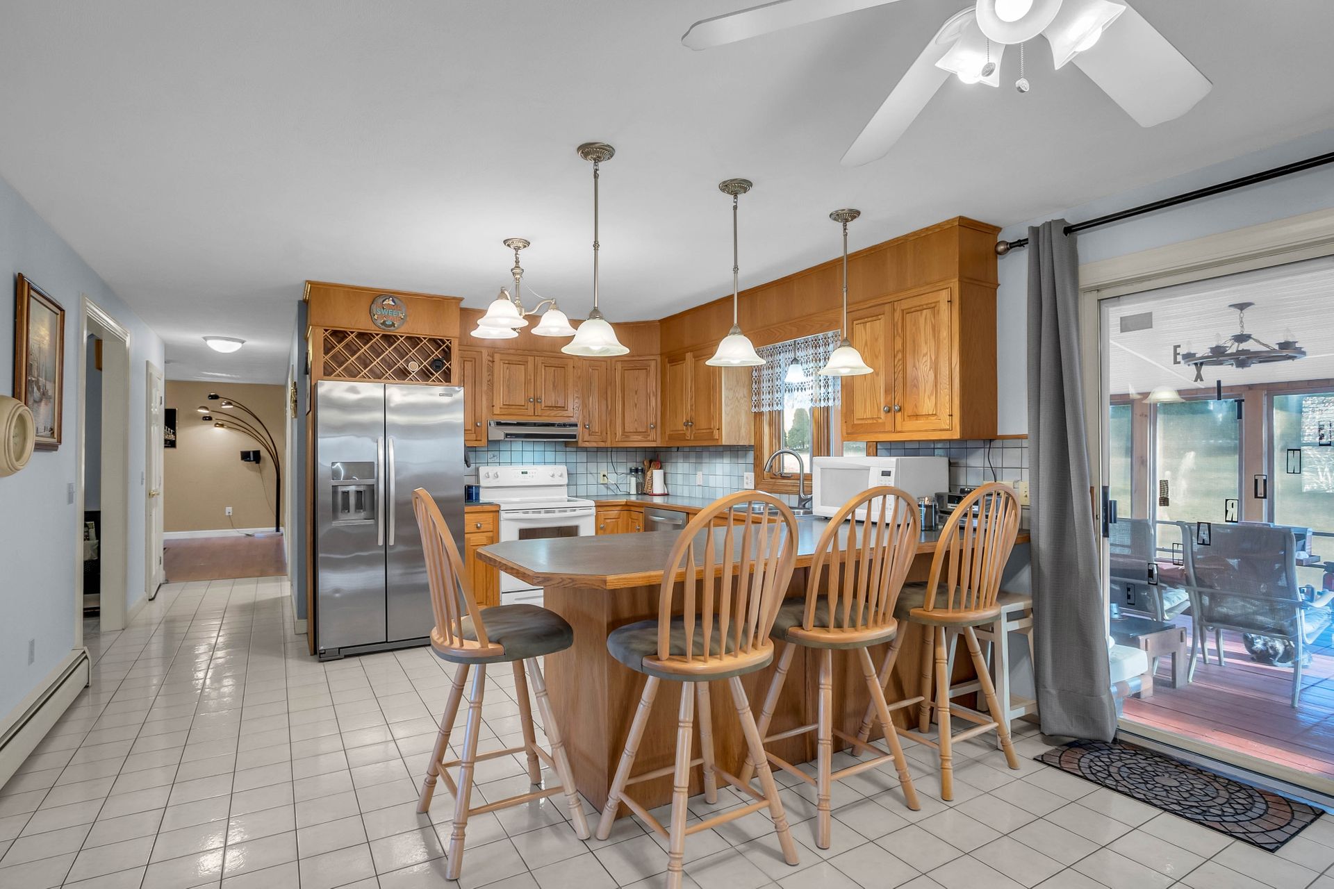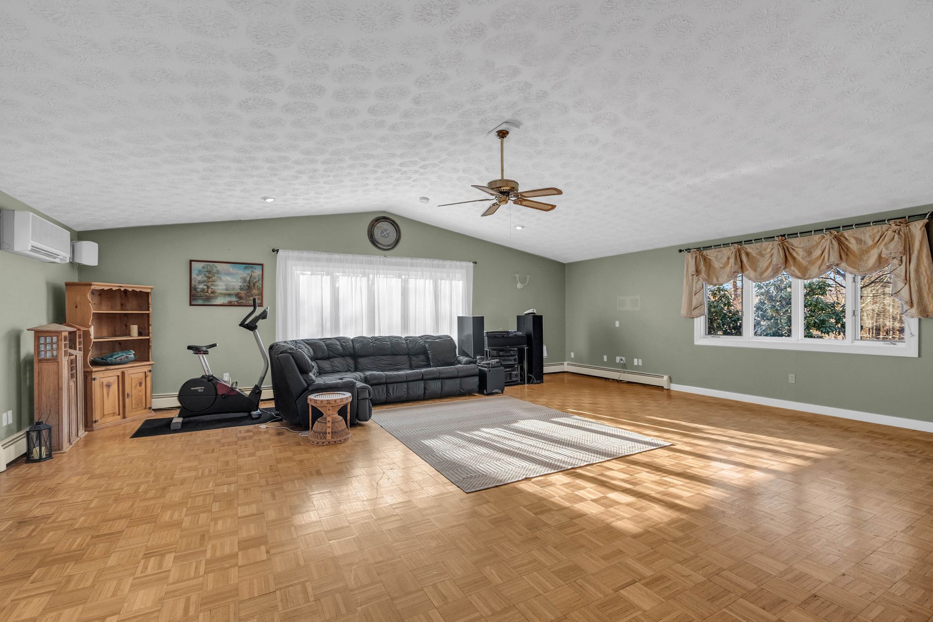 You'll love this spacious four bedroom, three and a half Bath Colonial on approximately 1.1 acres abutting a golf course in Hudson's Whip-Poor-Will subdivision. This 3,248 square-foot home also has a large three-season porch and an open deck overlooking a fabulous back yard with an irrigation system, a large shed and an inground pool. Conveniently located to schools, shopping and travel linkages, this home also has a huge 27' x 27' great room with a gorgeous stone fireplace, about 1,092 square feet of finished basement space that can easily be made into a multi-generational/accessory dwelling unit, central air conditioning and a whole house fan. The water heater and entire roof were replaced in 2023. A standby generator awaits connection. The heated oversized two-car under garage also serves as a workshop area. The huge 14' x 27' Primary bedroom also has a cute fireplace. The half bath laundry room is located on level one.