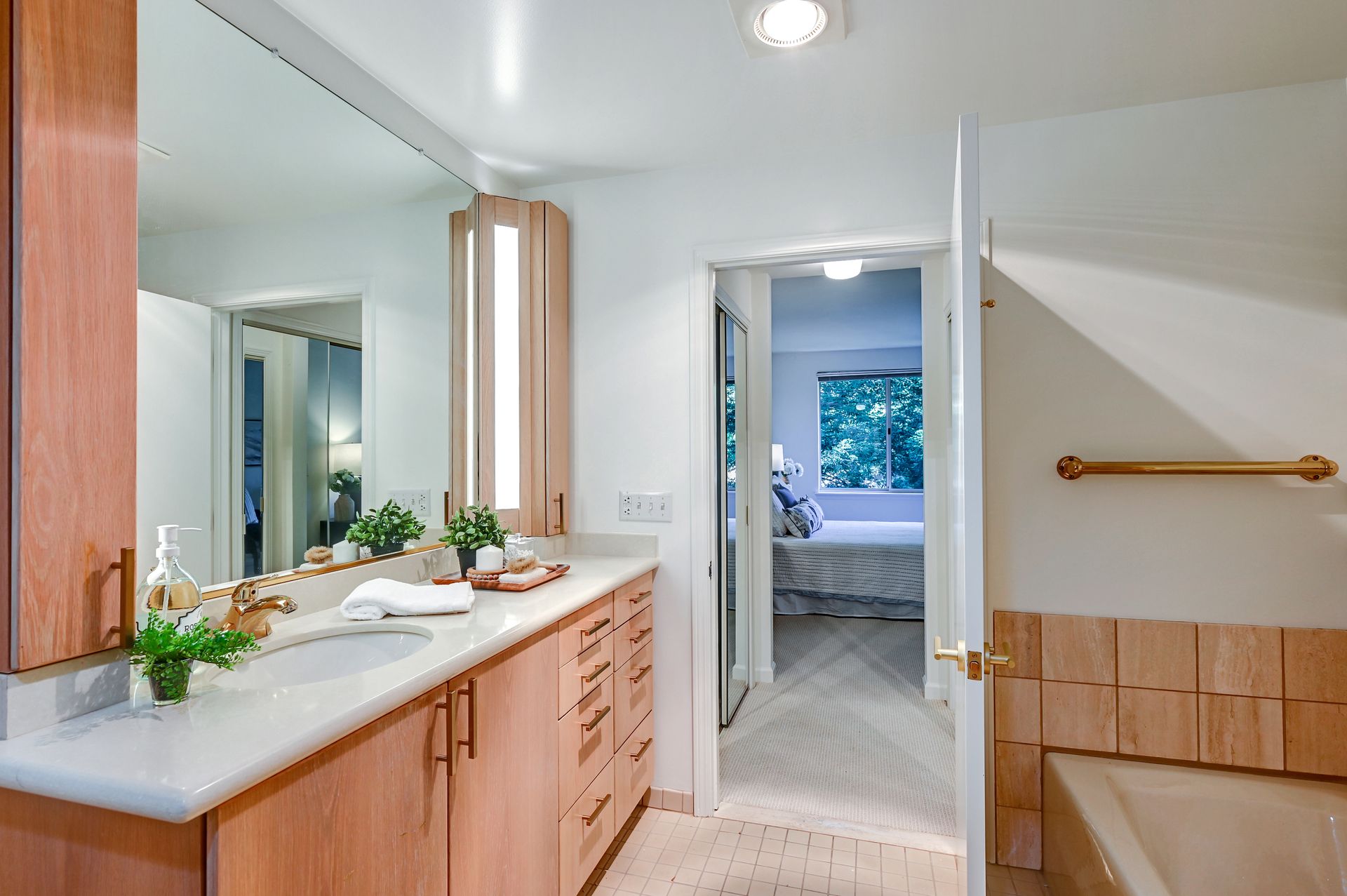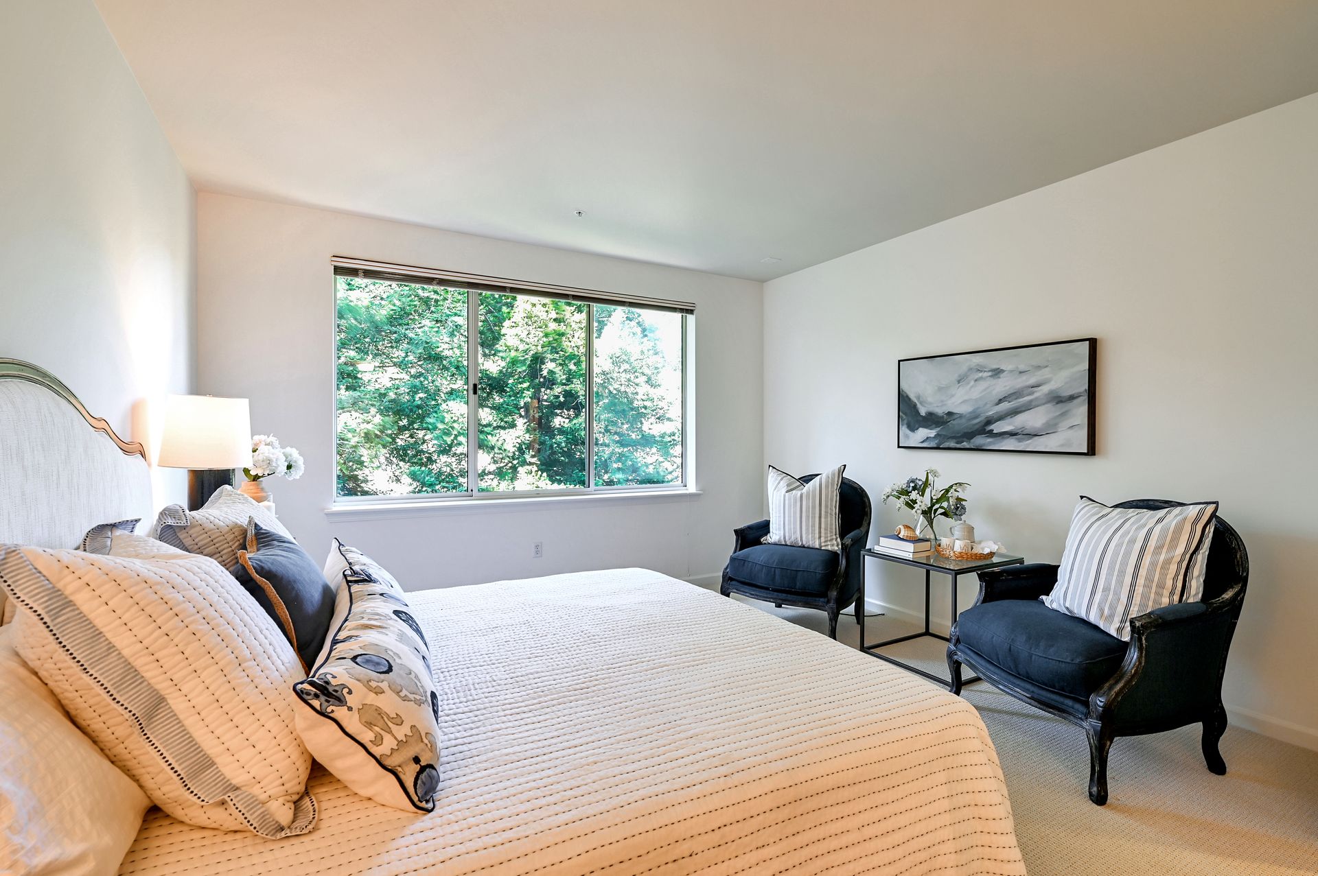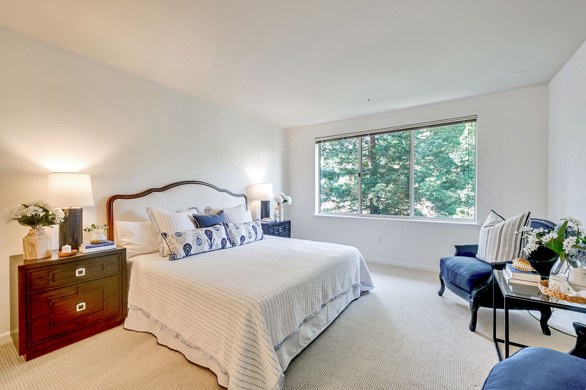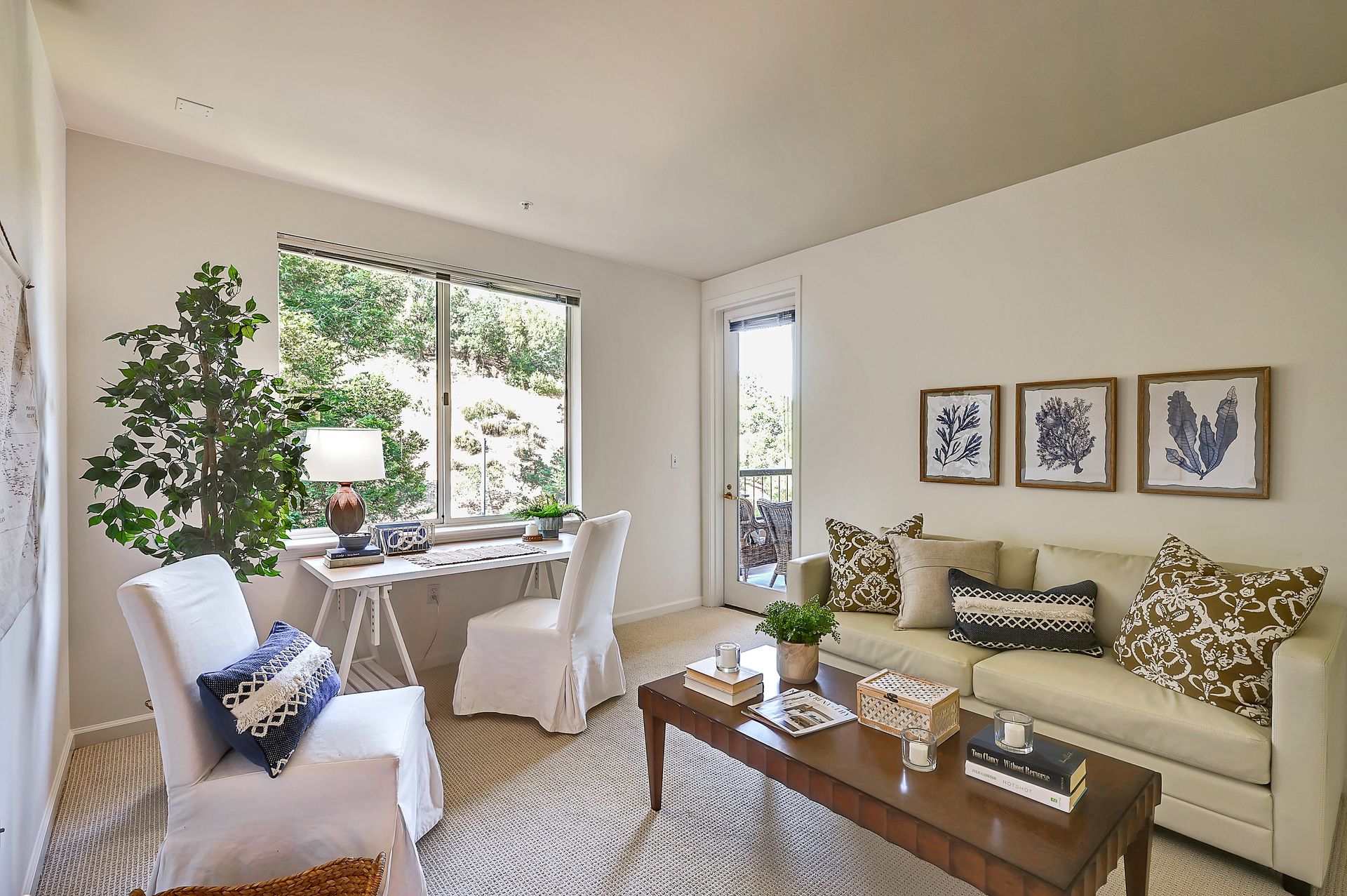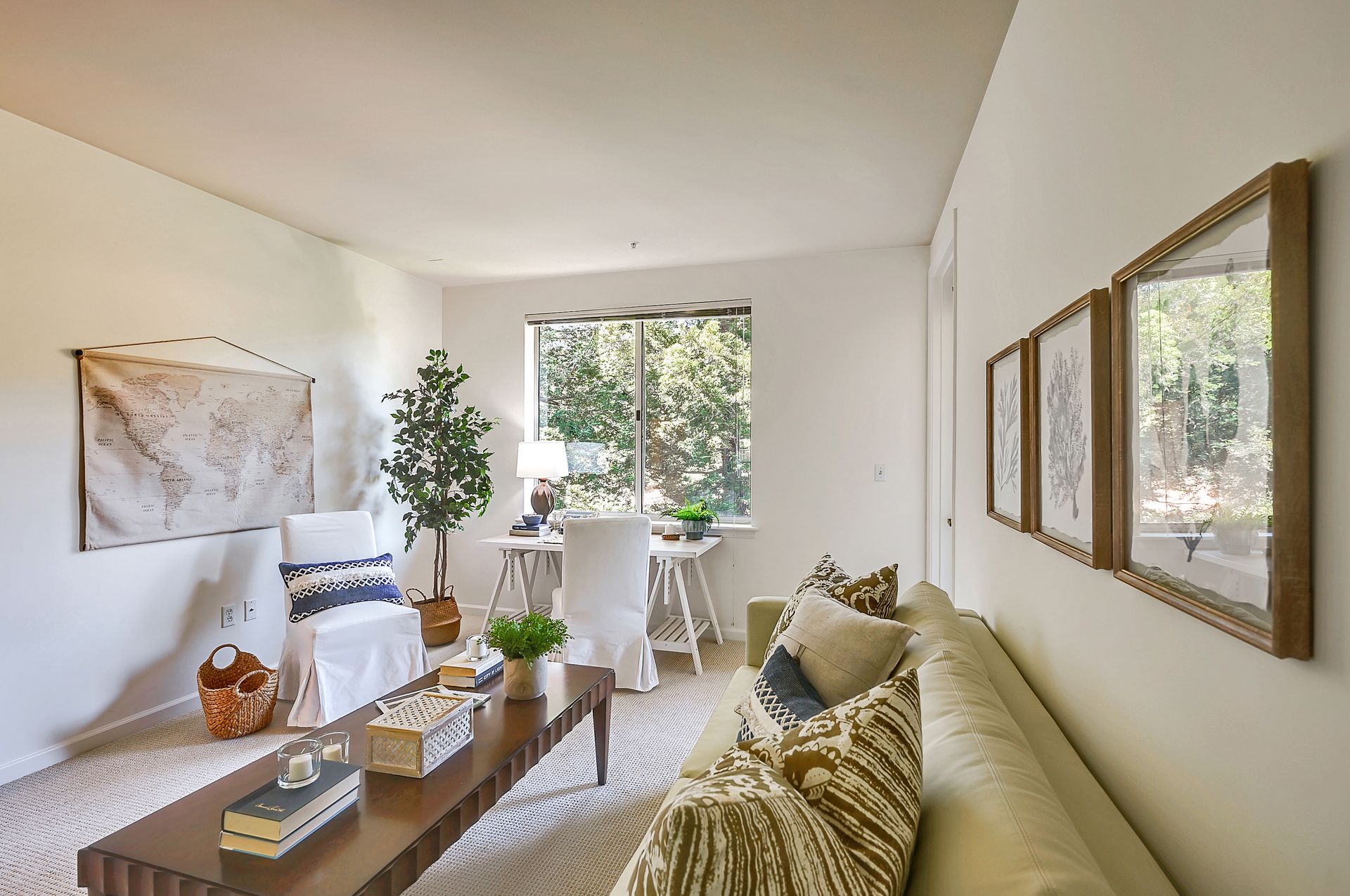 Gated 55+ Community in Central Marin! Luxury independent living on 30 acres. Exceptional sunny 2BD | 2BA unit. Penthouse unit with no one above & close proximity to elevator. Living room with 10' foot ceilings, marble fireplace, new carpet and paint. Kitchen with newer appliances and granite countertops. Primary bedroom with lovely hillside views, 2 closets and large bath with separate tub and shower. This extremely quiet and peaceful unit is close to the clubhouse, and parking. Amenities including a club house with fine dining as well a grill, and full bar. Lap pool and hot tub, putting green, on and off site activities, gym, game room, 24-hour security, housekeeping and valet. Lovely garden area and nature all around. Services to begin opening up soon!