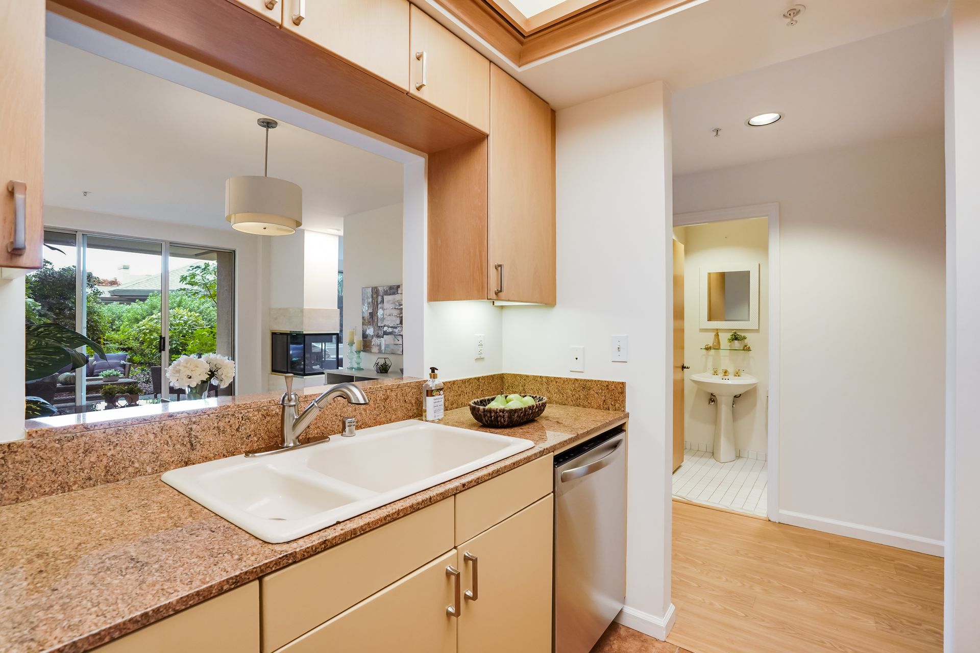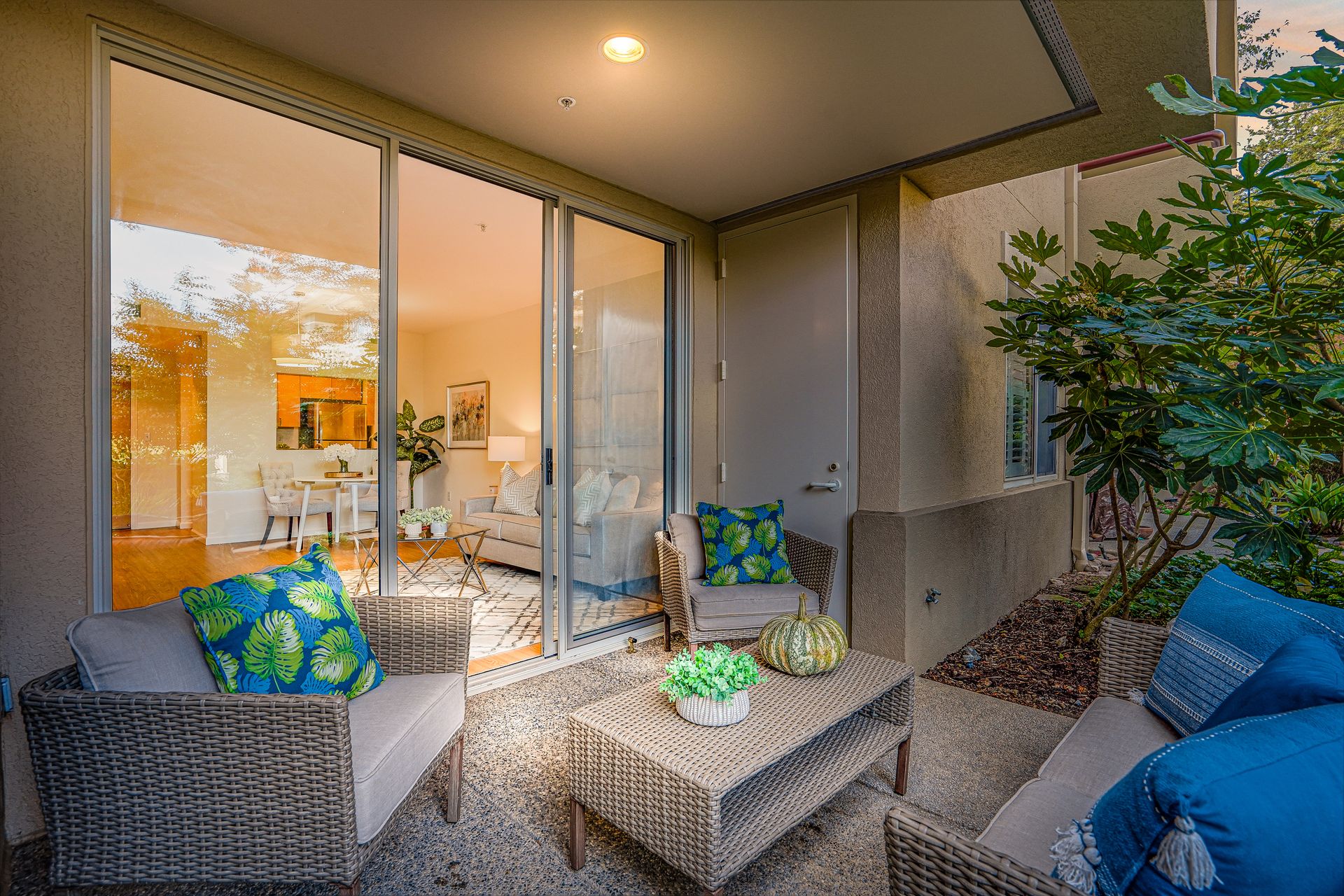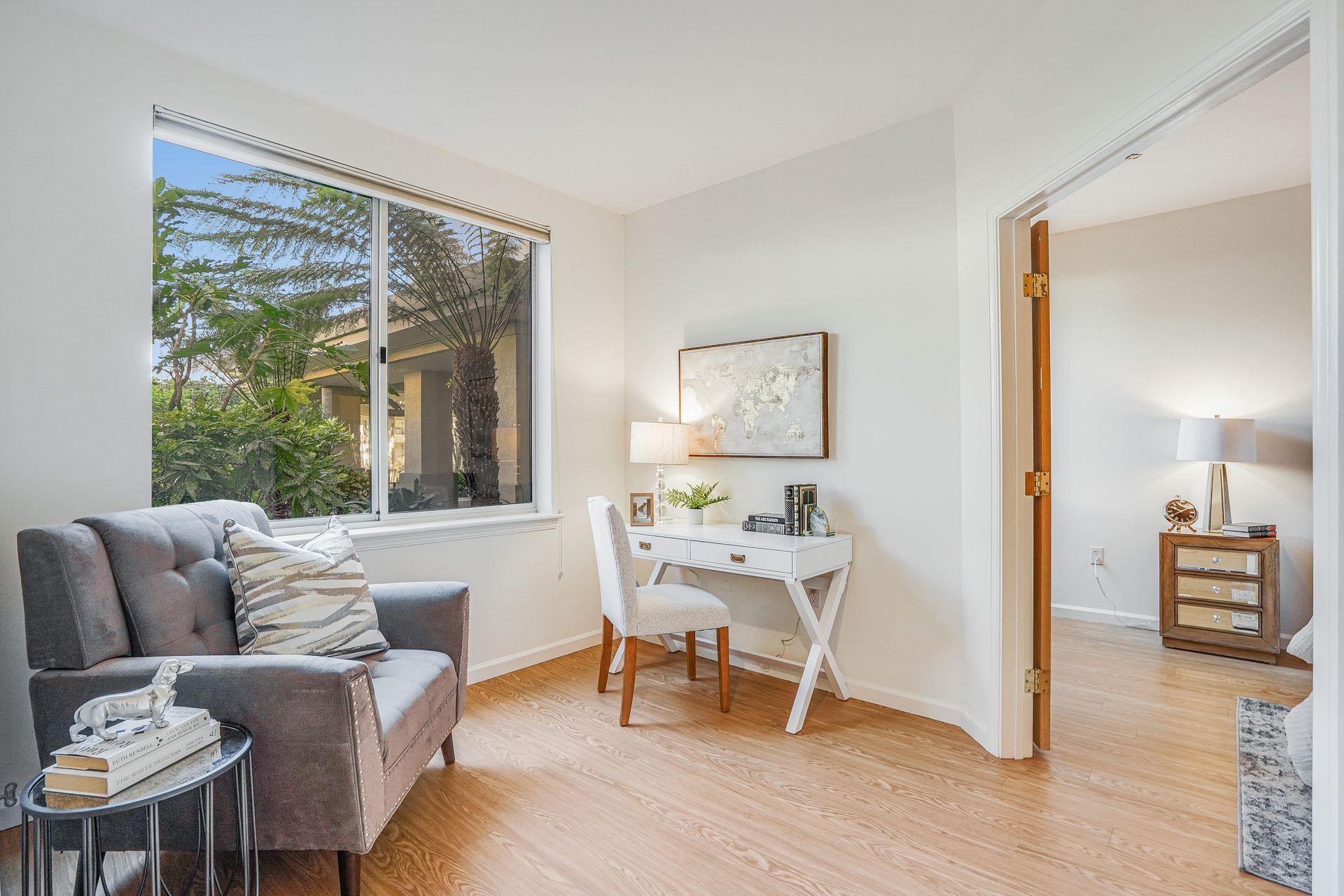 Ground floor condo in 55+ community, located on approximately 30-acres of prime Marin County real estate. Beautiful grounds and luxury amenities are the big attraction at Smith Ranch Homes. This condo's floor plan includes a one-bedroom suite, den and two full bathrooms. Full kitchen with newer stainless-steel refrigerator and dishwasher. Two-sided, gas fireplace. The patio offers extended livable space and a locked storage closet. Newer carpet, freshly painted walls, refinished cabinetry and newer hardware. Newer W&D. Covered, assigned parking. Storage room. Community amenities offer resort-style living - multiple dining options, exercise facilities, pool, gated/24-hour security, housekeeping and valet services, transportation services, personal veg/flower gardens, game room, library, hair and nail salon, art studio, bocce ball courts and many resident activities. Pet OK. Close by are the Marin Civic Center, McGinnis Golf and Tennis Park, Northgate Mall and bi-weekly Farmer's Market.