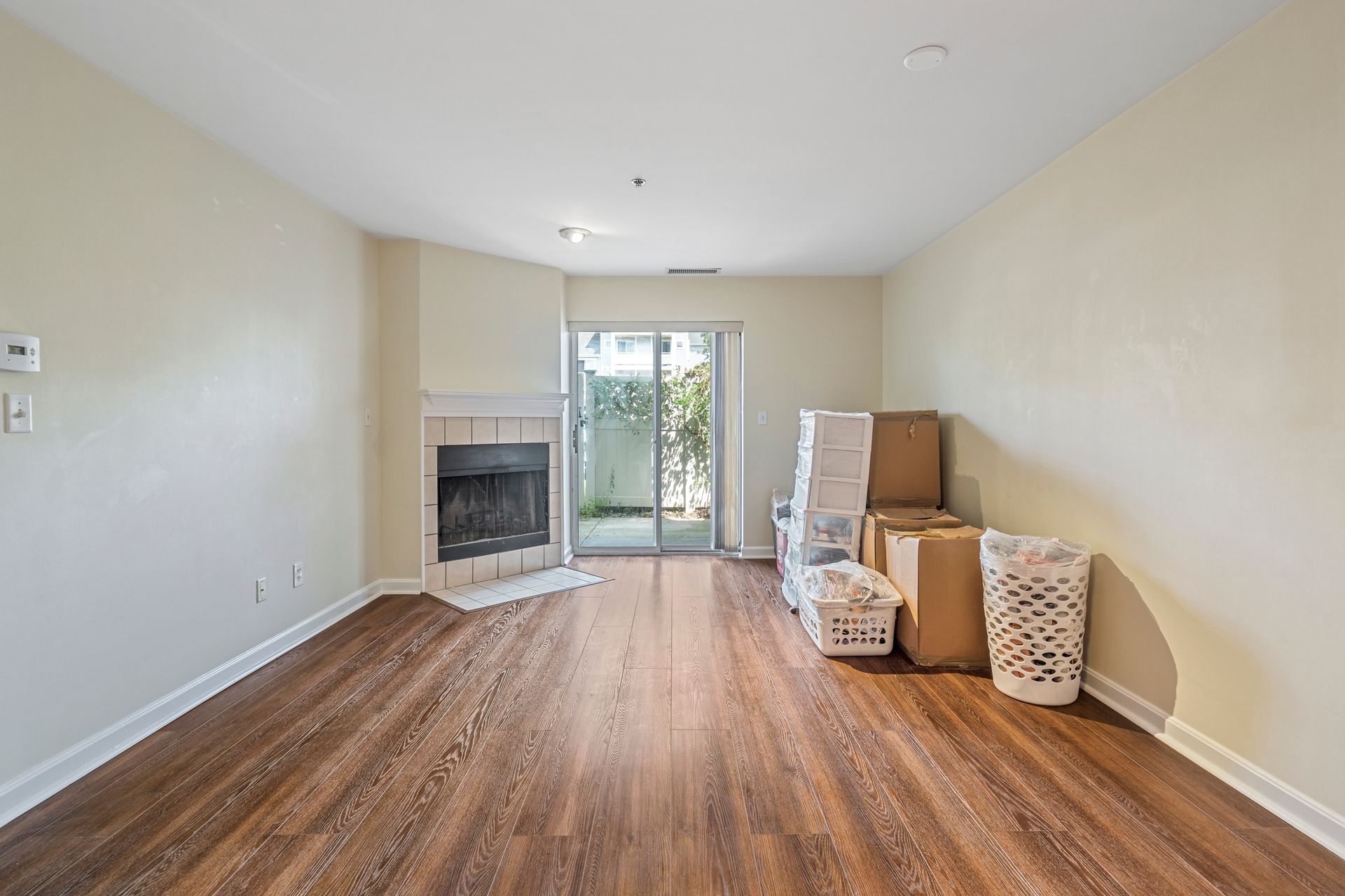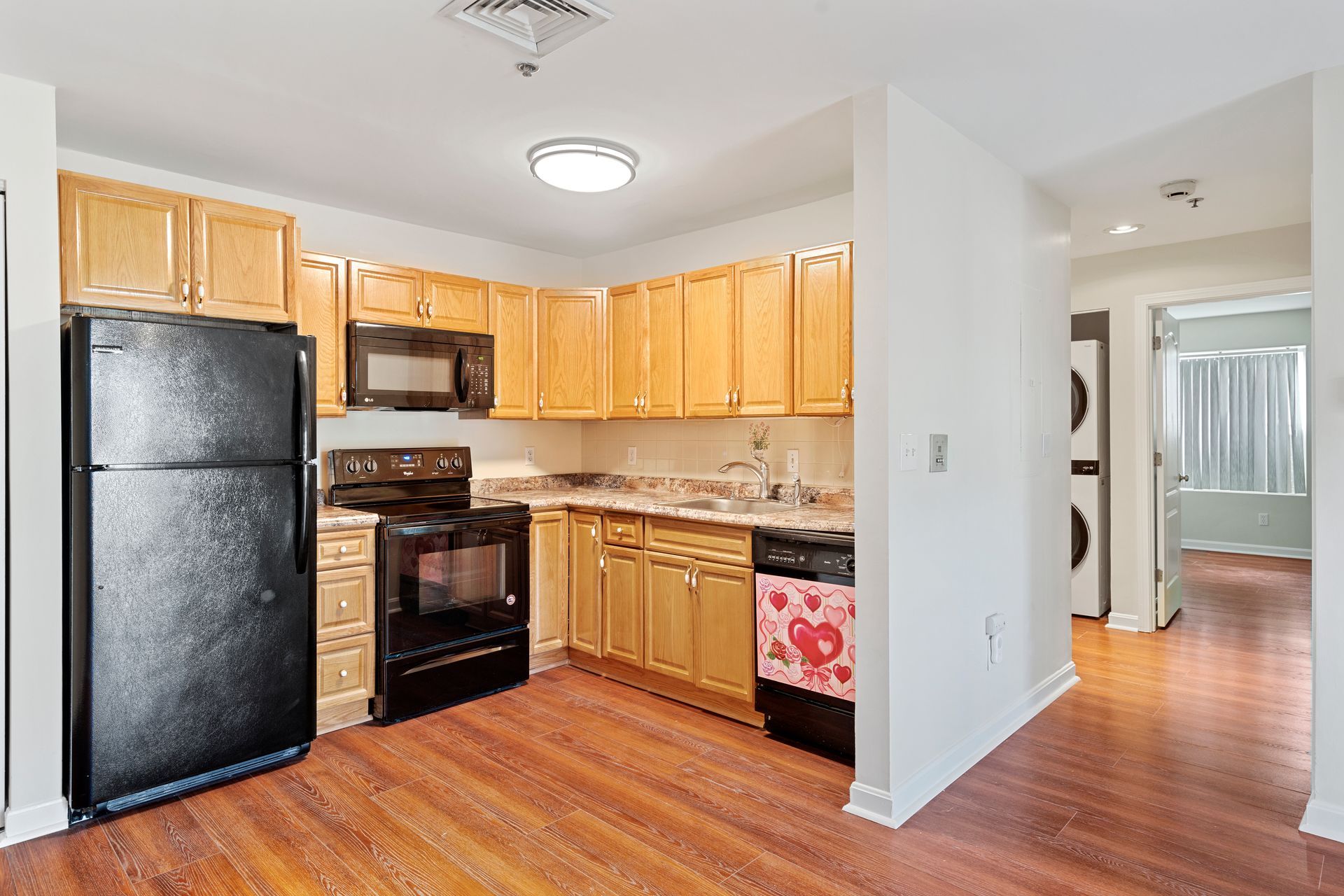 Enjoy one-level living with no stairs in this first-floor two bedroom two full bathroom corner unit with a private patio at The Falls. The open floor plan creates a bright and welcoming space that is perfect for entertaining and relaxation. The spacious living room boasts a fireplace, new flooring, and sliders to your private patio. The two well-proportioned bedrooms feature new flooring and ample closet space, providing plenty of storage for all your personal belongings. The primary bedroom has an en-suite bathroom and walk-in closet that adds extra privacy and comfort to the living space. Also features an in-unit laundry. Additional amenities and benefits that come with this delightful property include a renovated clubhouse with full kitchen, beautiful swimming pool and secure building entry. This home is ideal for discerning buyers seeking a vibrant and comfortable living experience in a coveted location with easy access to public transportation and a plethora of shopping and dining options.