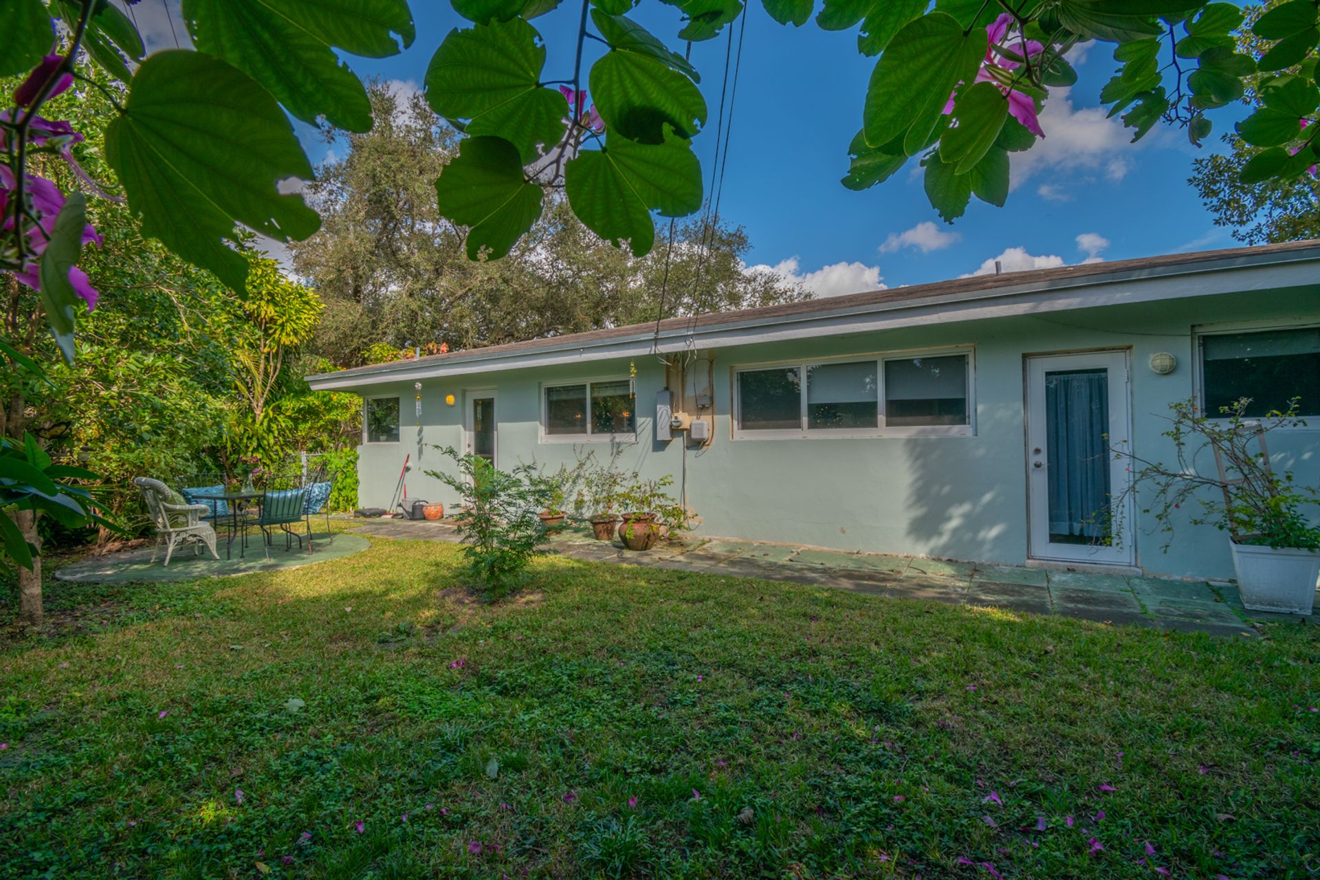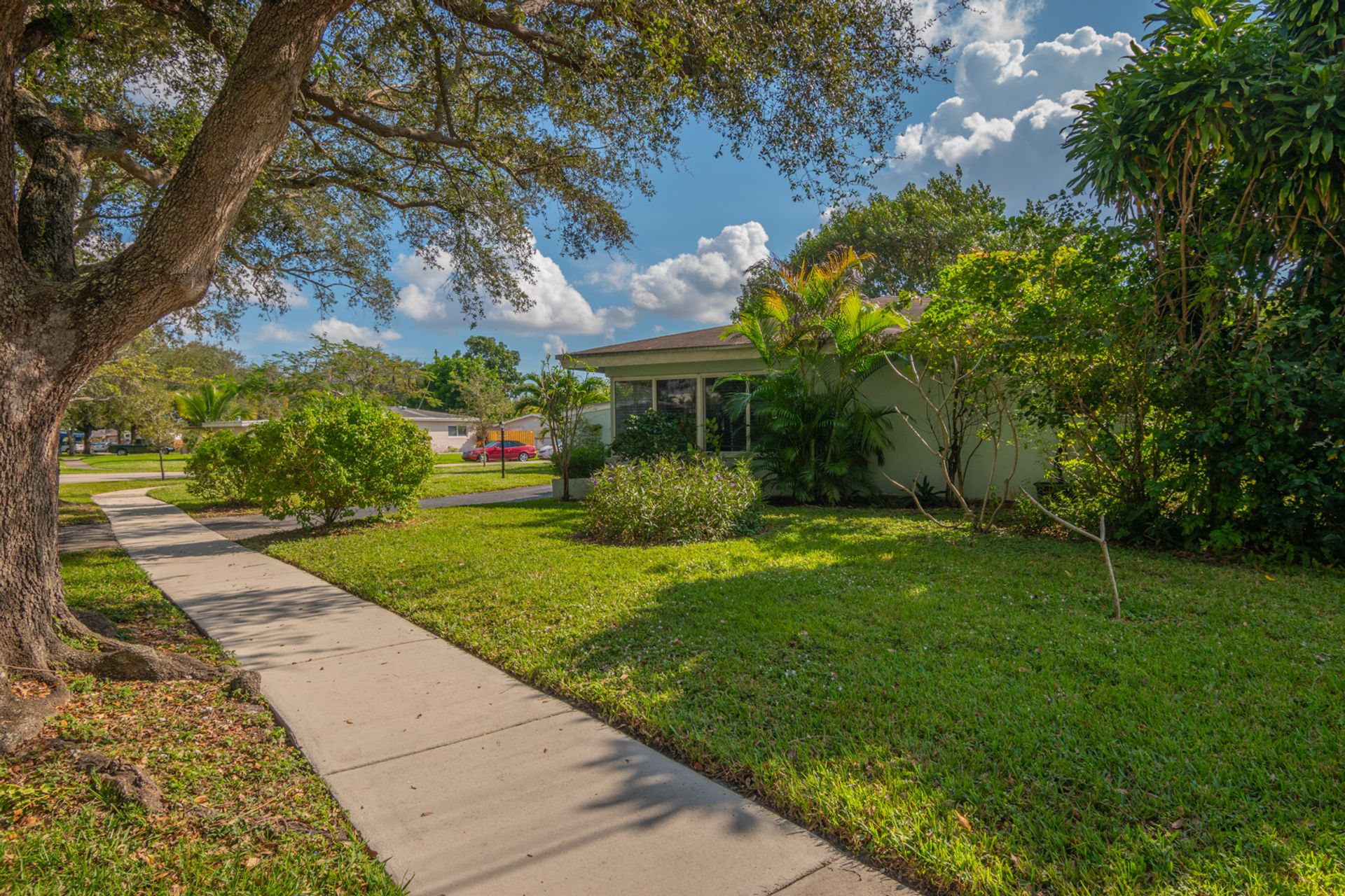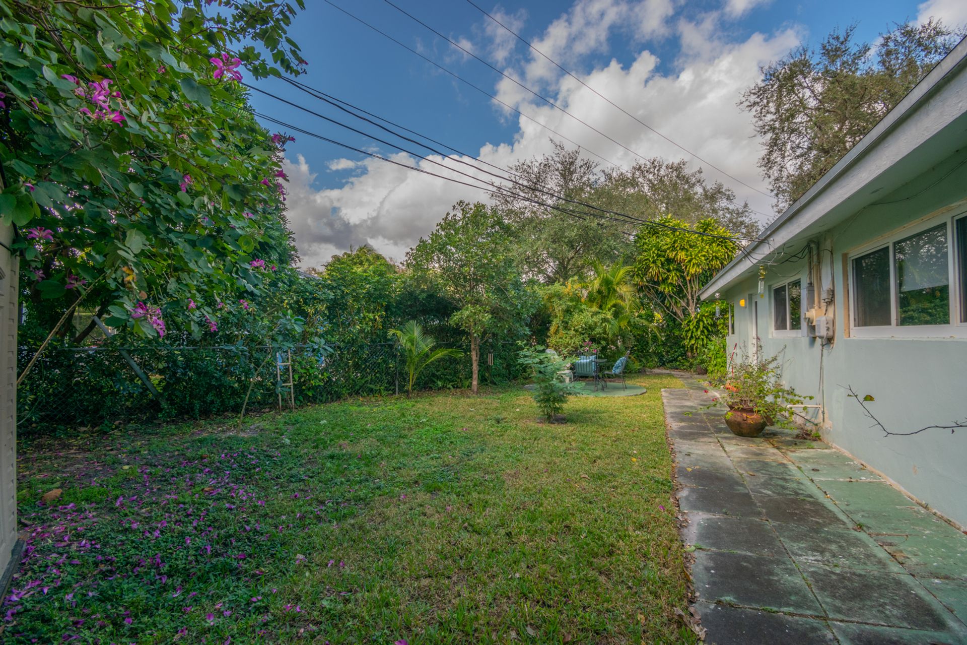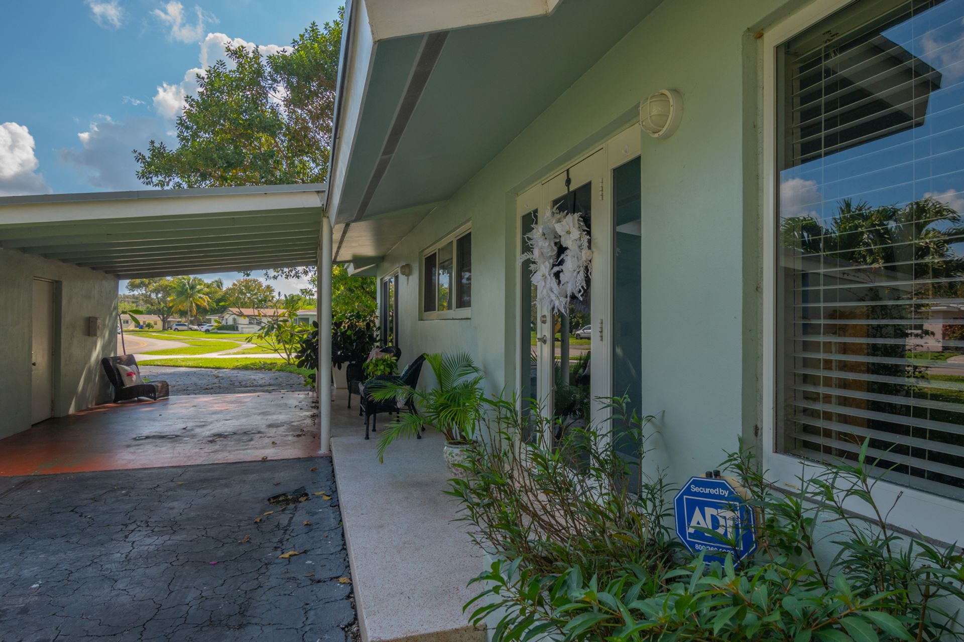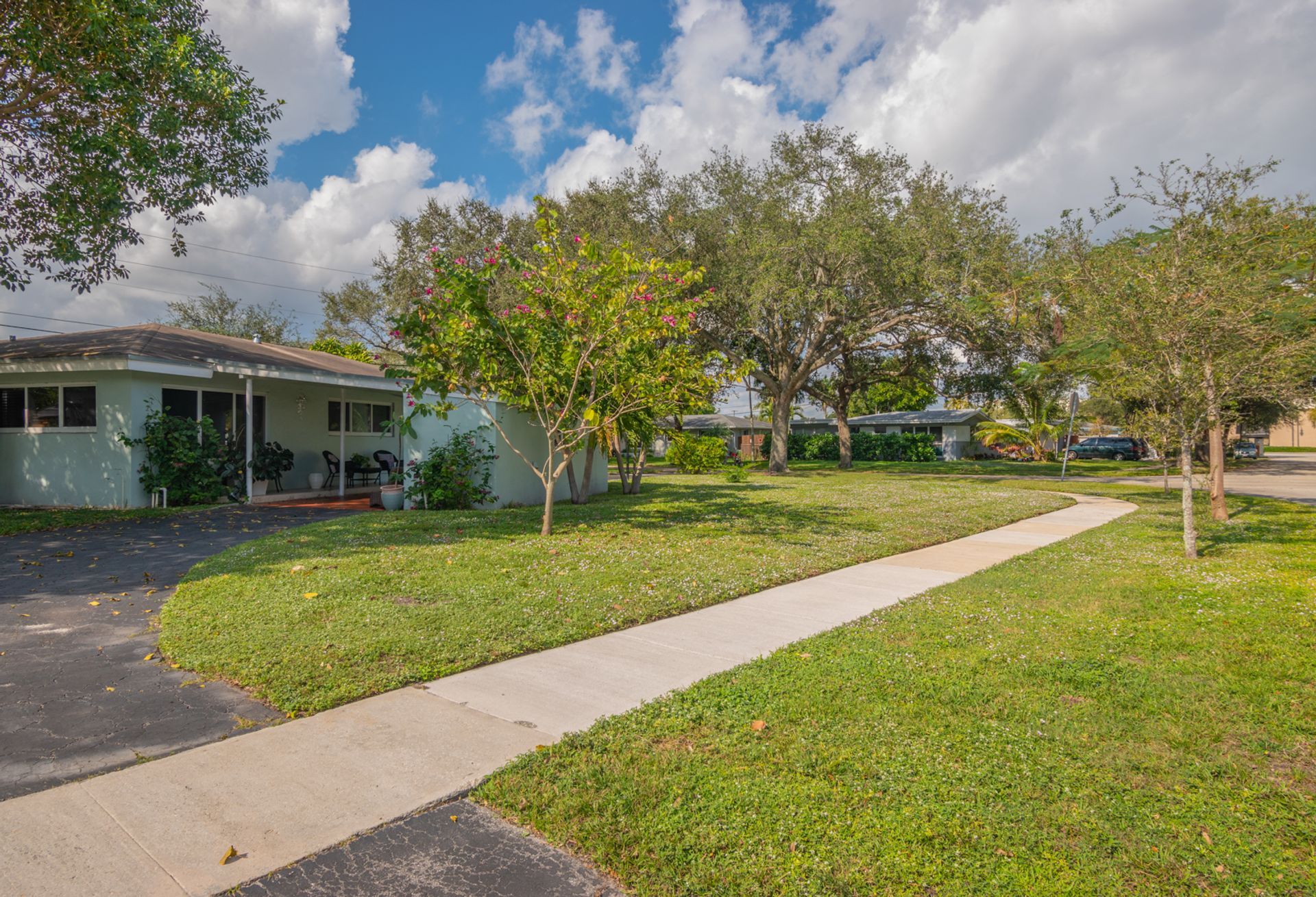 This lovely three bedroom, two bath home on a large, corner lot is nestled in the heart of Hollywood! It boasts of a Newer Roof, A/C and Hot Water Heater! As you move away from the large circular driveway and into this beautiful dwelling, you immediately feel at home in the huge Living Room surrounded by lots of natural light streaming in through the many windows! The spacious Kitchen features new large, corner picture windows looking out into the tropical backyard; and has a tray ceiling and pantry. This kitchen needs updating and is just waiting for your dreams and plans to create a warm hub for your new home! All windows and doors are new Impact Glass and Hurricane Proof! The updated baths are beautifully done in vintage decor. The Master Bath was also recently updated with new flooring and new tile in the shower and walls; and both have brand new toilets and new sinks. A linen closet is conveniently located in the hallway and the home has an alarm. Ceramic Tile and Terrazzo flooring are throughout. The large third bedroom was permitted and created from an original Florida room. It also has its own rear door which leads directly into the backyard. The laundry room is outside in the covered Carport storage room. The fenced backyard features privacy landscaping and a rear patio with a roomy yard for entertainment and lots of backyard BBQ's! A Shed provides extra storage! The Septic tank was just cleaned this summer, 2020. The lovely chandeliers in the home stay. This Pet friendly neighborhood welcomes you to its peaceful, tree-lined street! NO Mandatory HOA! Close to the Beaches, museums, shopping and fine dining! Just moments to Fort Lauderdale airport and all major highways! Come home to Hollywood's Lawn Acres!