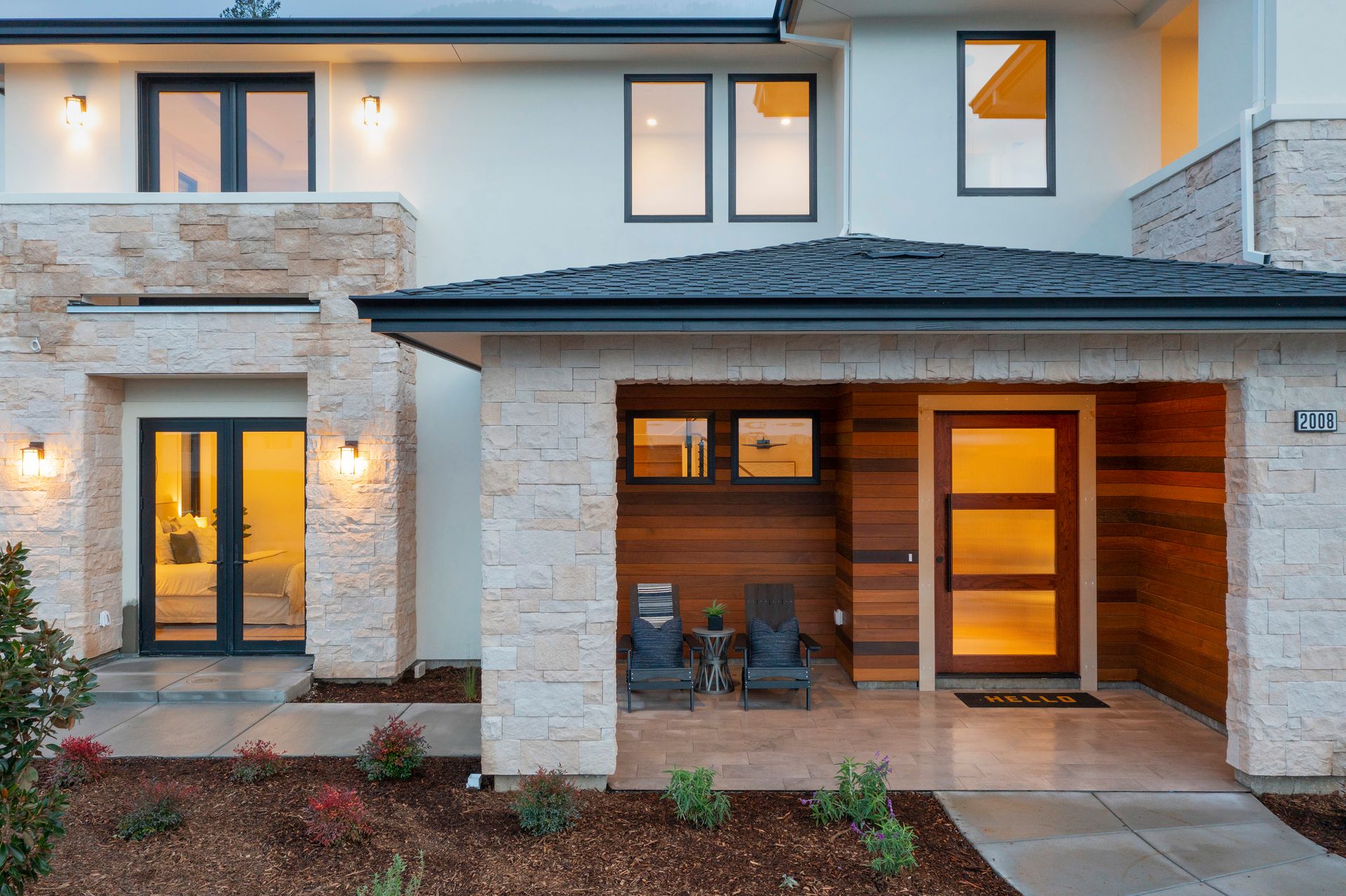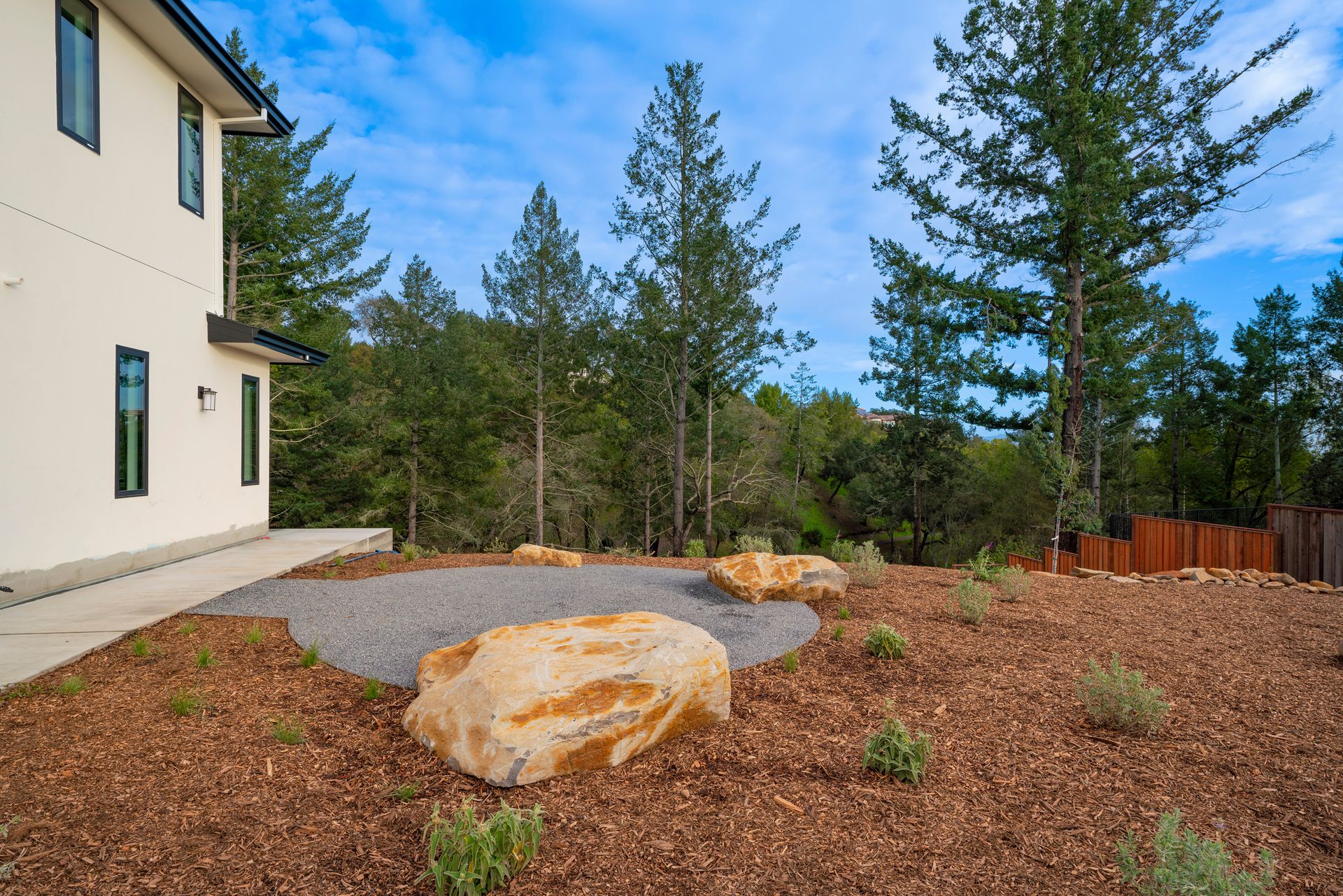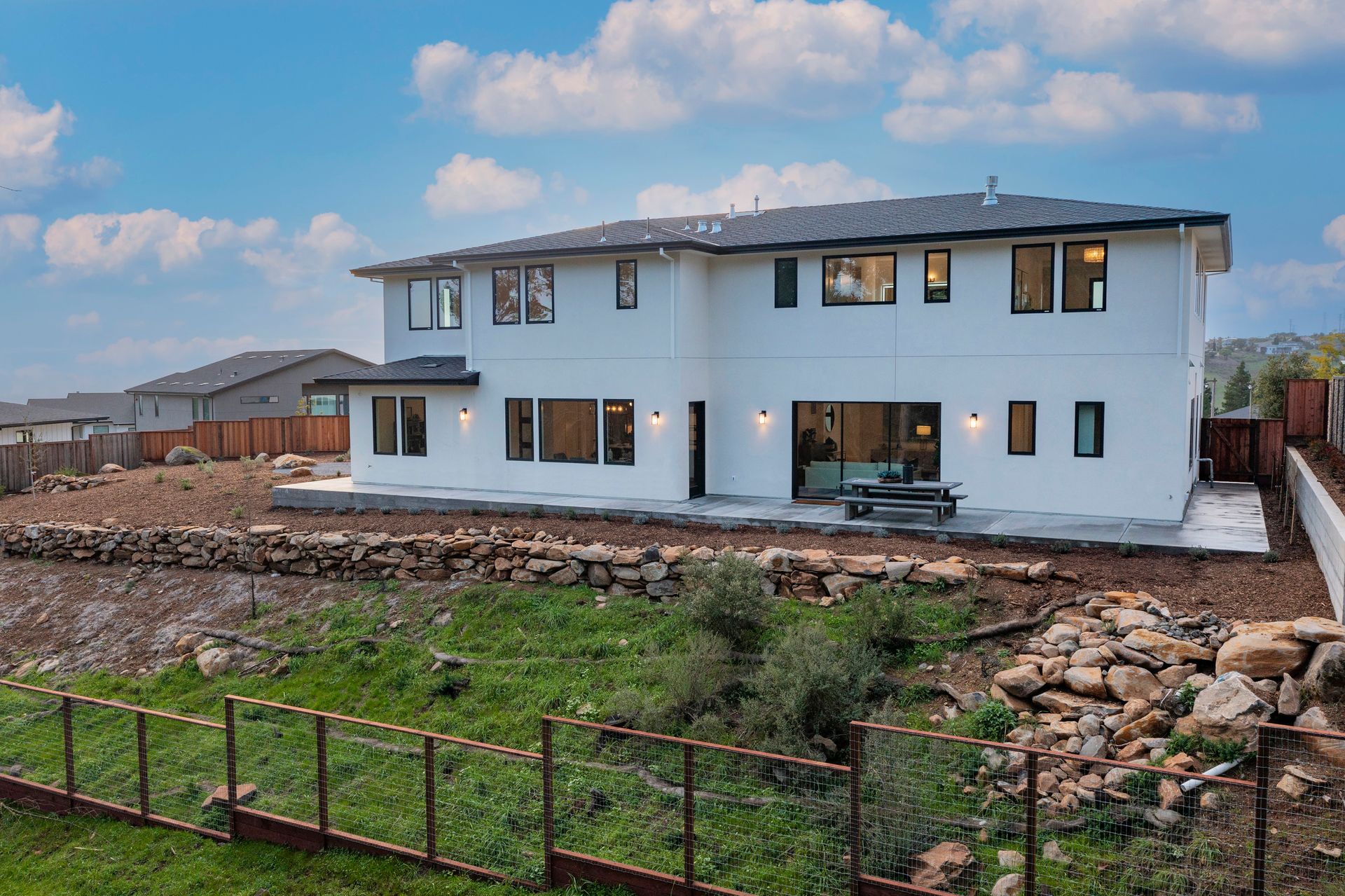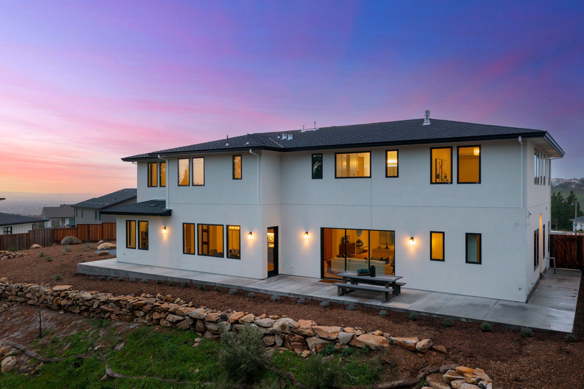 This newly constructed home in Fountaingrove sits on a generous 1/3 acre lot. Set on a peaceful cul-de-sac and backing to open space, this offers much desired privacy. The home features 5 bedrooms plus an office and 4 full bath, 1 half bath. The covered entry leads to a modern fluted glass entry door taking you to the foyer with vaulted ceiling. The open concept great room features a linear fireplace set in a feature wall of floor to ceiling quartzite slab surround and stacking sliders to the rear patio and is open to the dining and kitchen. The chef’s kitchen is accented by a large center island, Monogram appliances, and walk-in pantry. The main level includes a home office and a guest suite with sitting area and en-suite bath offering a separate entrance. The upper level consists of the primary suite with sitting area and direct access to a Juliet balcony, and the primary bath is highlighted by heated floors and an oversized shower. There are 3 additional bedrooms (1 en-suite) and a full bath on the upper level as well as a large bonus room with slider to a covered terrace. There are 2 laundry rooms, one on the main level and one on the upper level. The freshly landscaped grounds offer low maintenance and curb appeal with room for a pool. The distinctive custom home is in the heart of wine country with close proximity to wineries, fine dining and the Sonoma County Airport.