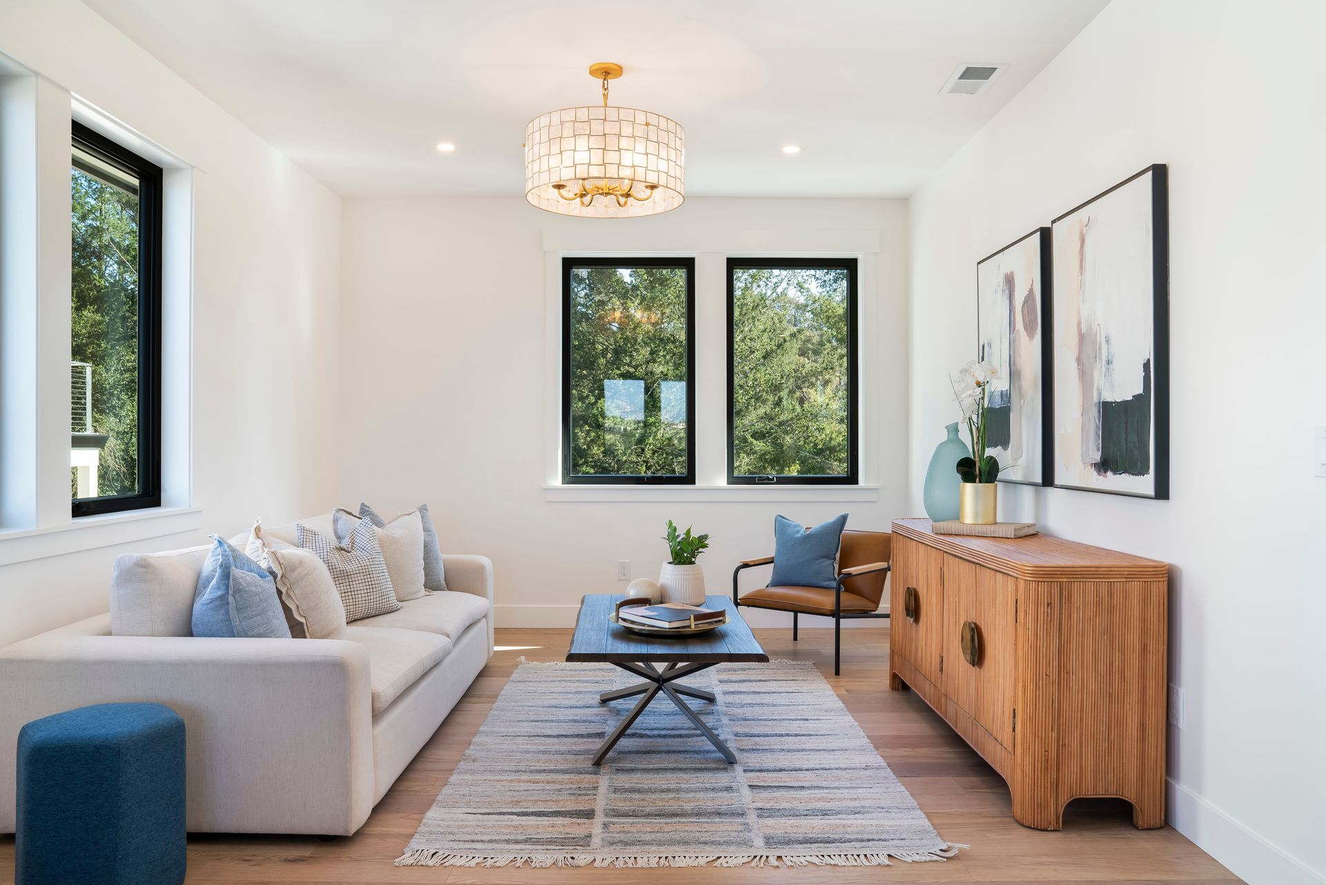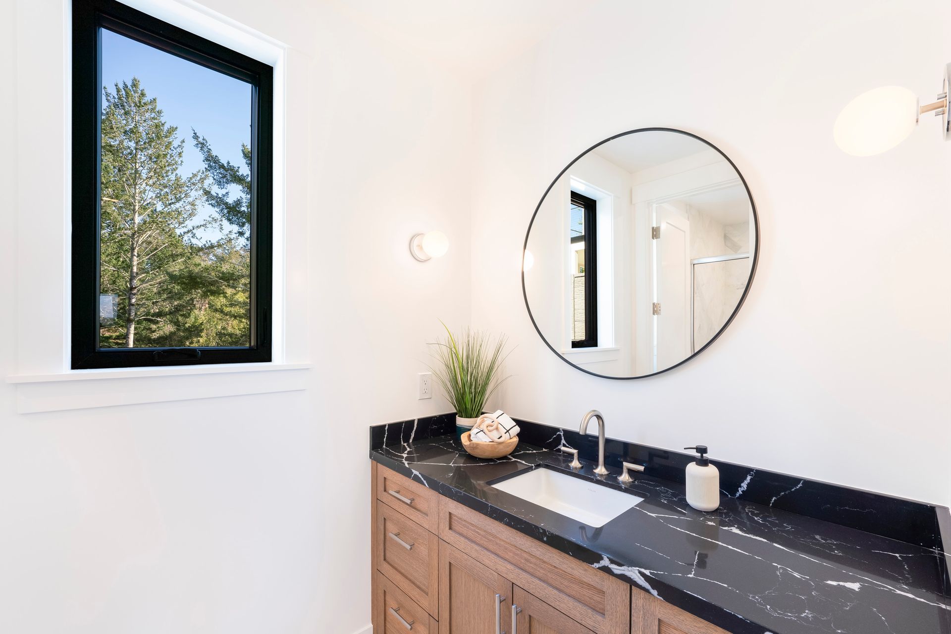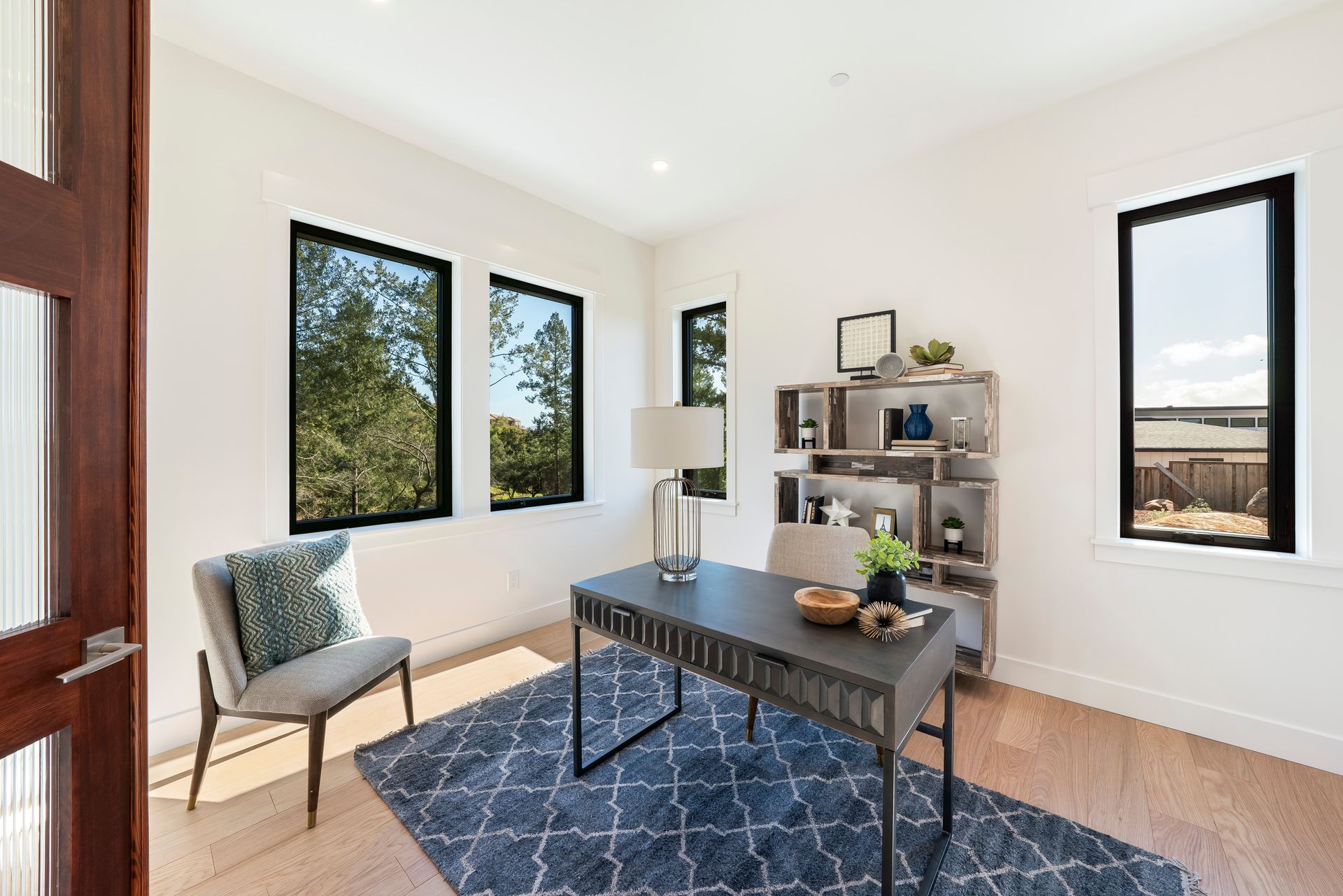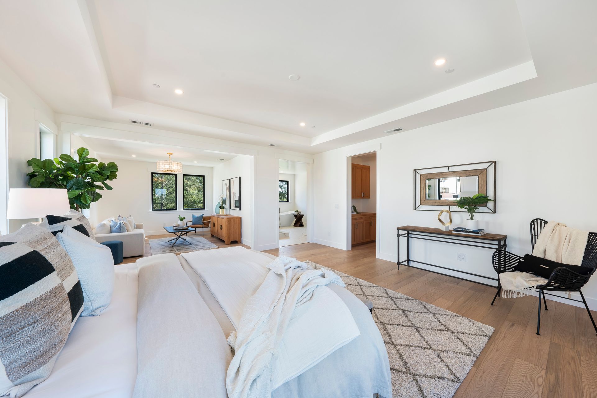 This newly constructed home in Fountaingrove sits on a generous 1/3 acre lot. Set on a peaceful cul-de-sac and backing to open space, this offers much desired privacy. The home features 5 bedrooms plus an office and 4 full bath, 1 half bath. The covered entry leads to a modern fluted glass entry door taking you to the foyer with vaulted ceiling. The open concept great room features a linear fireplace set in a feature wall of floor to ceiling quartzite slab surround and stacking sliders to the rear patio and is open to the dining and kitchen. The chef’s kitchen is accented by a large center island, Monogram appliances, and walk-in pantry. The main level includes a home office and a guest suite with sitting area and en-suite bath offering a separate entrance. The upper level consists of the primary suite with sitting area and direct access to a Juliet balcony, and the primary bath is highlighted by heated floors and an oversized shower. There are 3 additional bedrooms (1 en-suite) and a full bath on the upper level as well as a large bonus room with slider to a covered terrace. There are 2 laundry rooms, one on the main level and one on the upper level. The freshly landscaped grounds offer low maintenance and curb appeal with room for a pool. The distinctive custom home is in the heart of wine country with close proximity to wineries, fine dining and the Sonoma County Airport.
